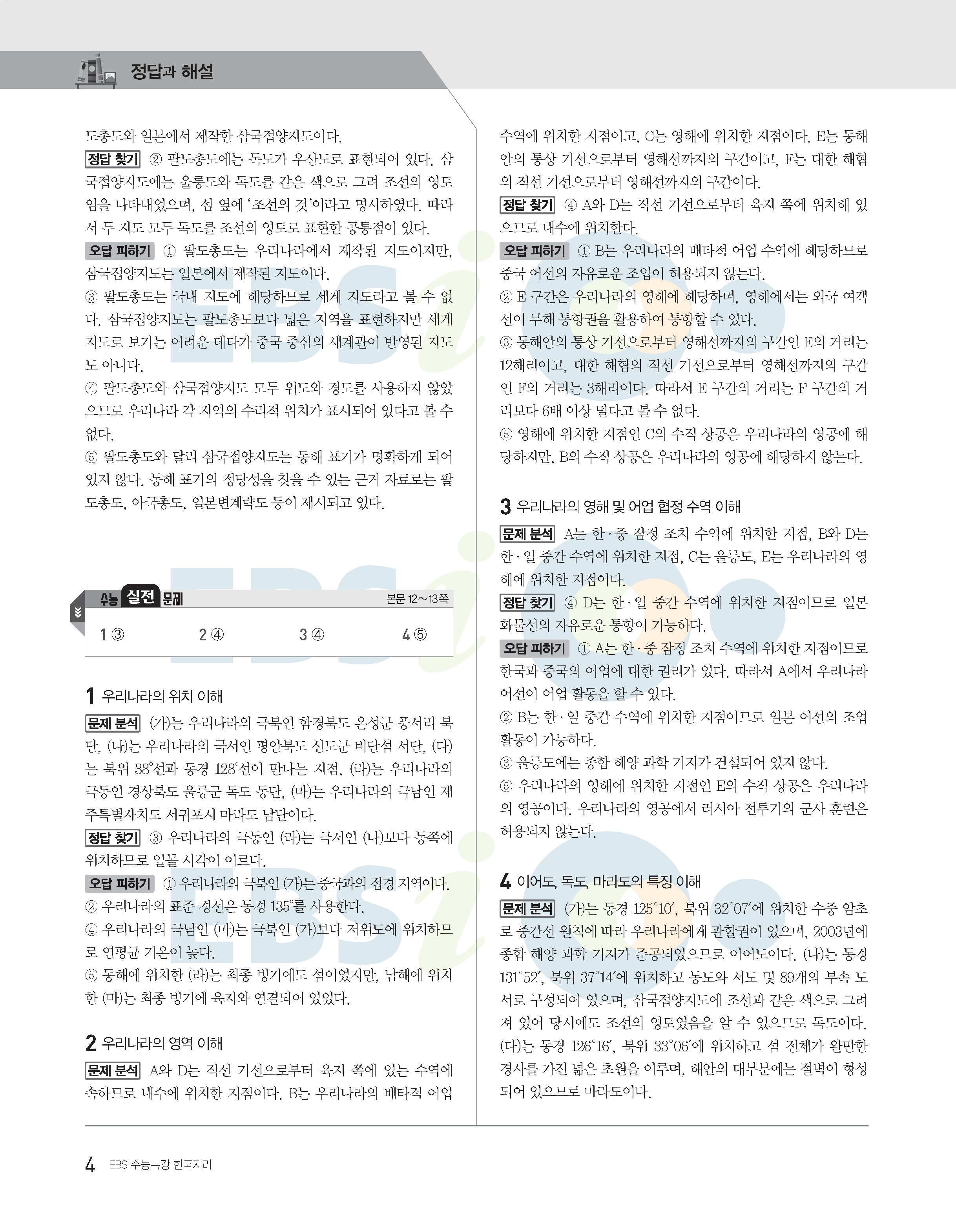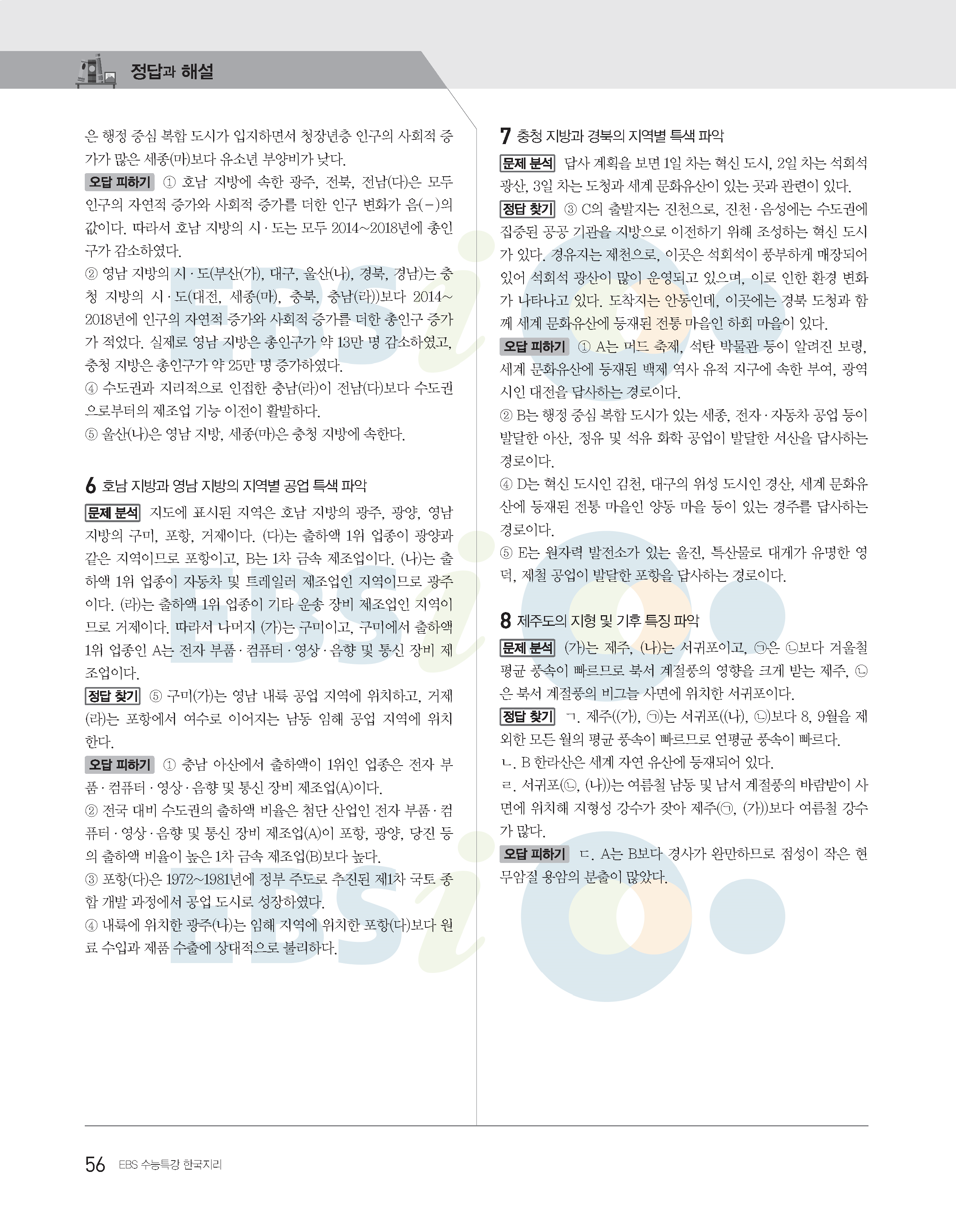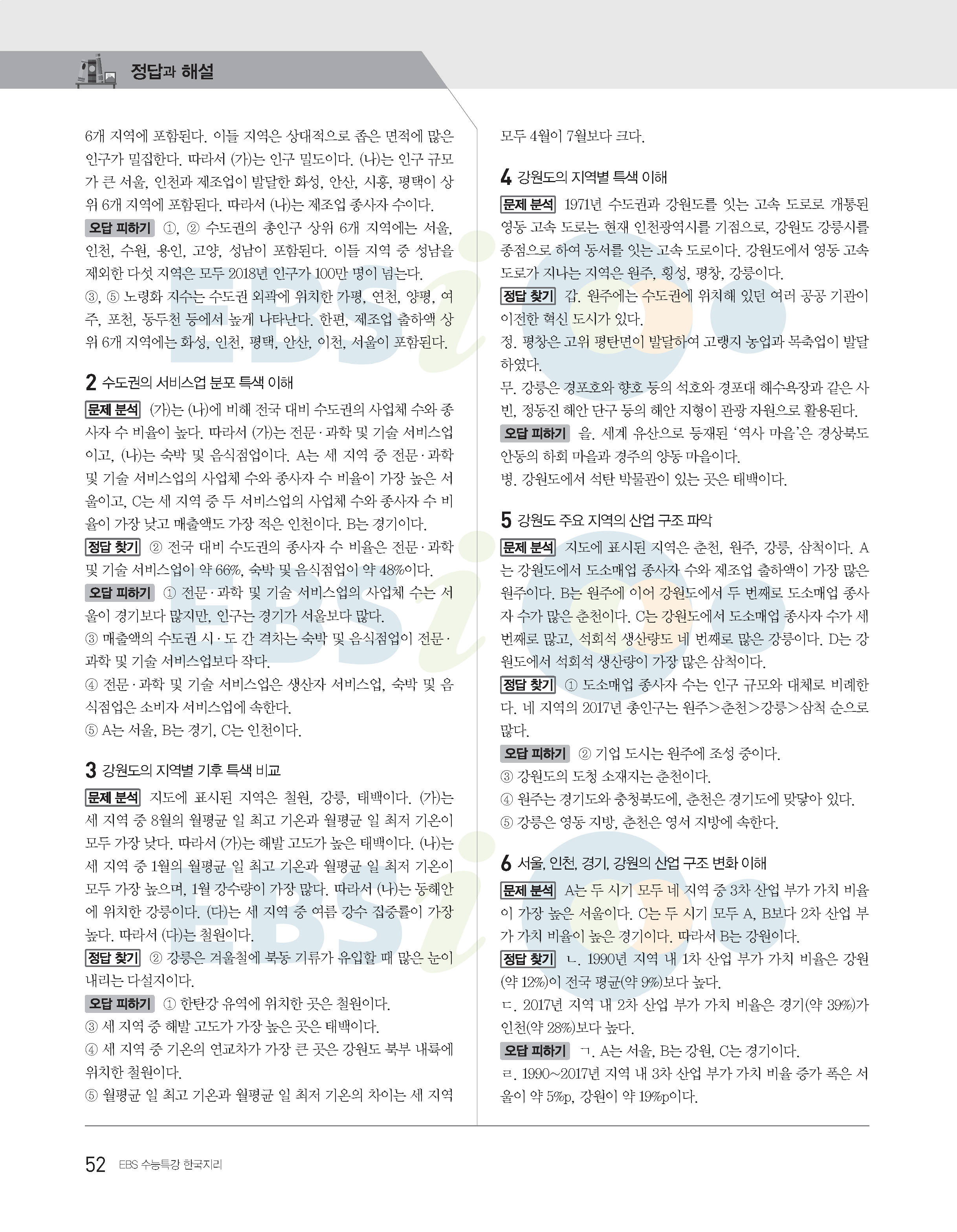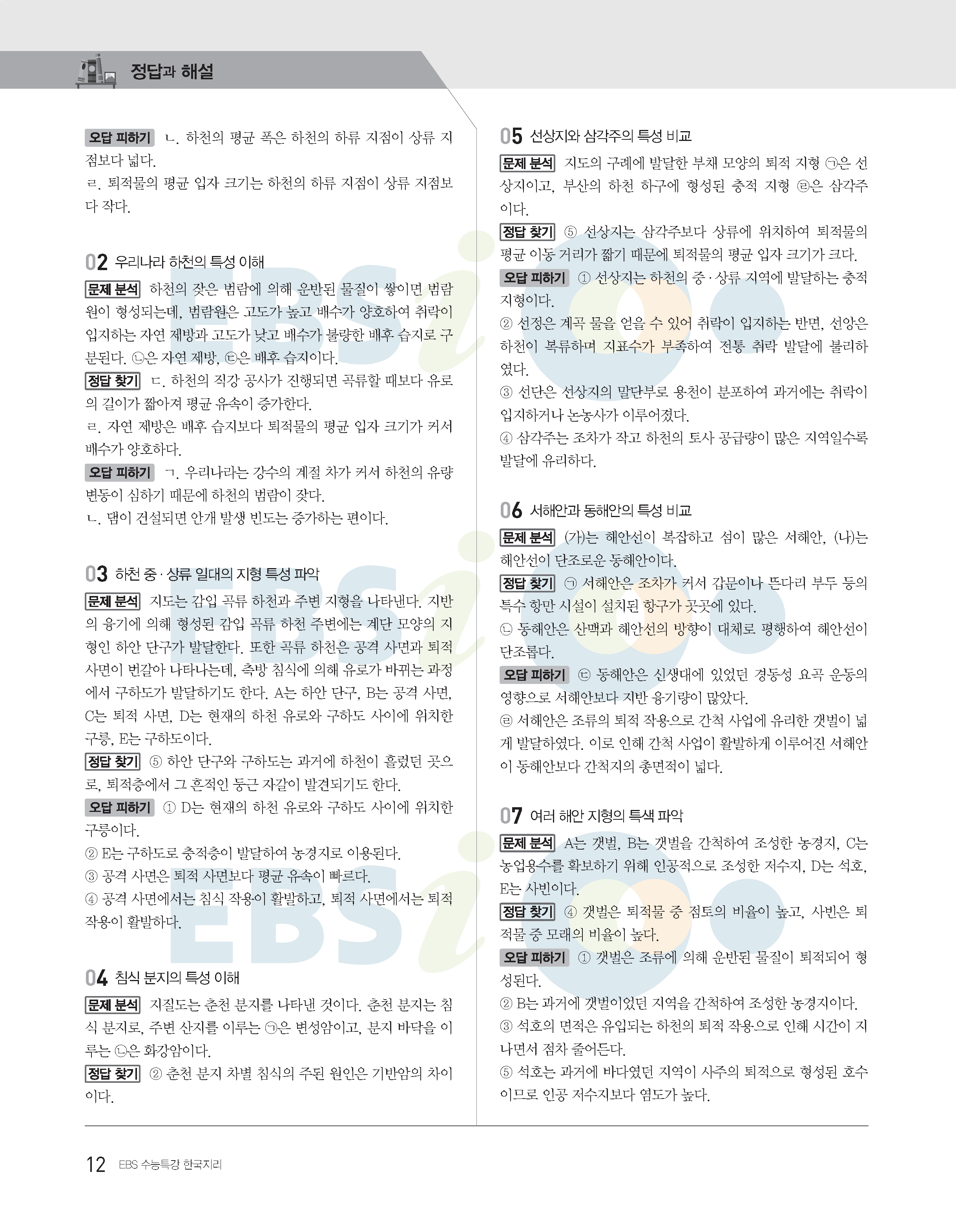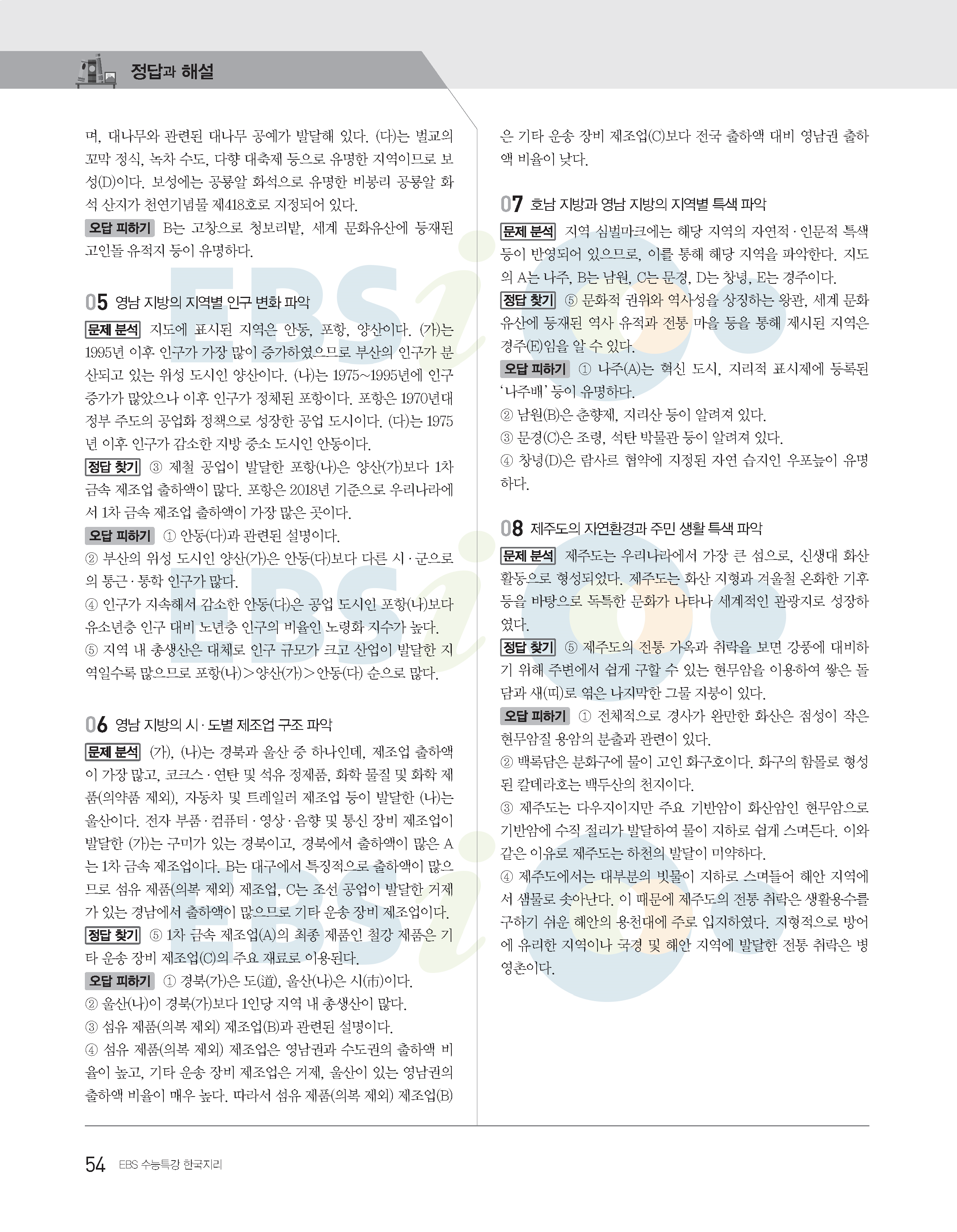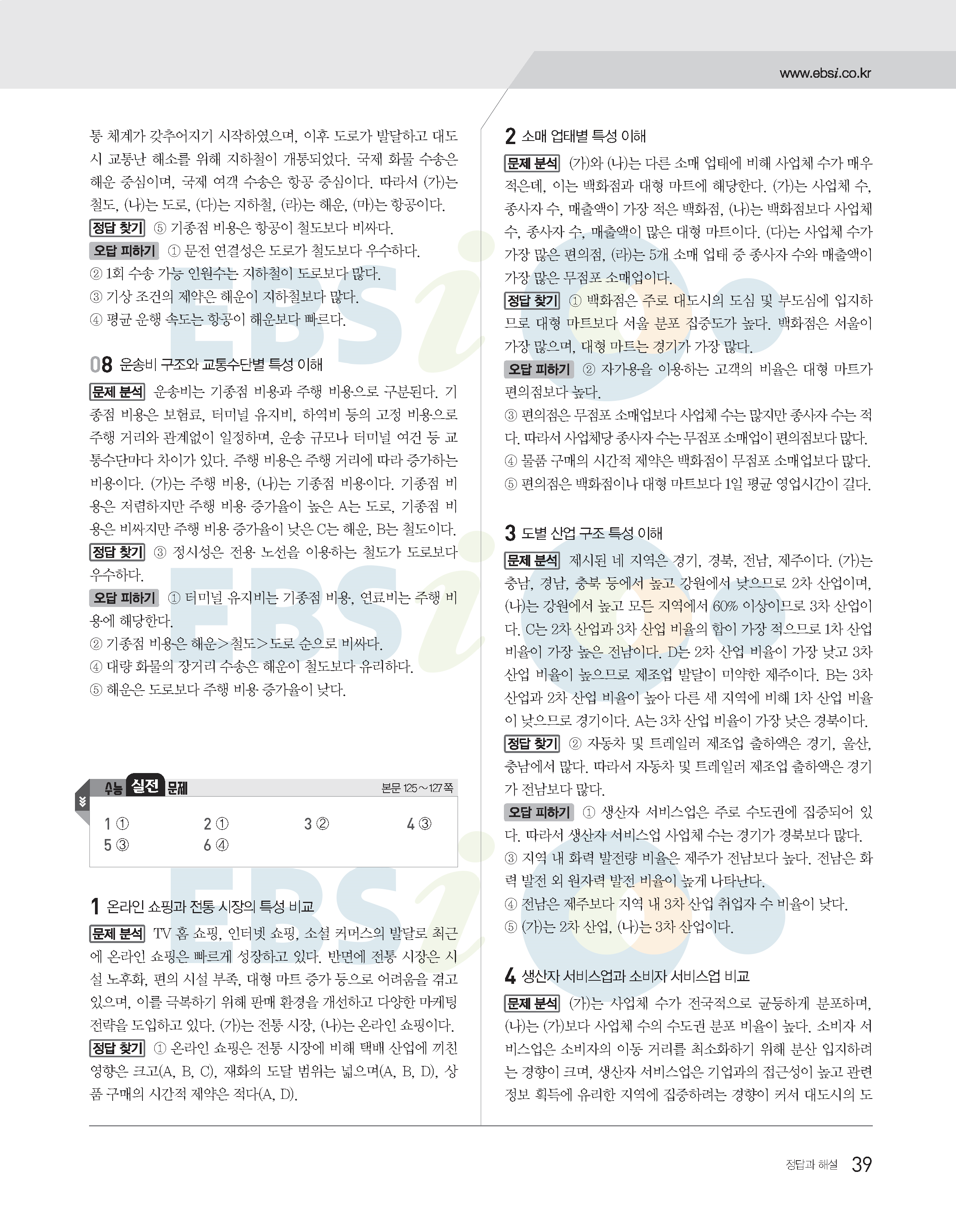 2022수능특강 한국지리 사진답지 빠른답지 모바일최적화