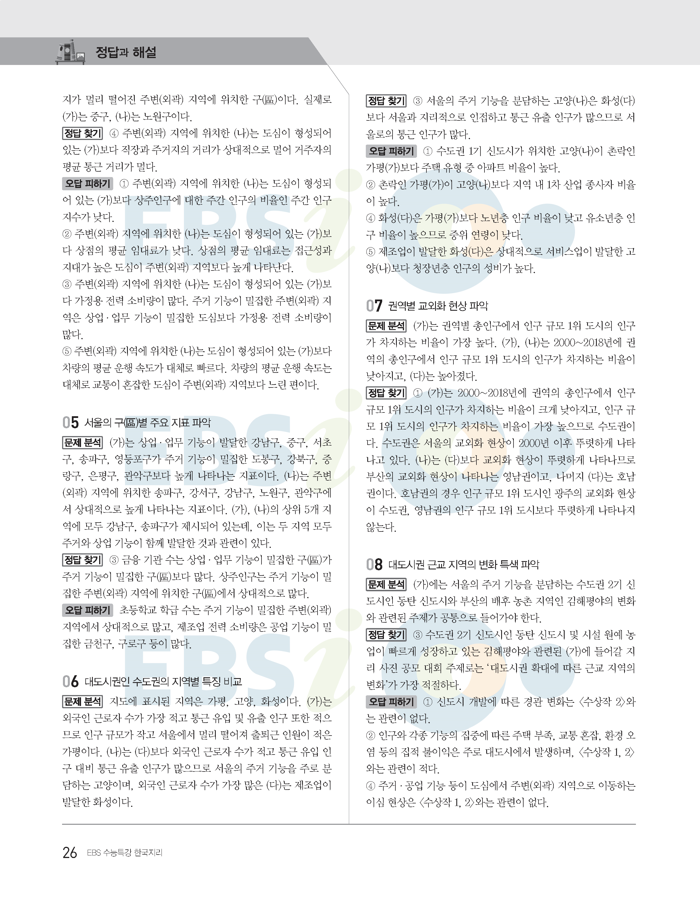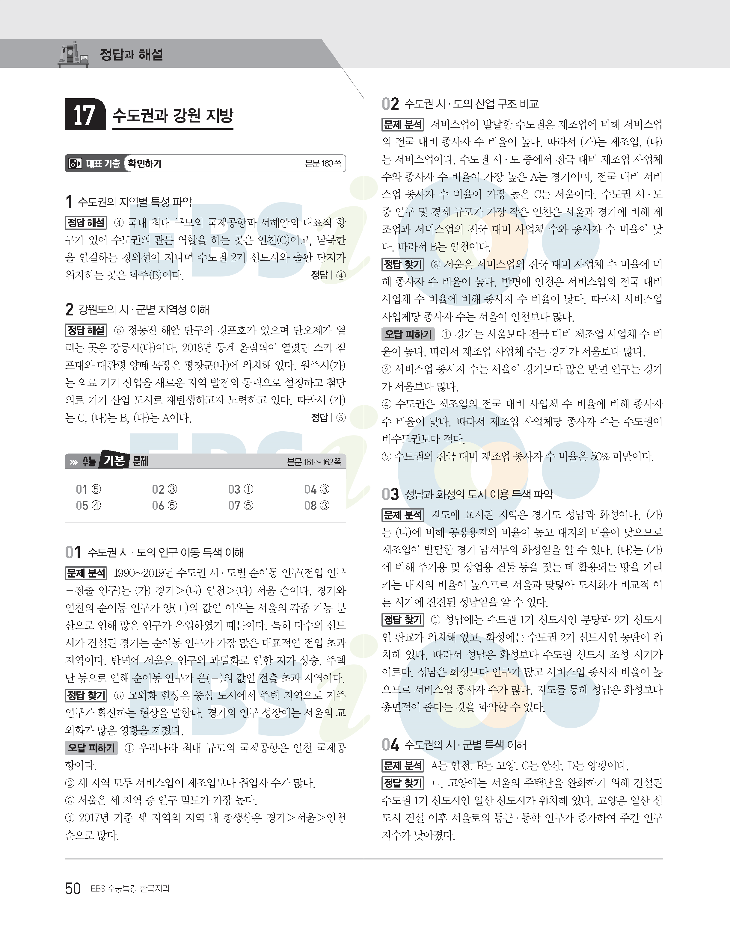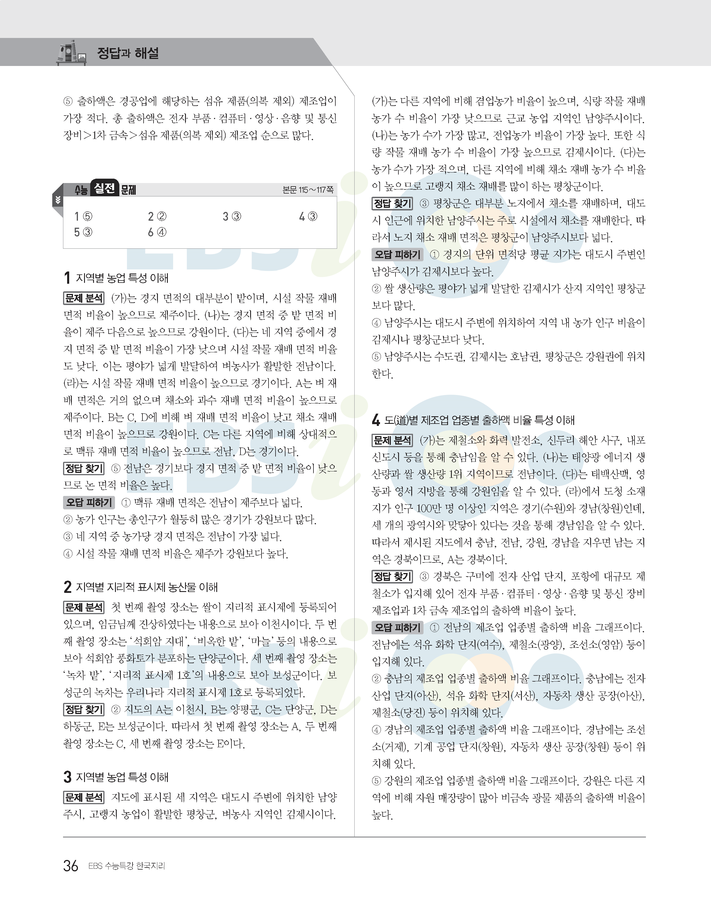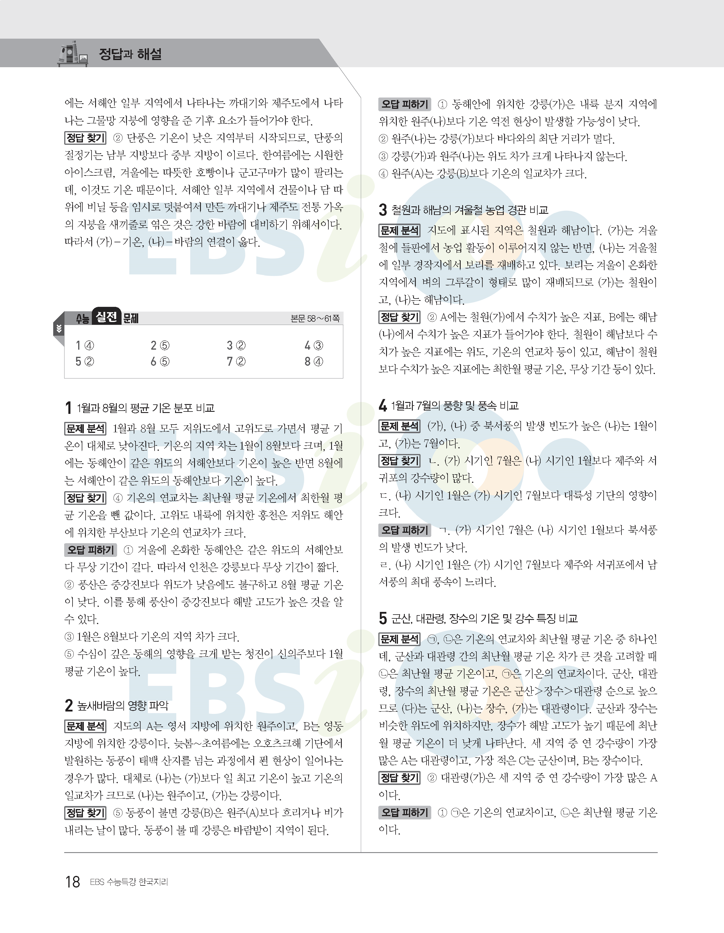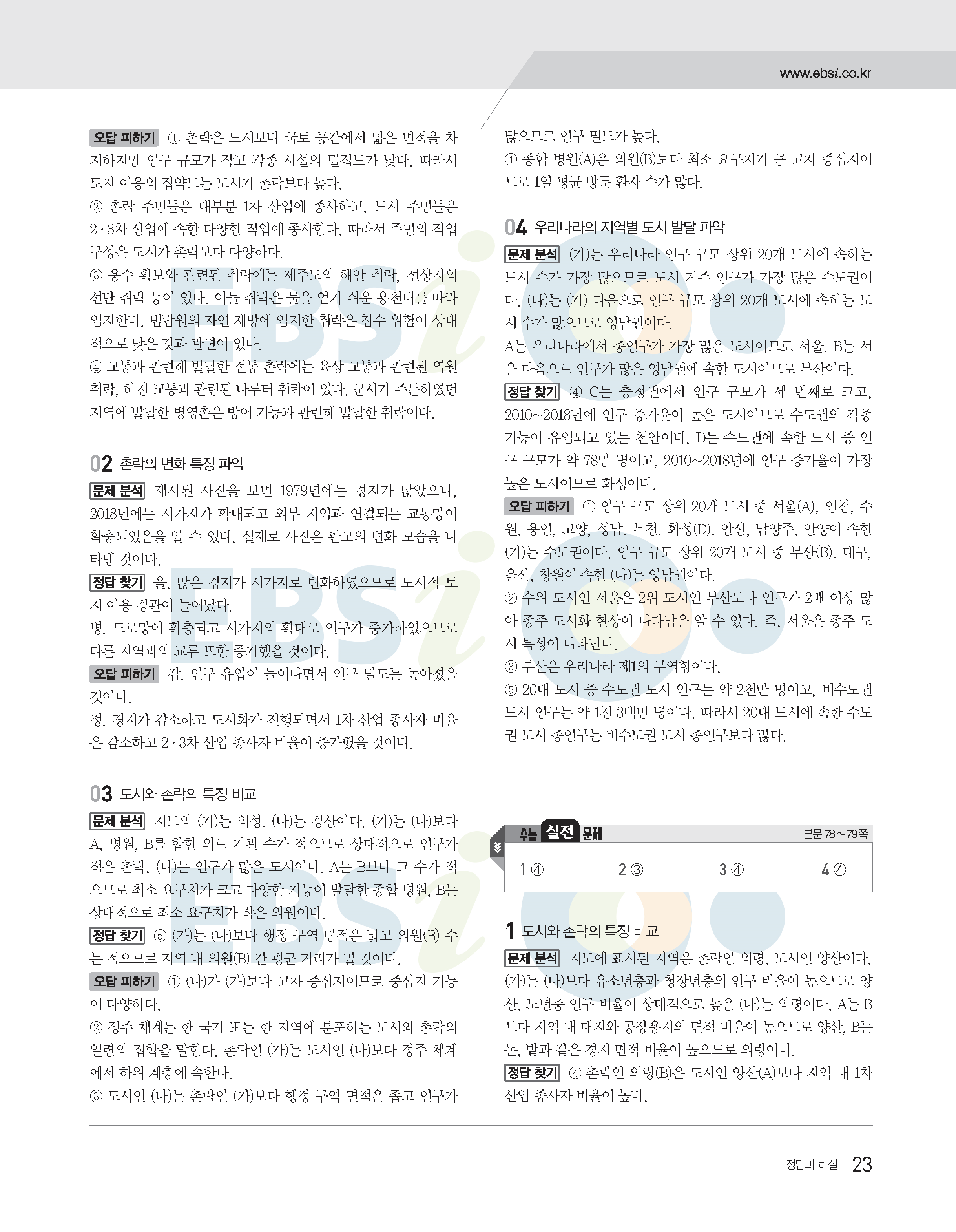2022수능특강 한국지리 사진답지 빠른답지 모바일최적화