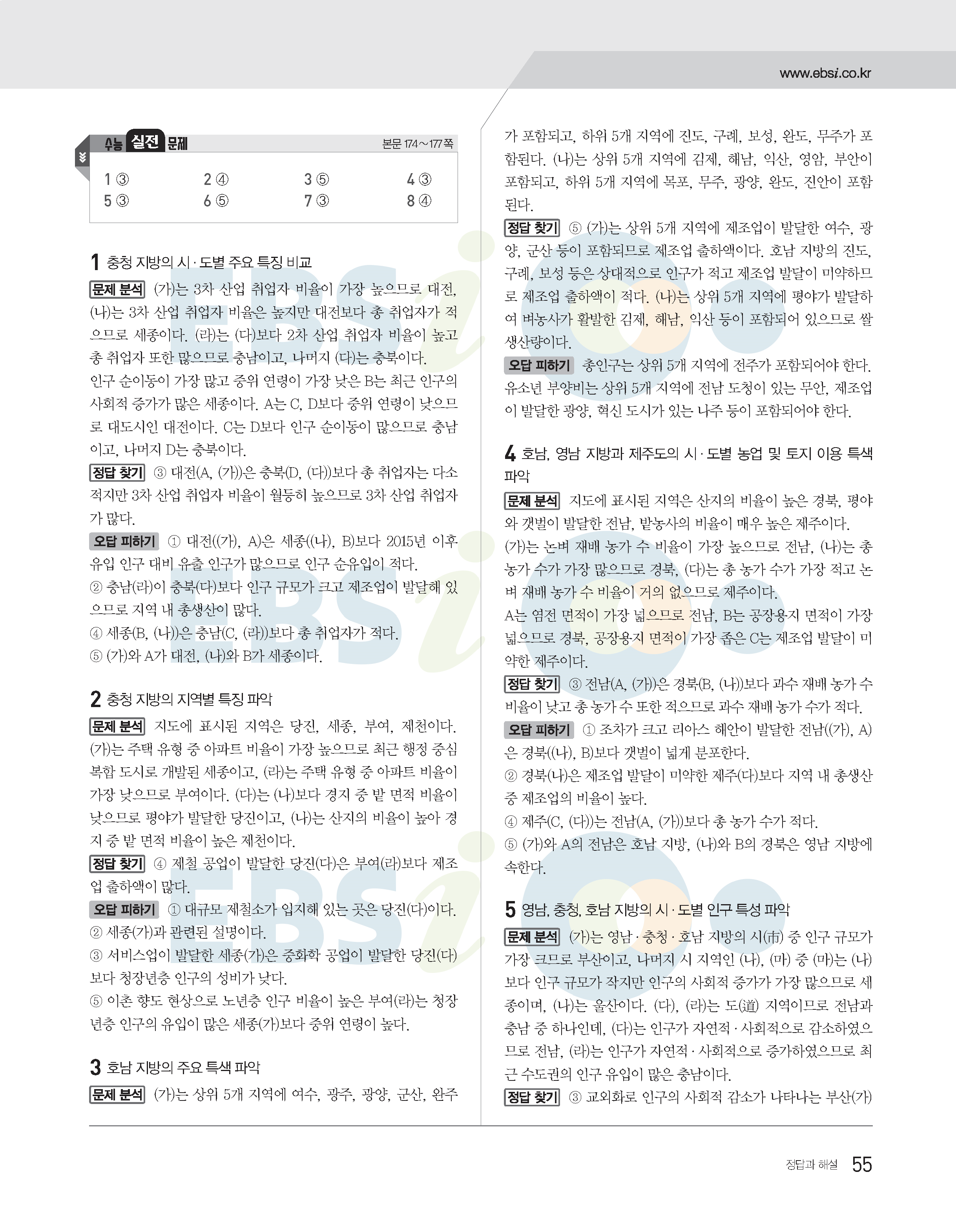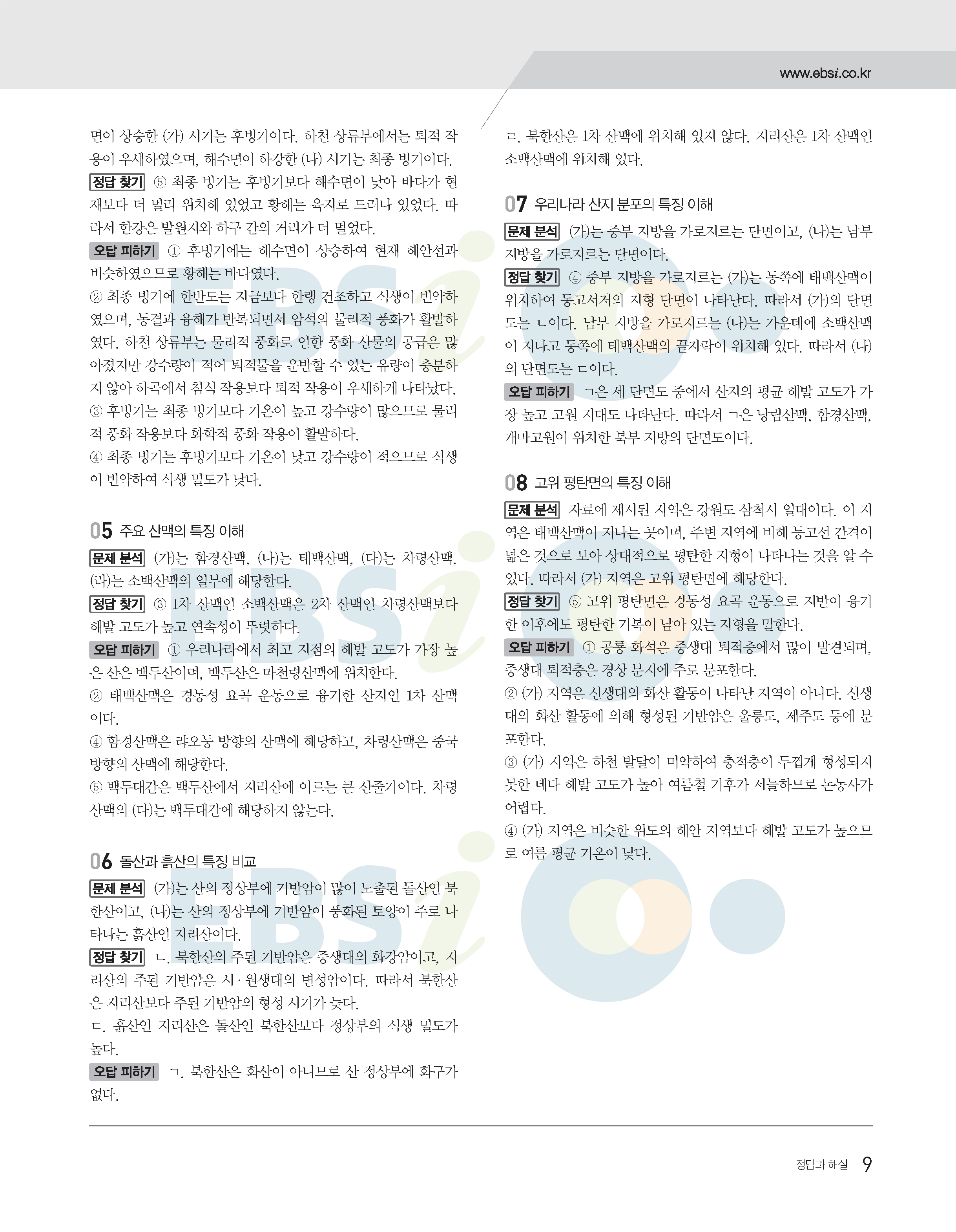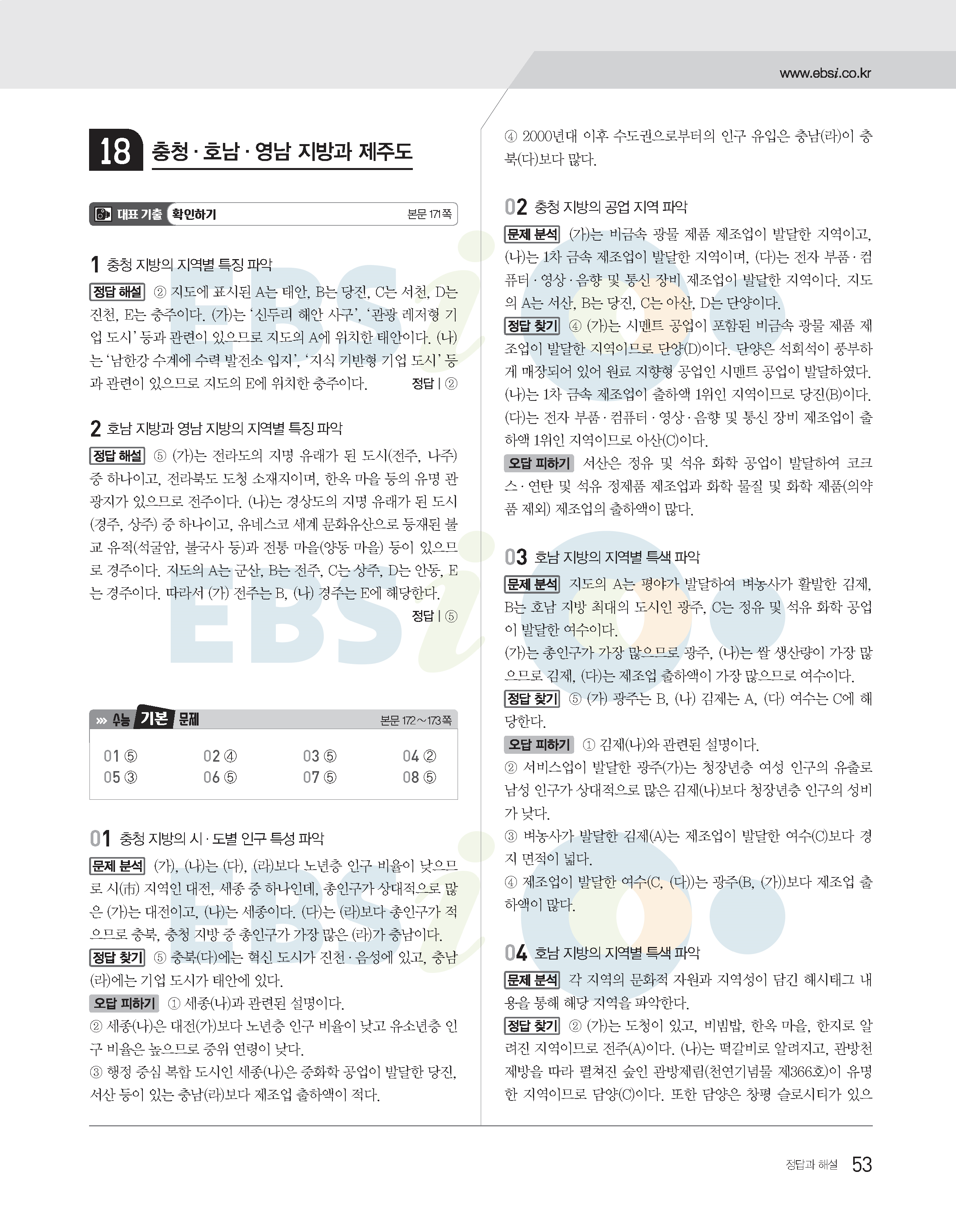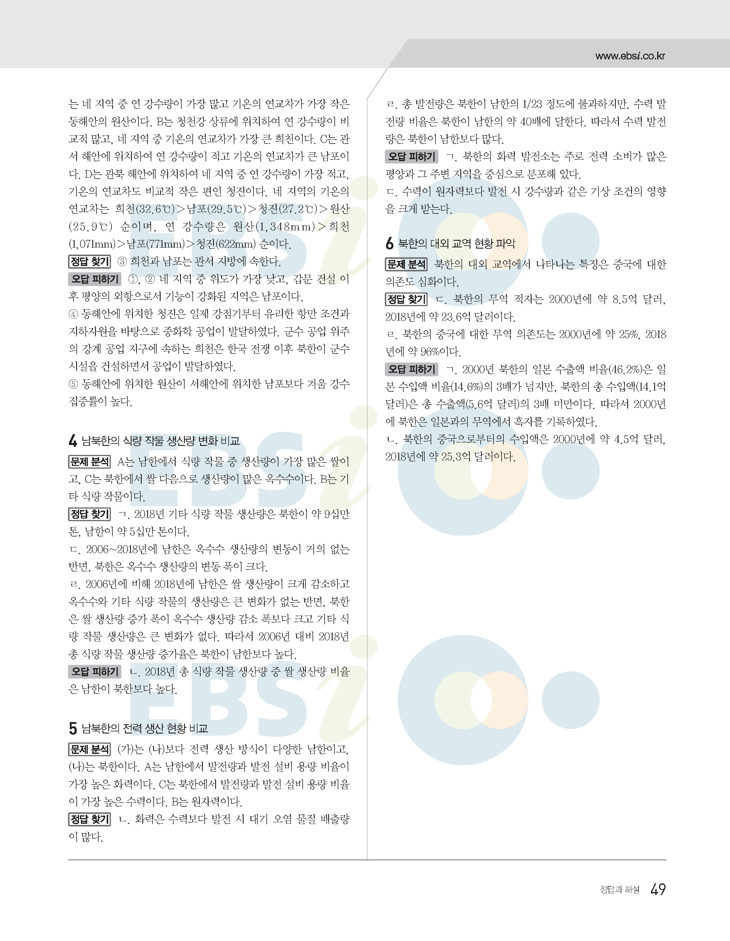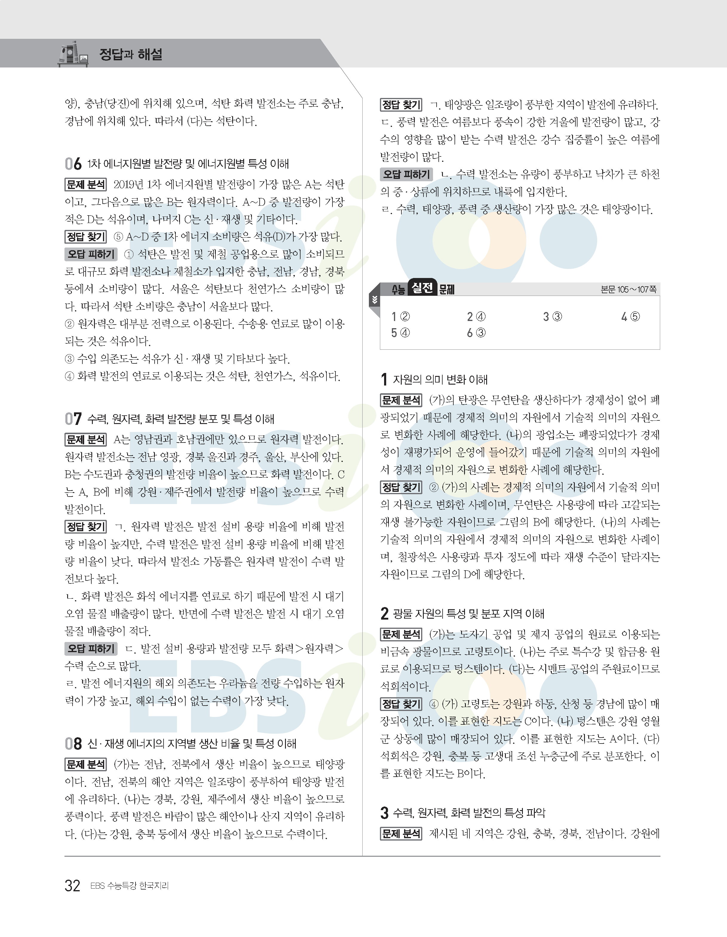 2022수능특강 한국지리 사진답지 빠른답지 모바일최적화