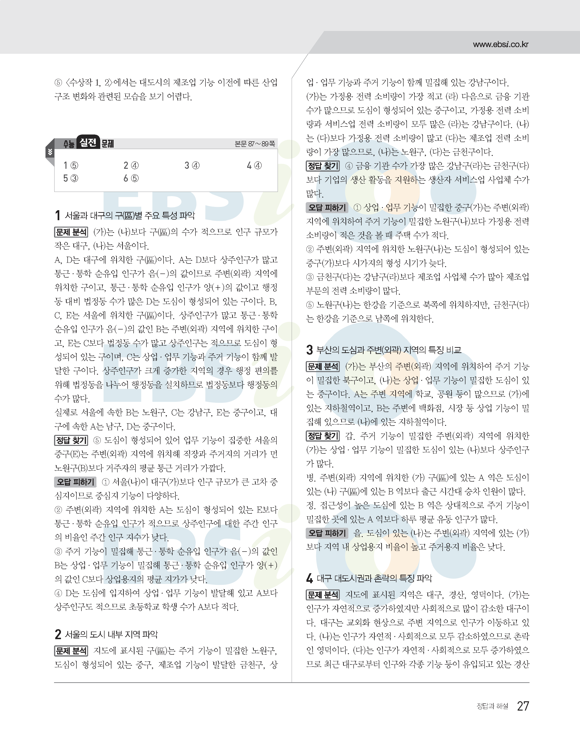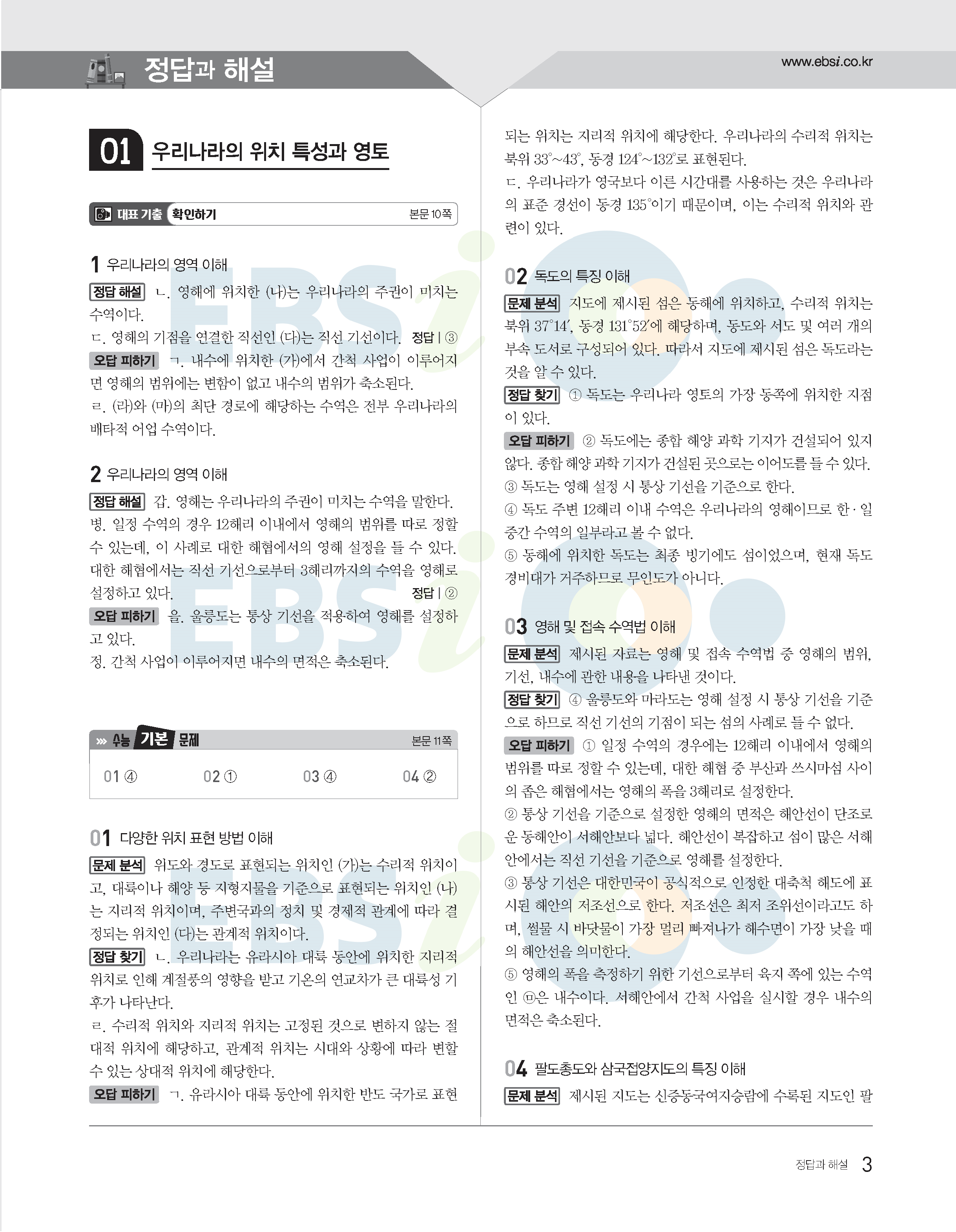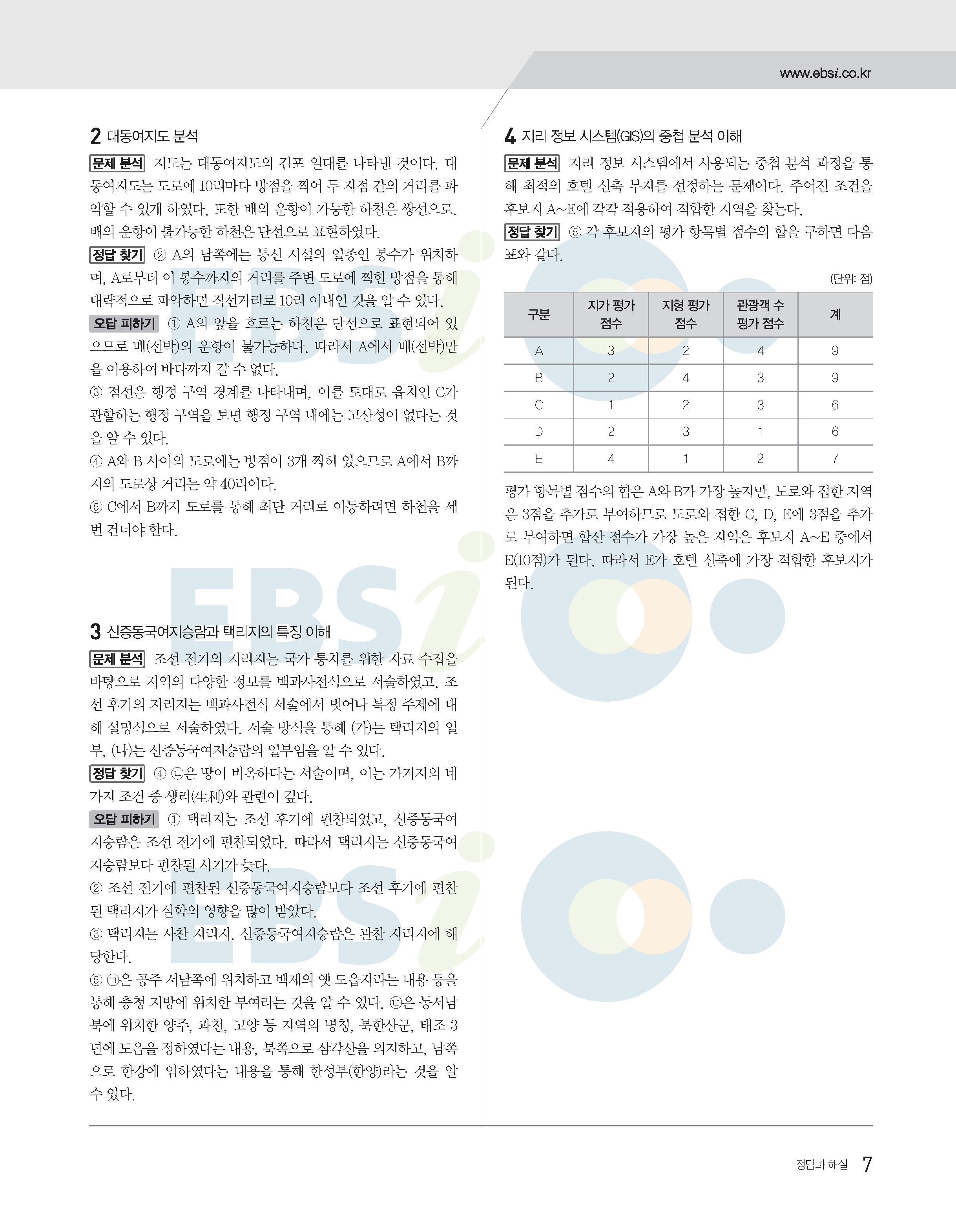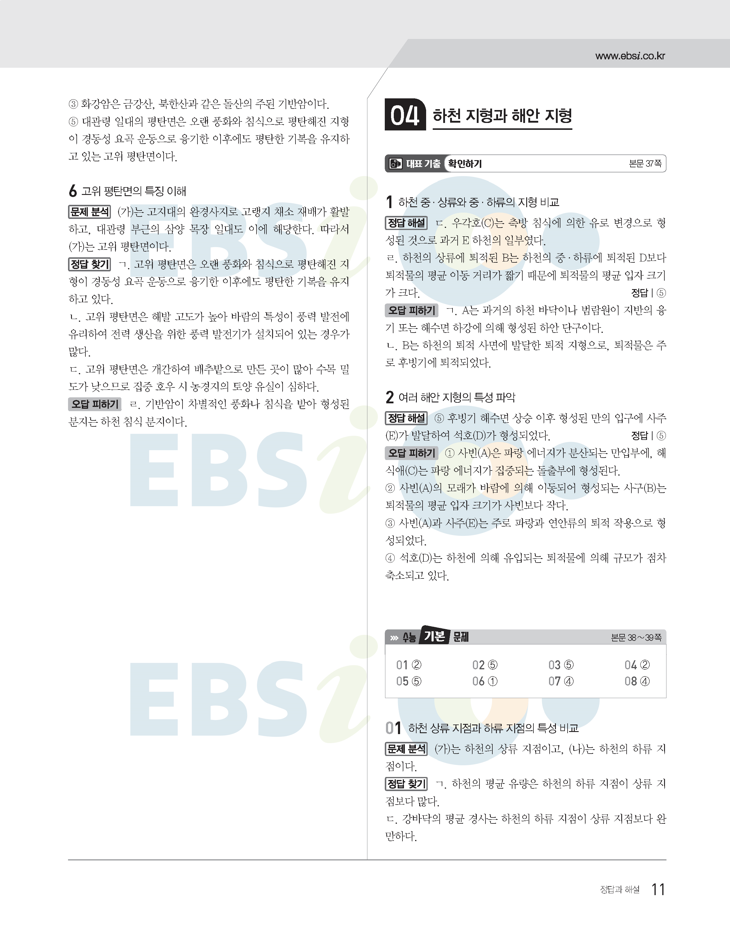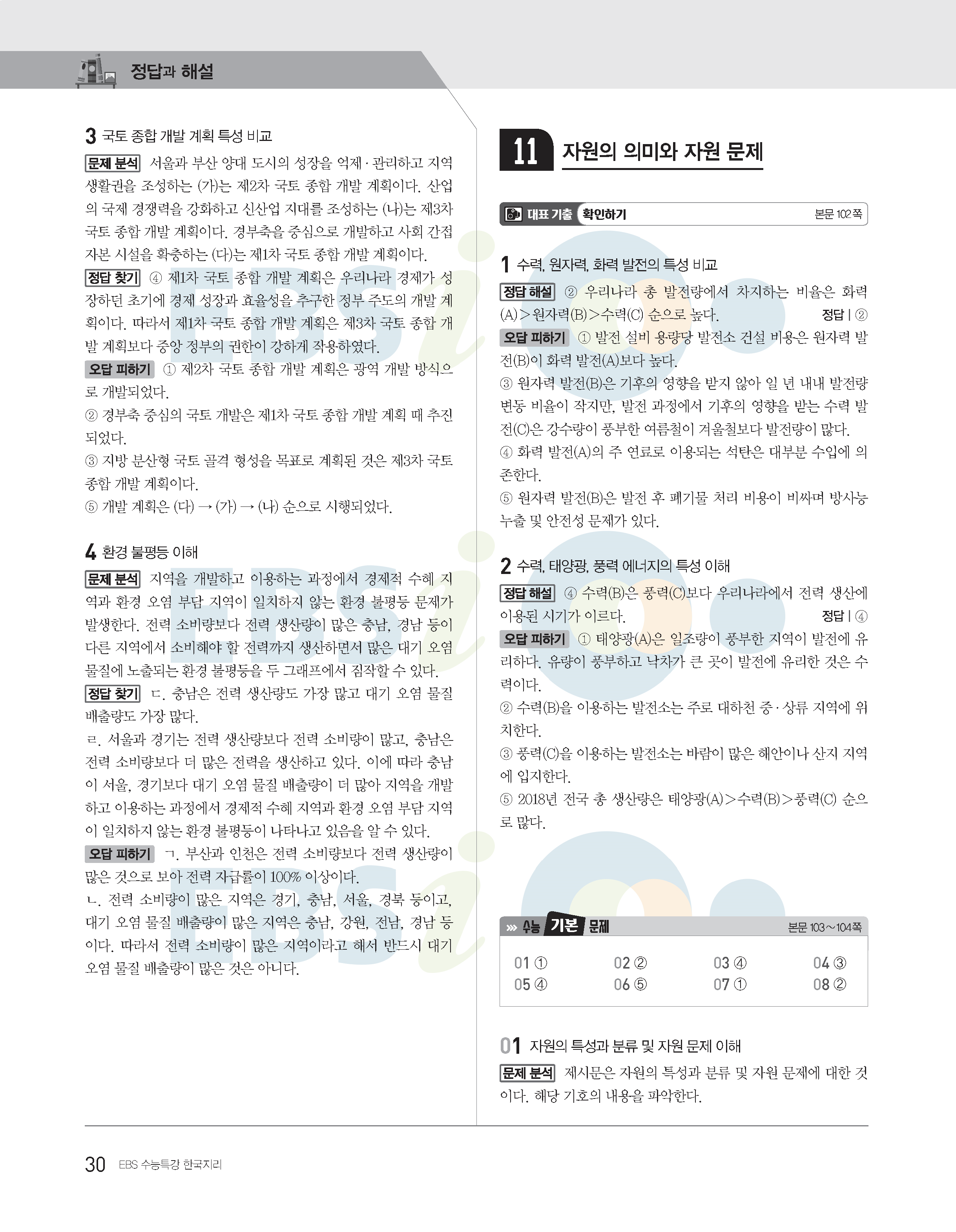 2022수능특강 한국지리 사진답지 빠른답지 모바일최적화