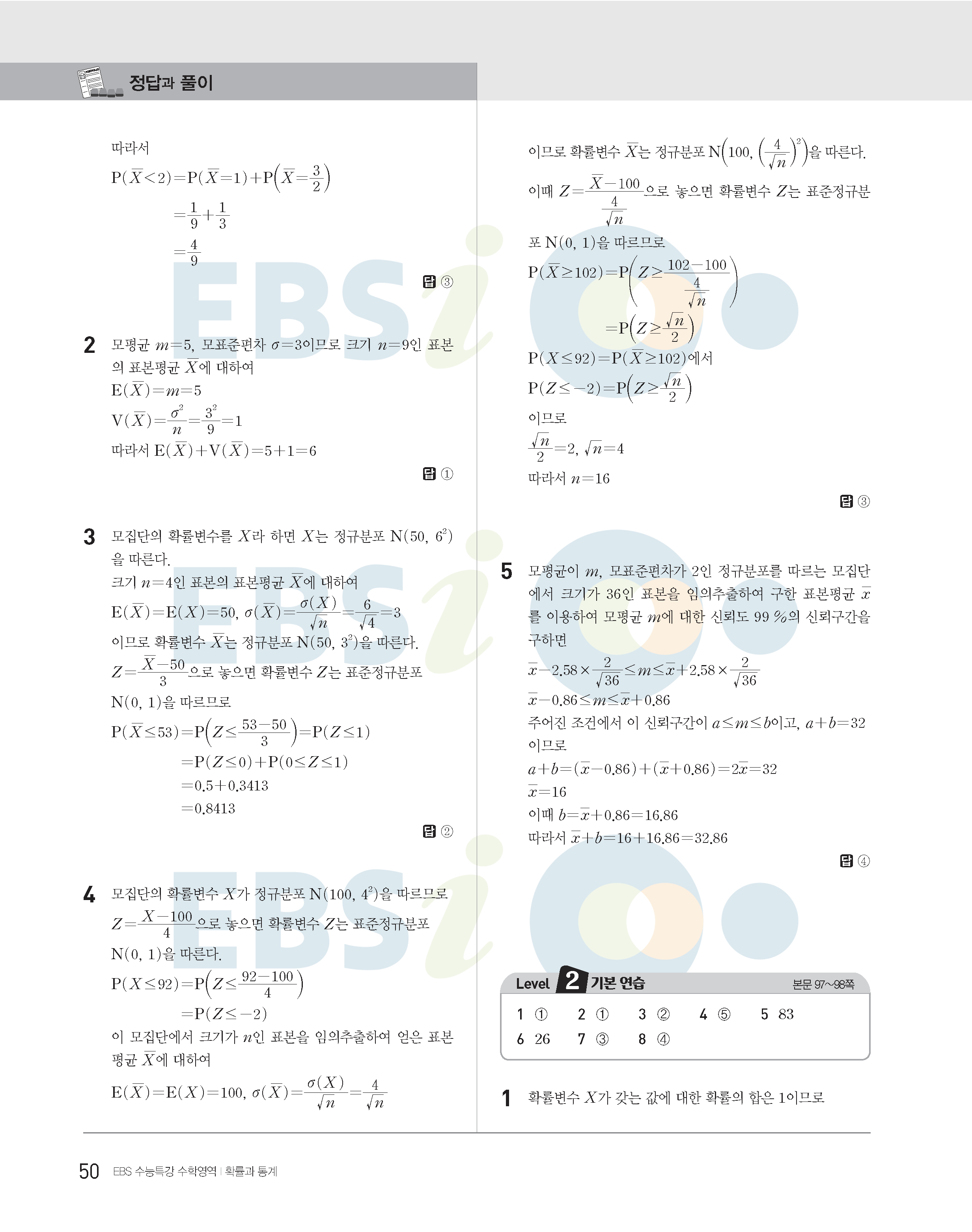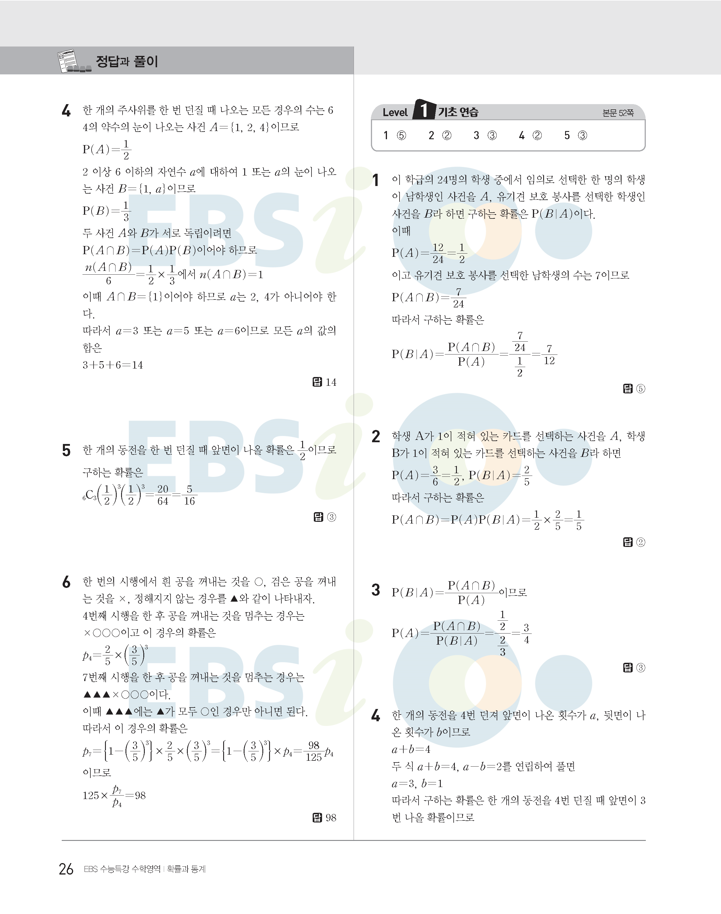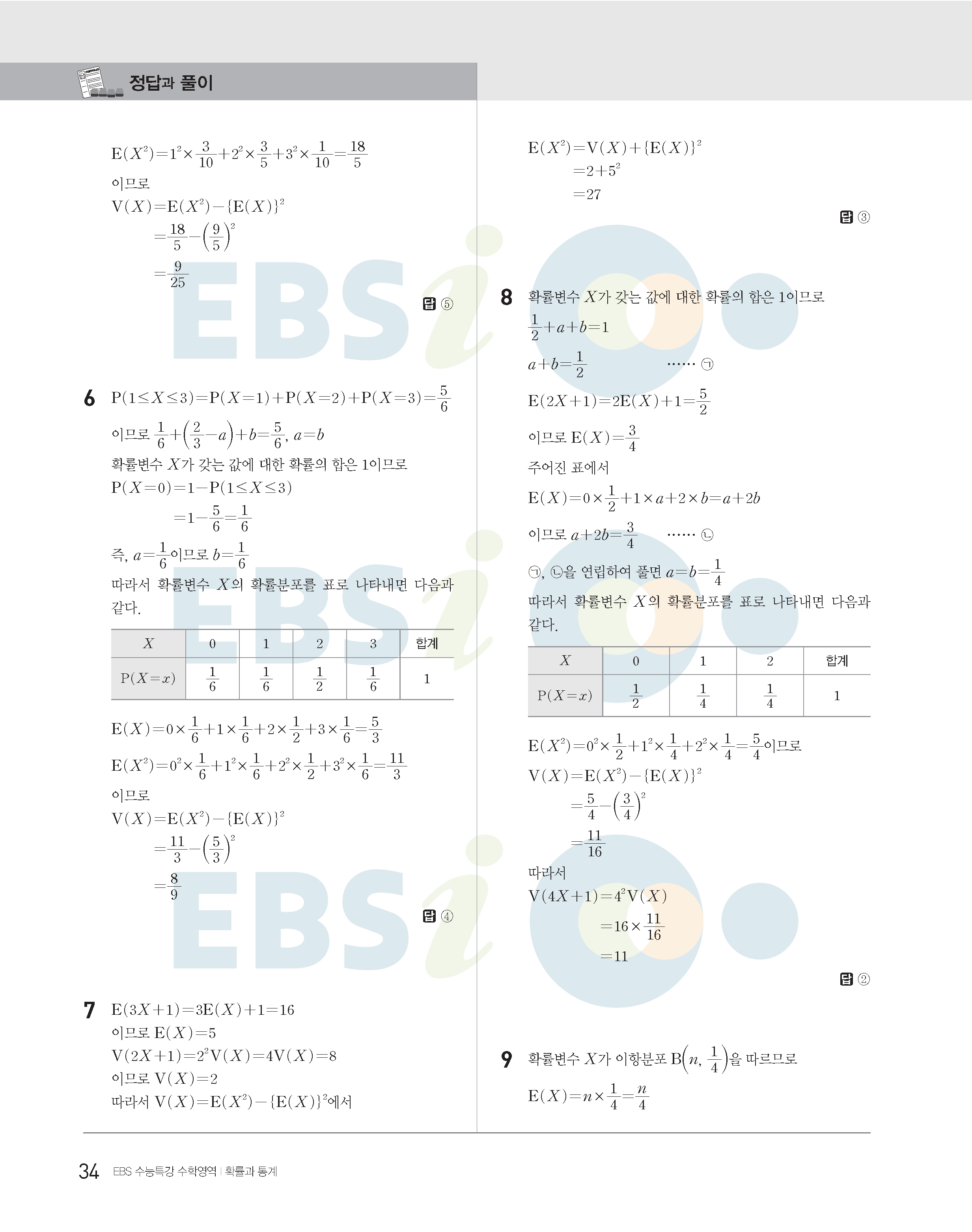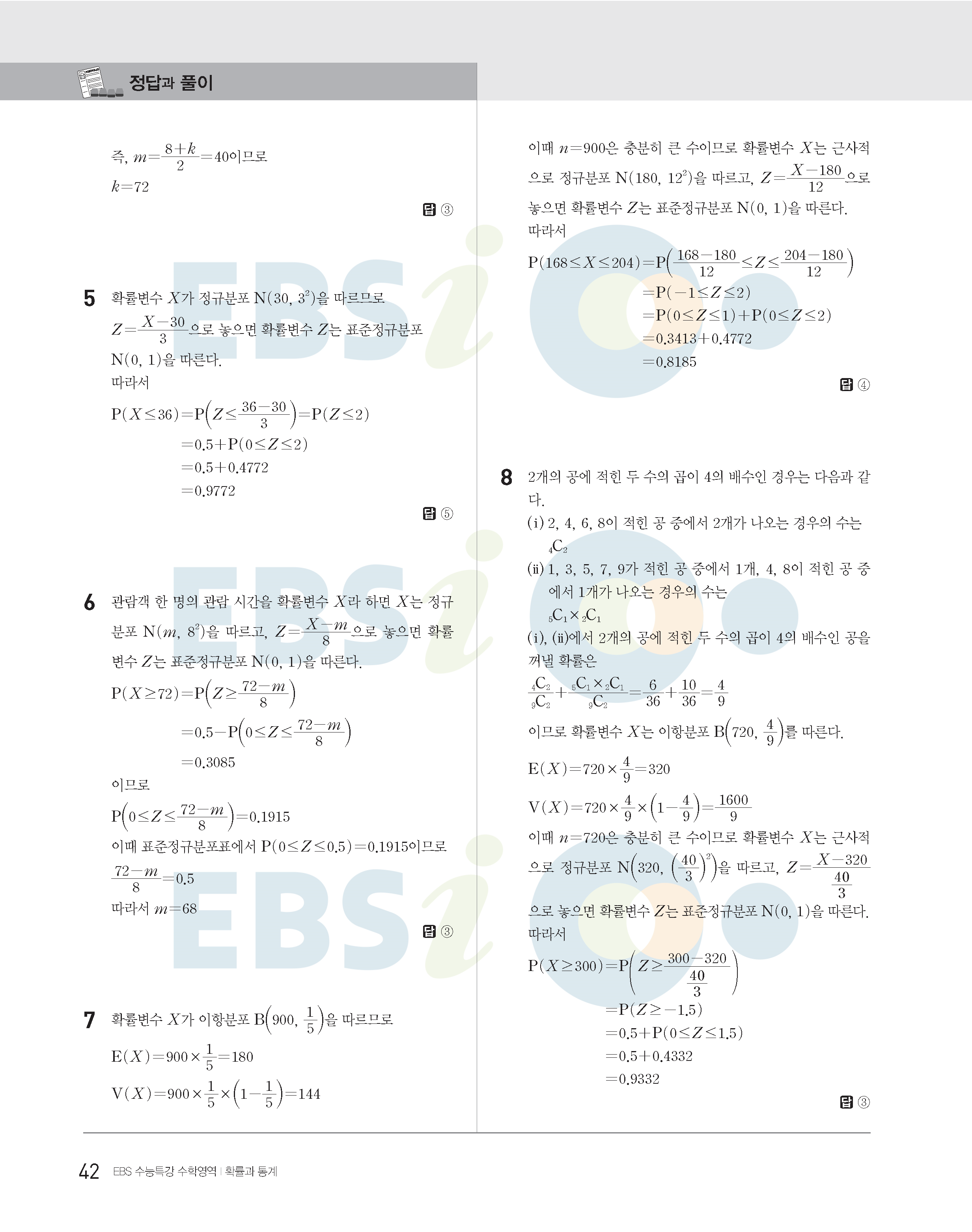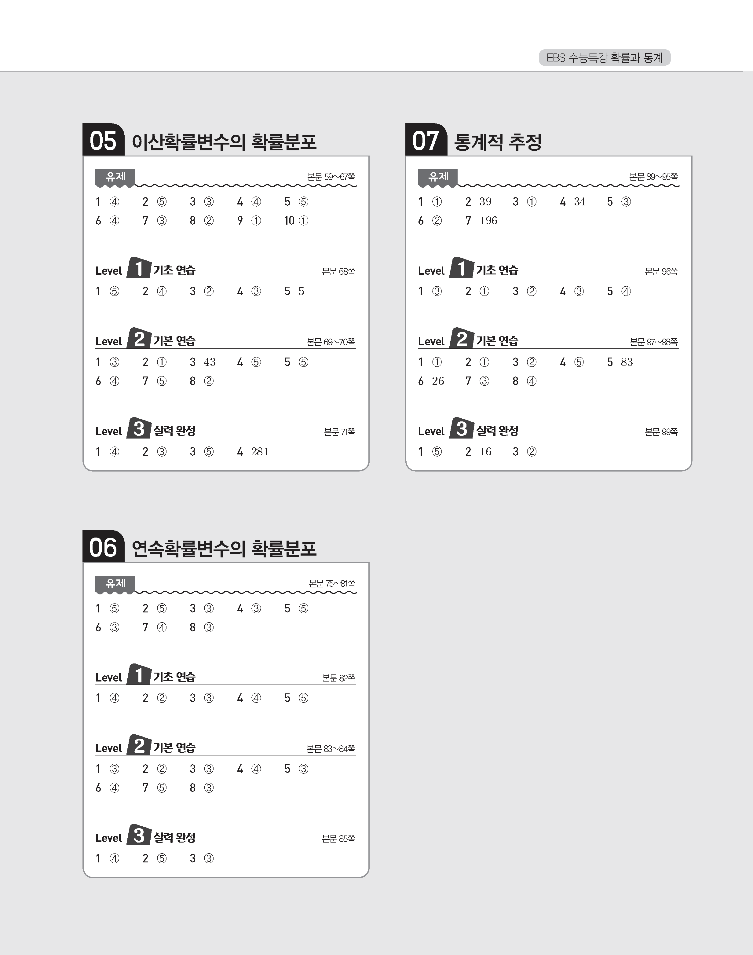 2022수능특강 확률과통계 사진답지 빠른답지 모바일최적화