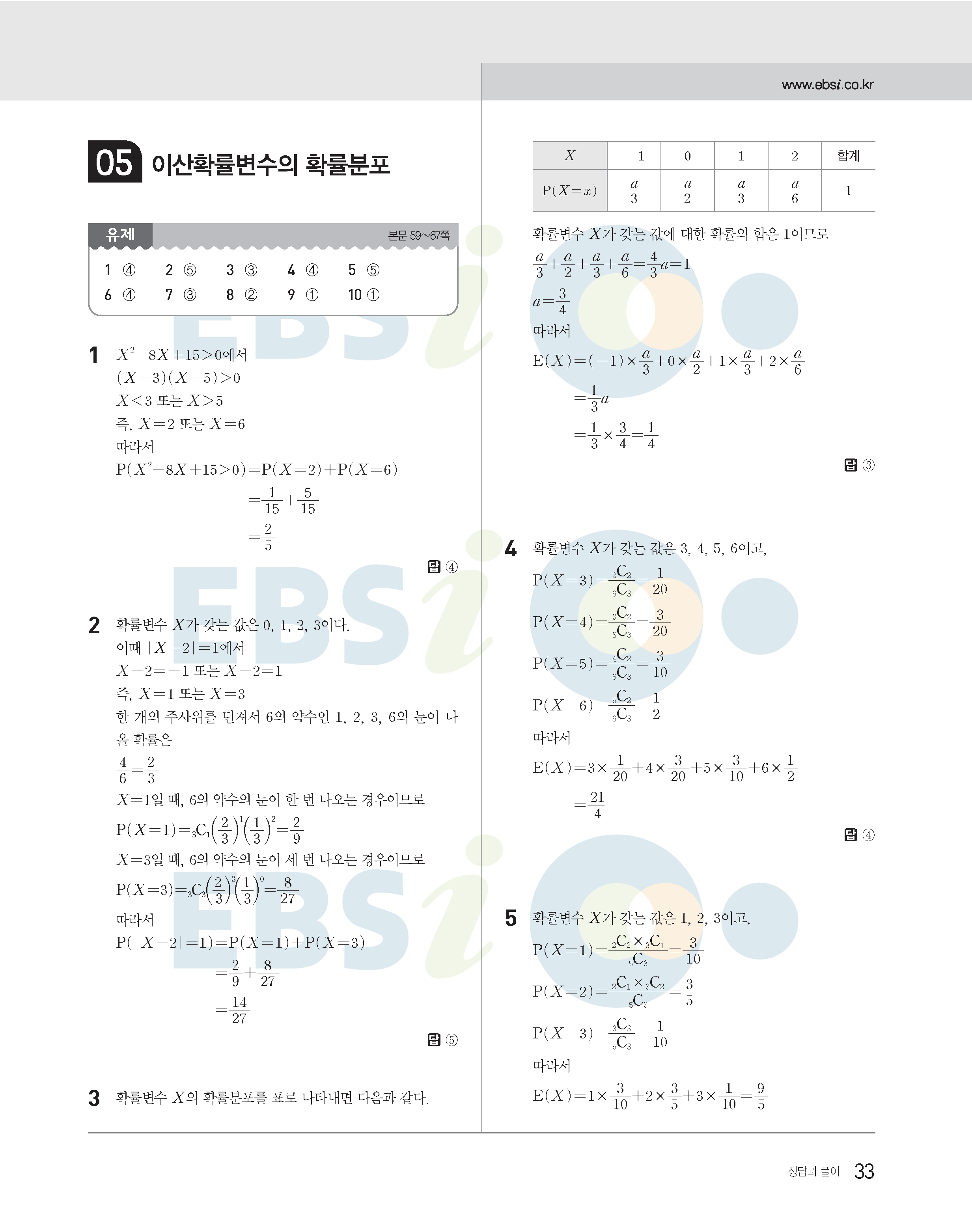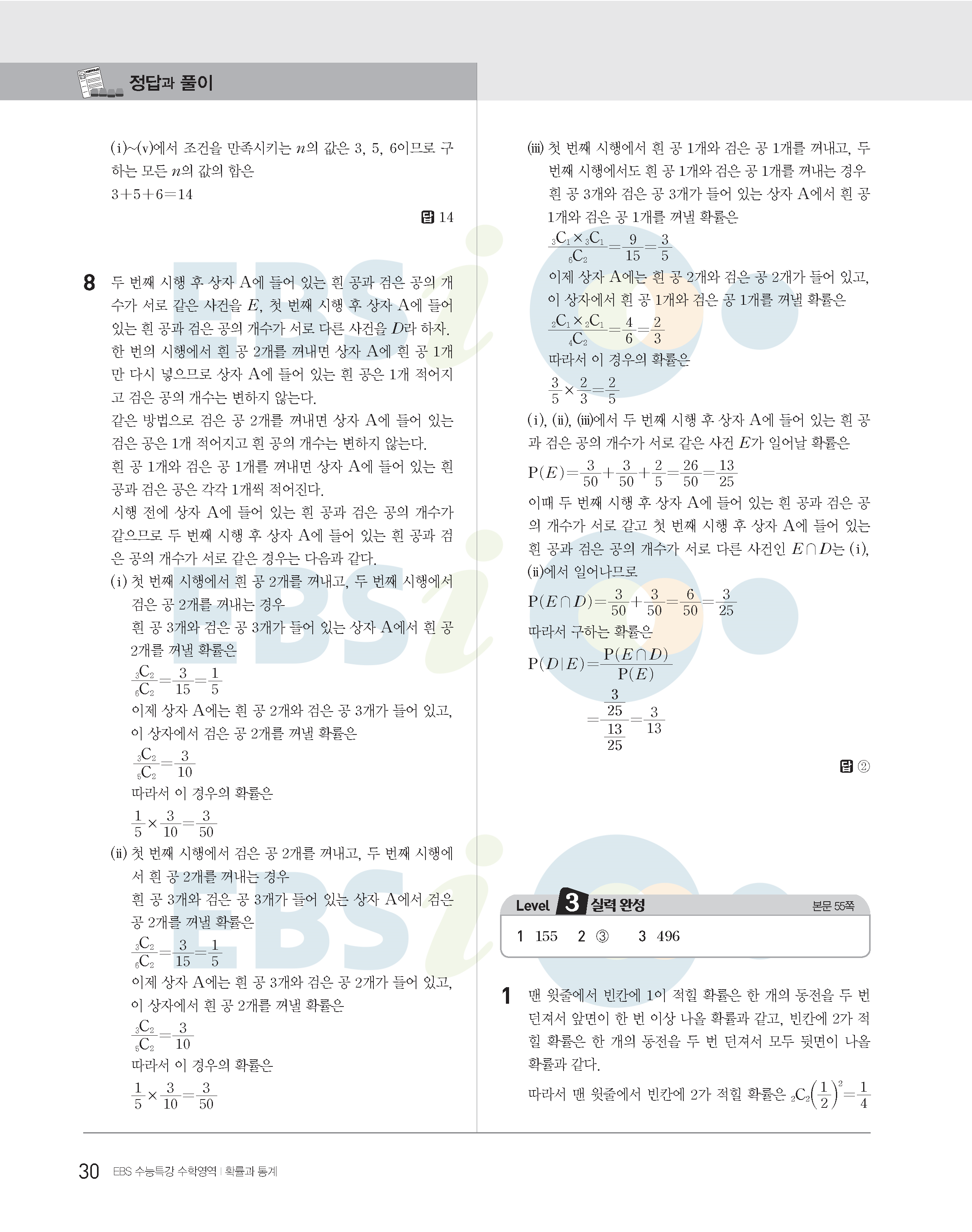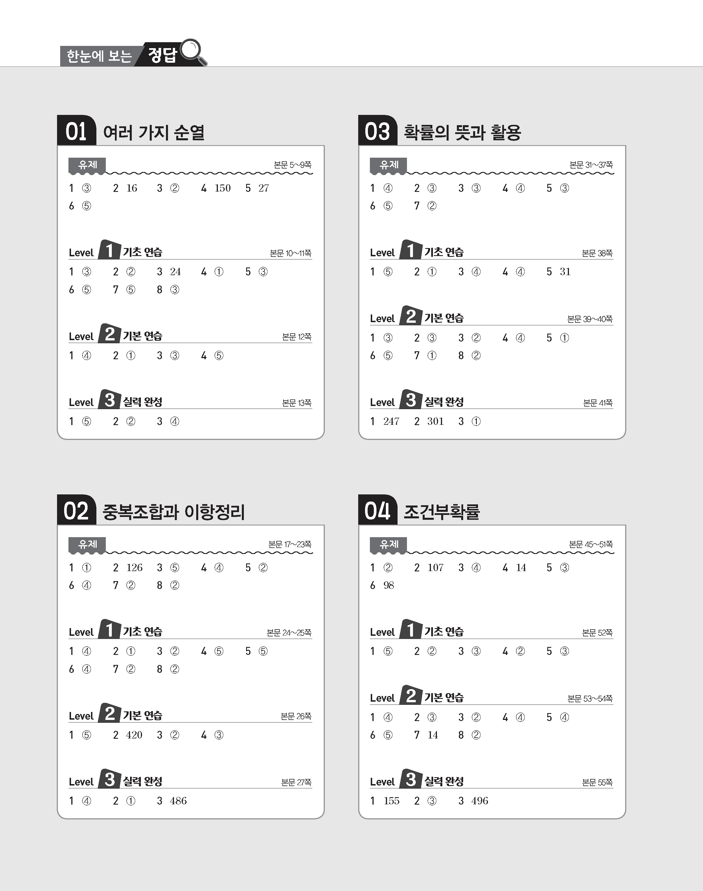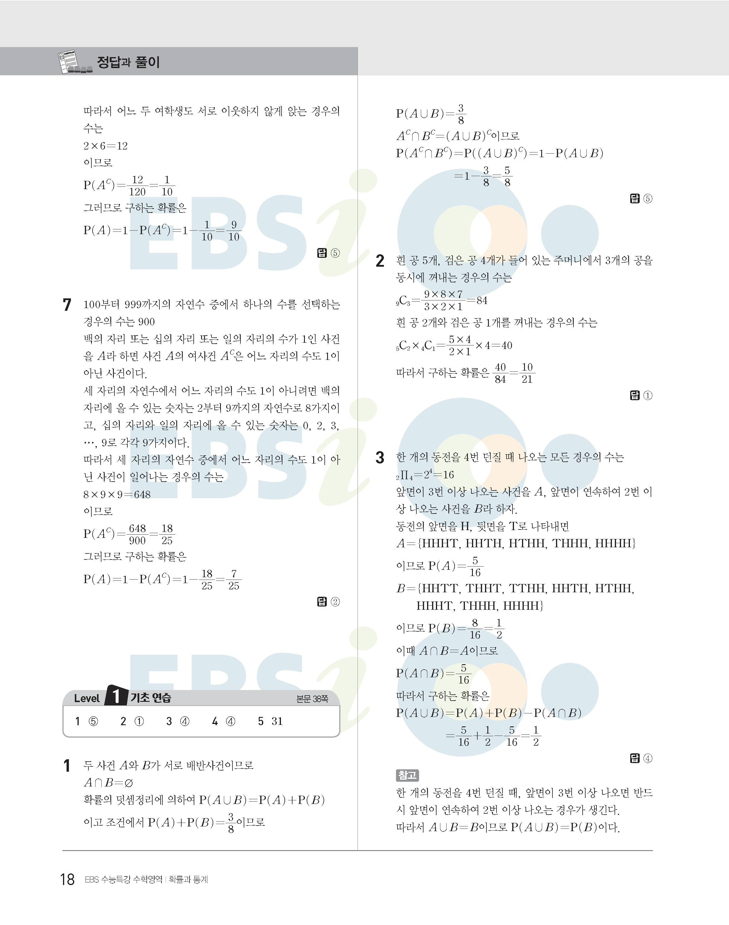 2022수능특강 확률과통계 사진답지 빠른답지 모바일최적화
