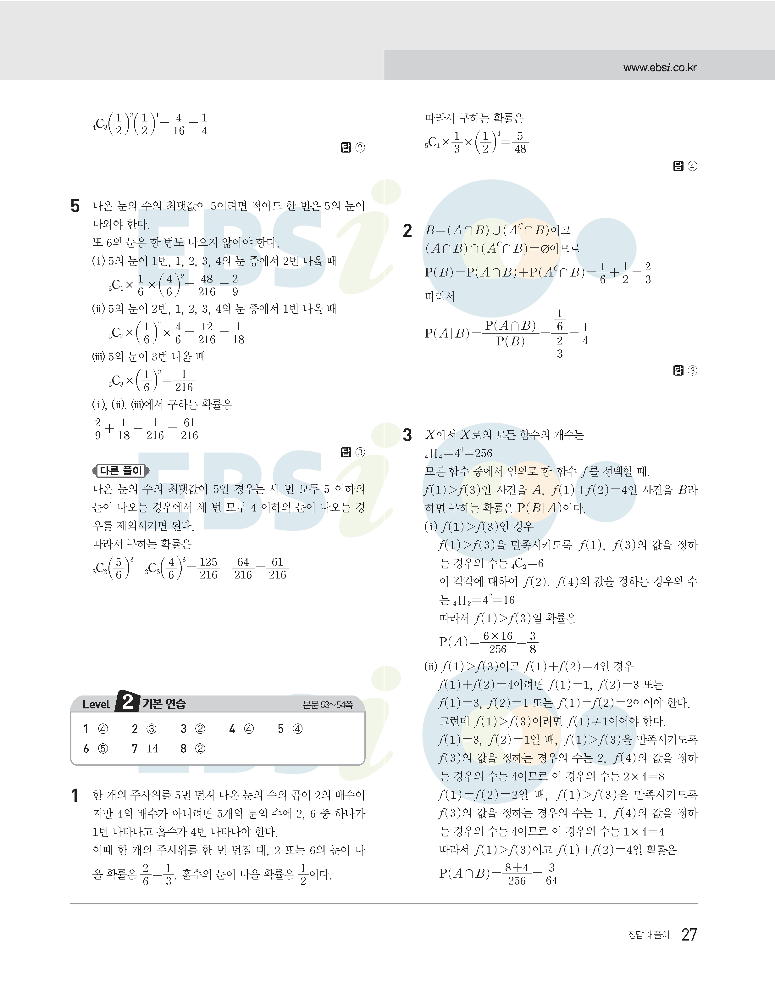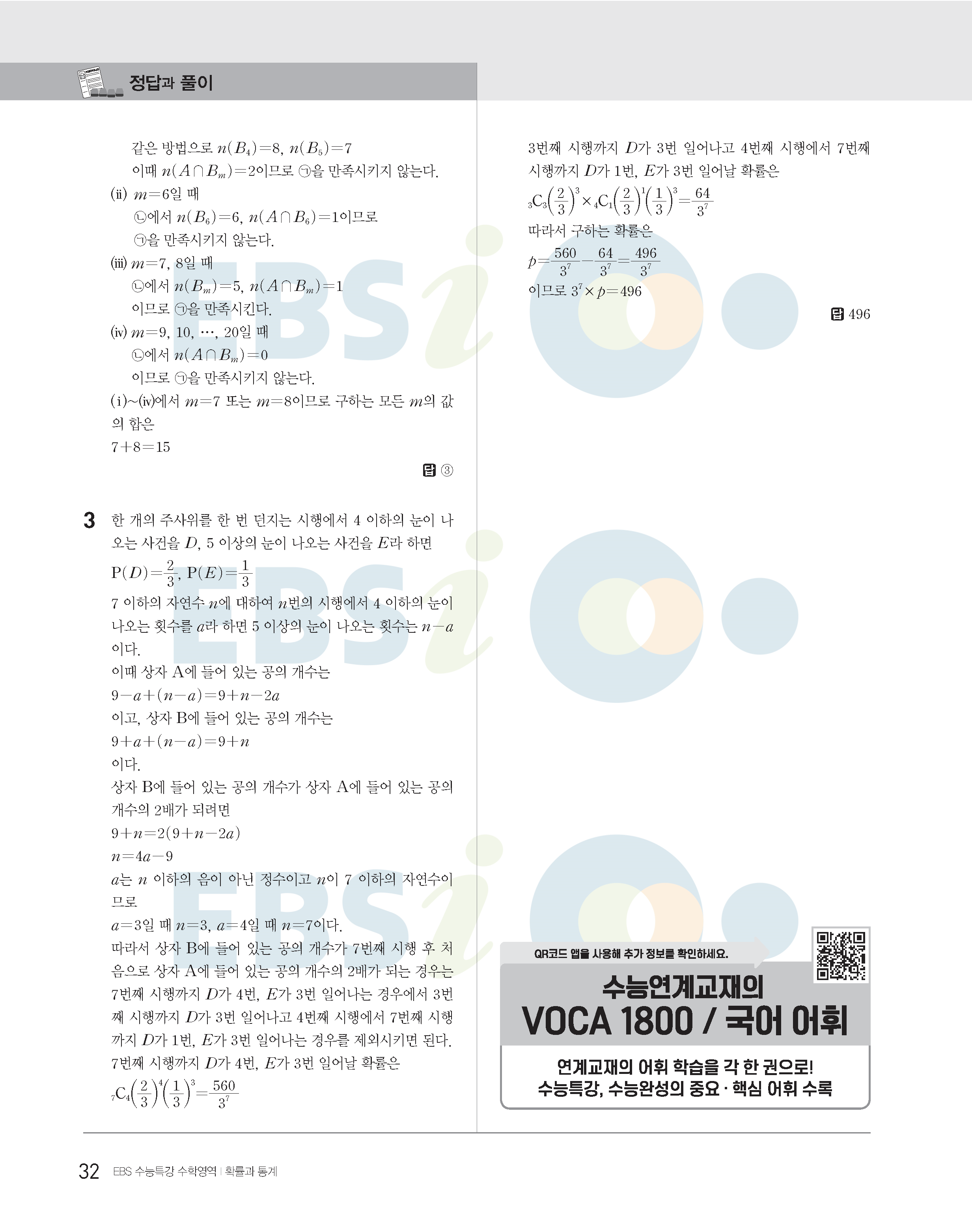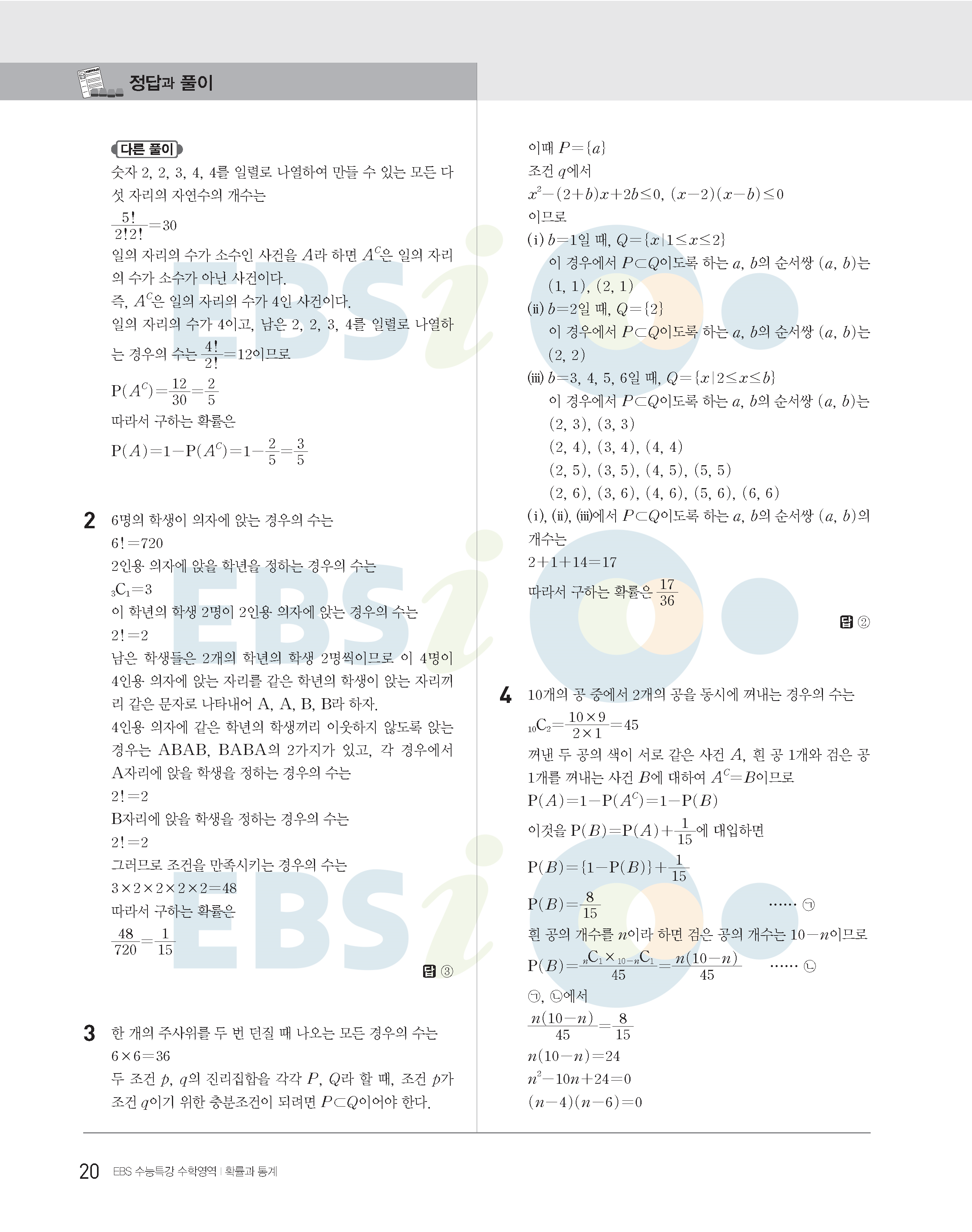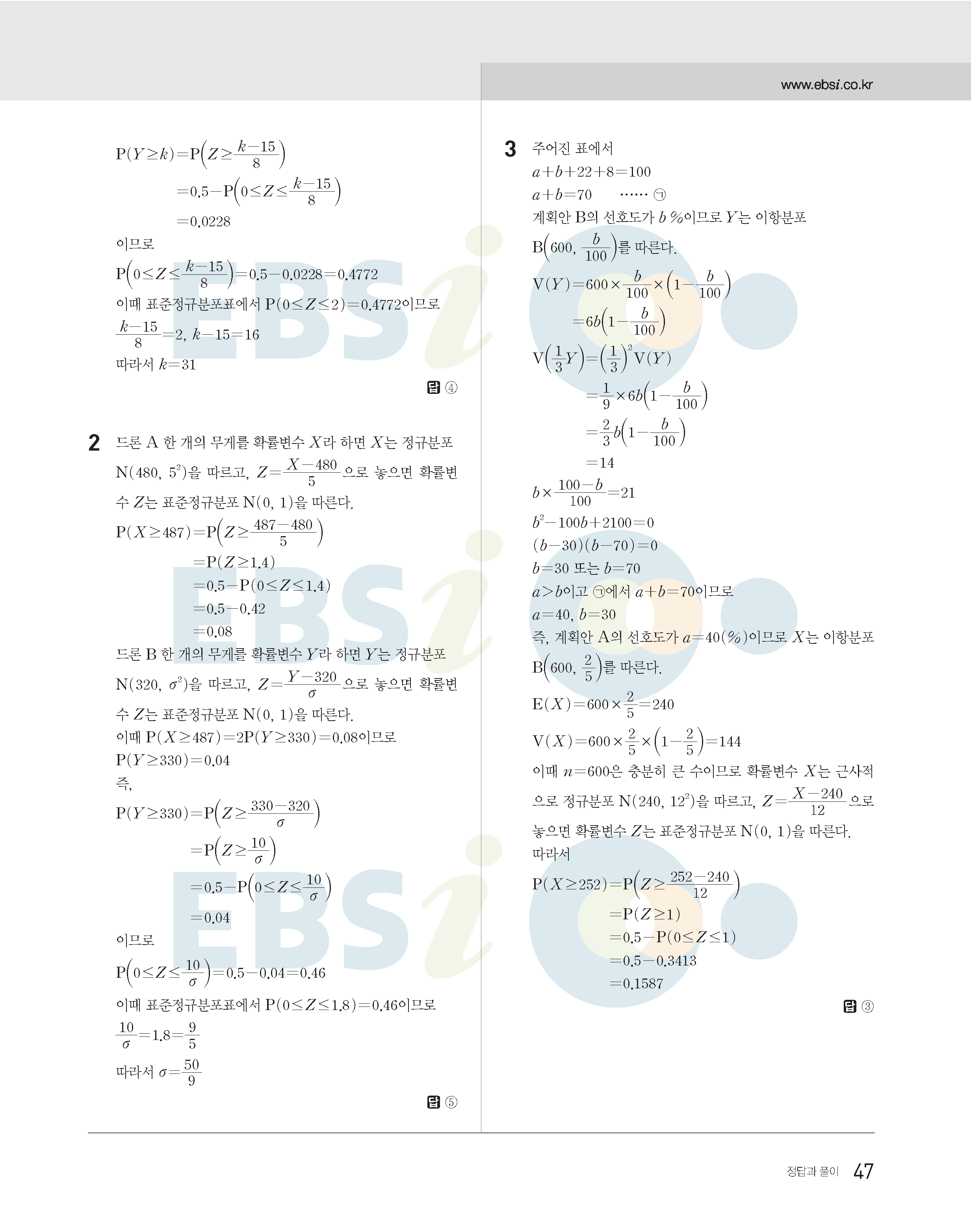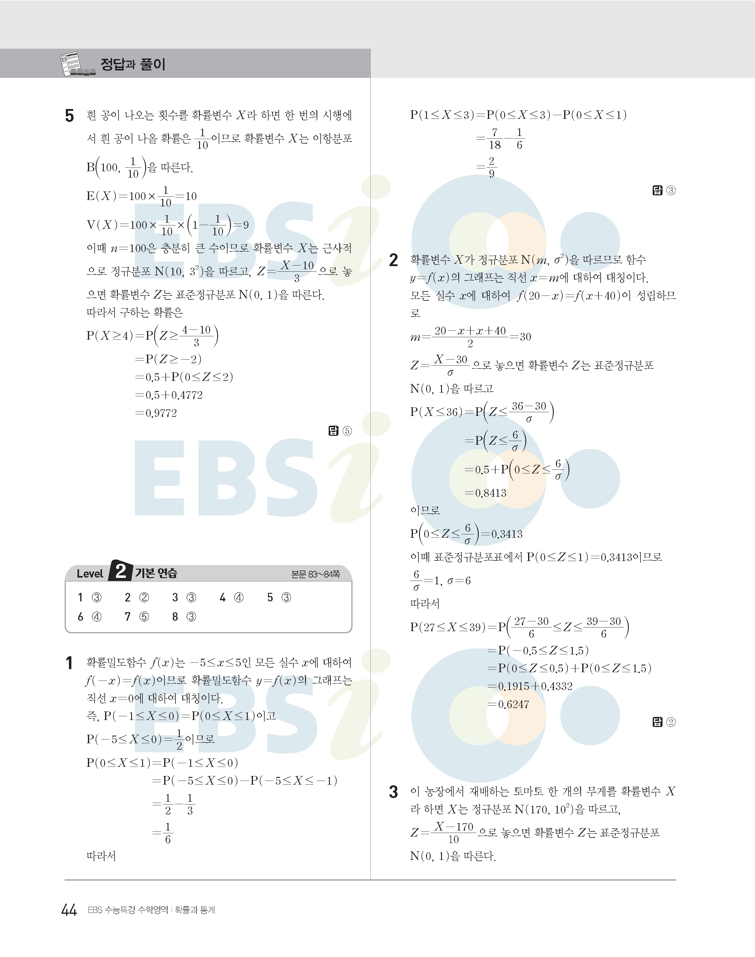 2022수능특강 확률과통계 사진답지 빠른답지 모바일최적화