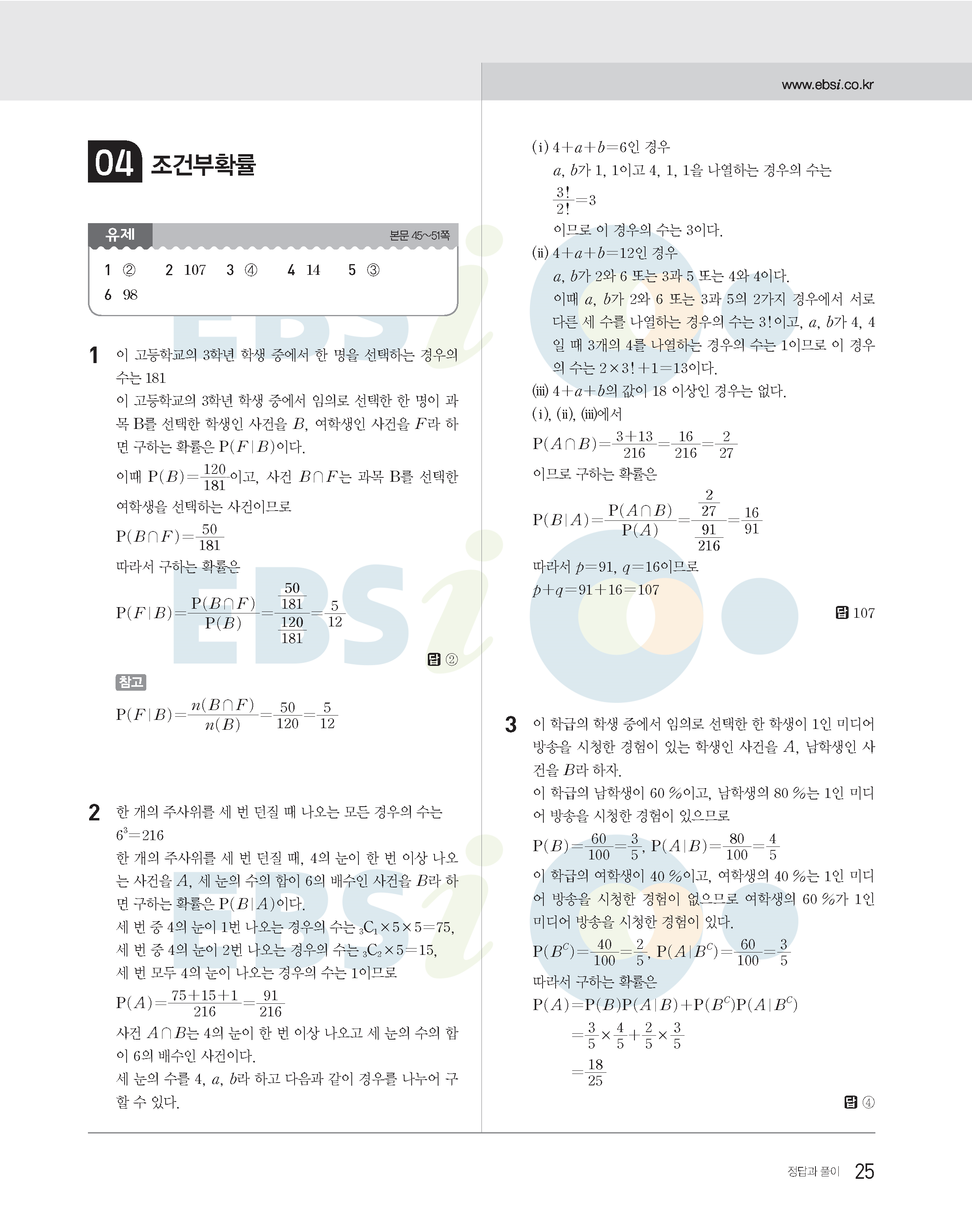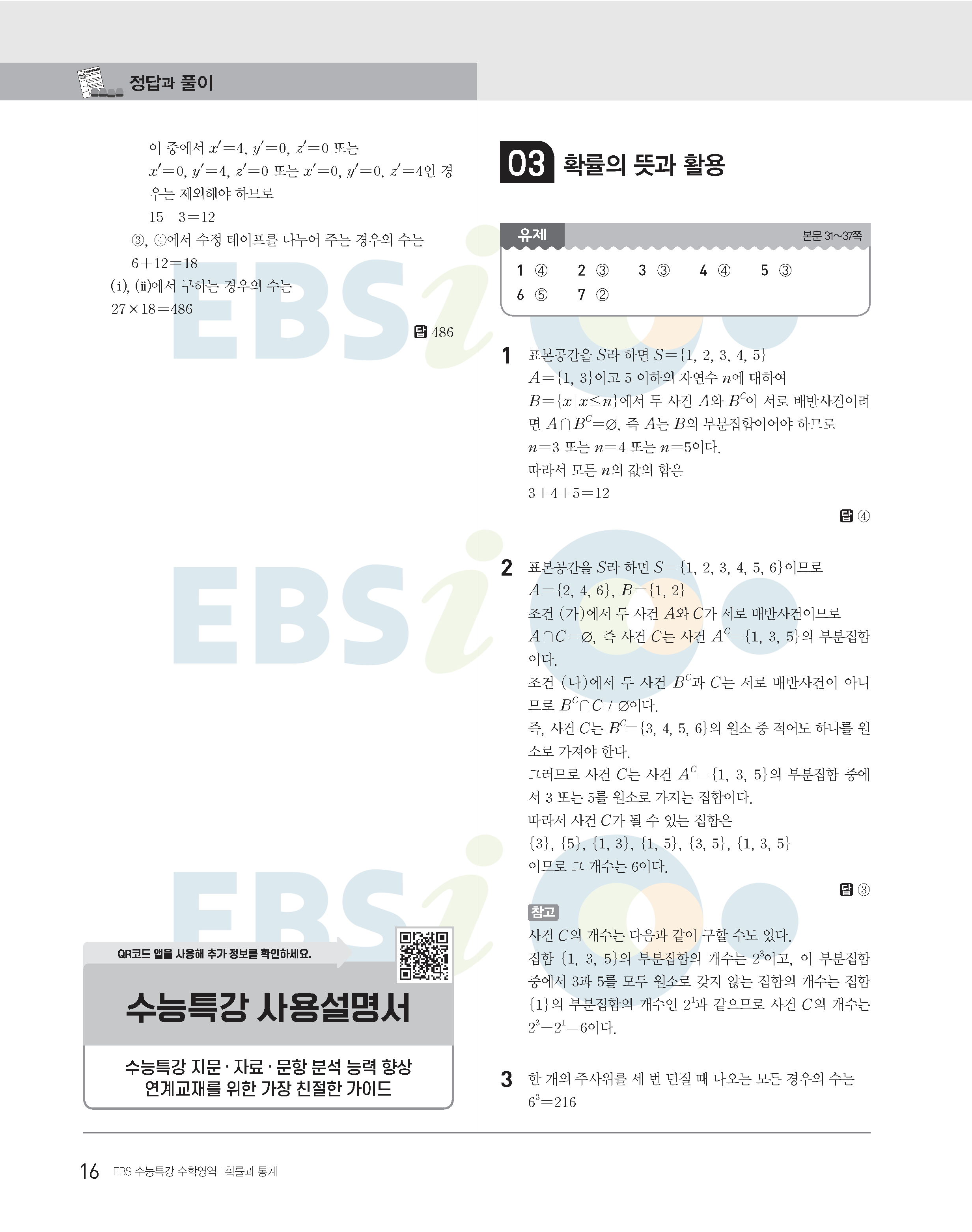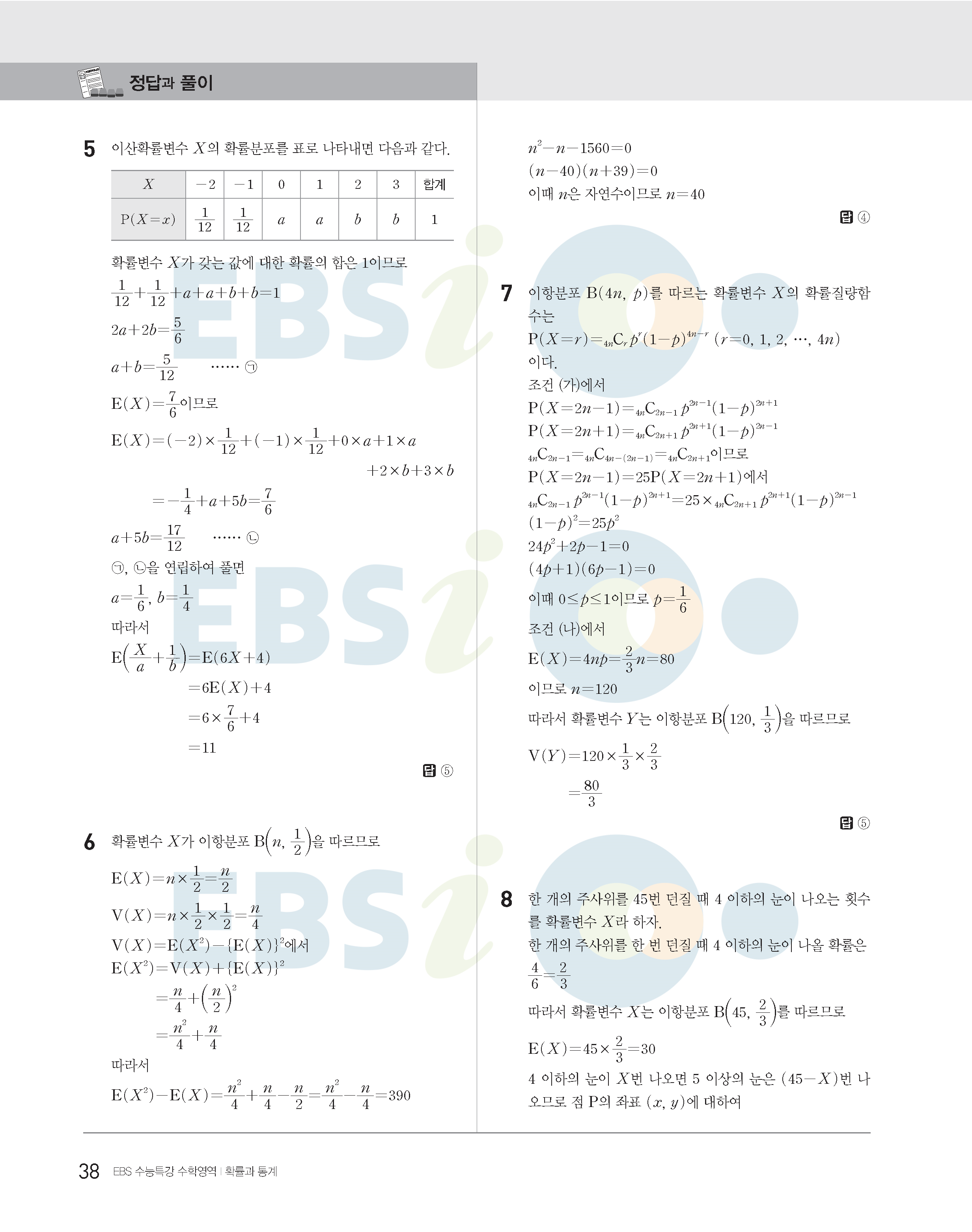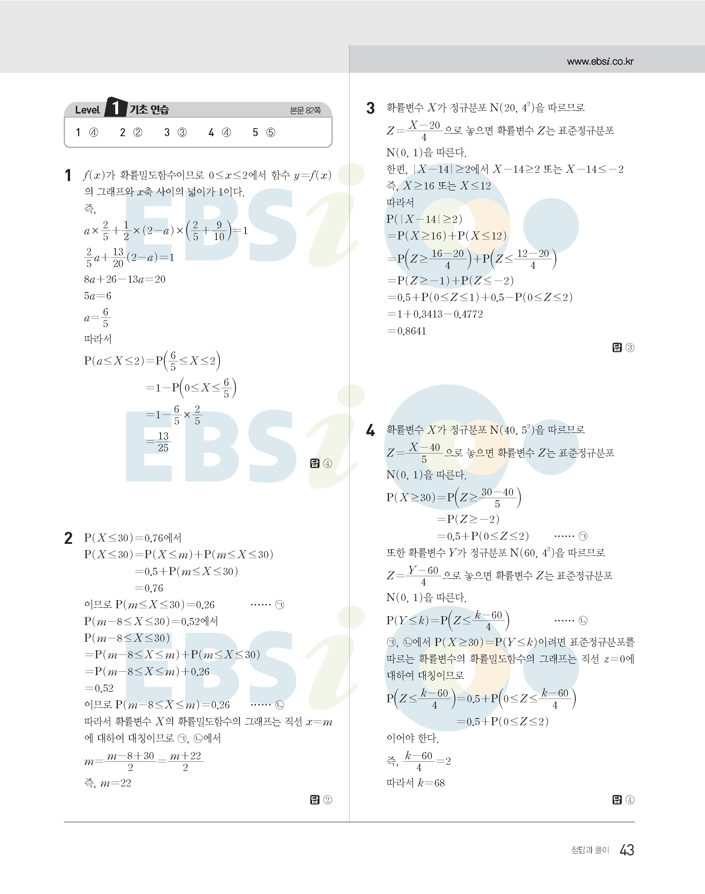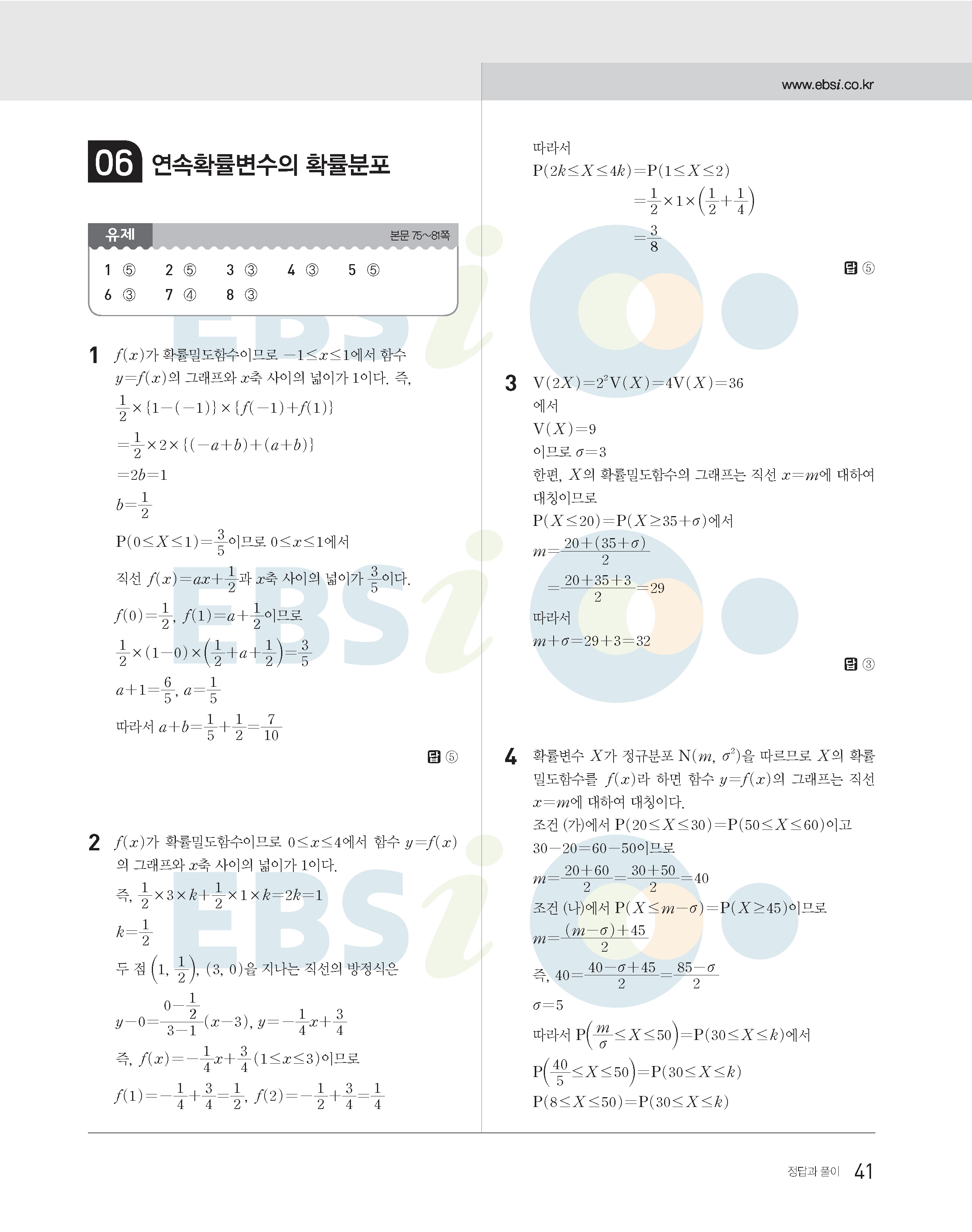 2022수능특강 확률과통계 사진답지 빠른답지 모바일최적화