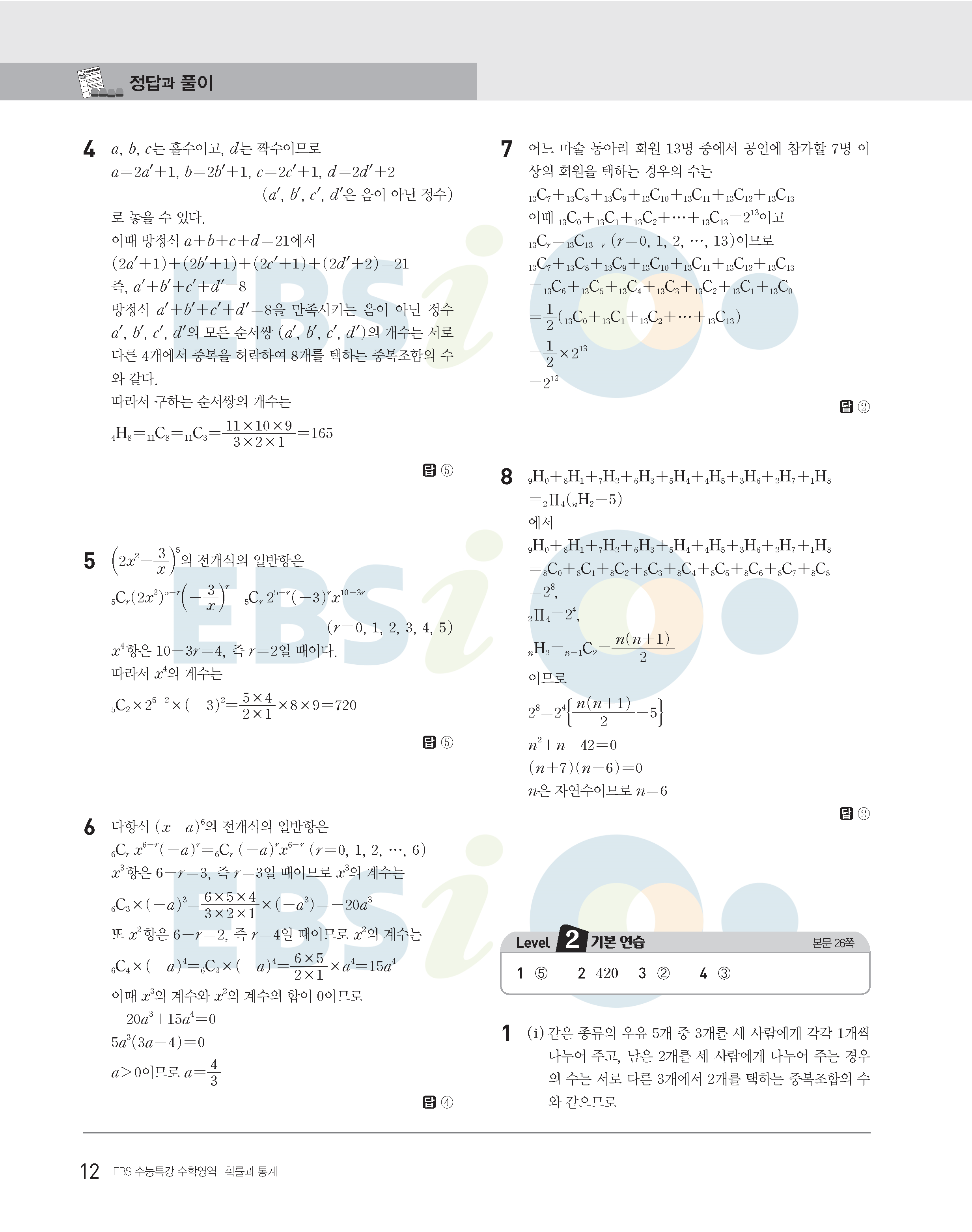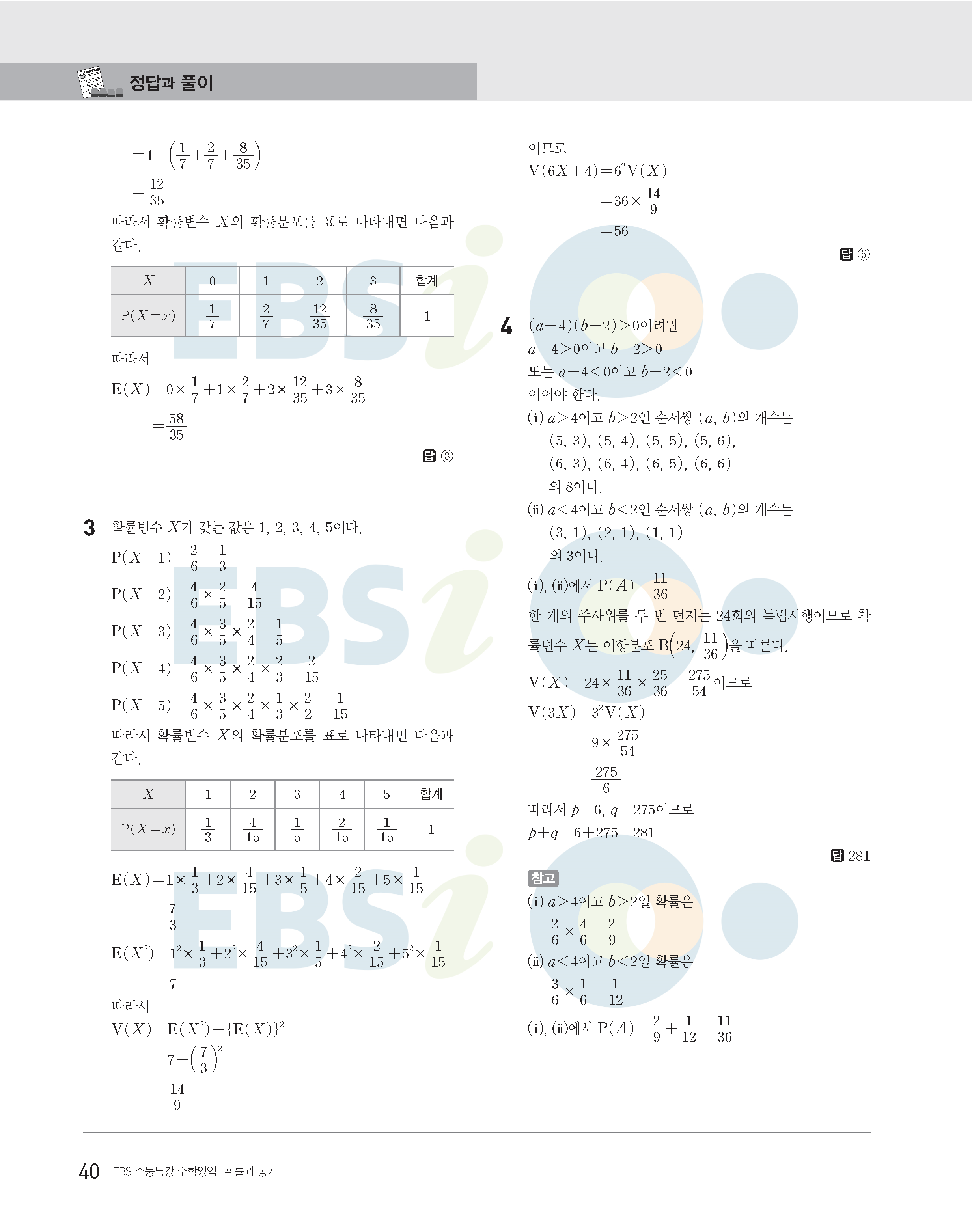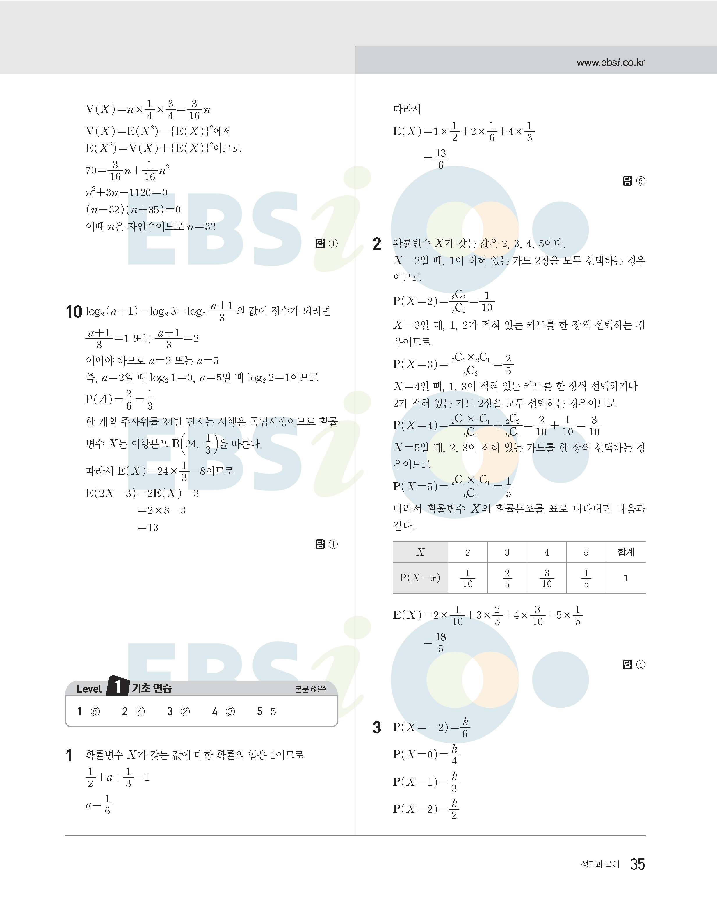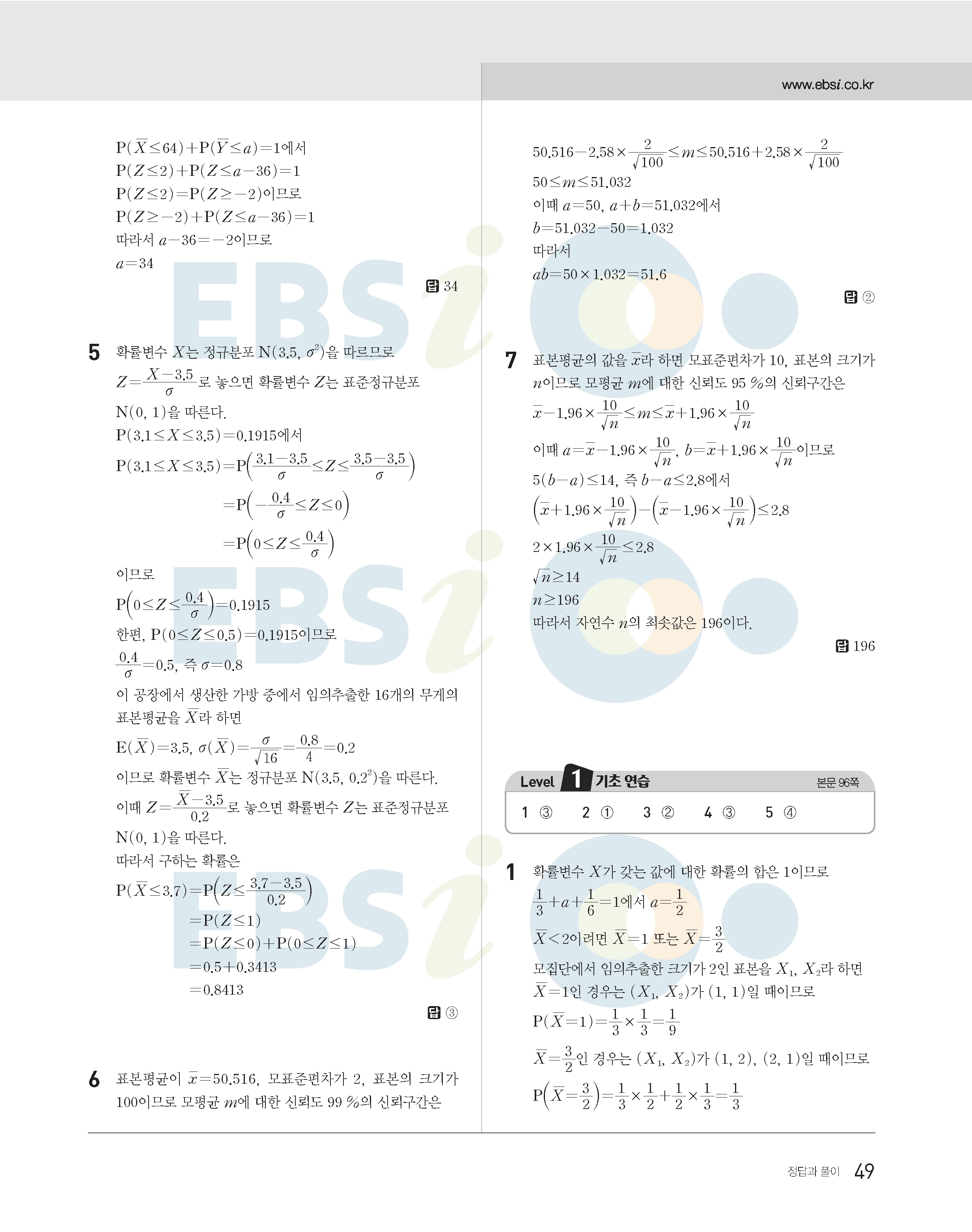 2022수능특강 확률과통계 사진답지 빠른답지 모바일최적화