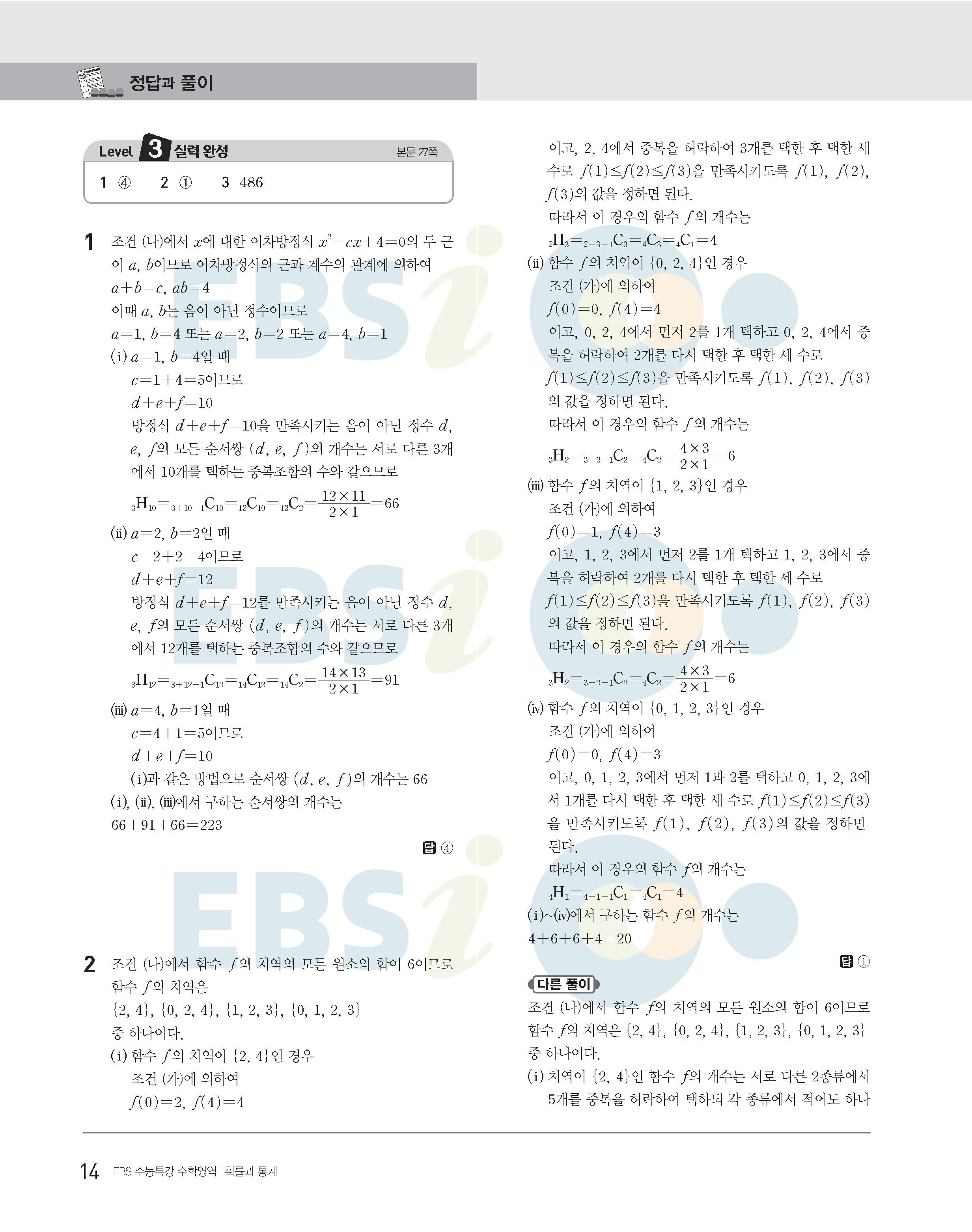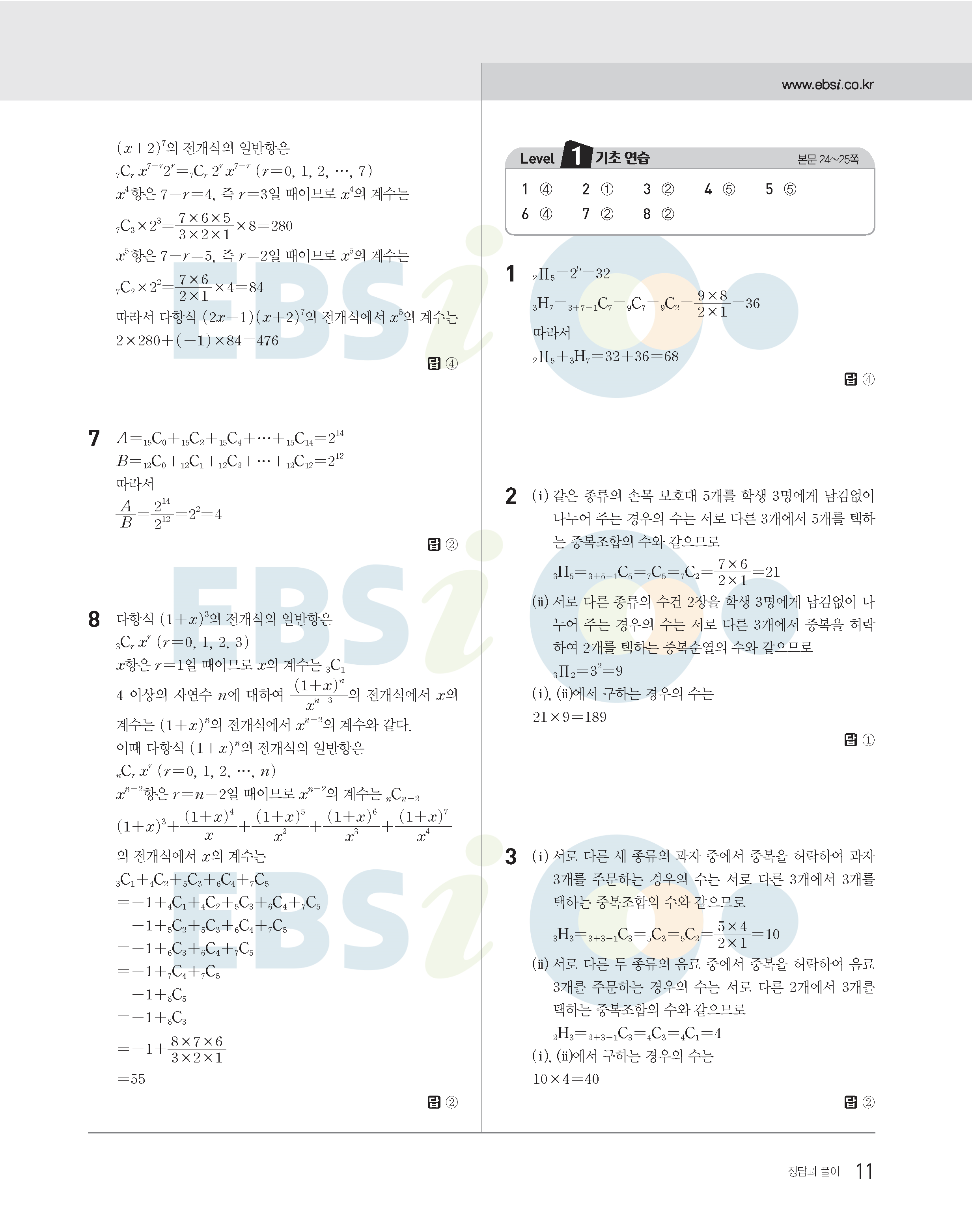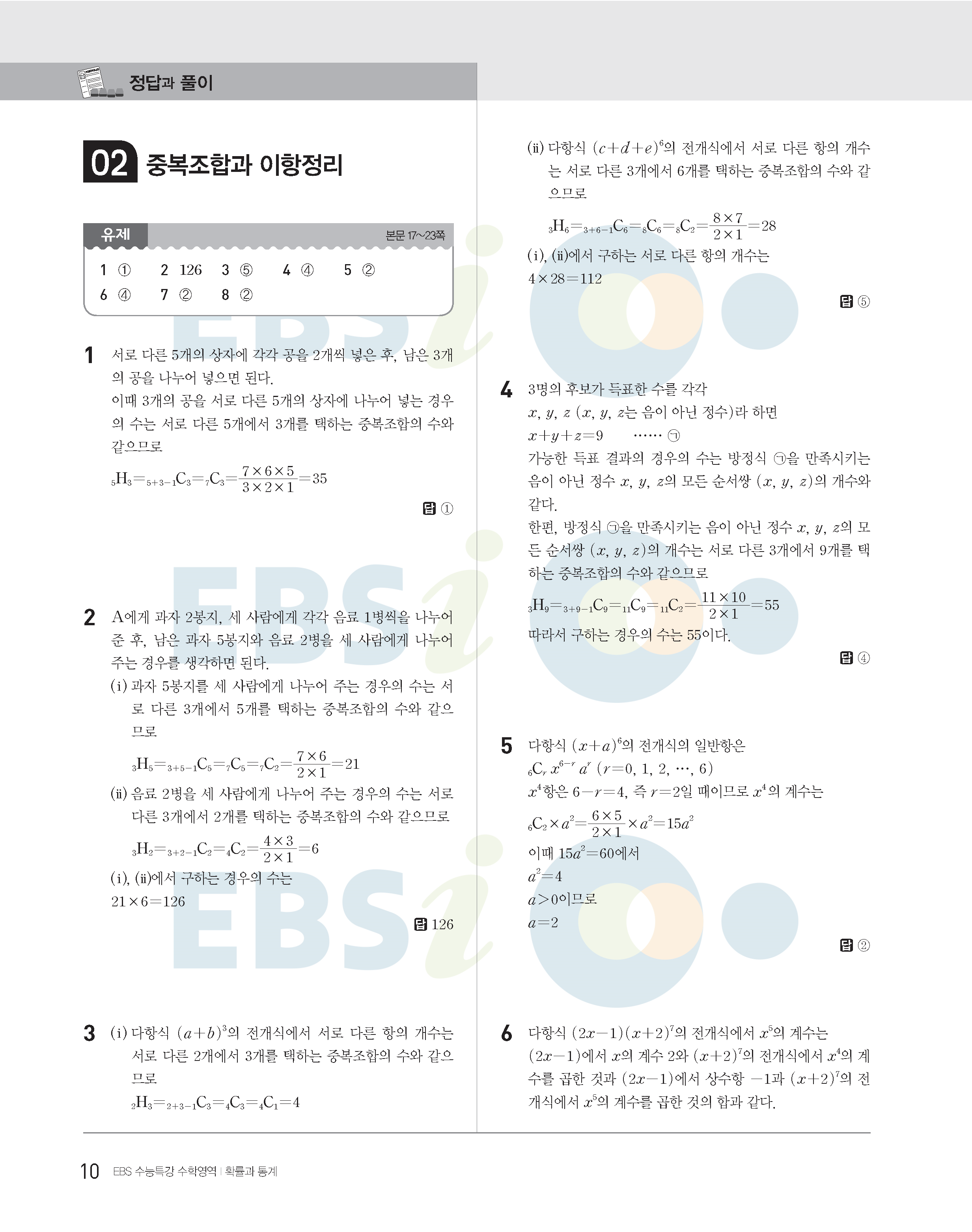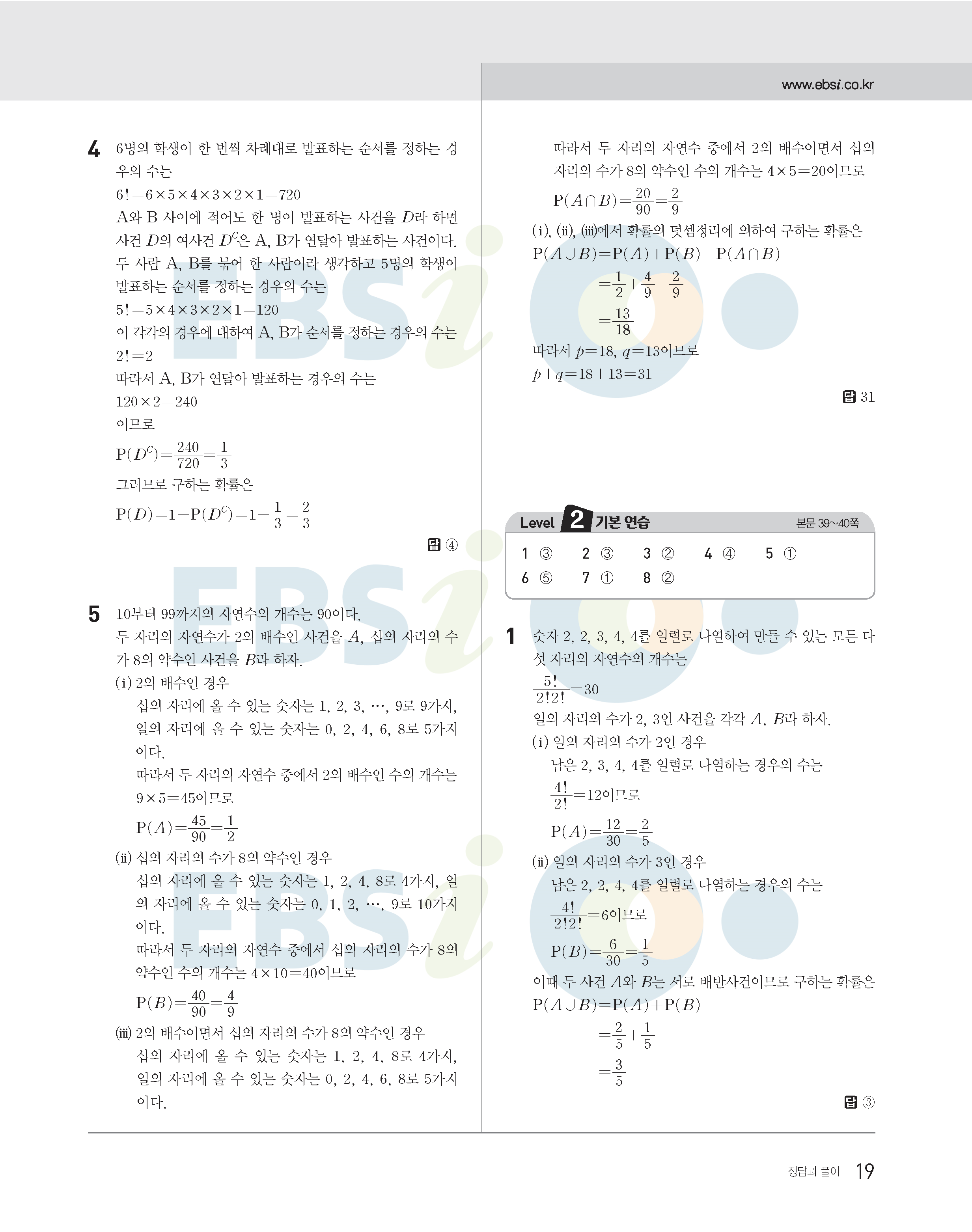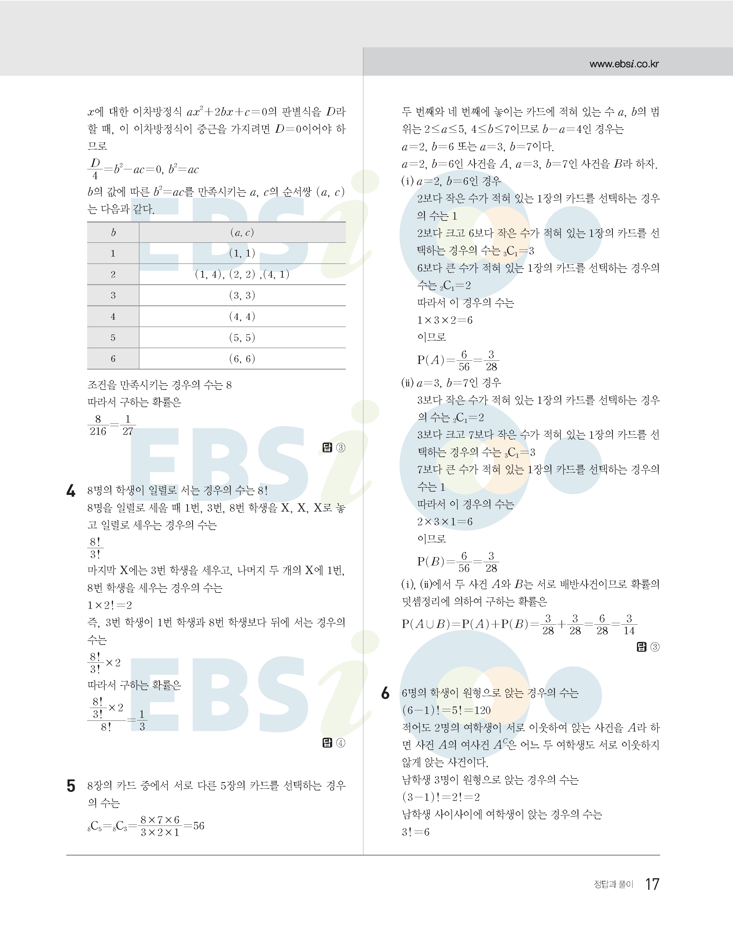 2022수능특강 확률과통계 사진답지 빠른답지 모바일최적화