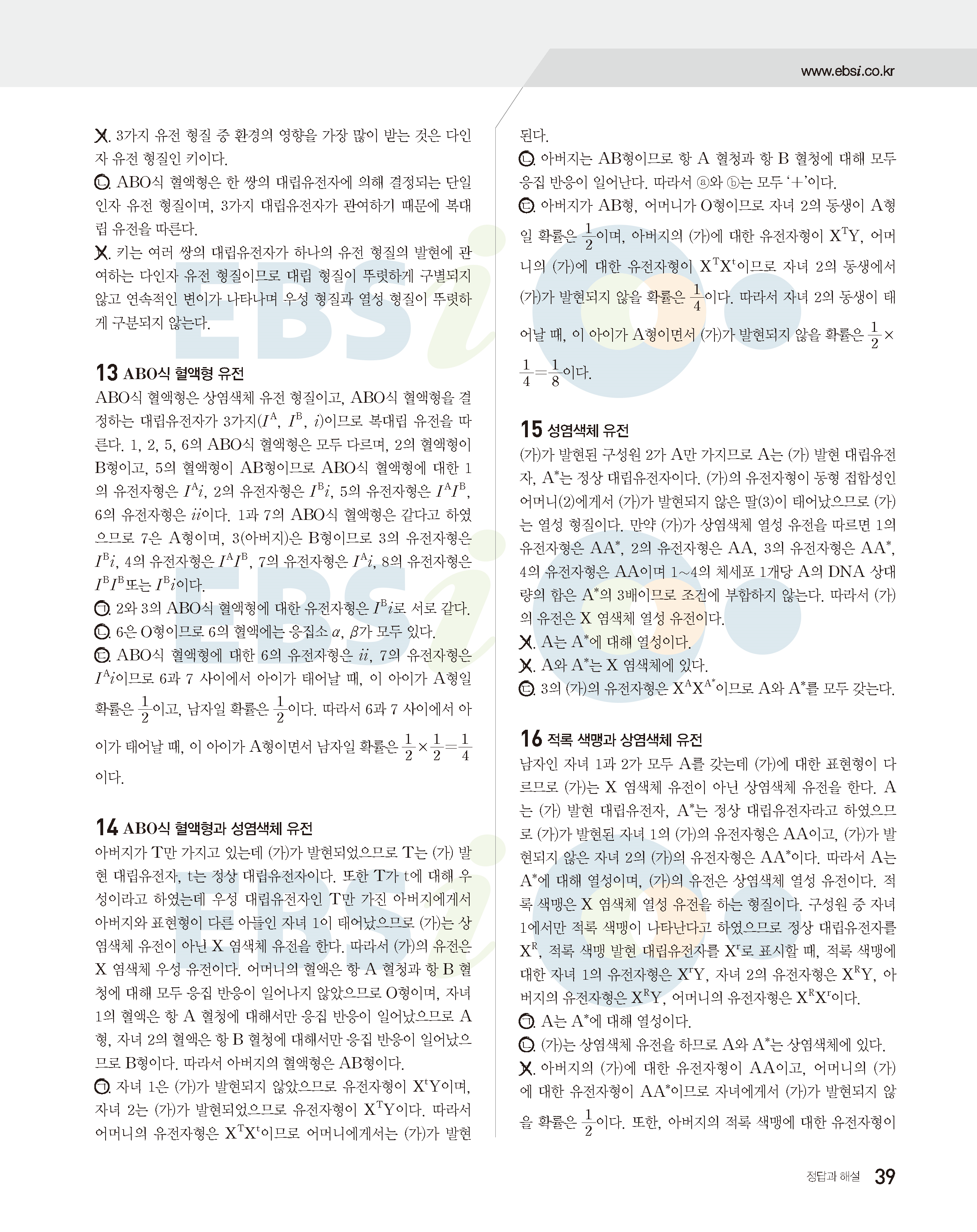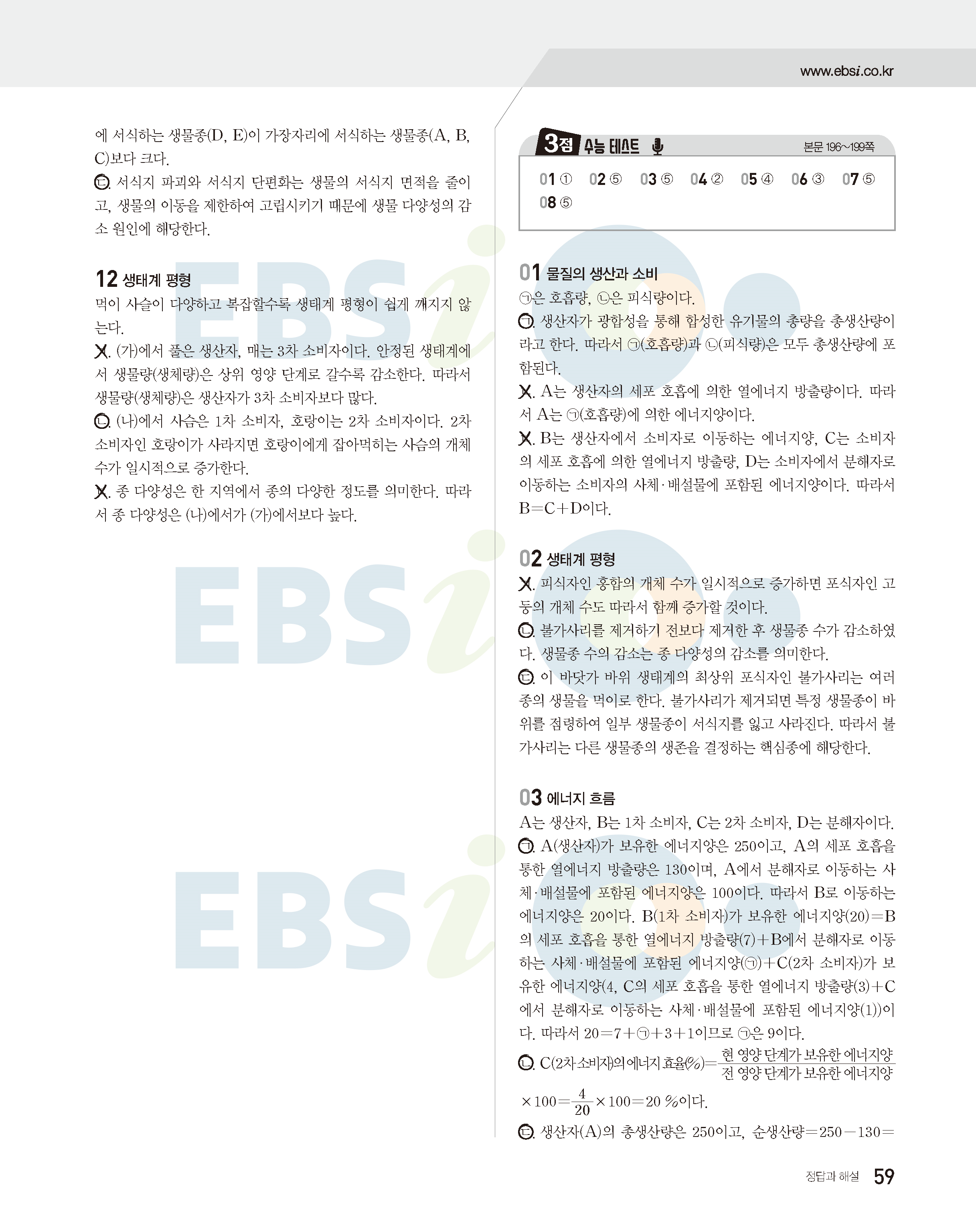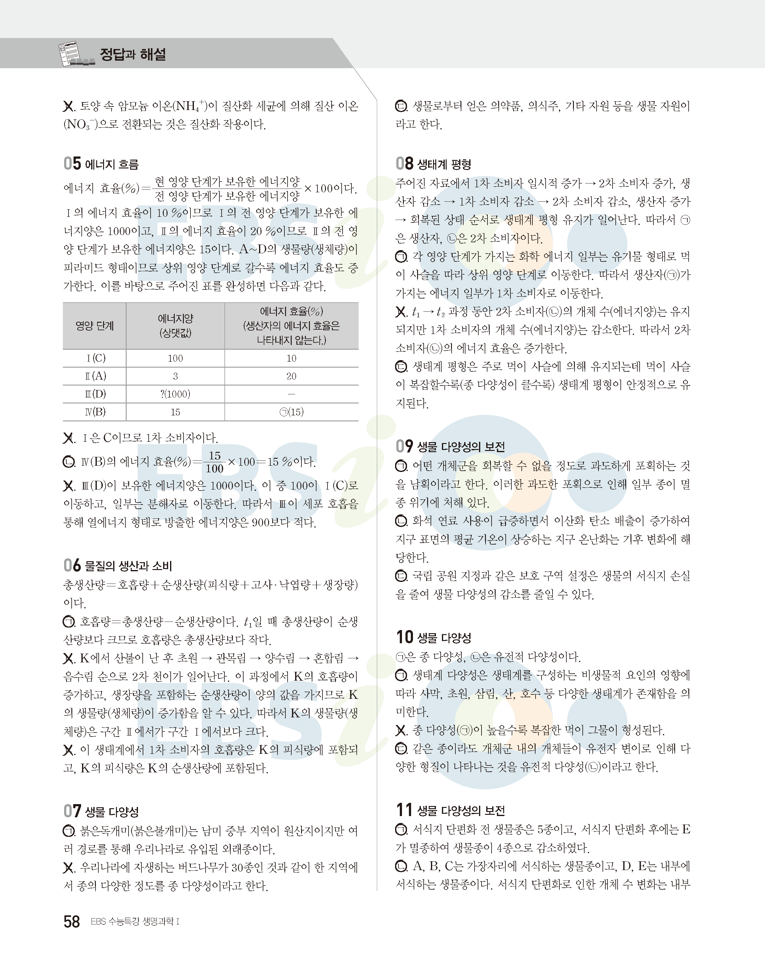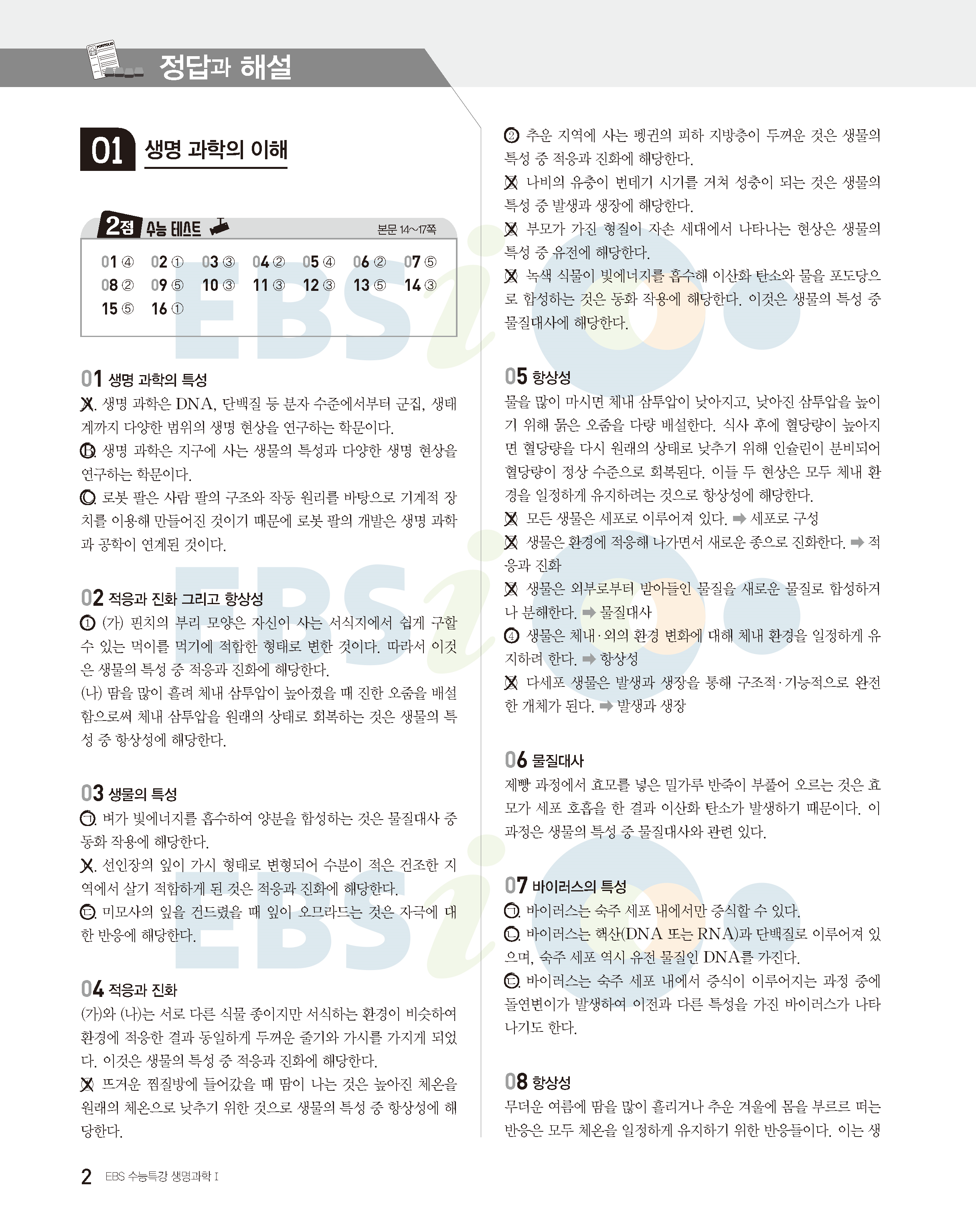 2022수능특강 생명과학1 사진답지 빠른답지 모바일최적화