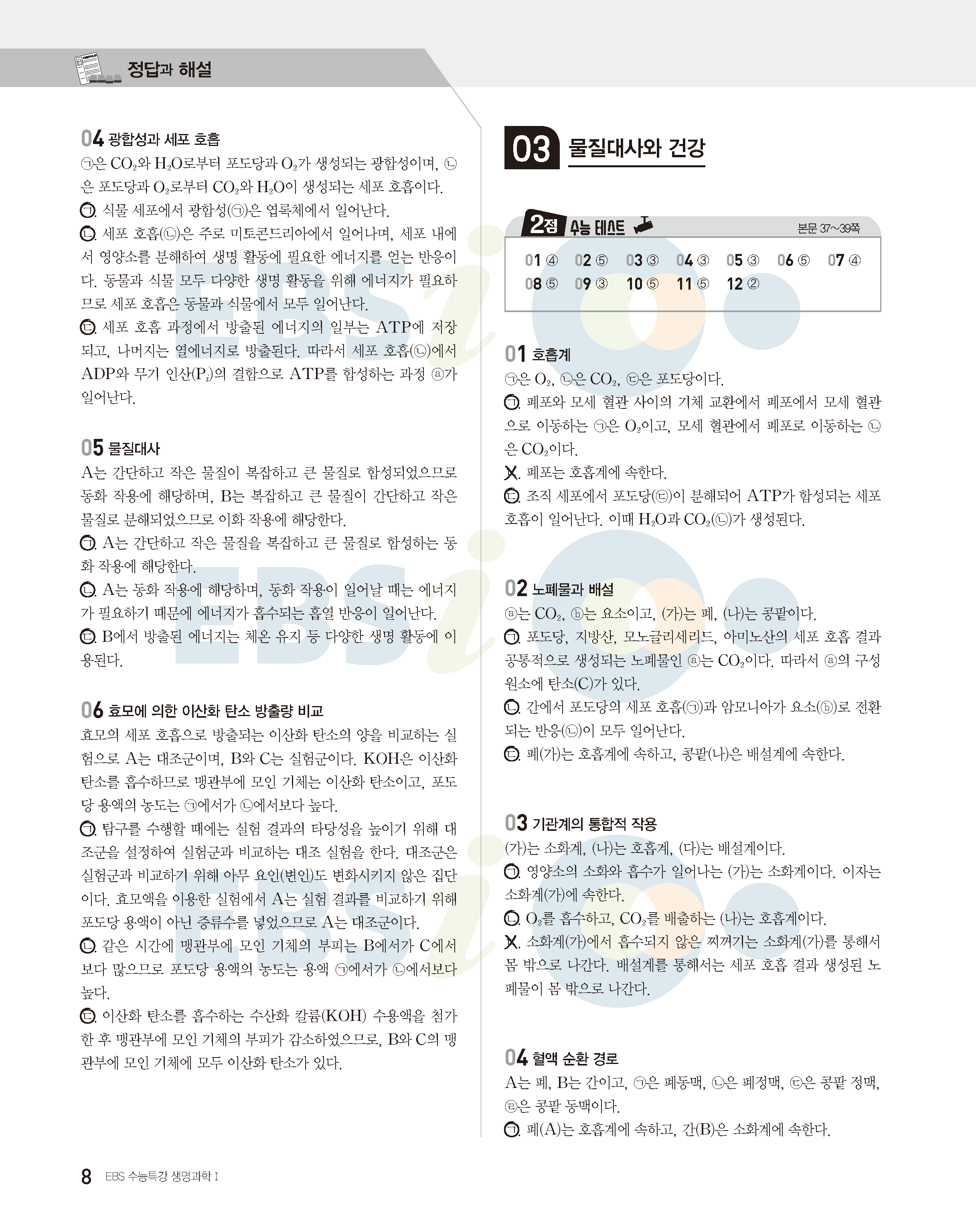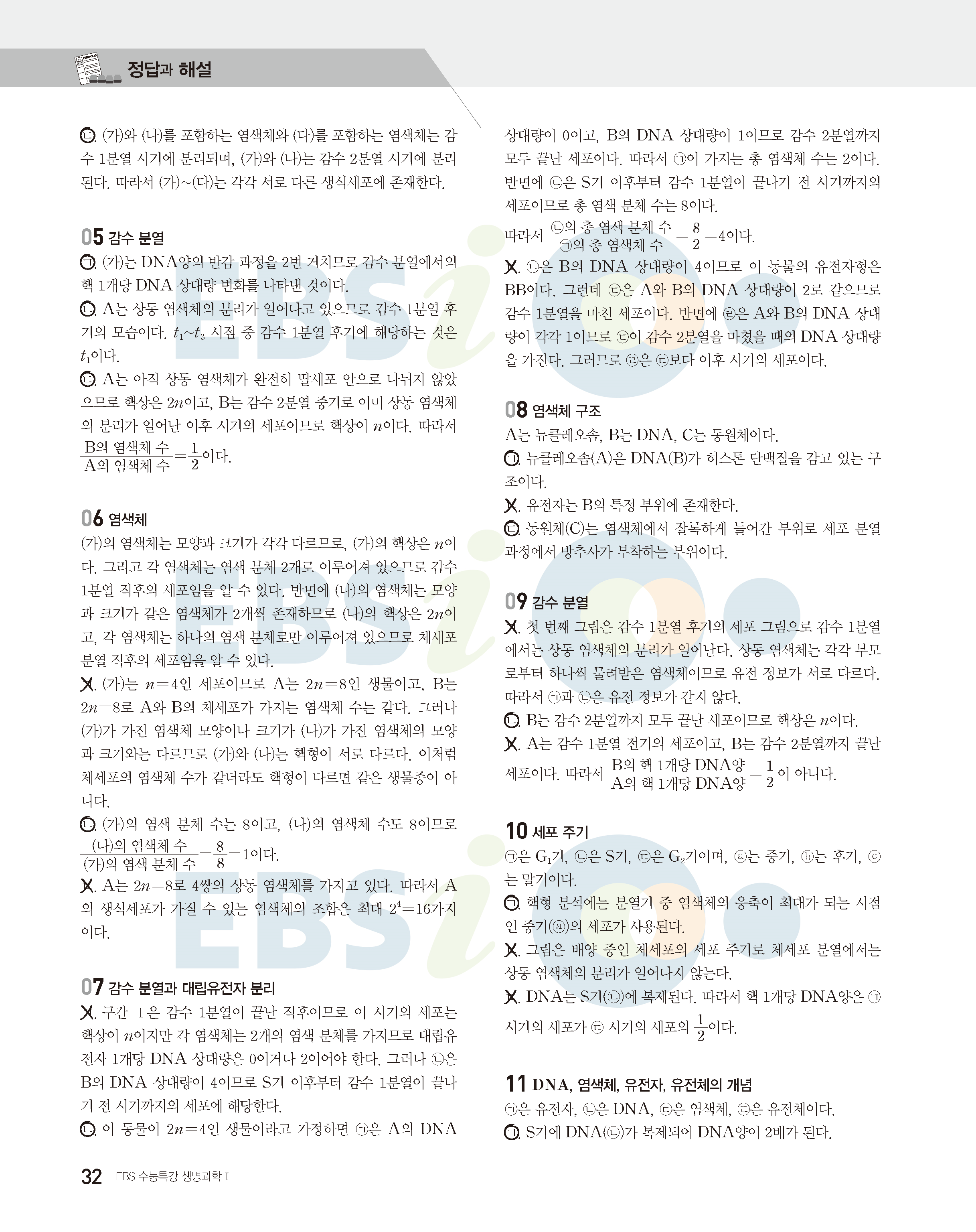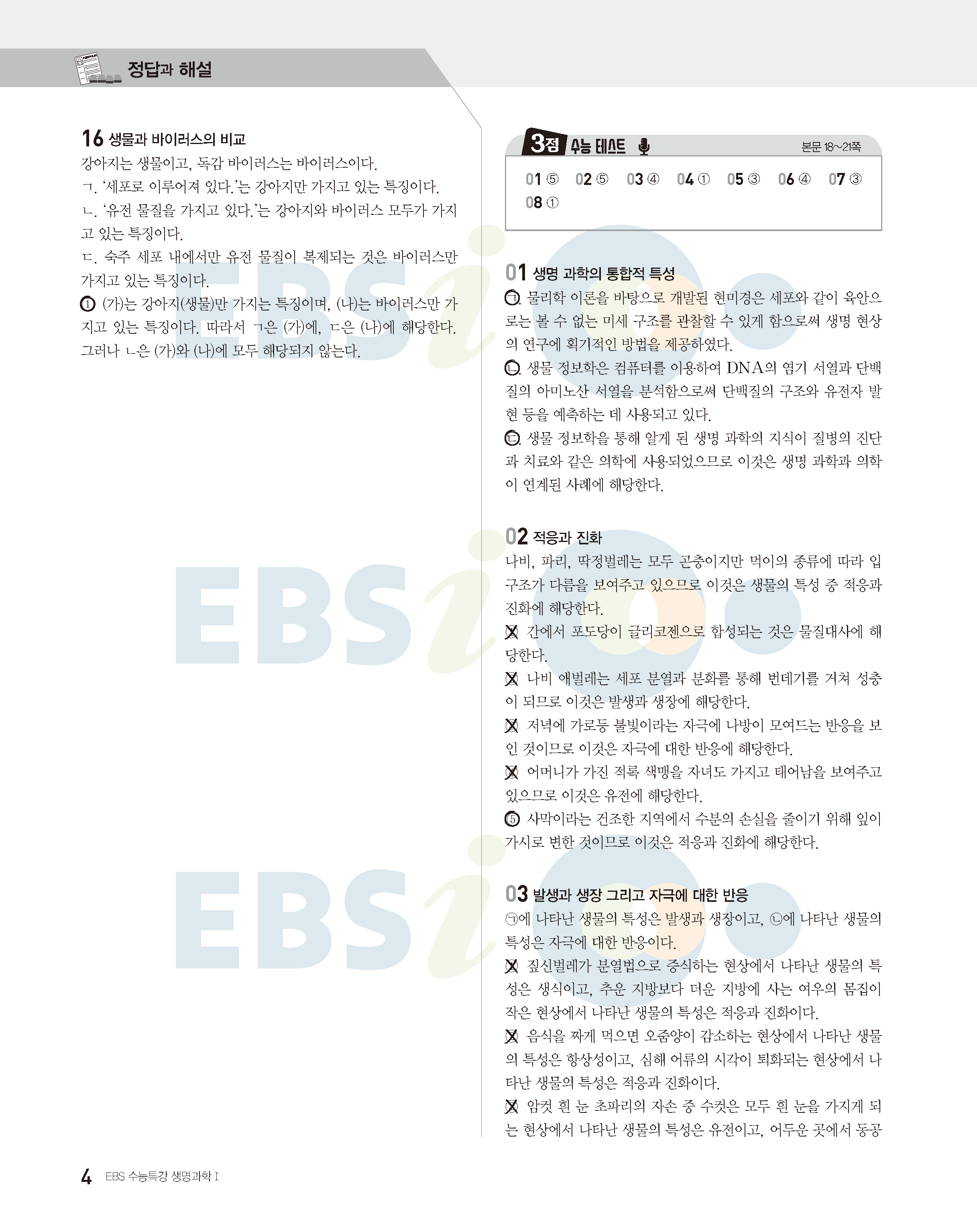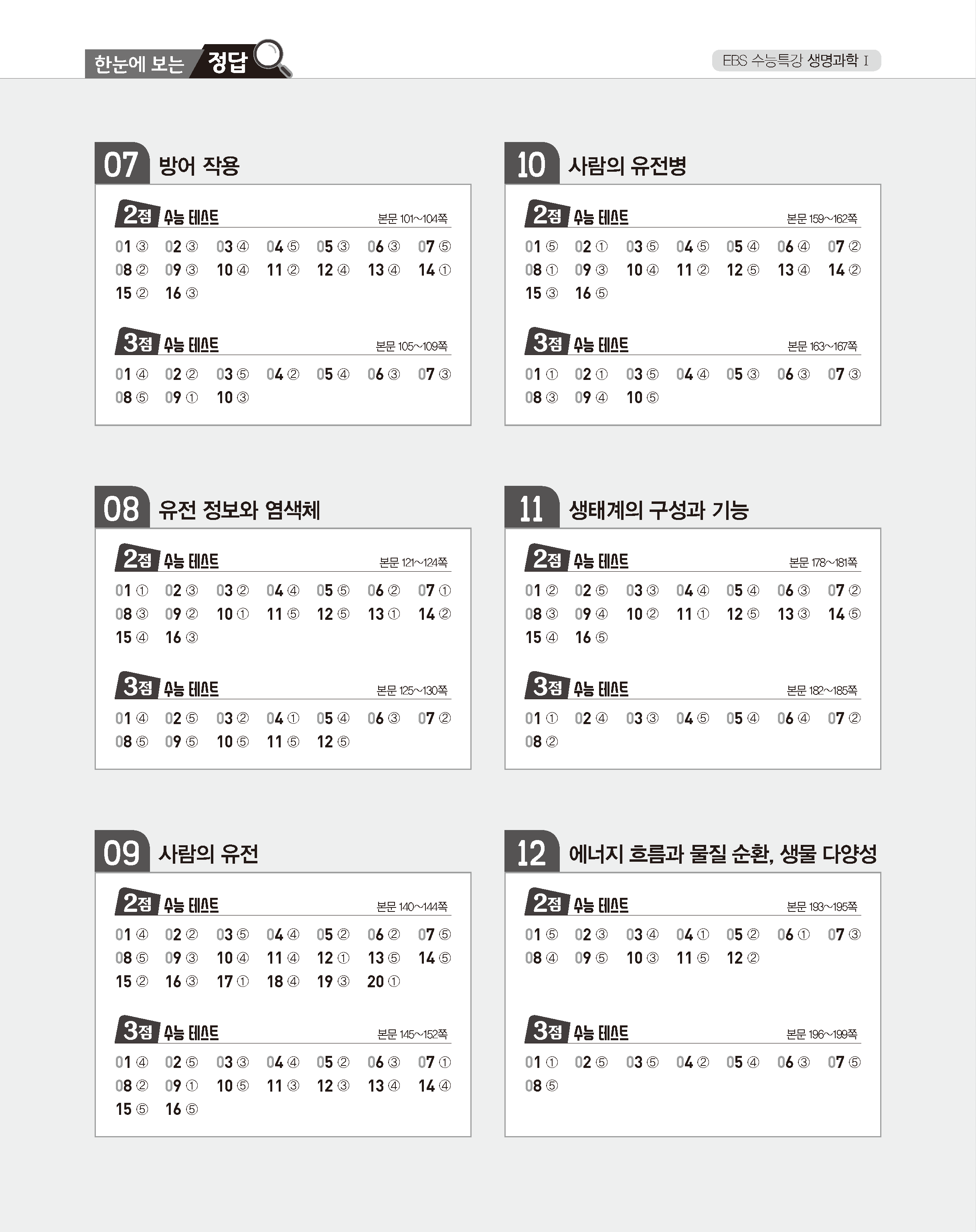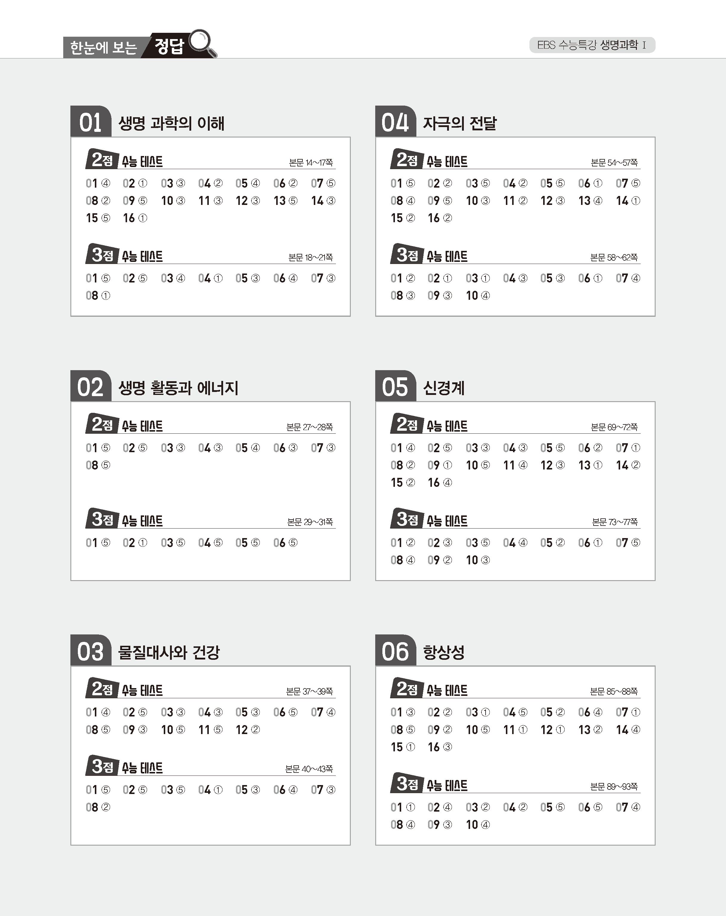 2022수능특강 생명과학1 사진답지 빠른답지 모바일최적화