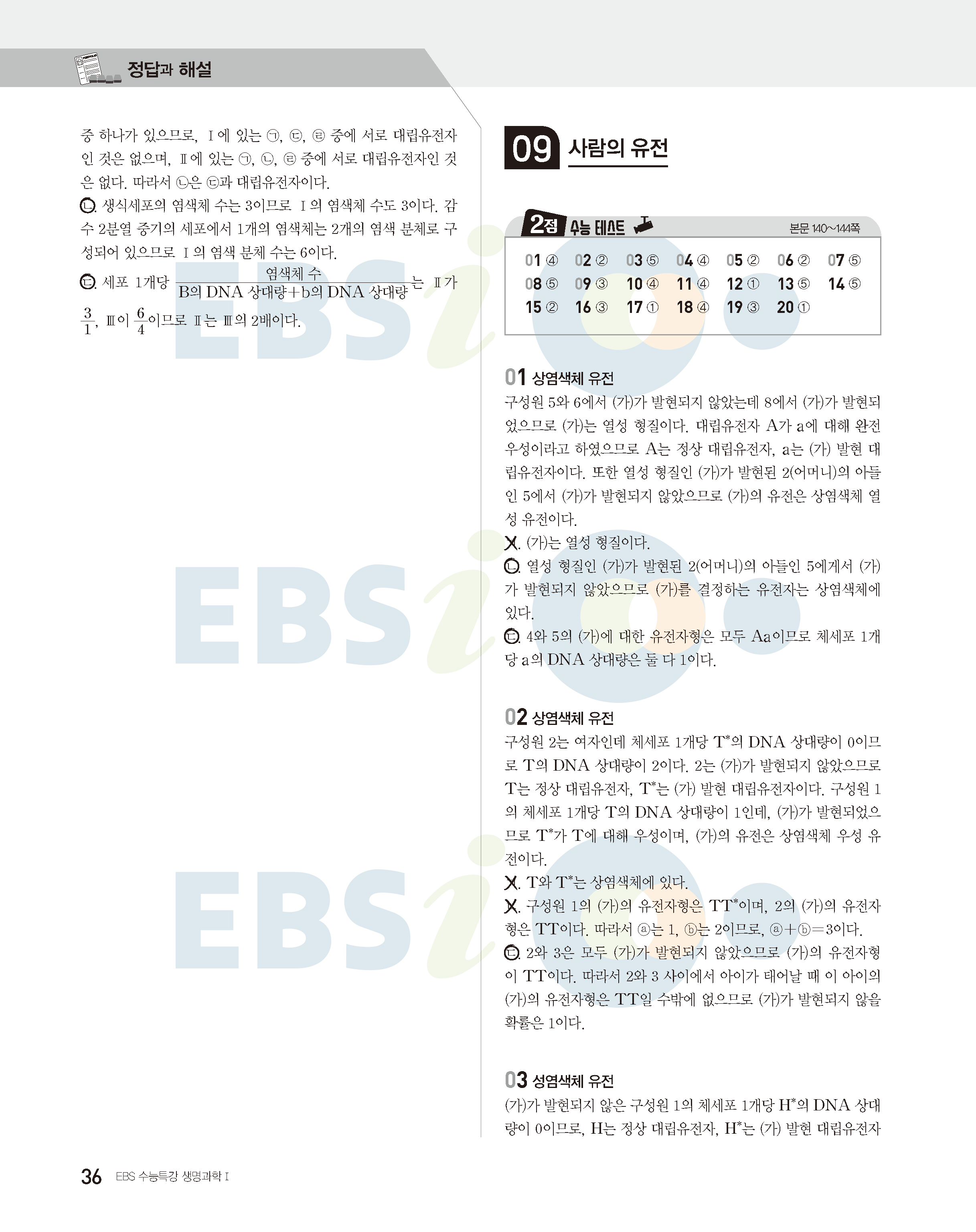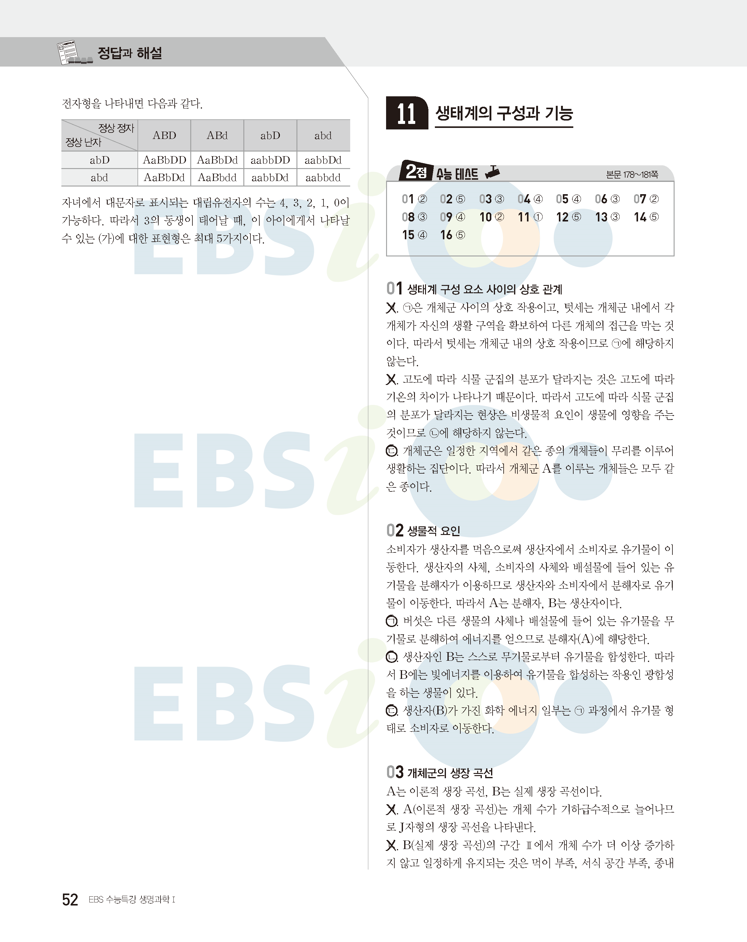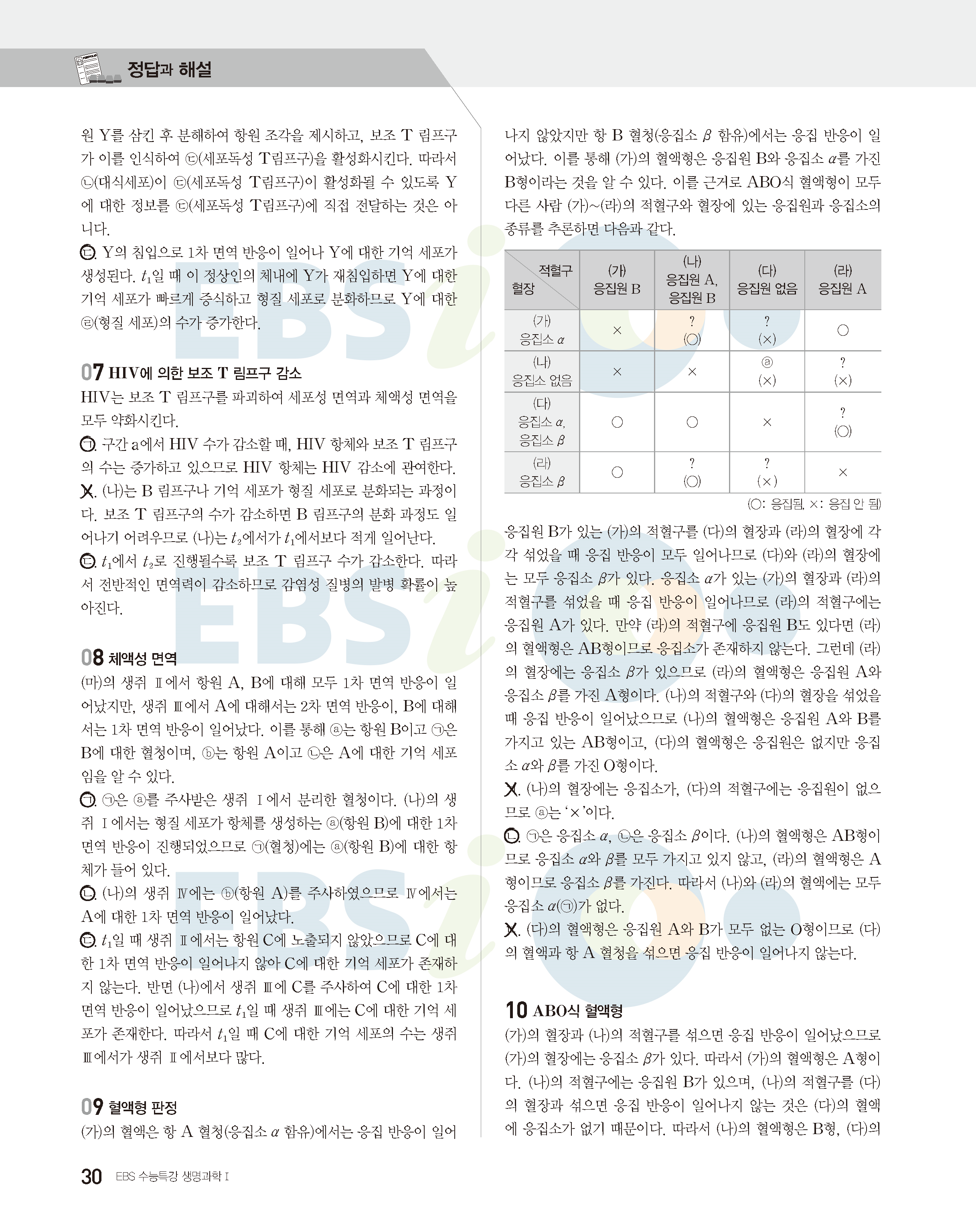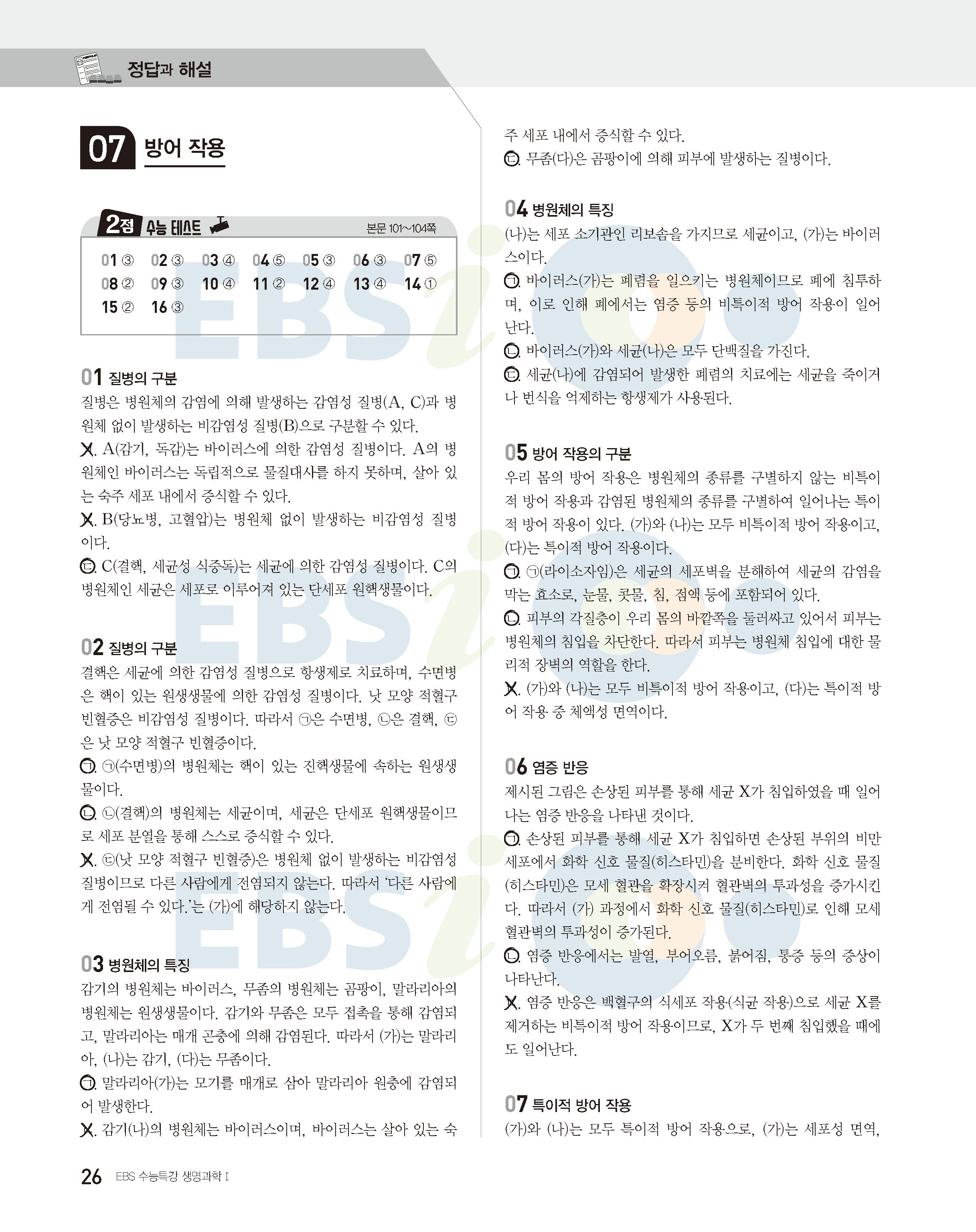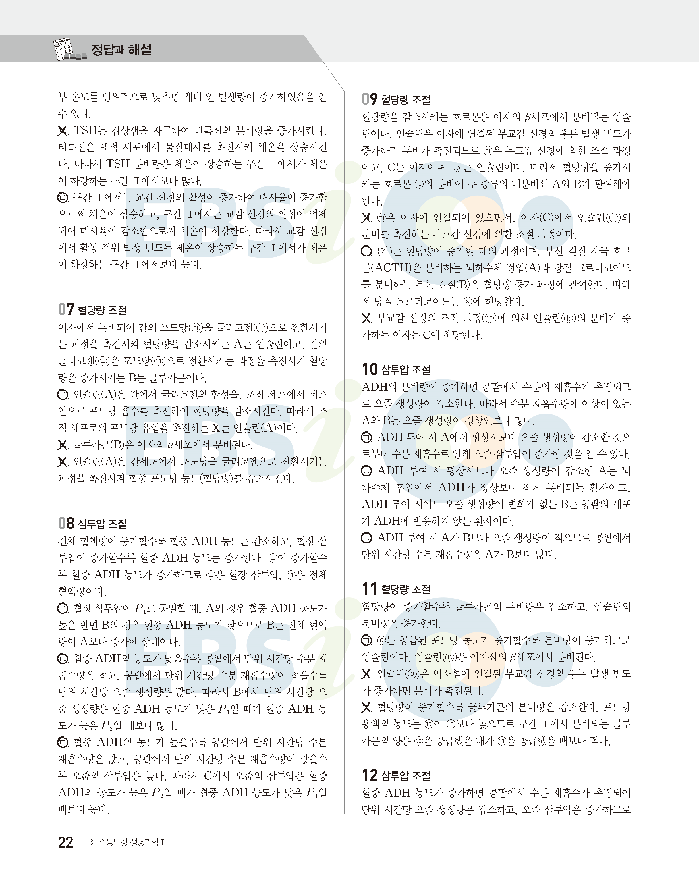 2022수능특강 생명과학1 사진답지 빠른답지 모바일최적화