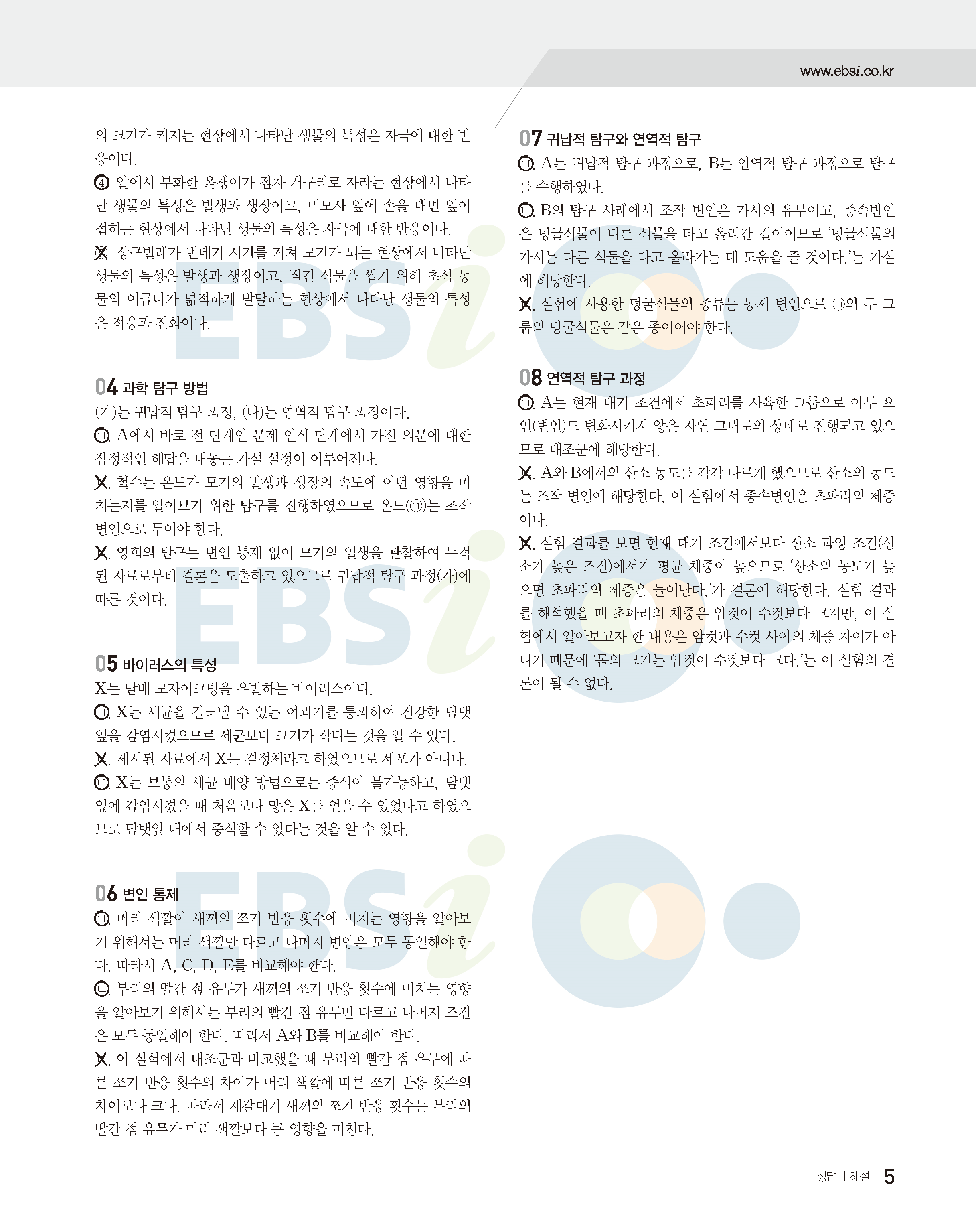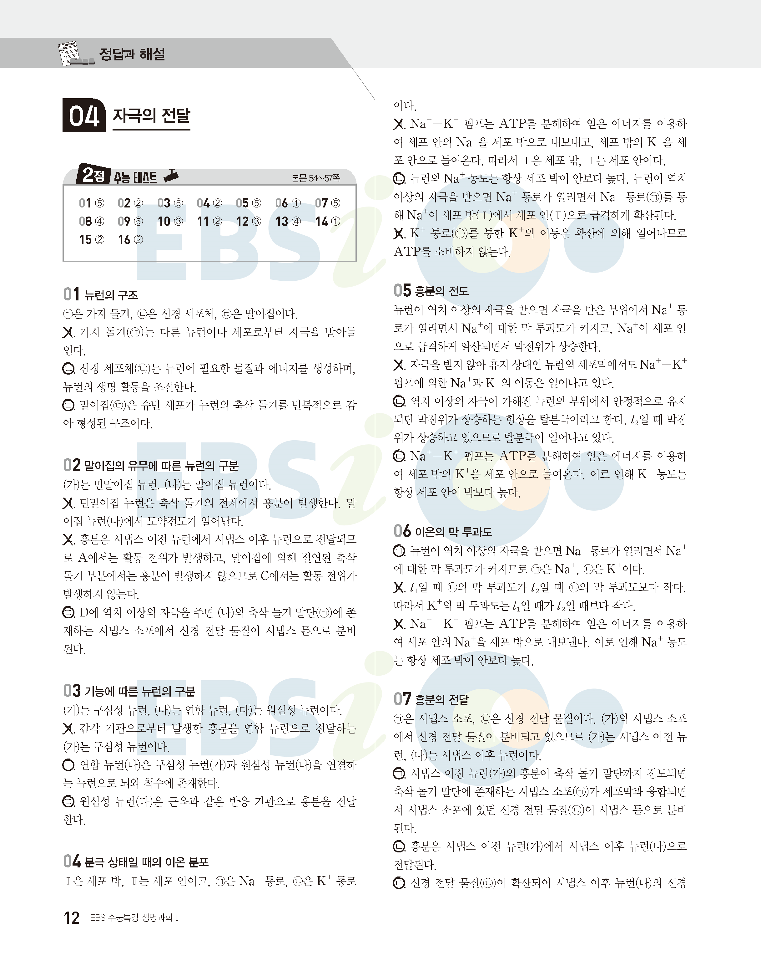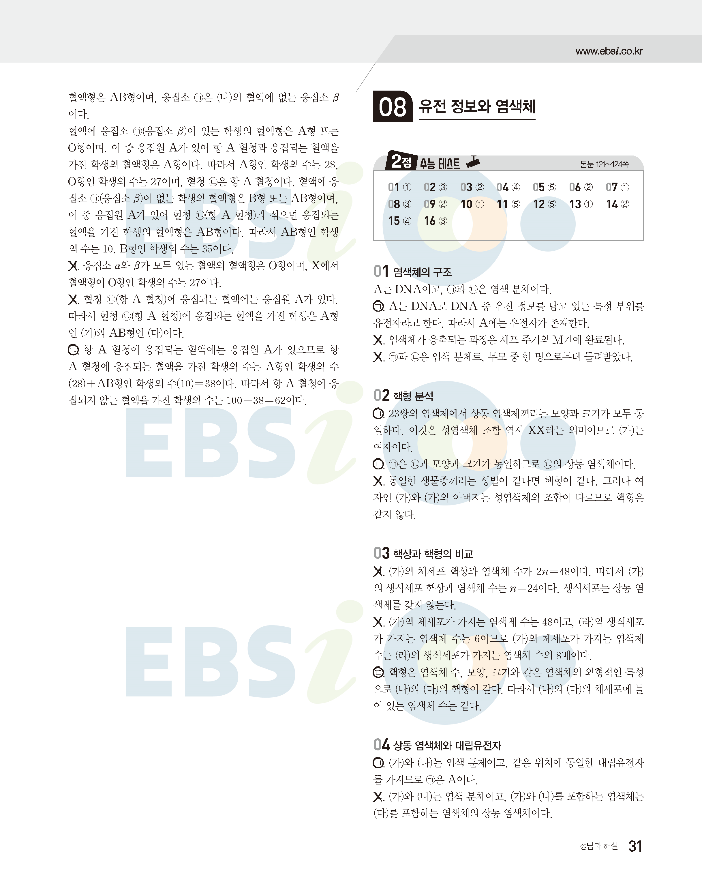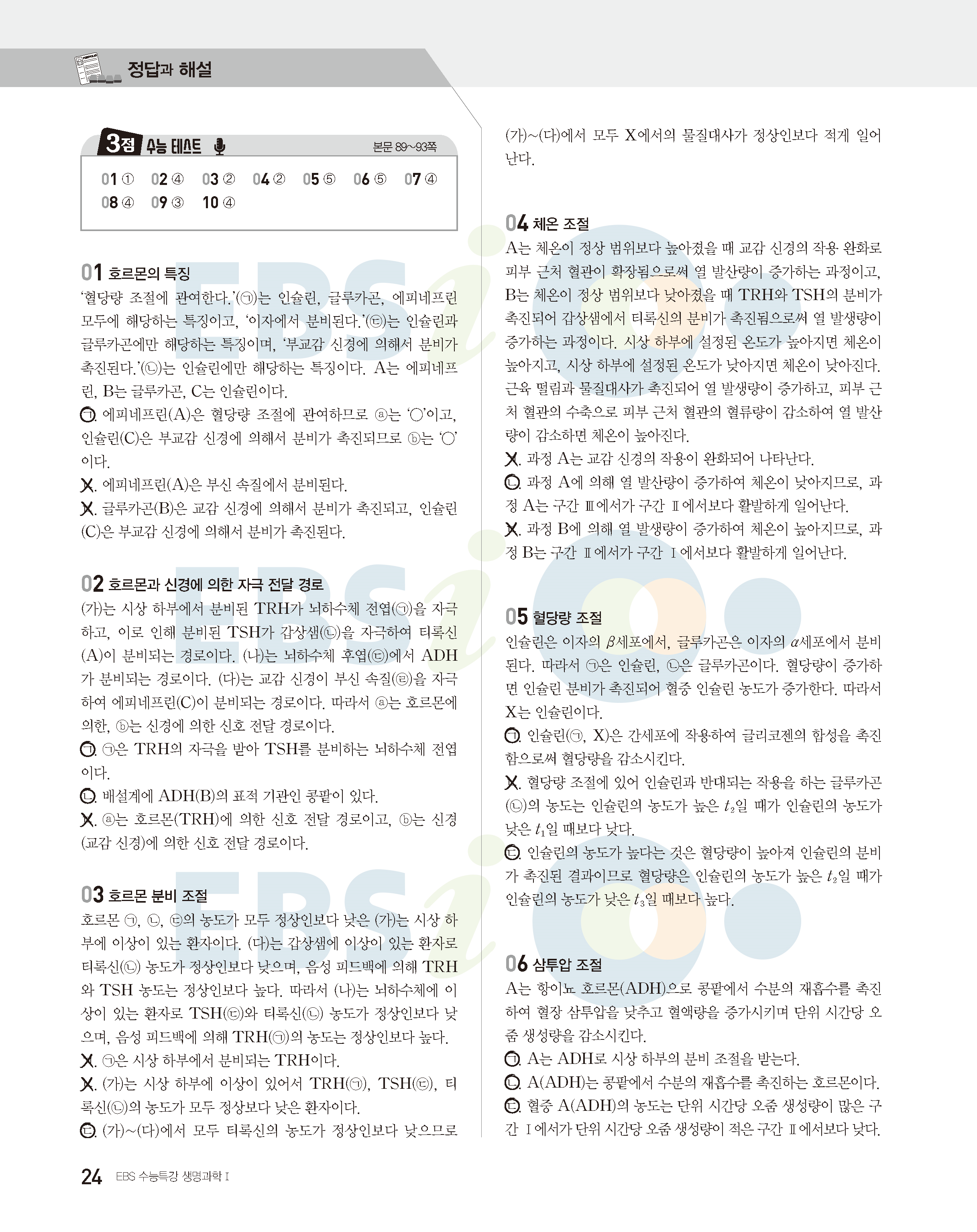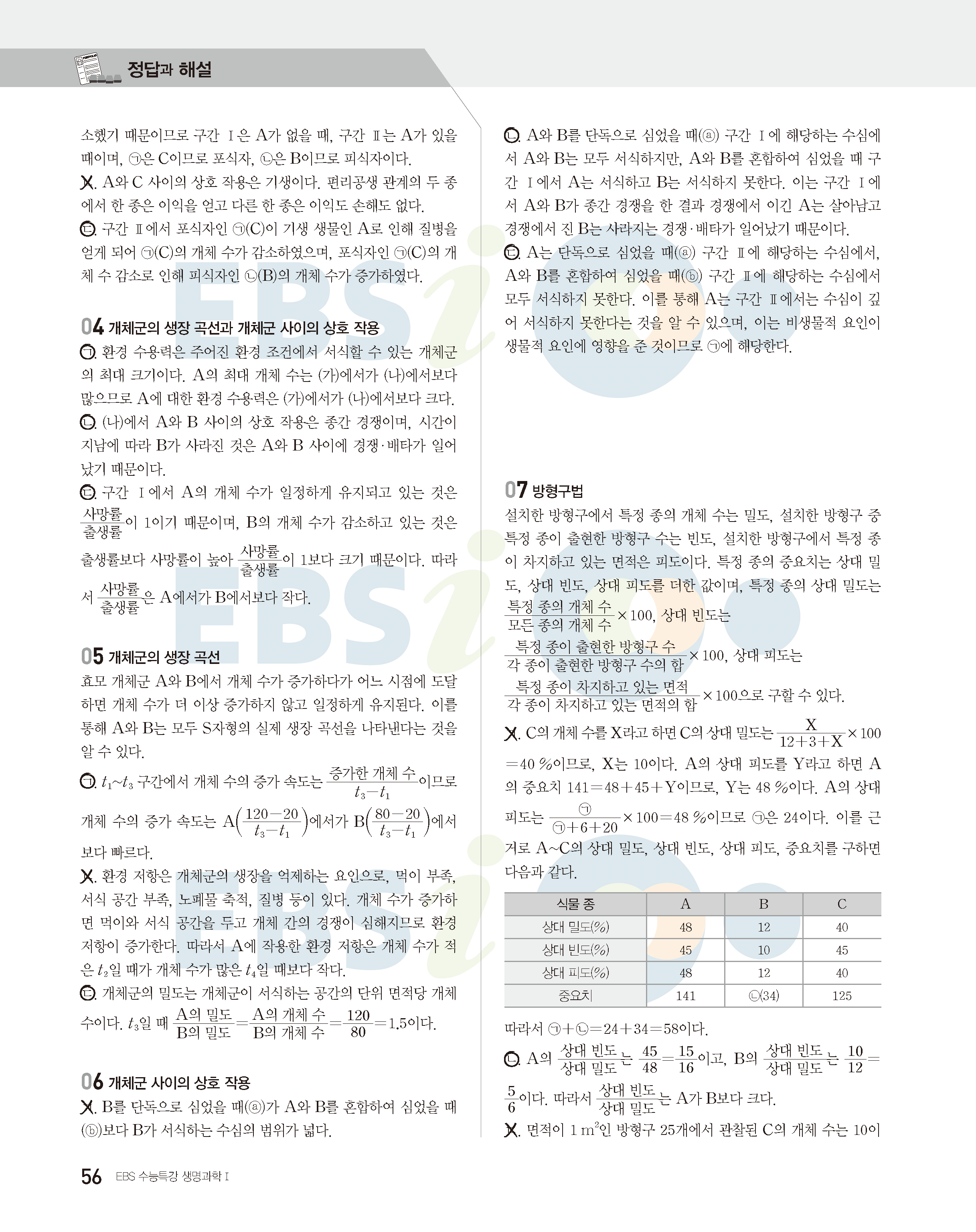 2022수능특강 생명과학1 사진답지 빠른답지 모바일최적화