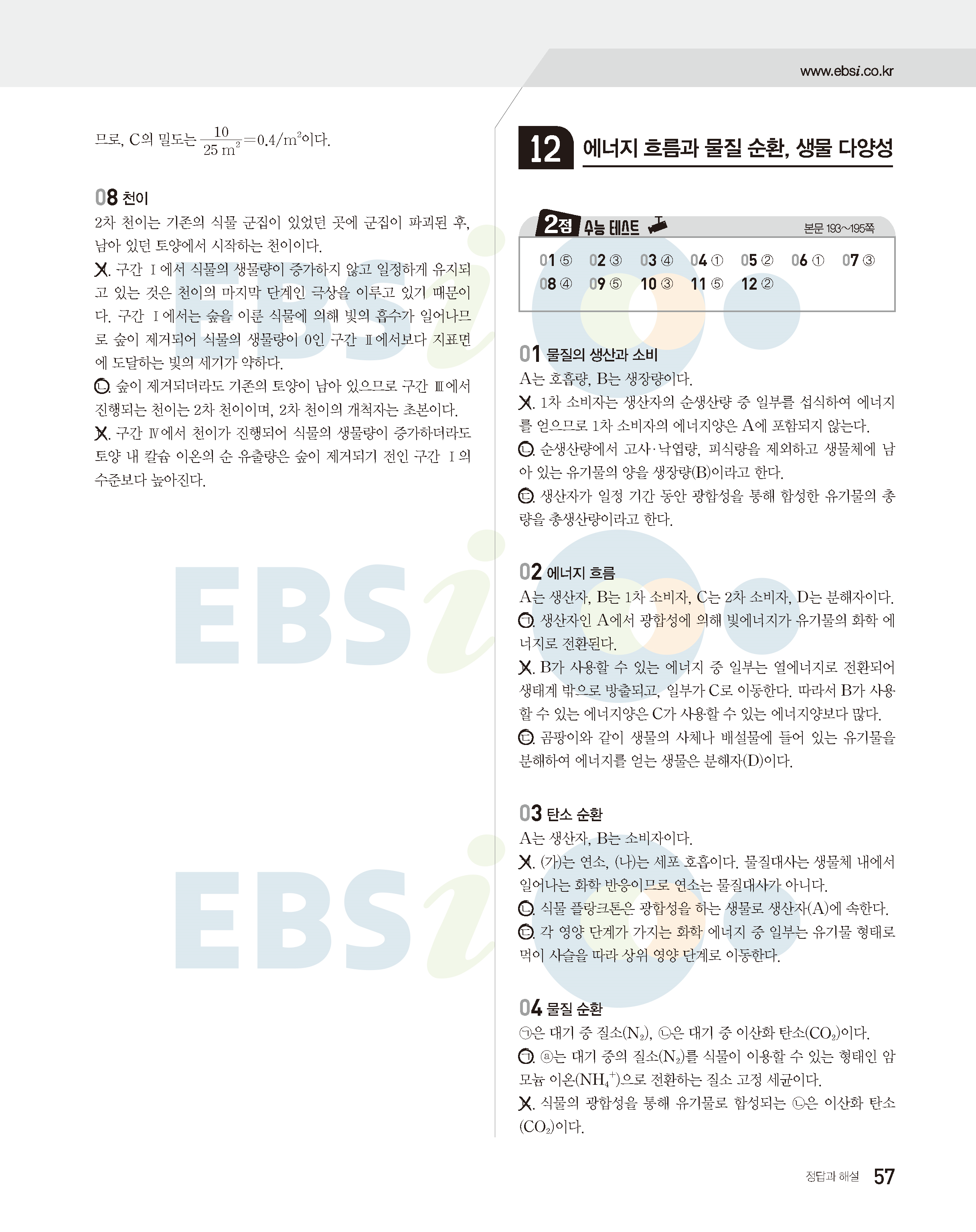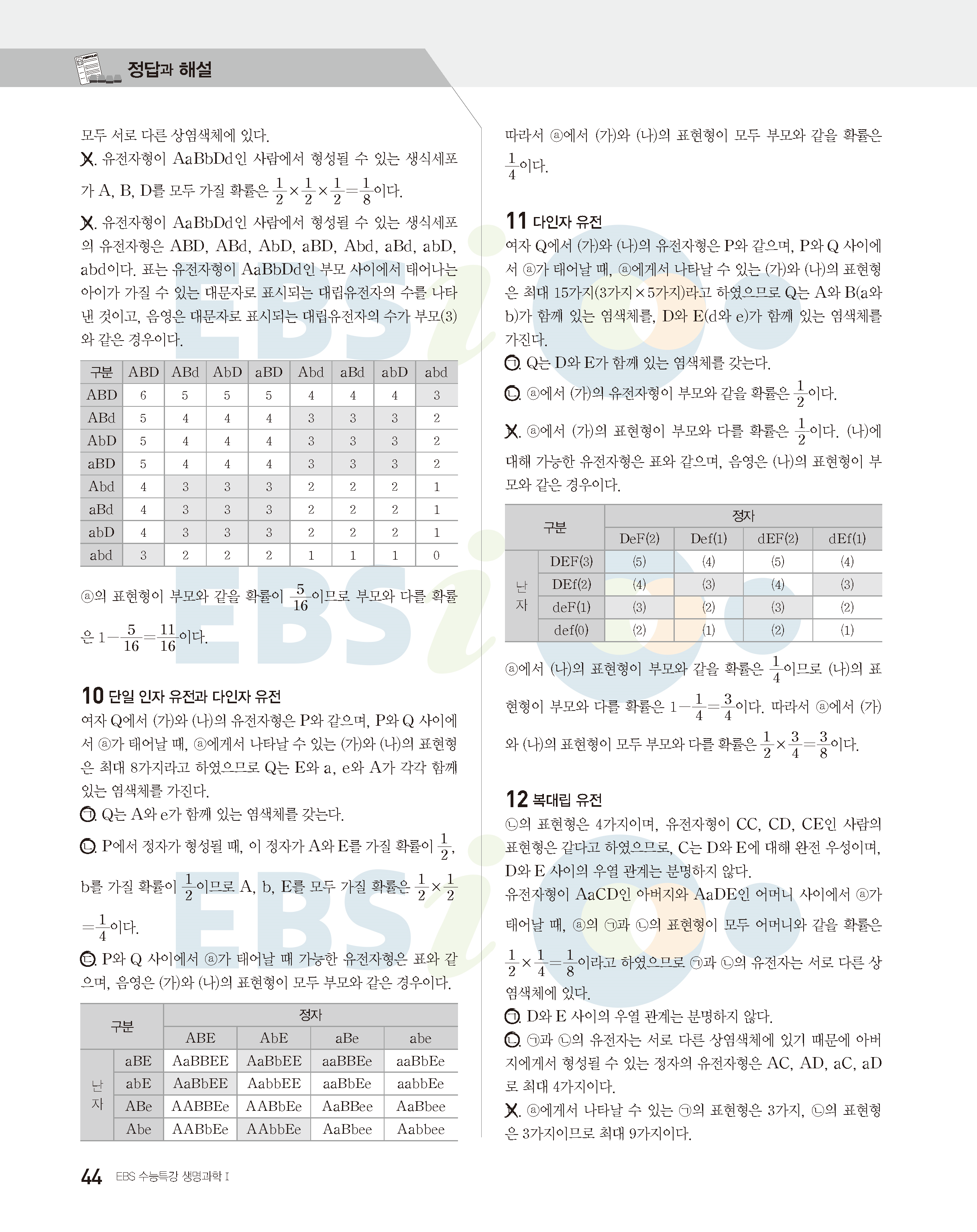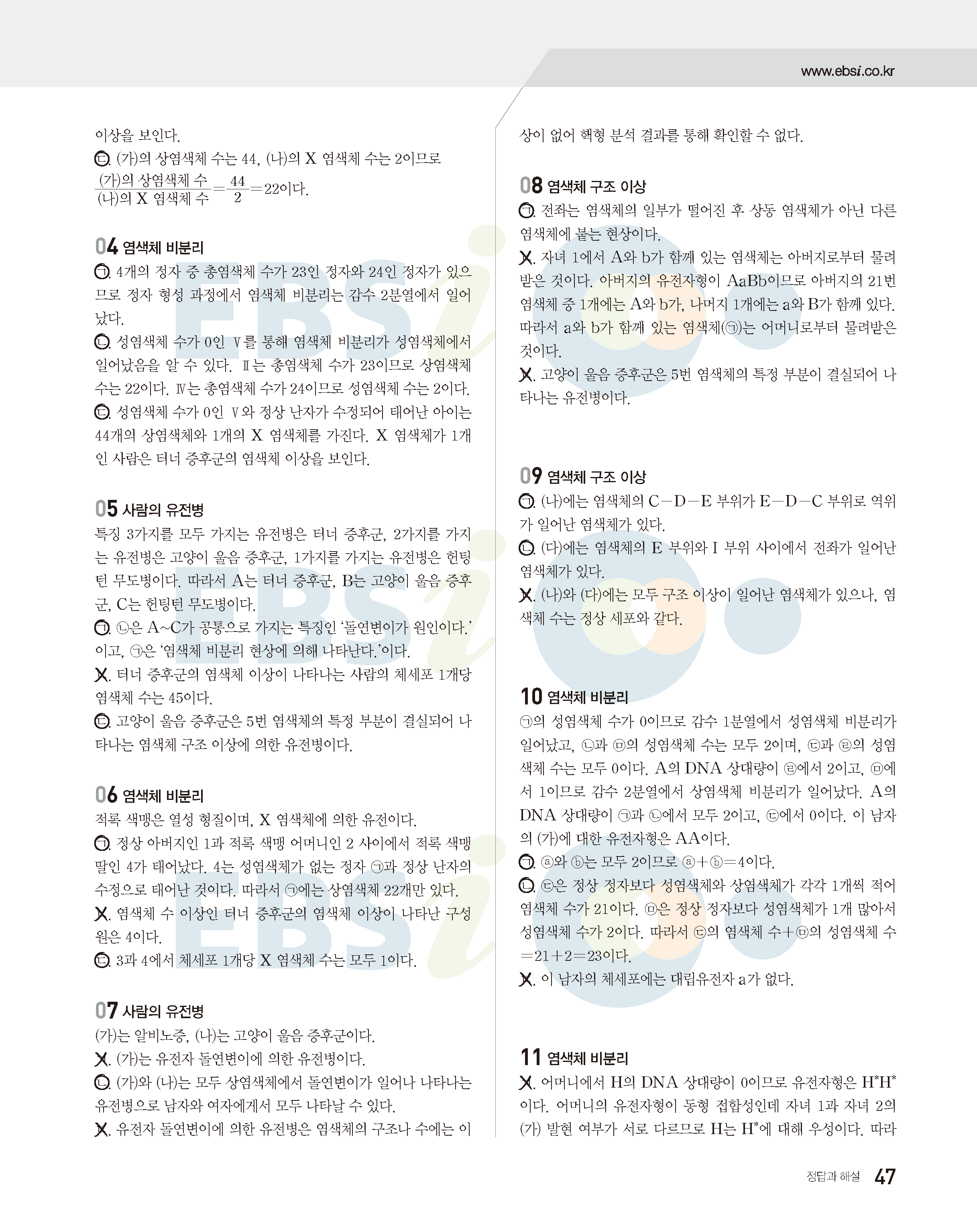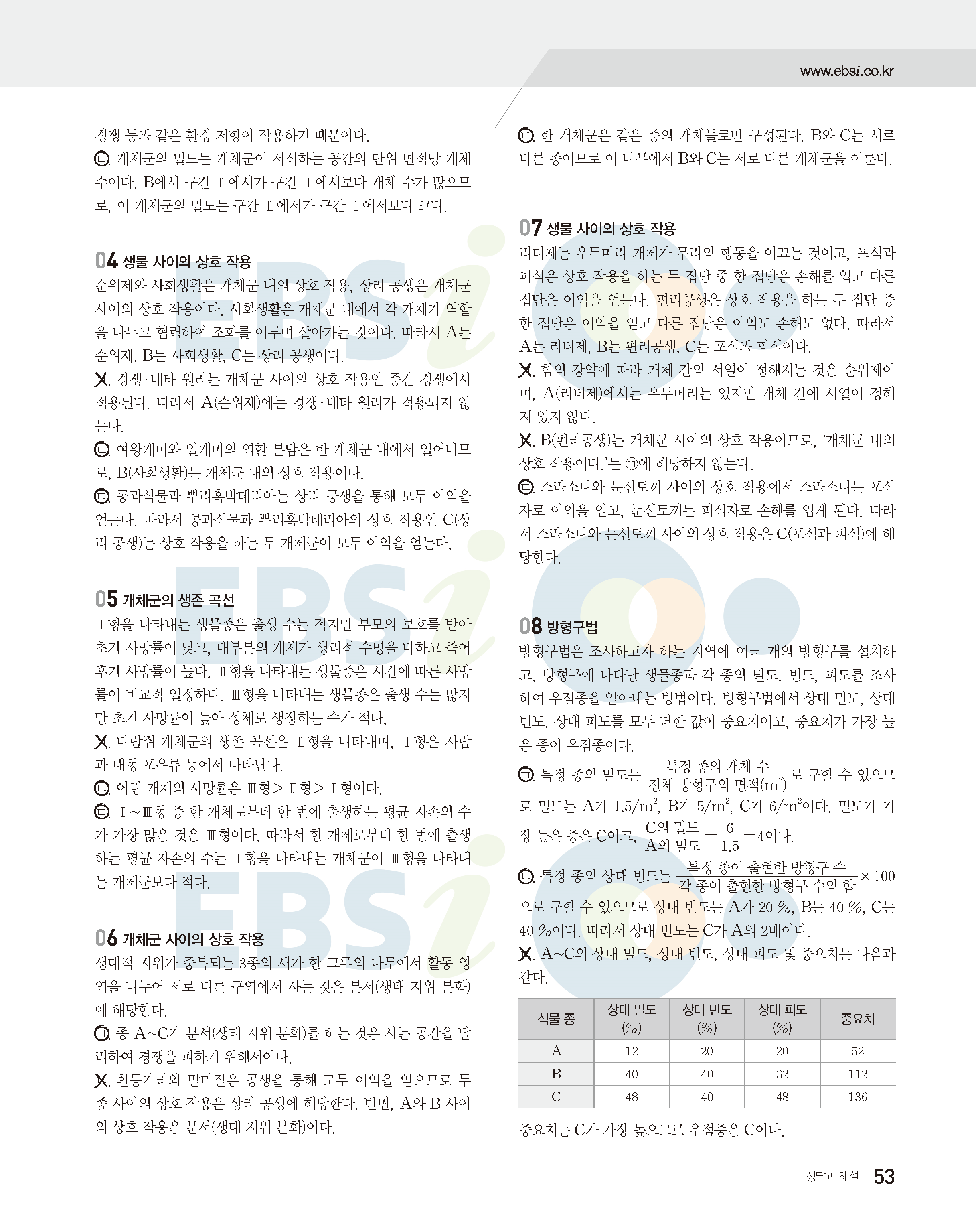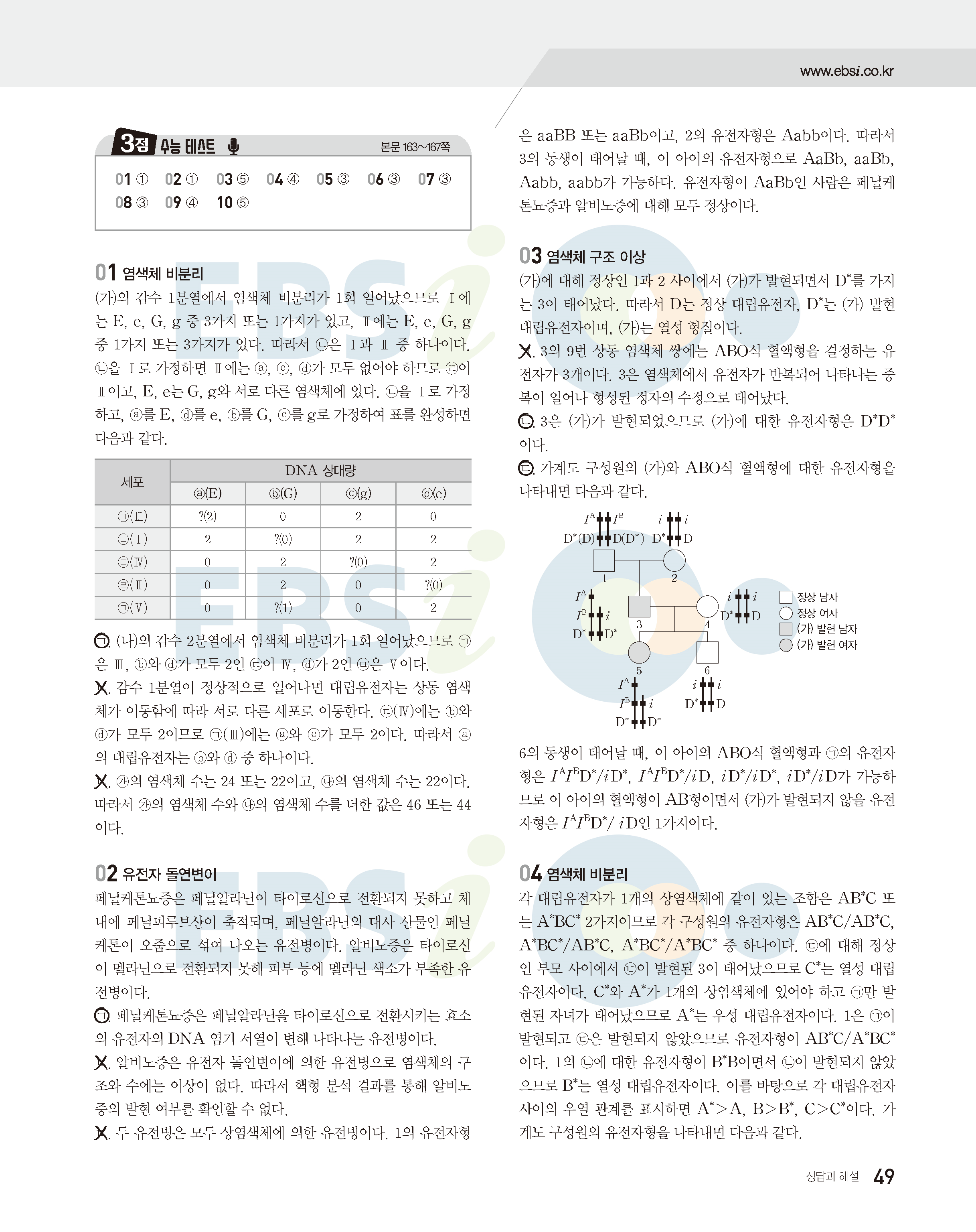 2022수능특강 생명과학1 사진답지 빠른답지 모바일최적화