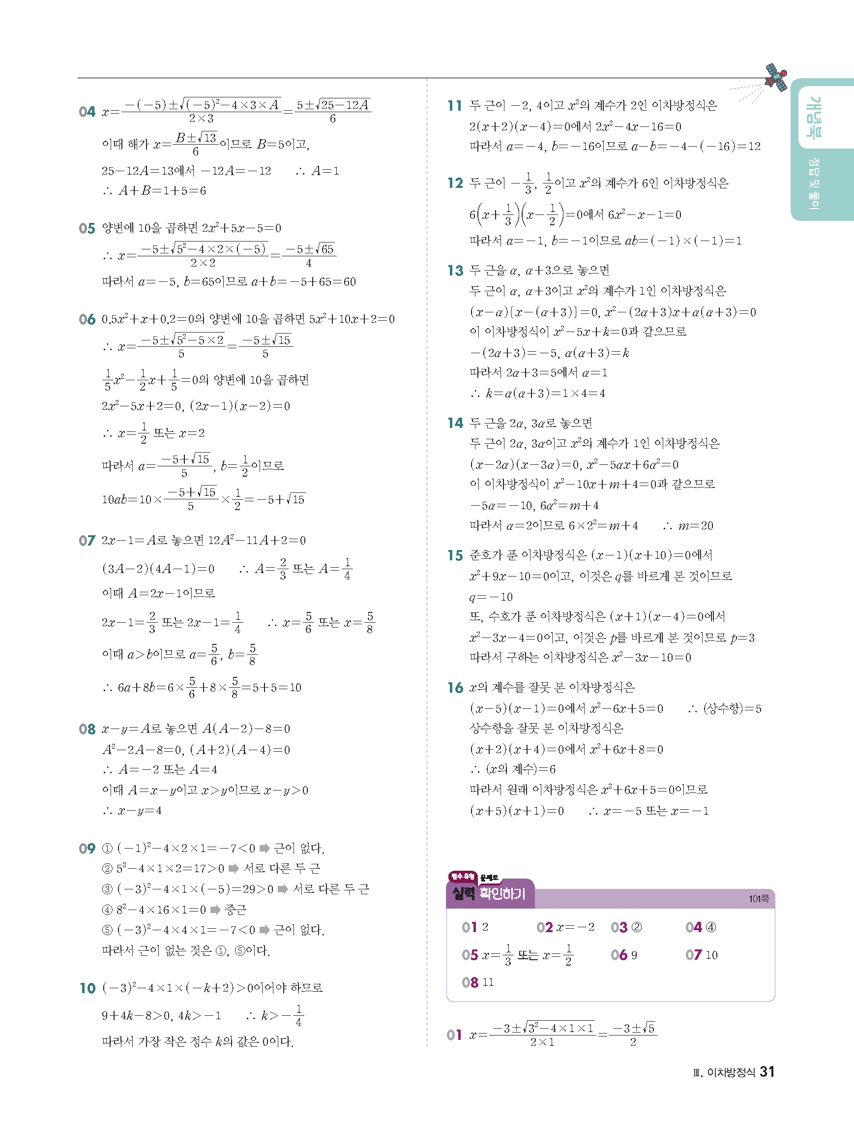 빨리이해하는수학 3-1 답지 빠른답지 사진답지 모바일최적화