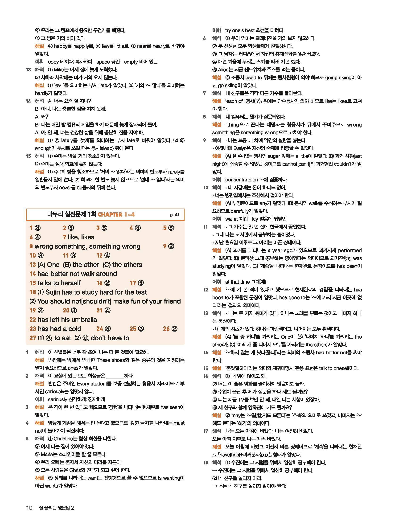 잘풀리는영문법 2권 답지 빠른답지 사진답지 모바일최적화