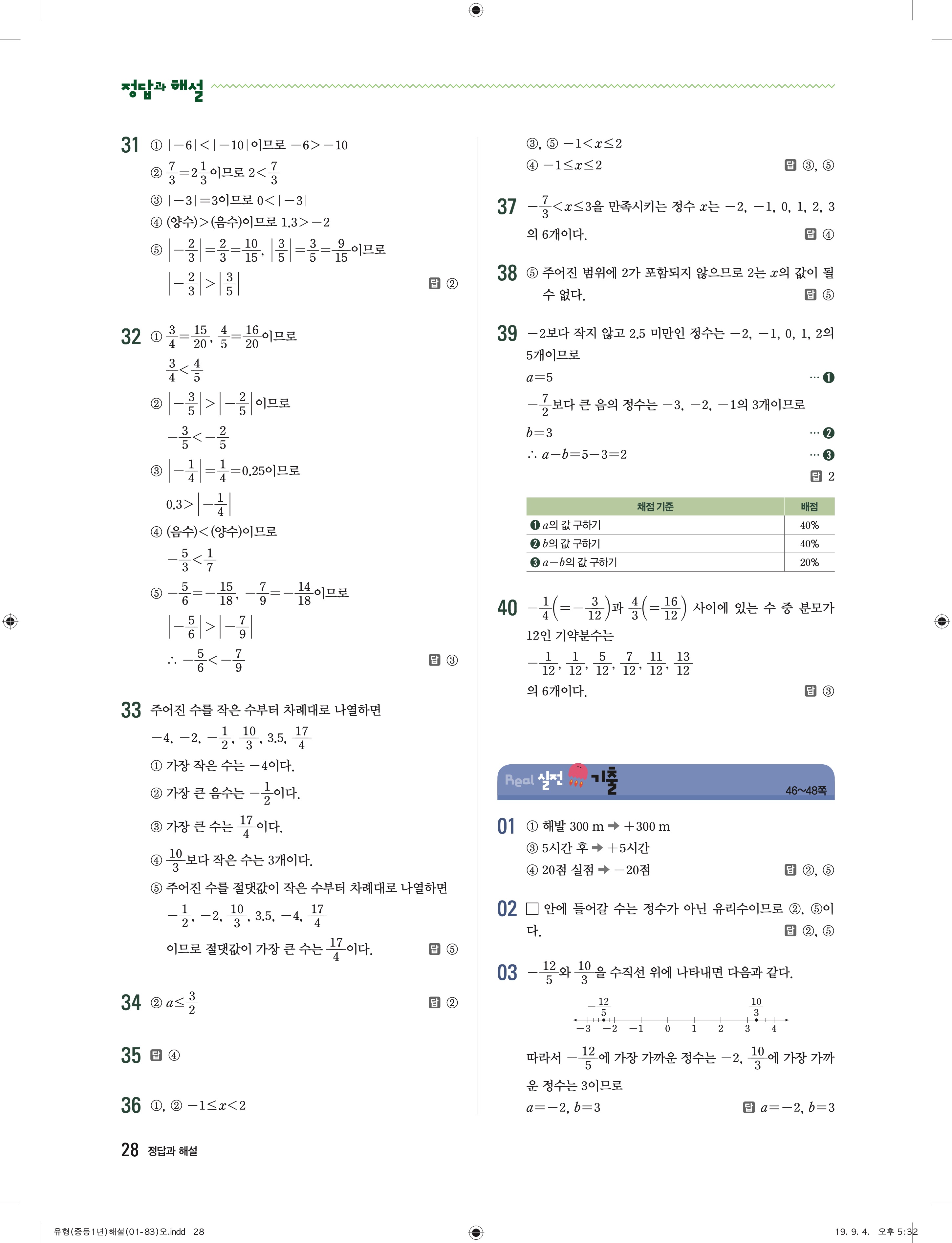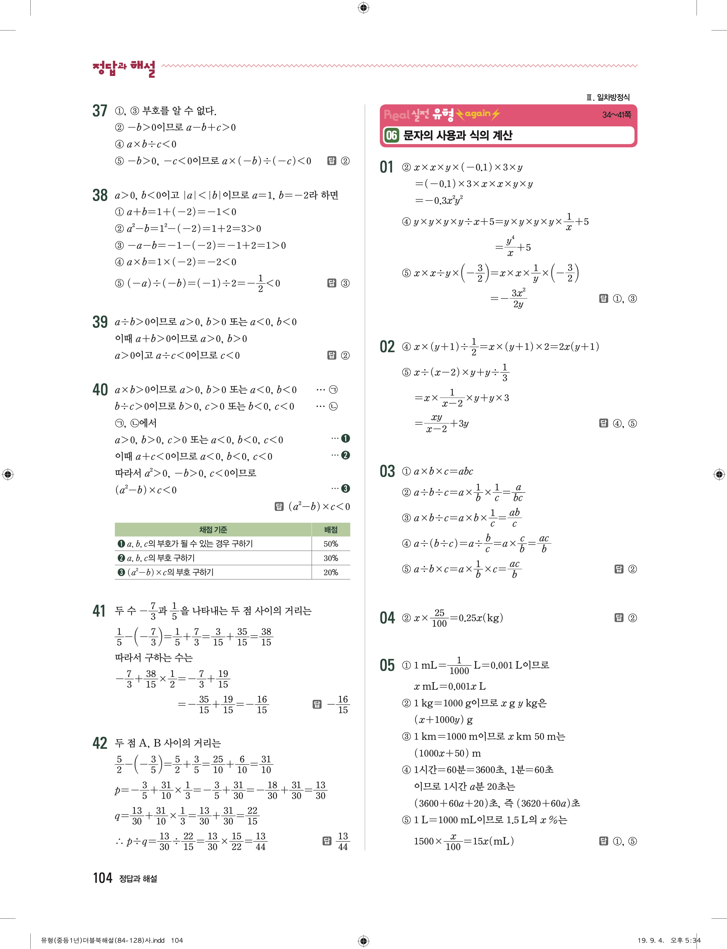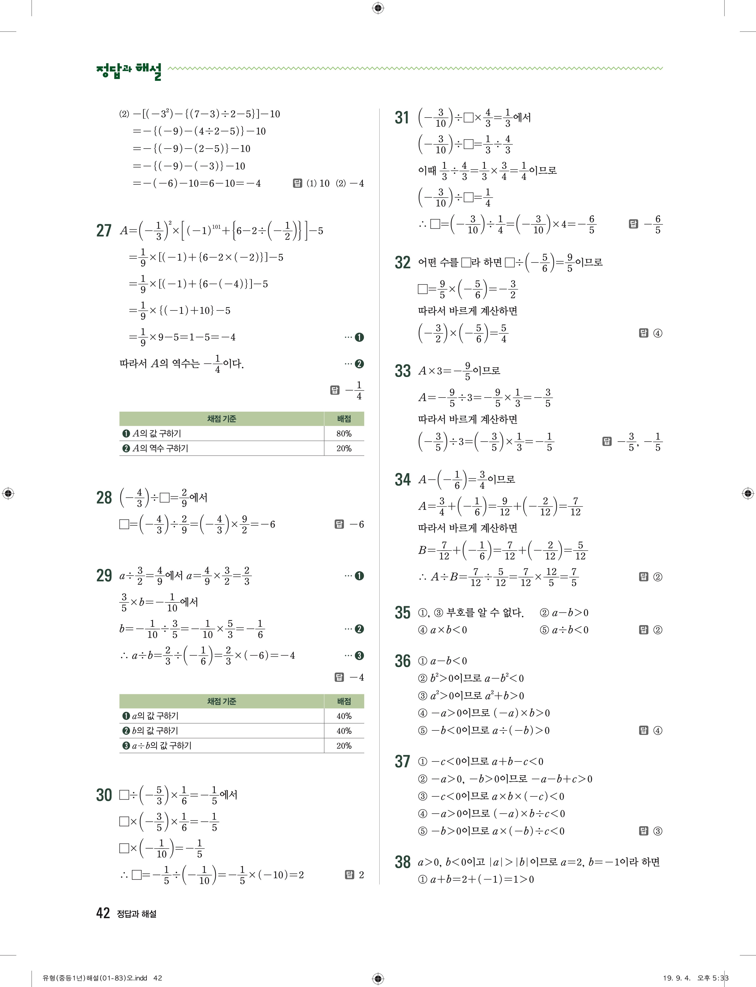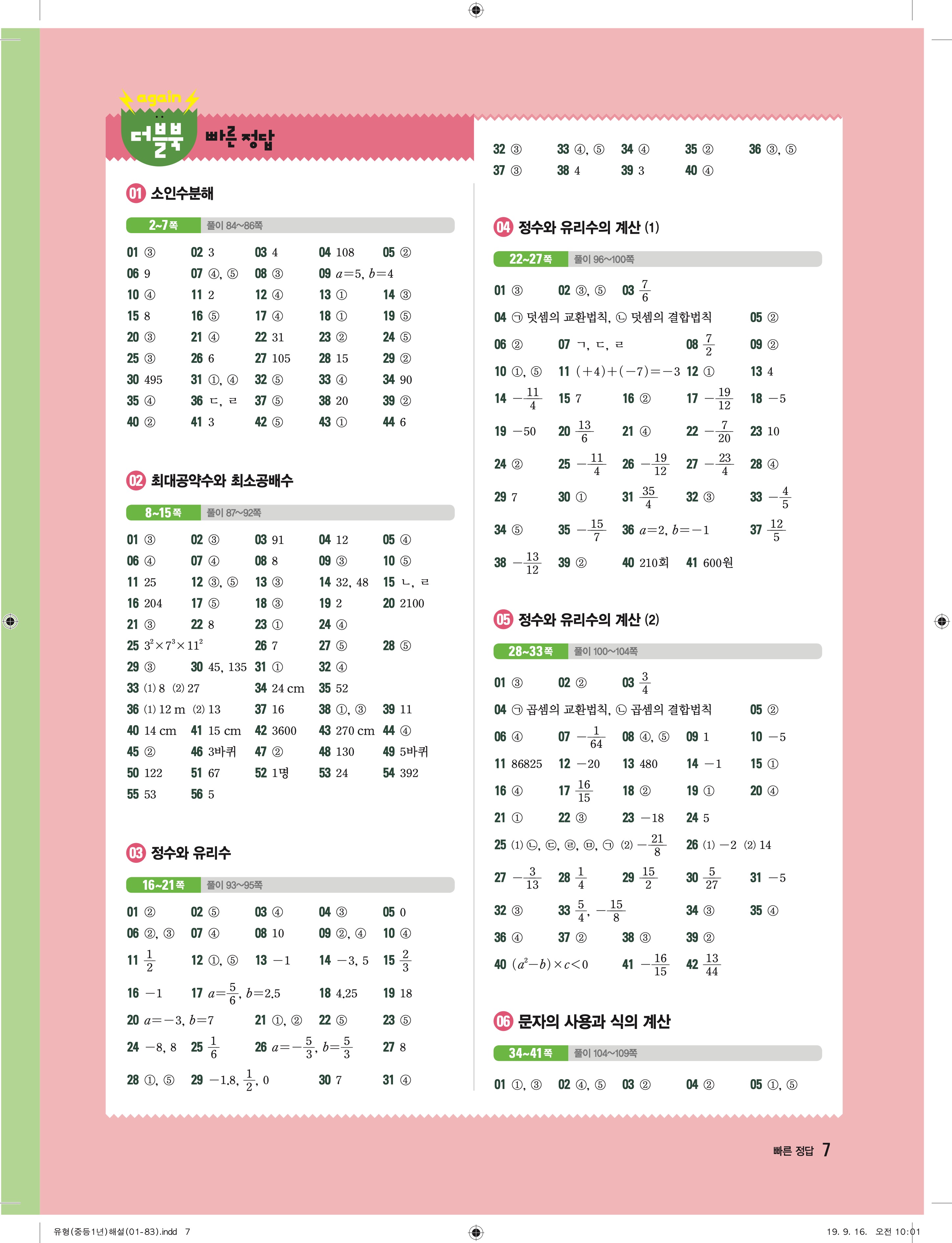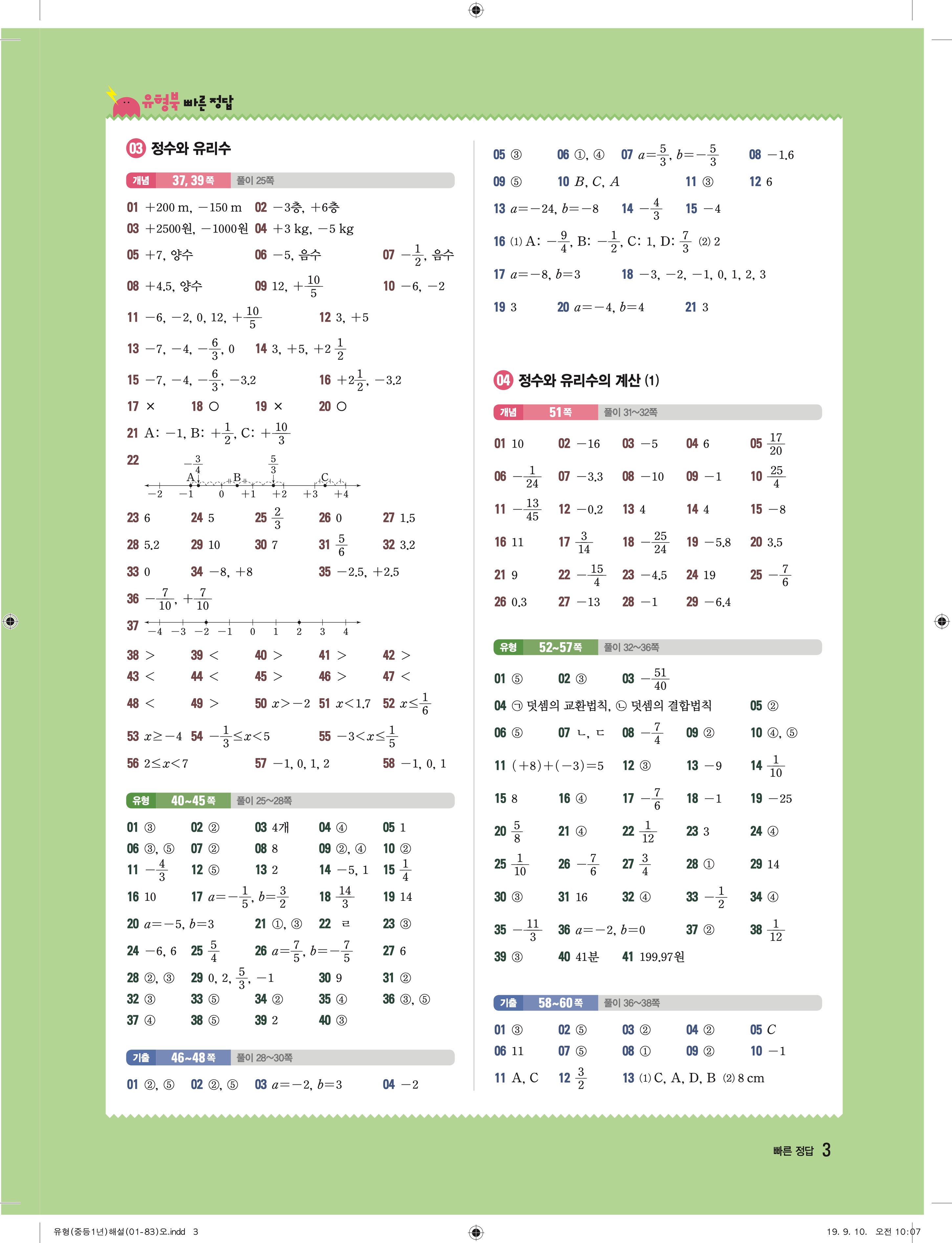 유형더블 중학수학 1-1 더블북 답지 해설 바로보는 사진답지 빠른답지 모바일최적화