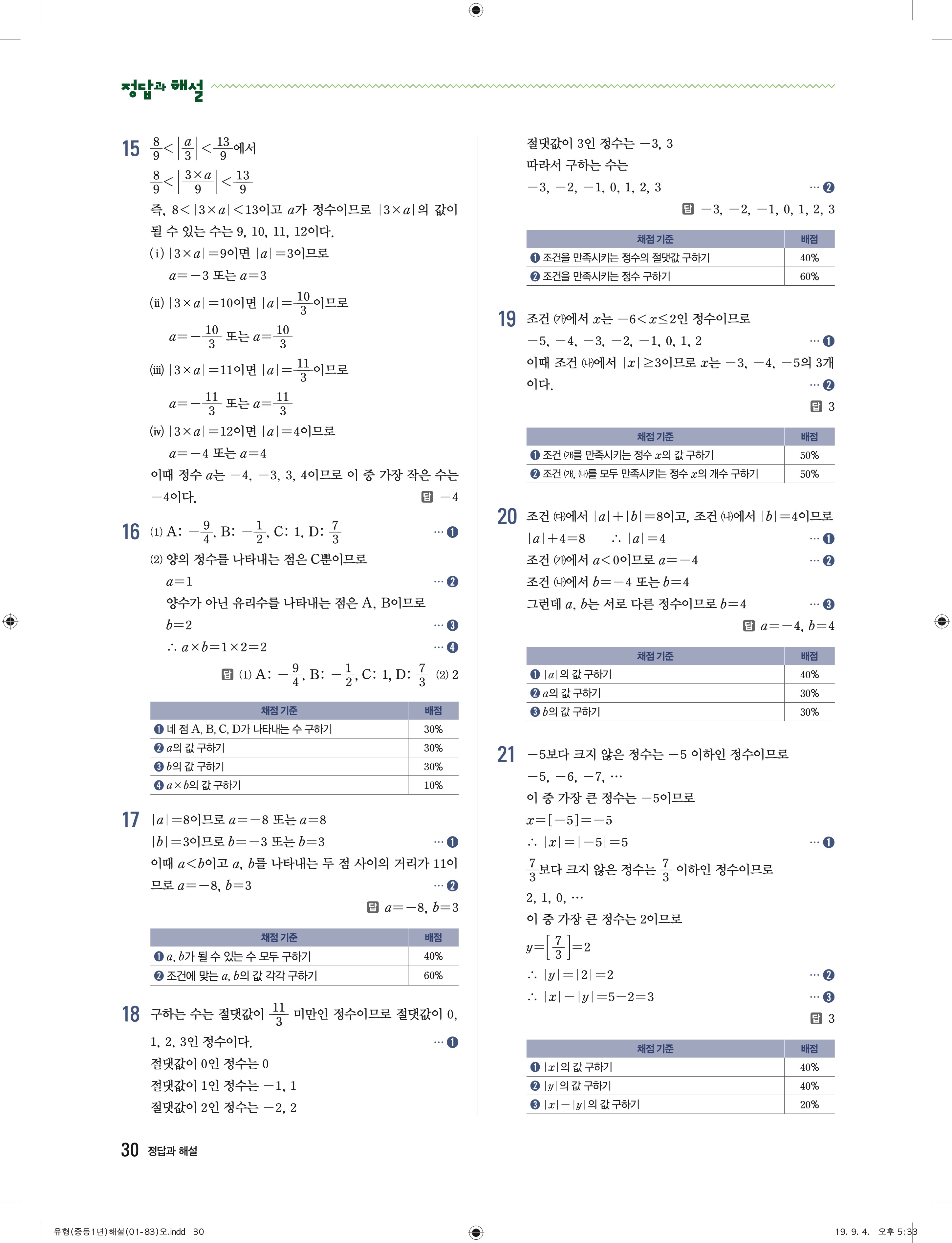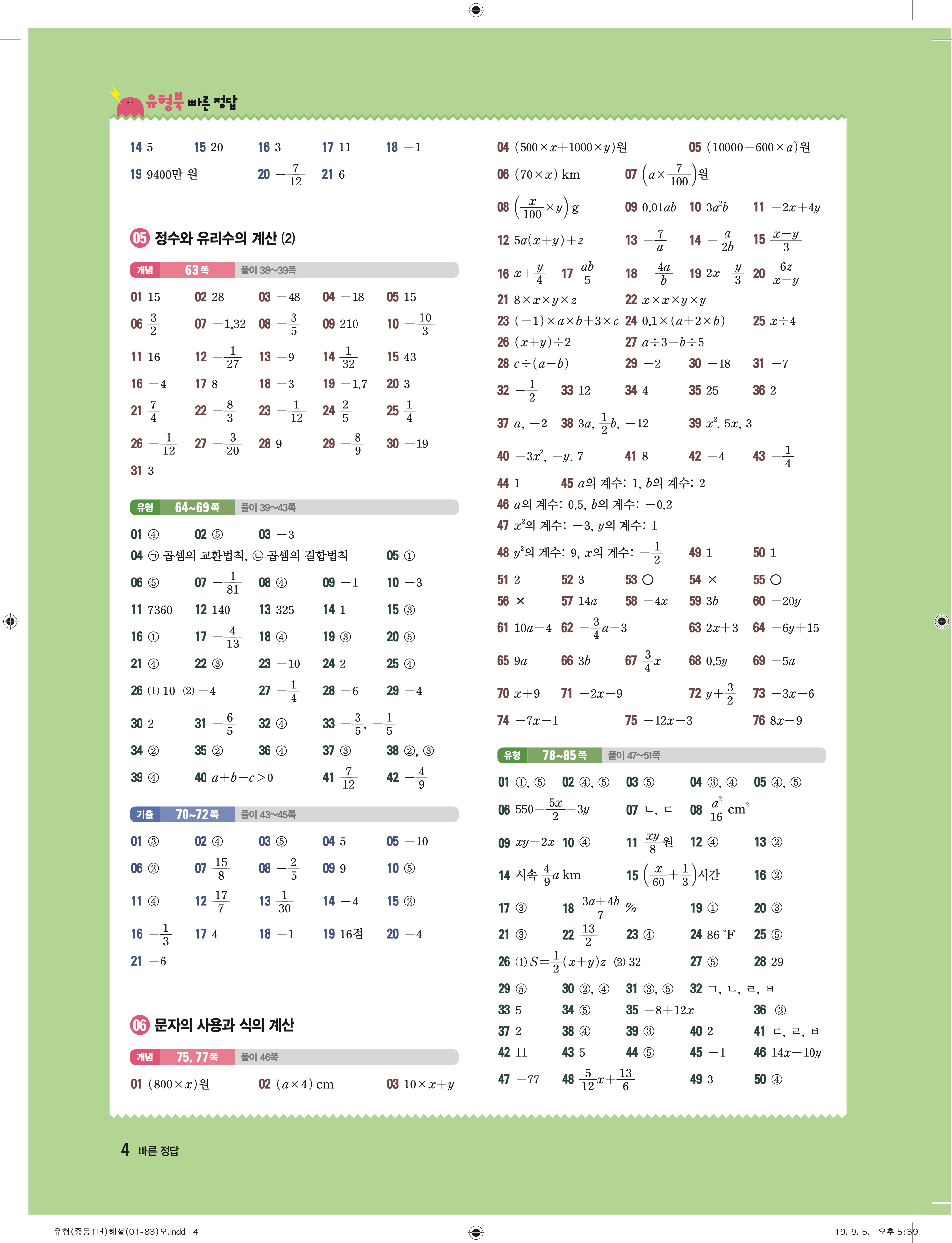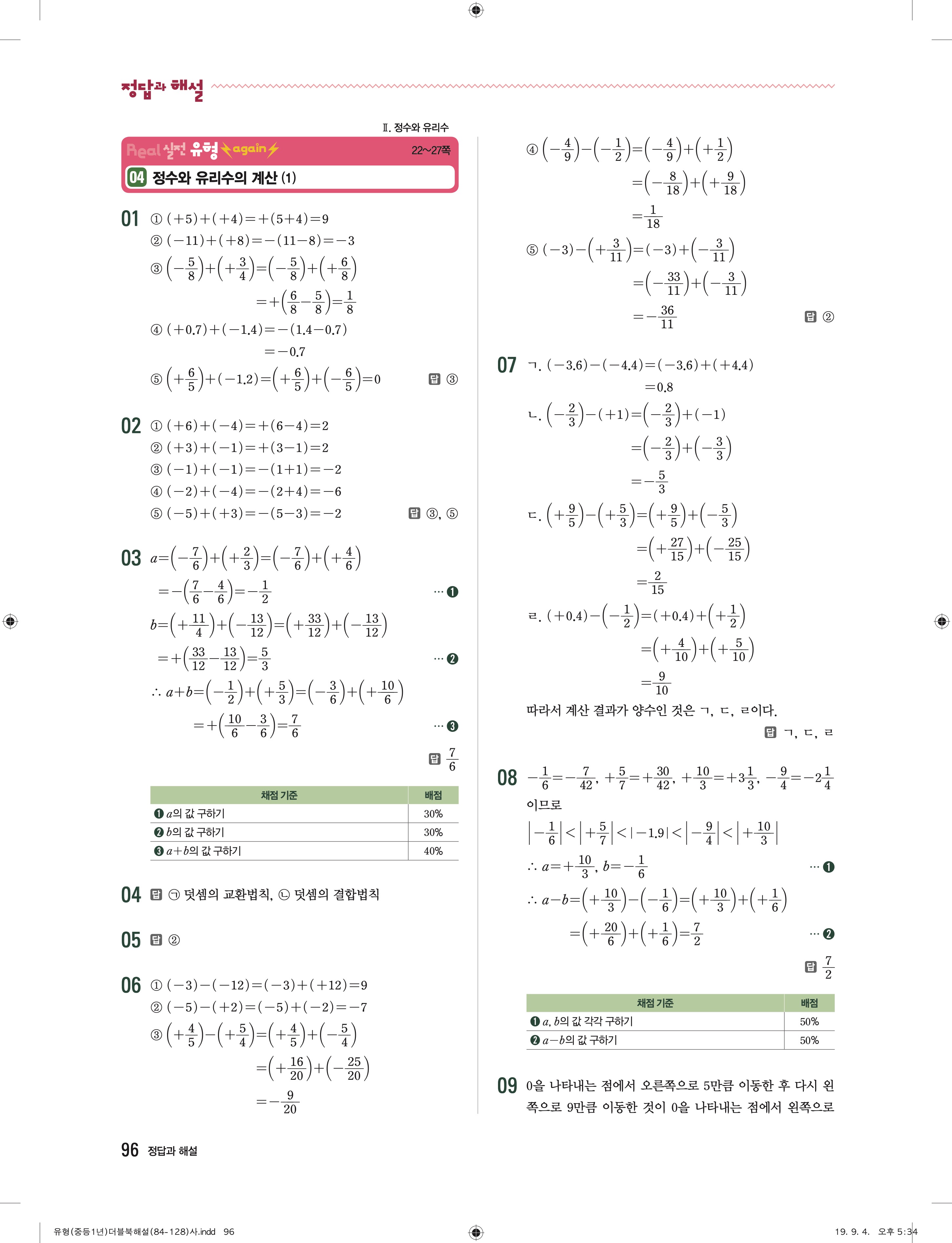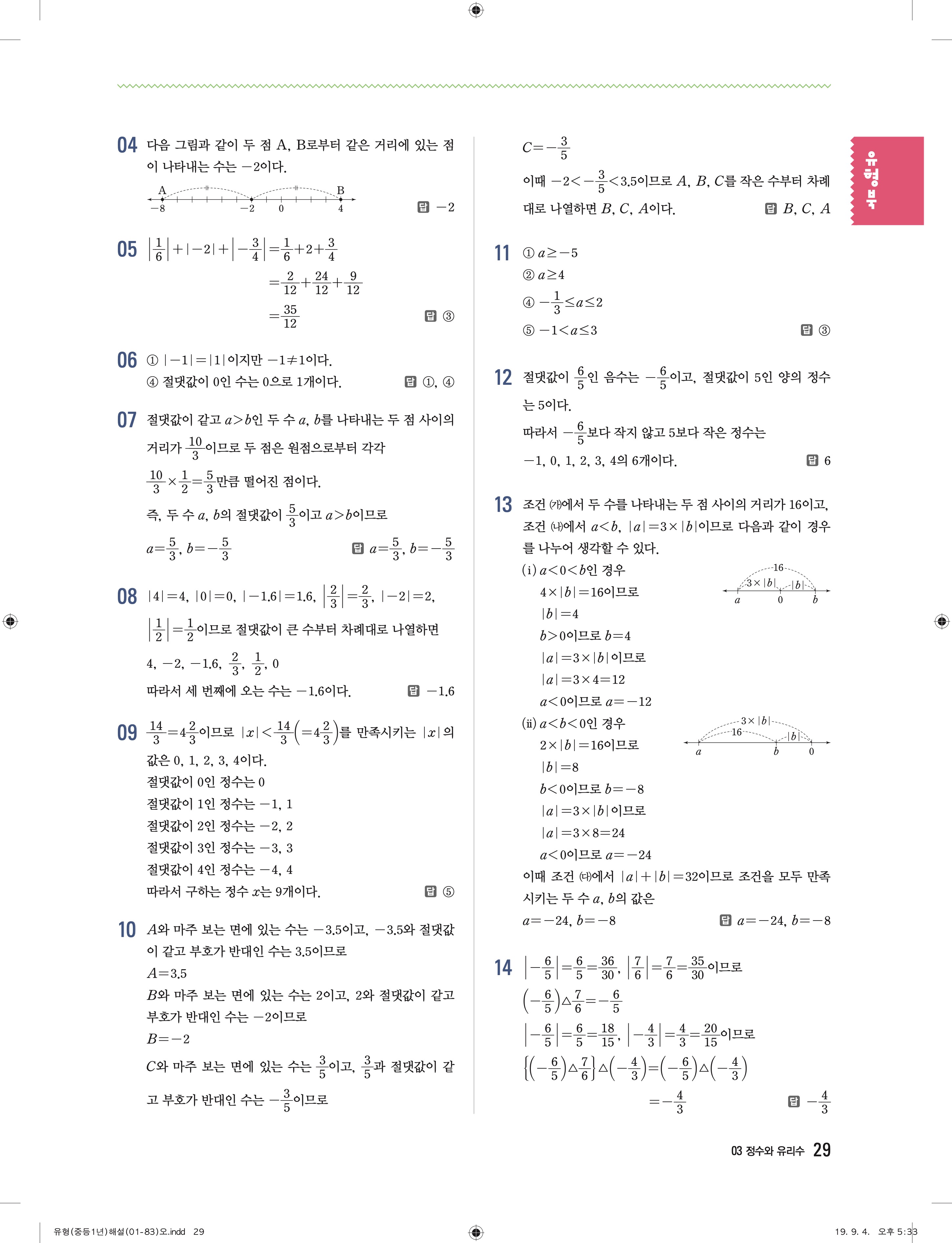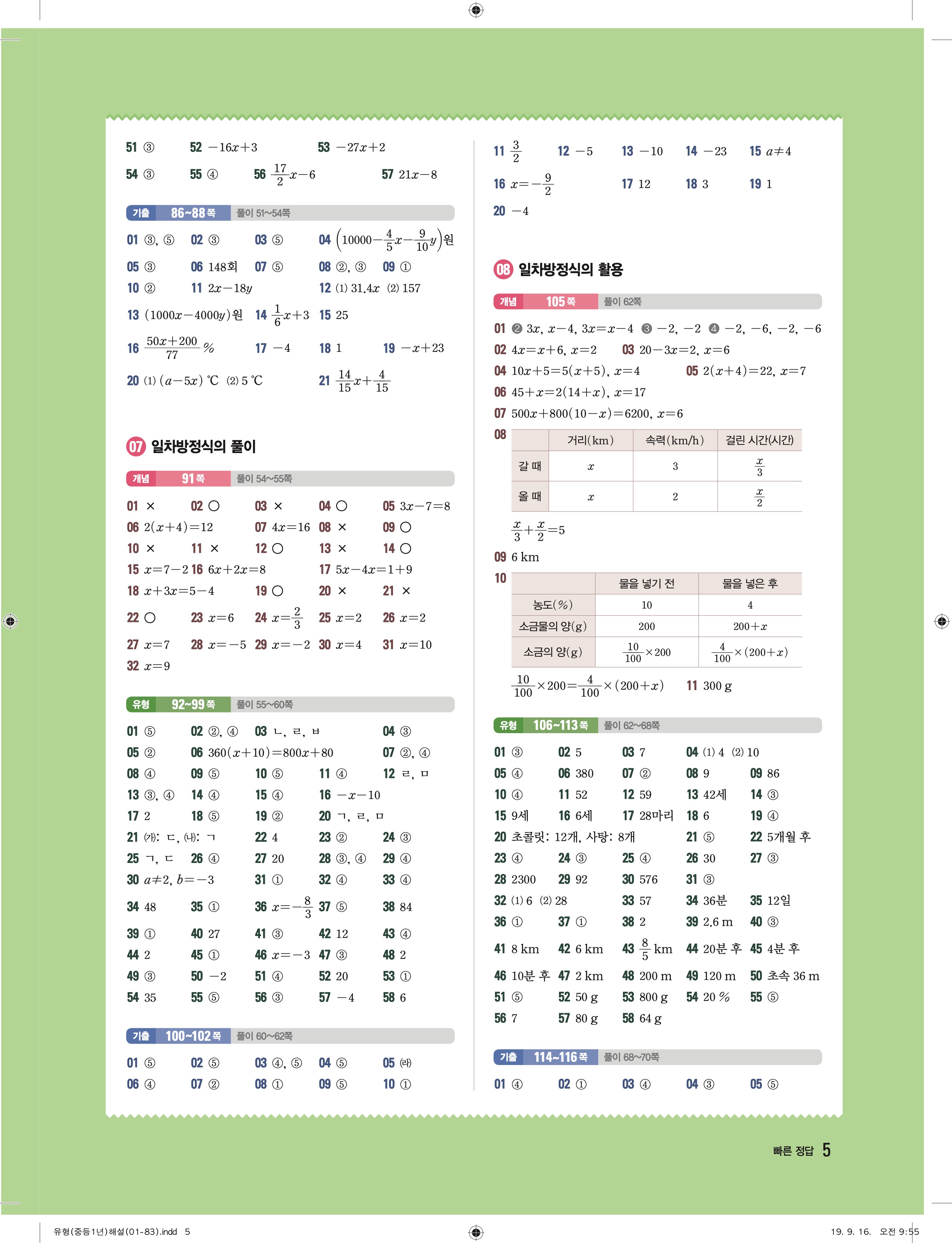 유형더블 중학수학 1-1 더블북 답지 해설 바로보는 사진답지 빠른답지 모바일최적화