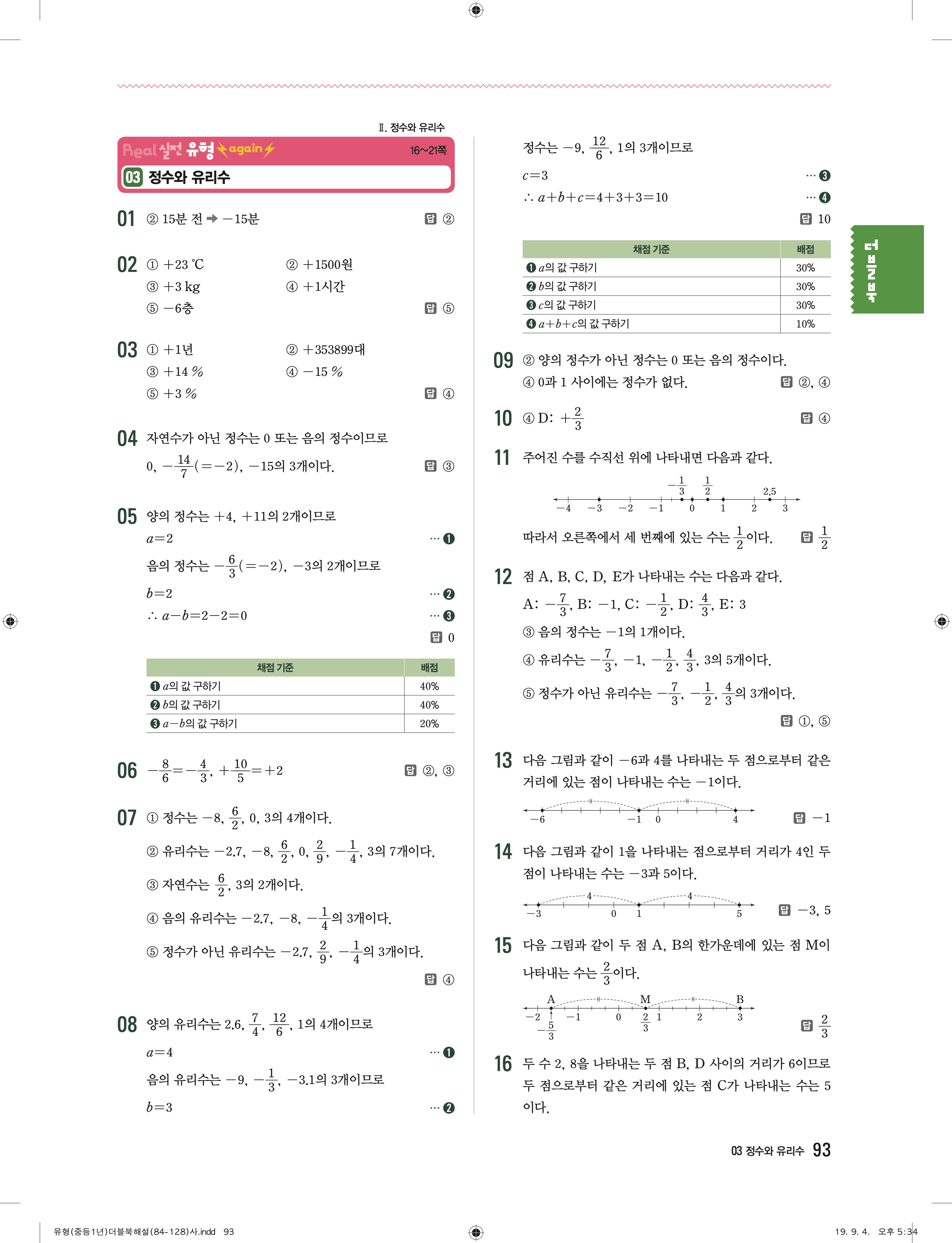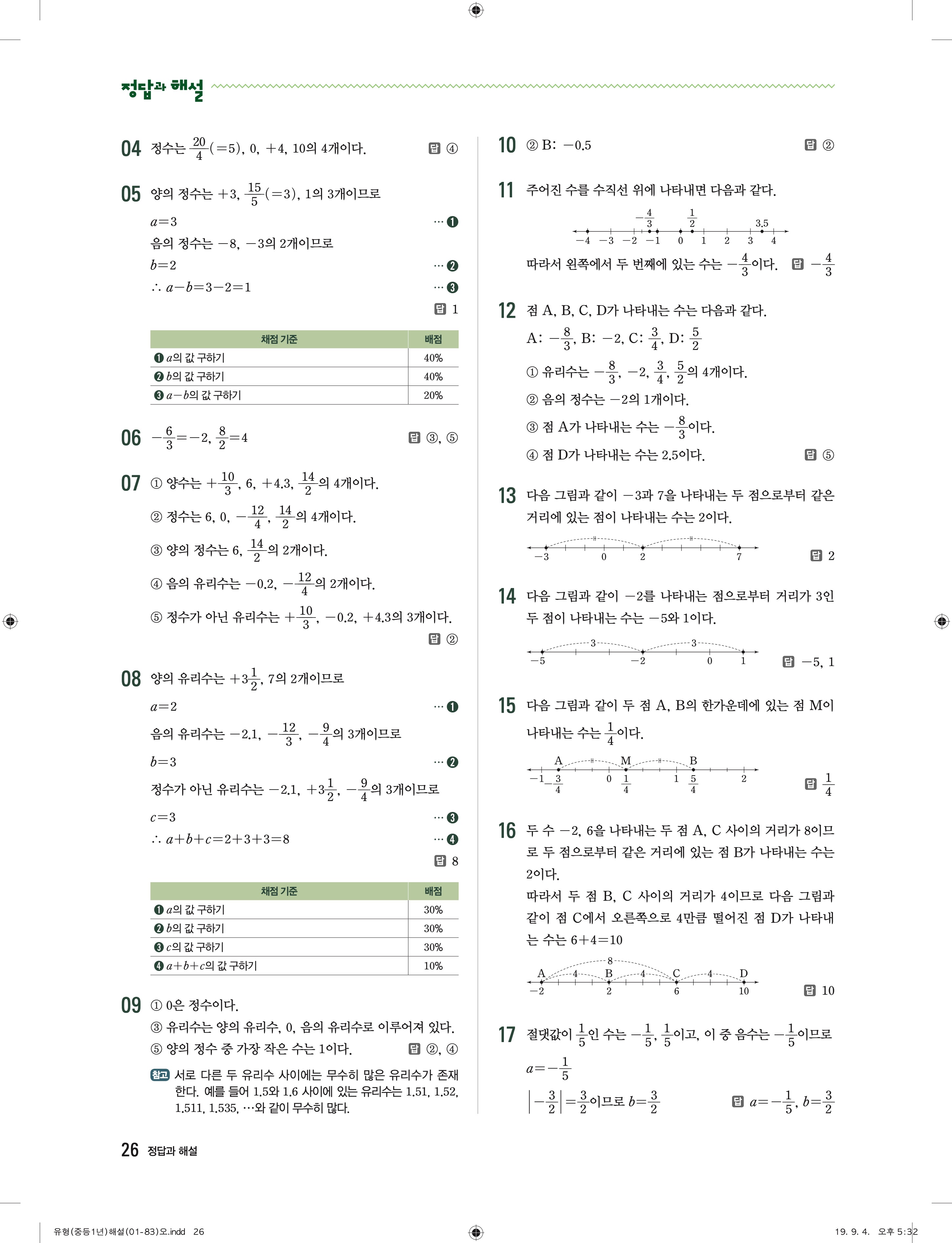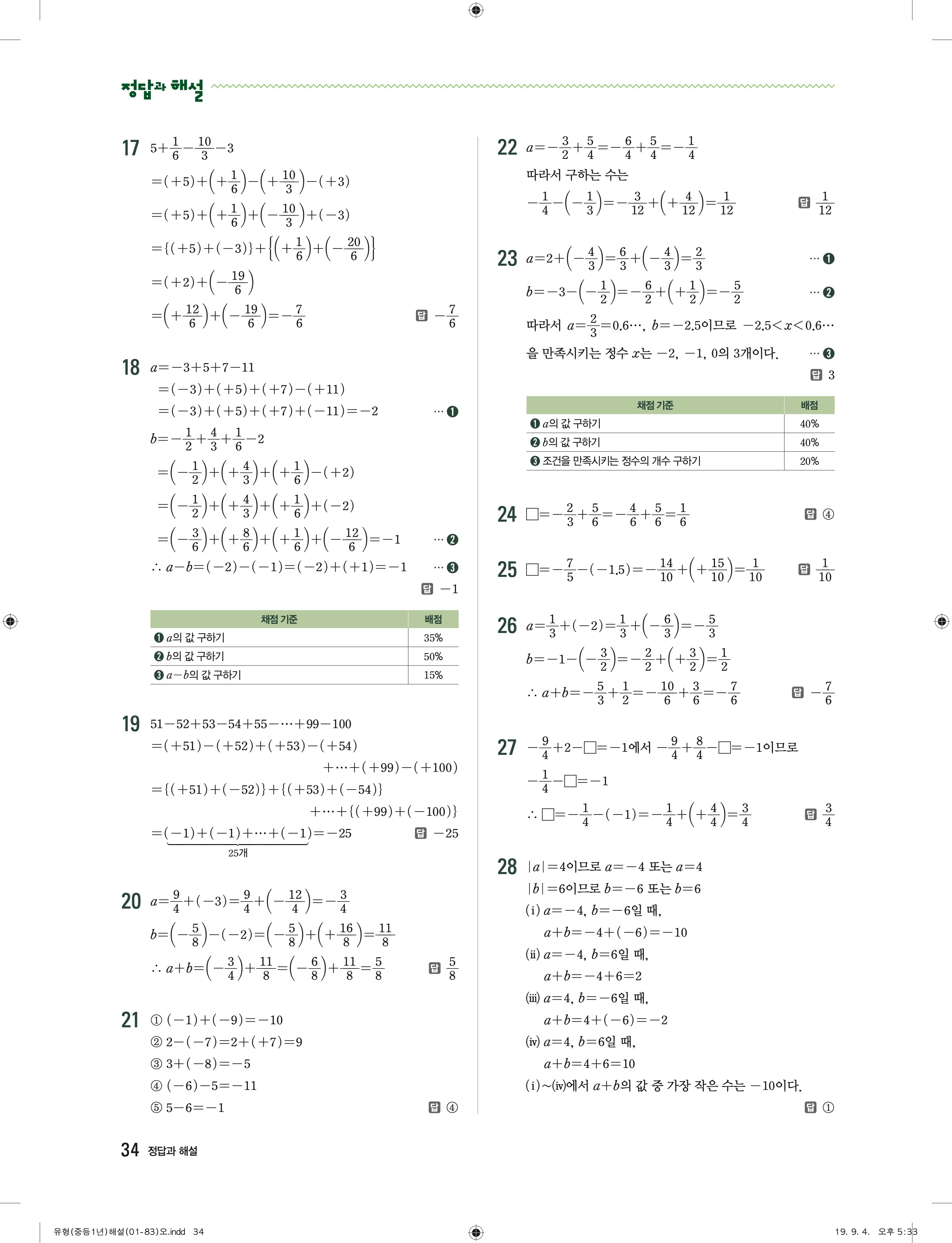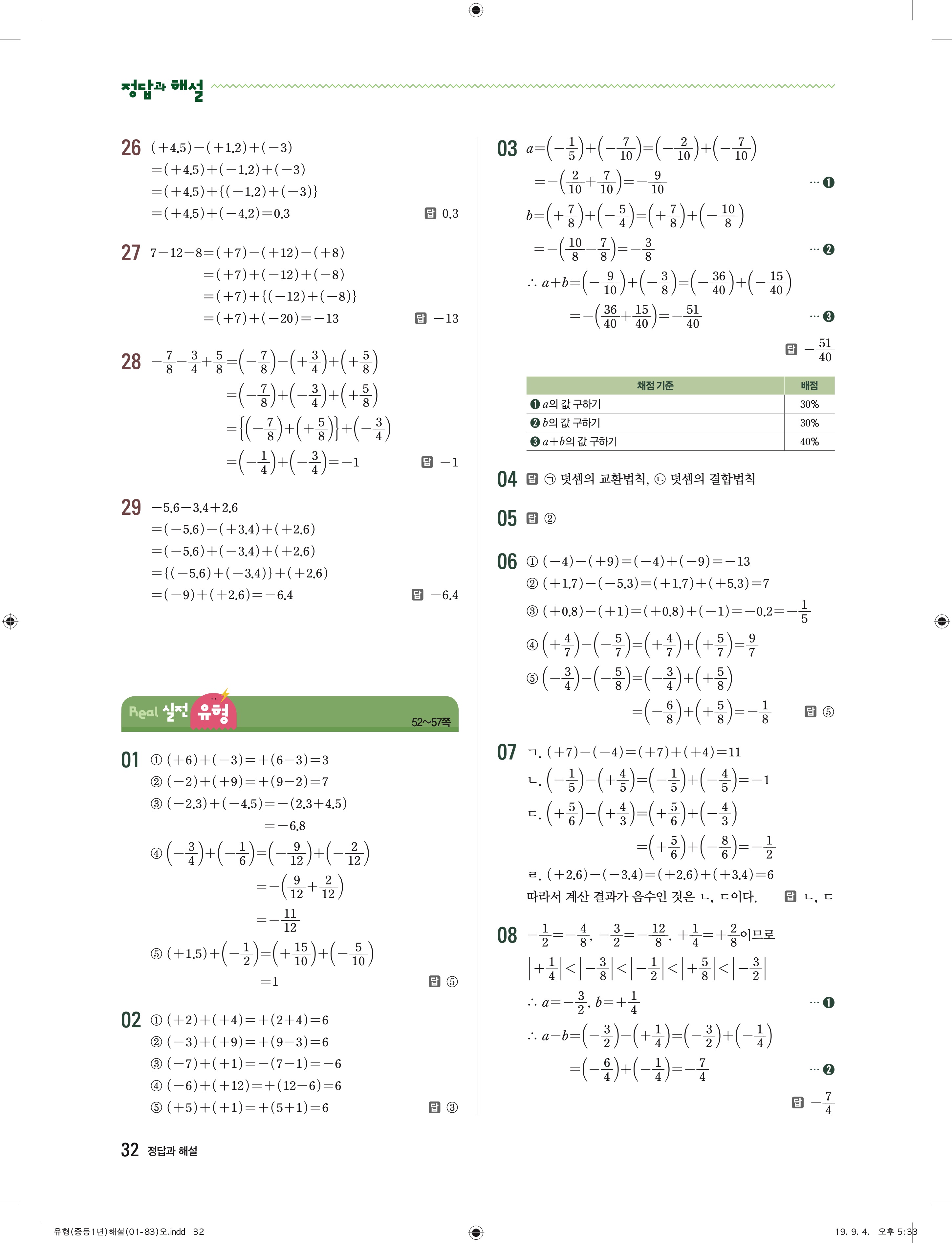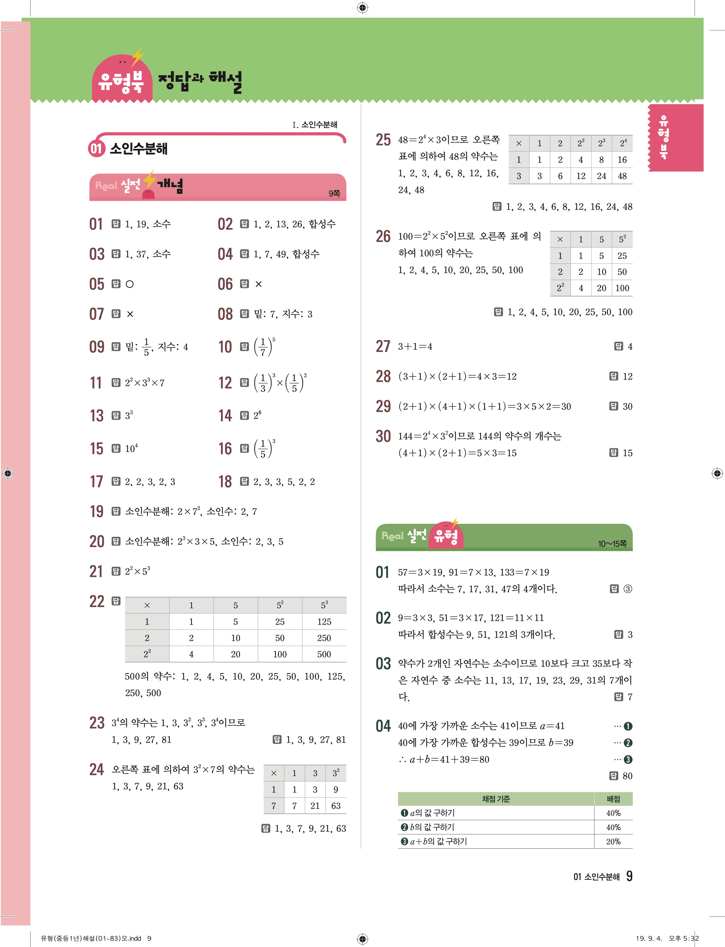 유형더블 중학수학 1-1 더블북 답지 해설 바로보는 사진답지 빠른답지 모바일최적화
