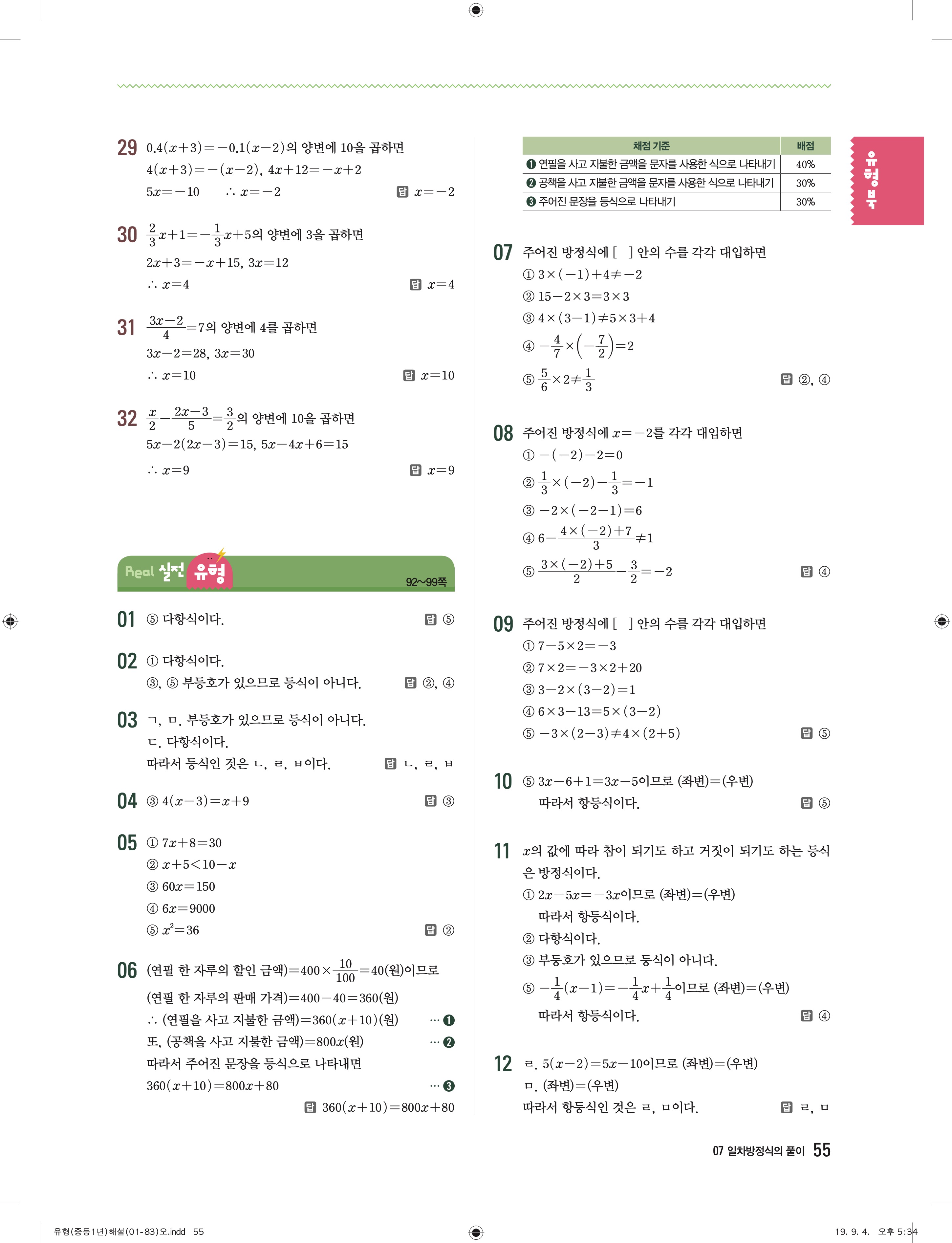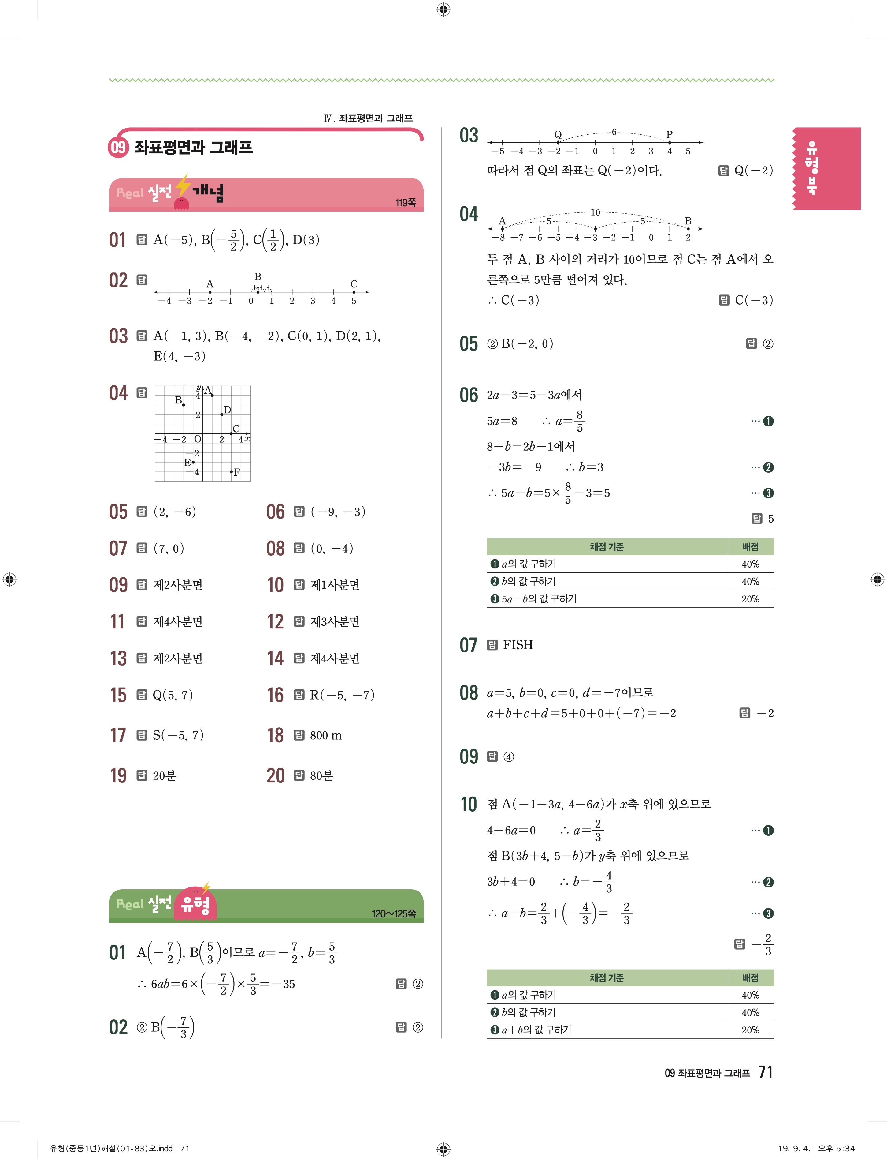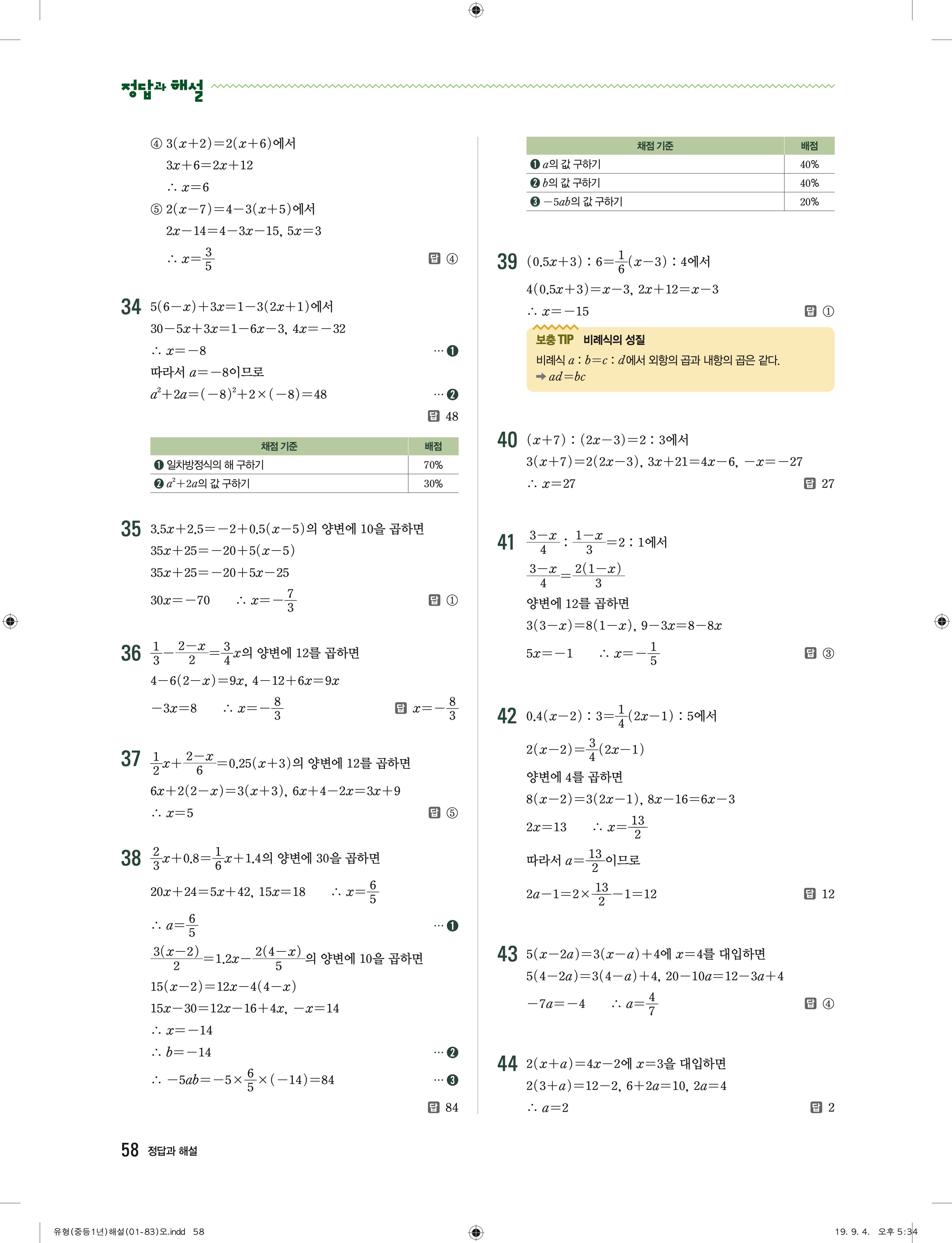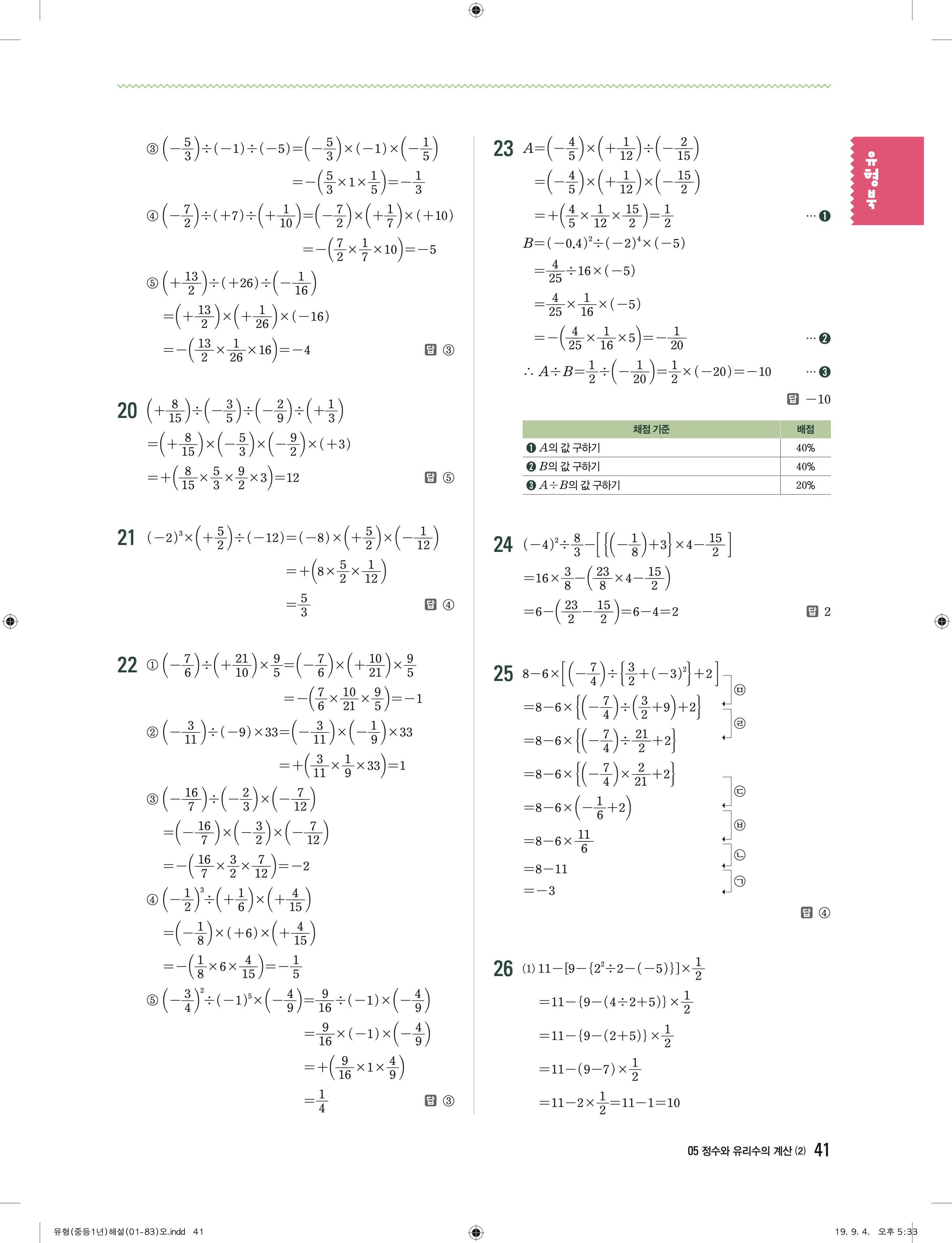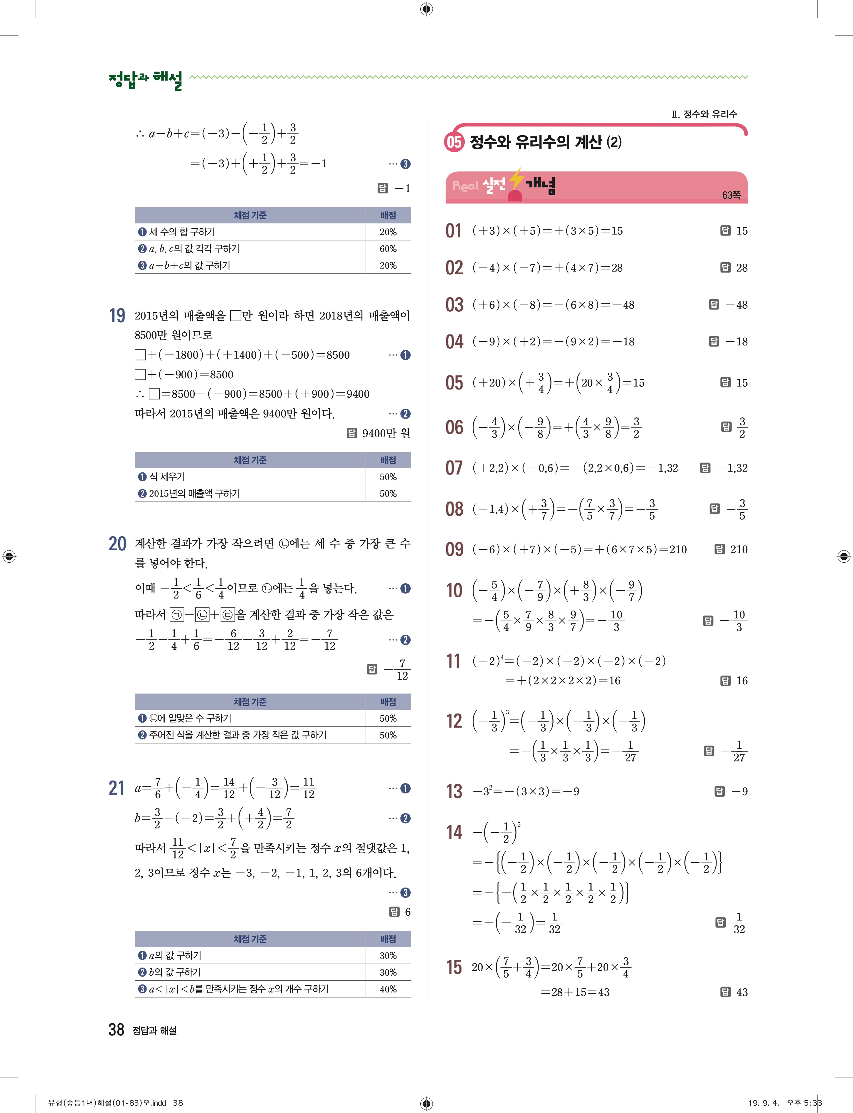 유형더블 중학수학 1-1 더블북 답지 해설 바로보는 사진답지 빠른답지 모바일최적화
