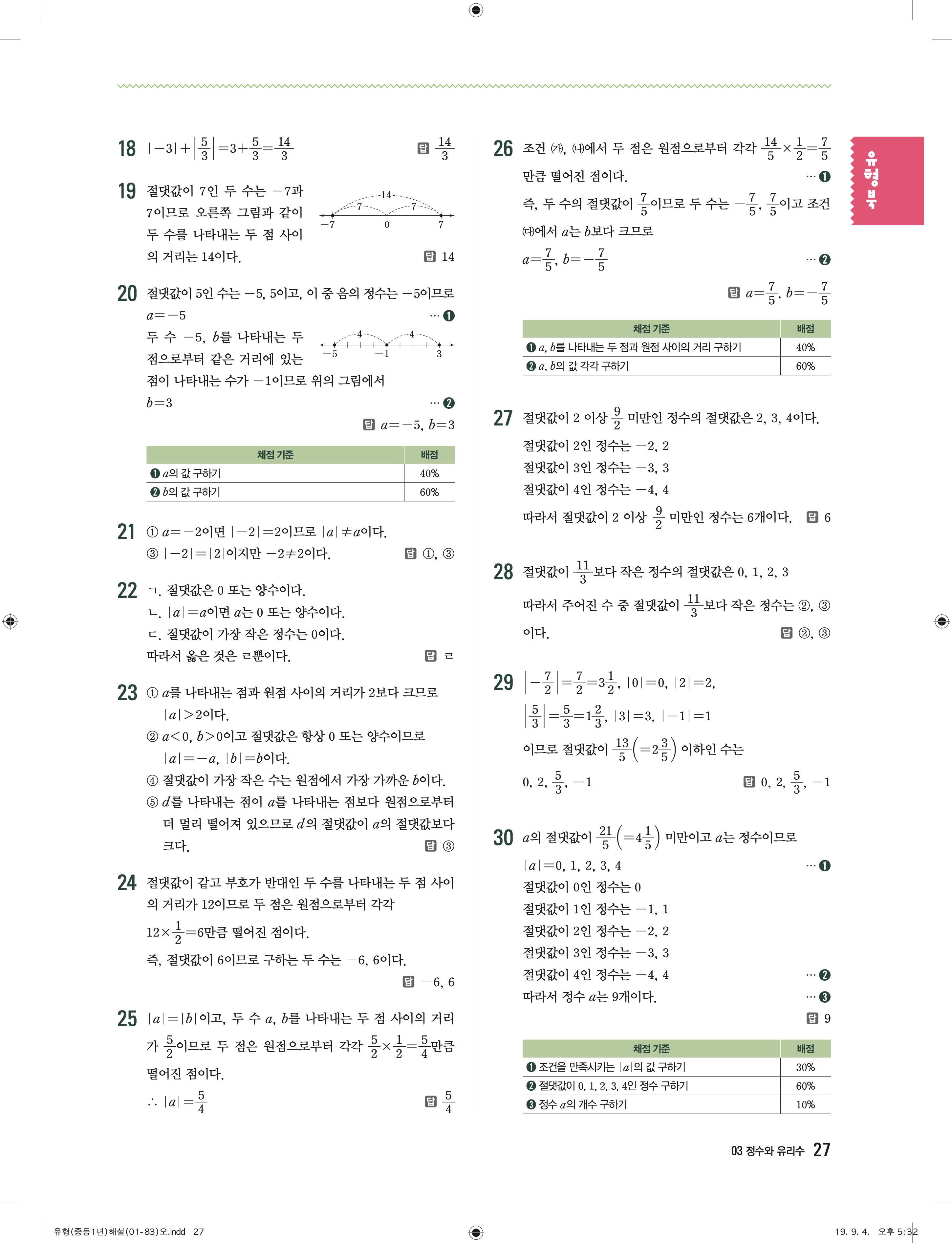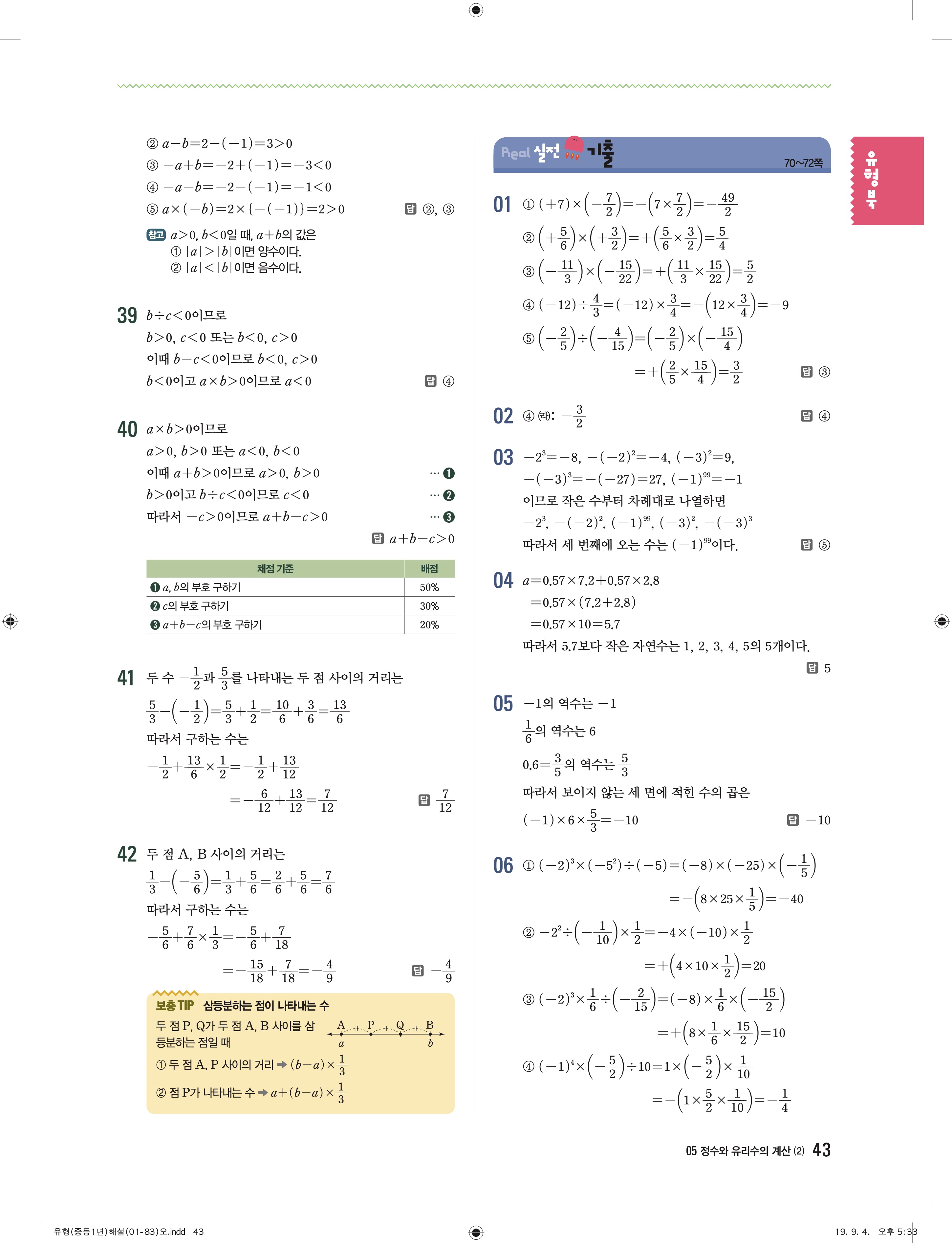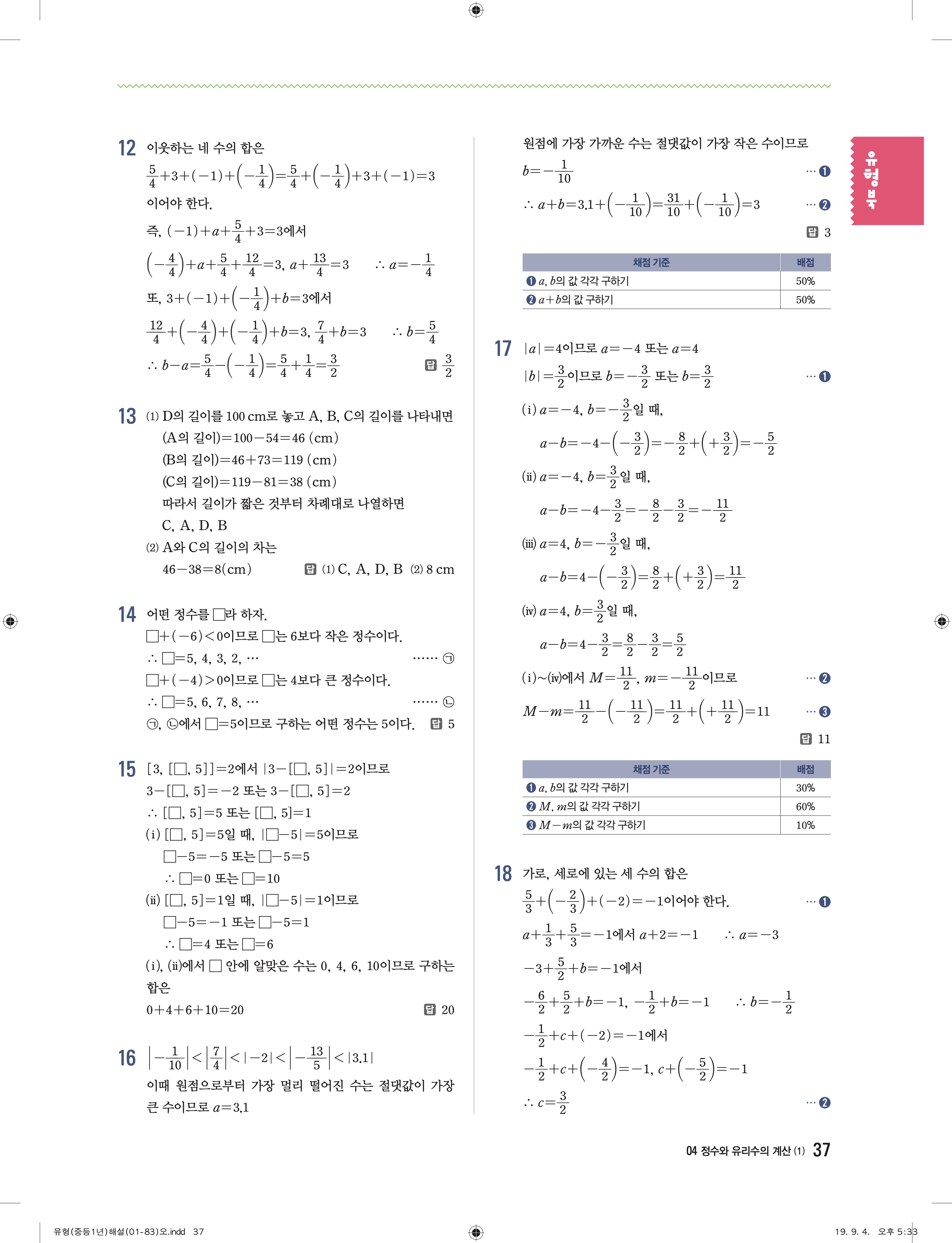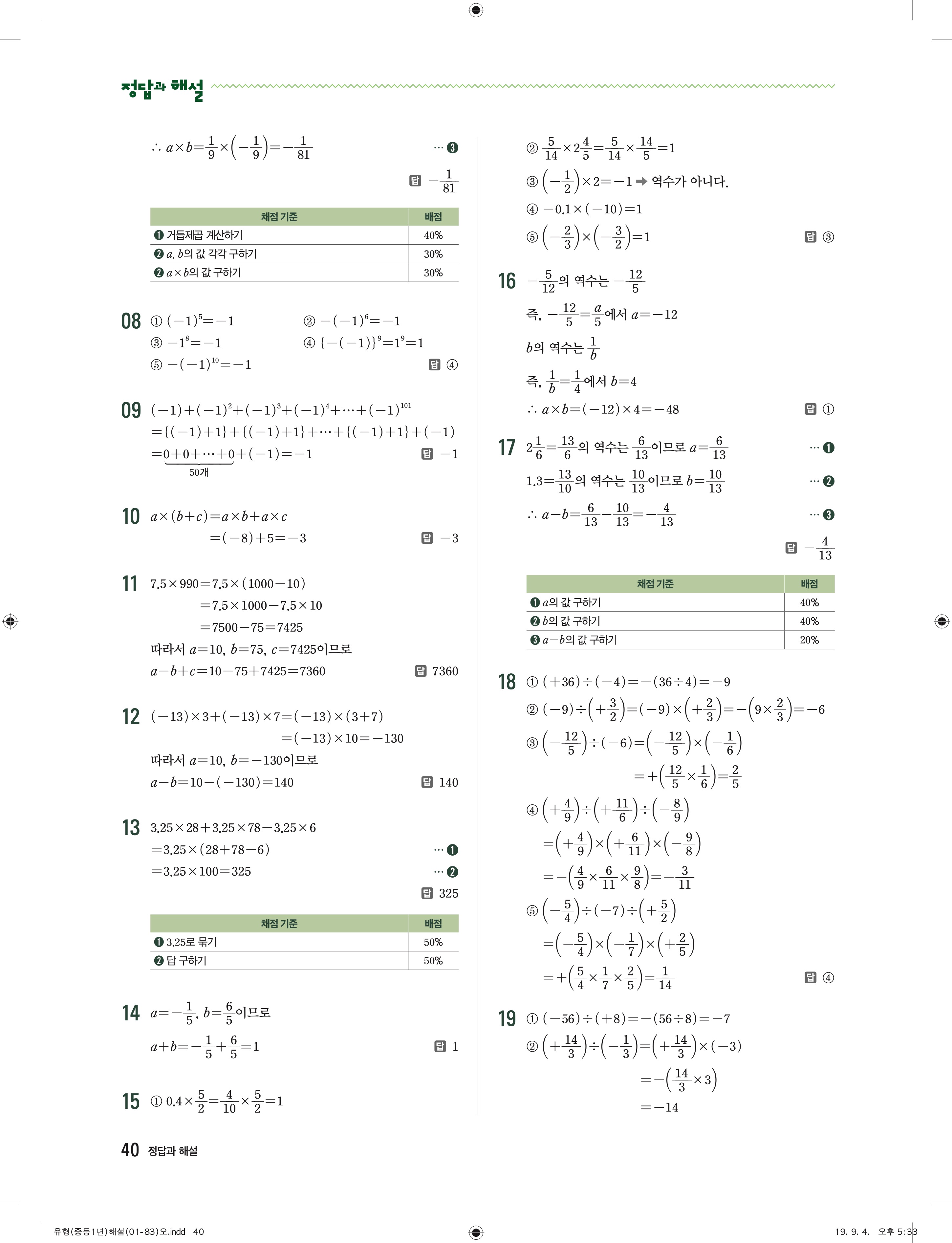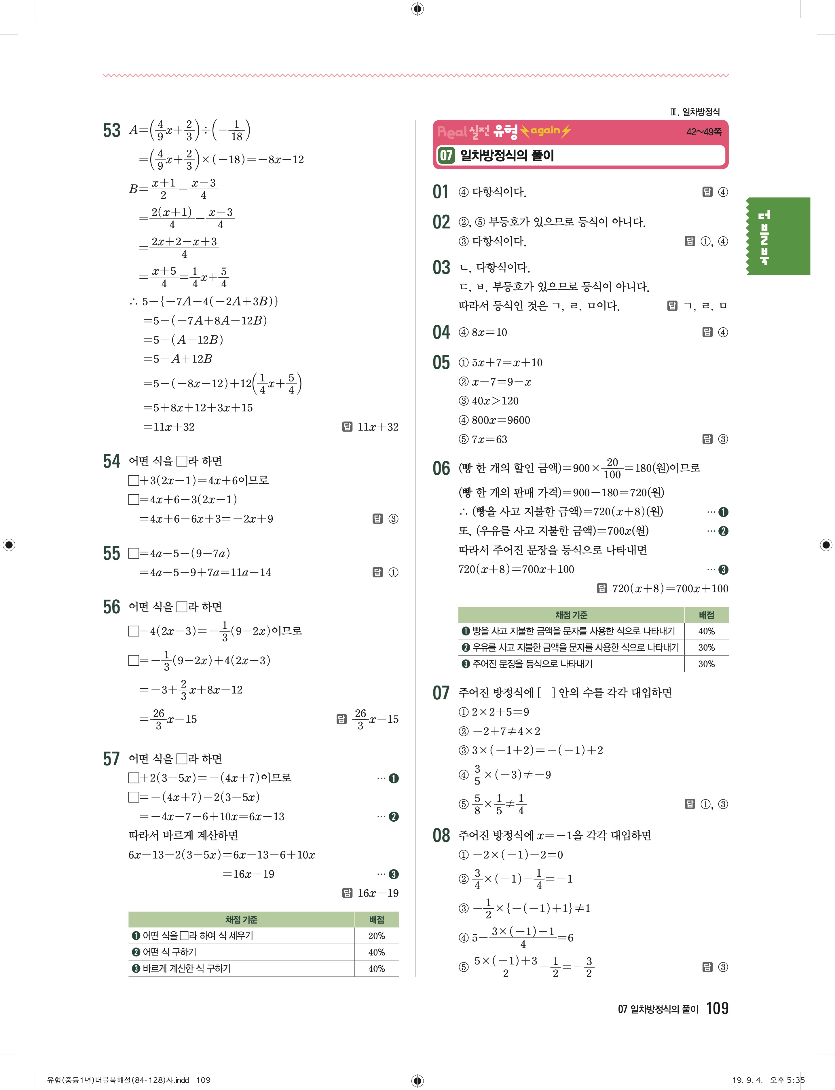 유형더블 중학수학 1-1 더블북 답지 해설 바로보는 사진답지 빠른답지 모바일최적화