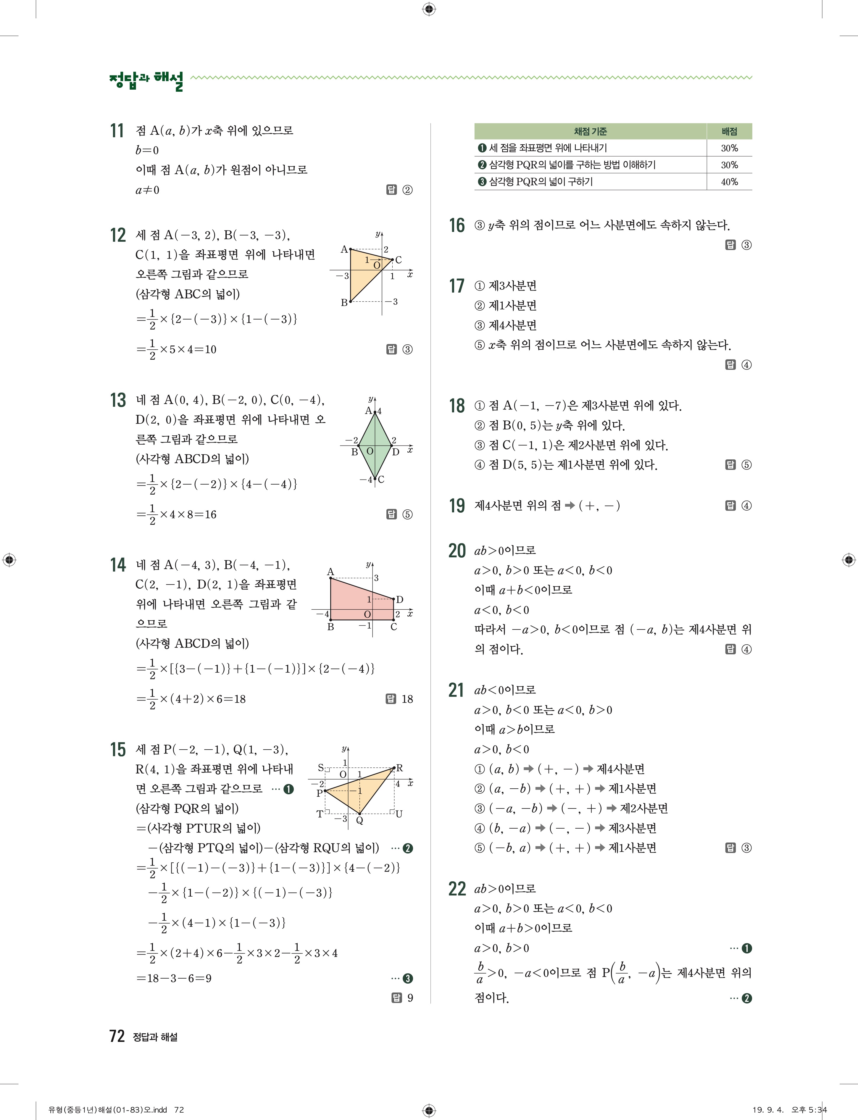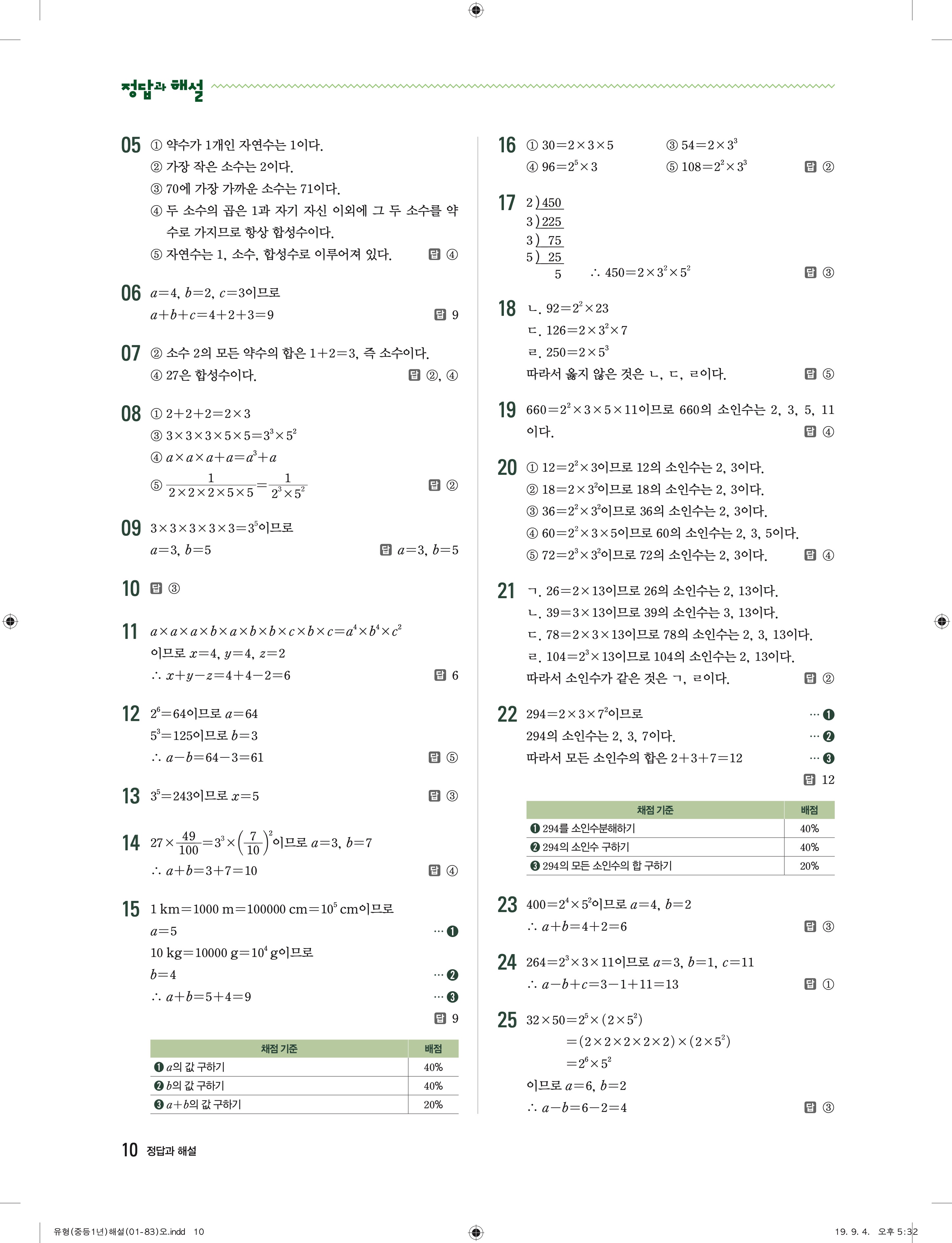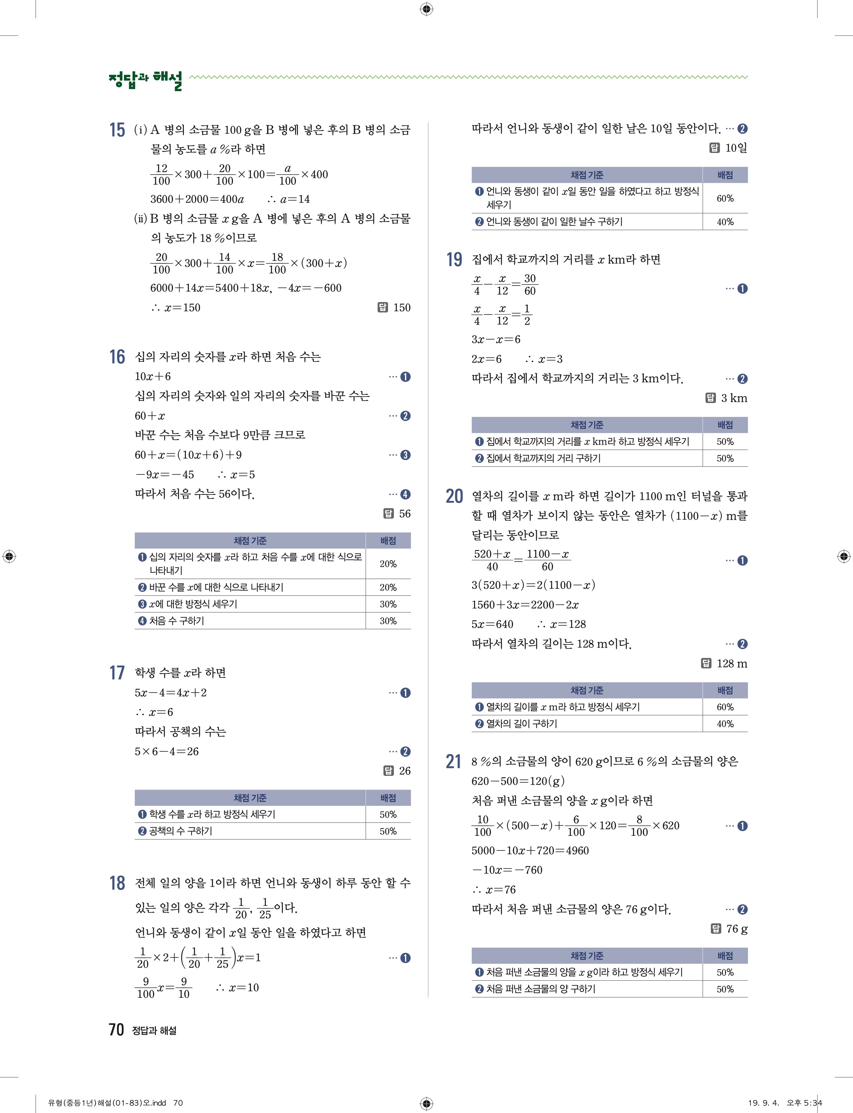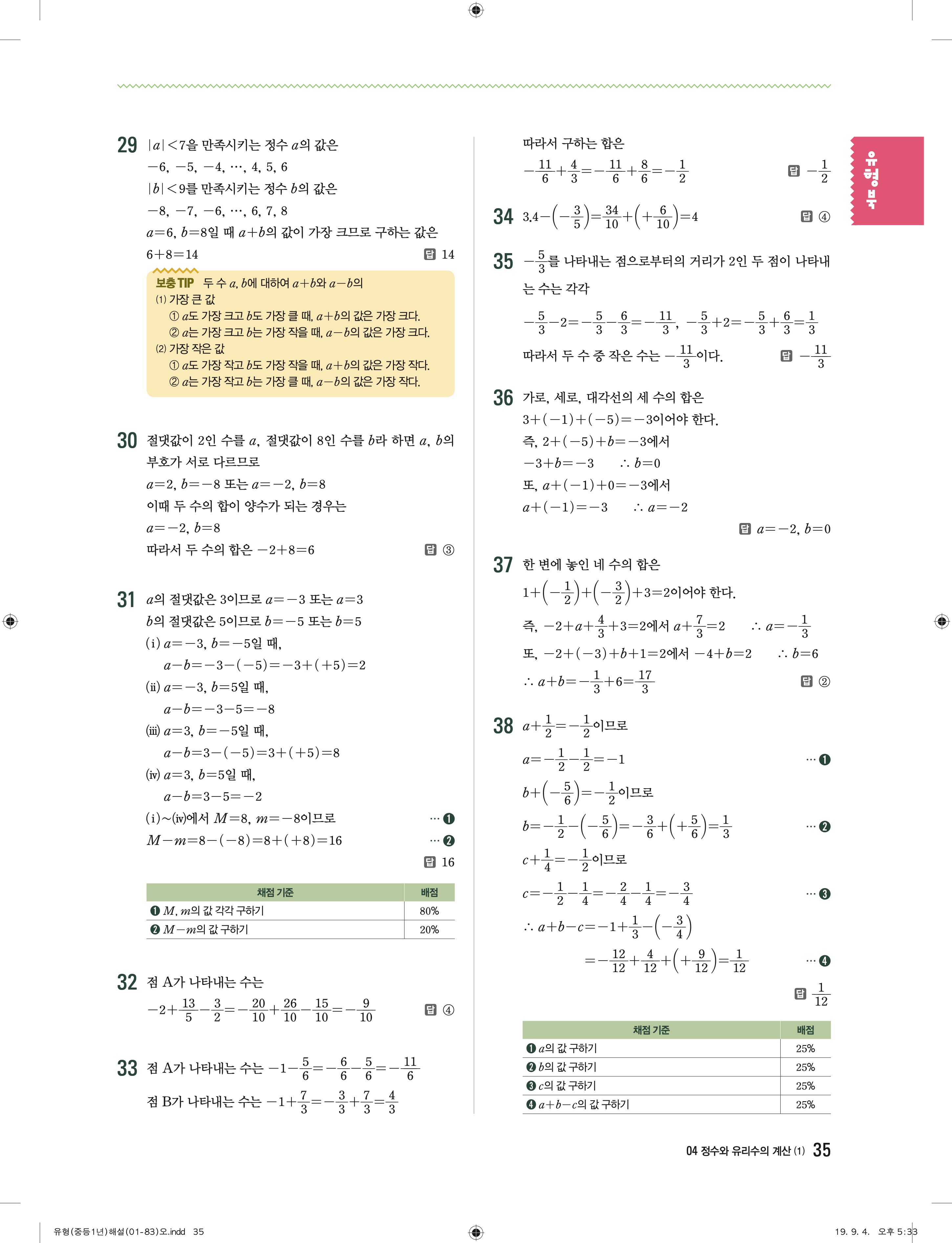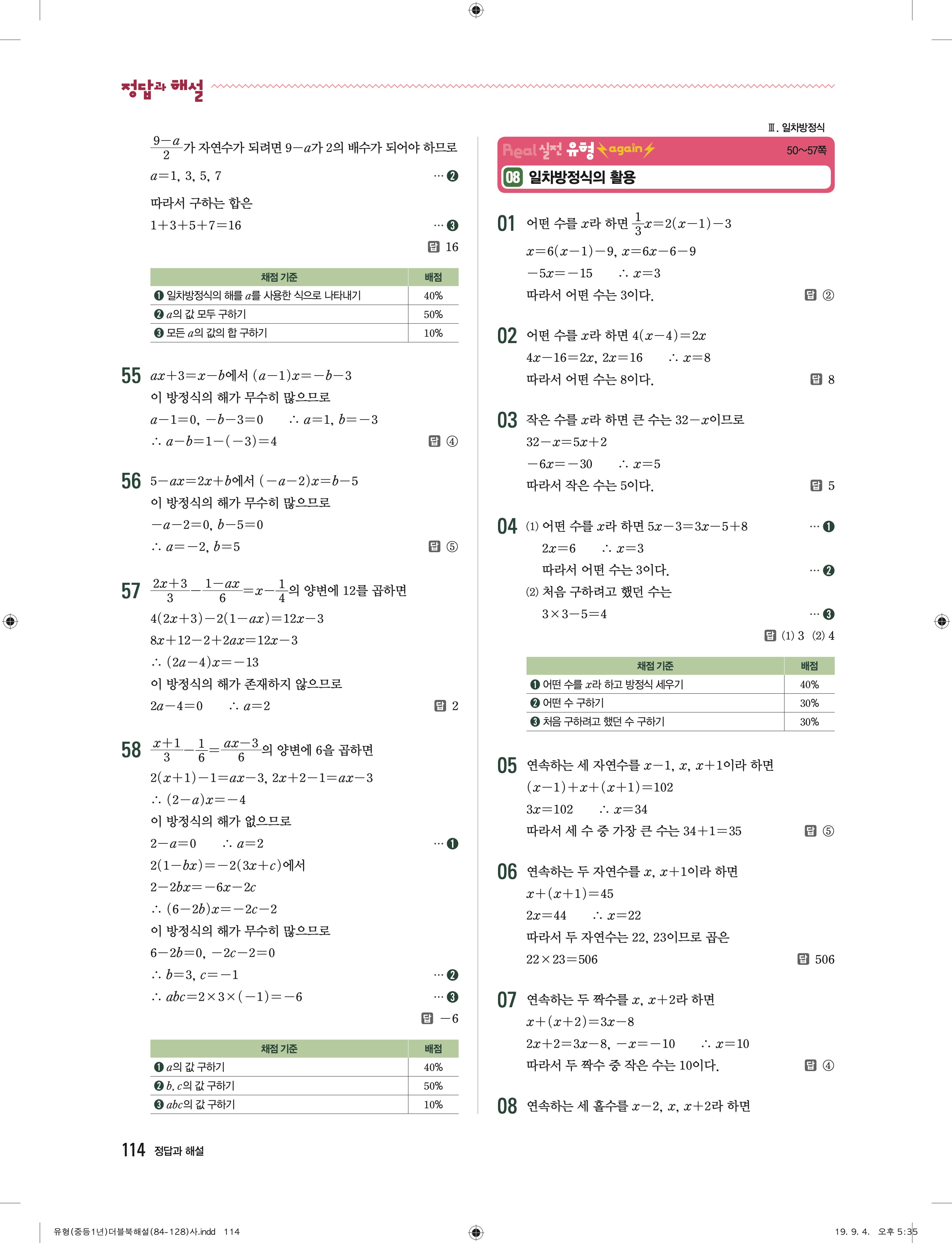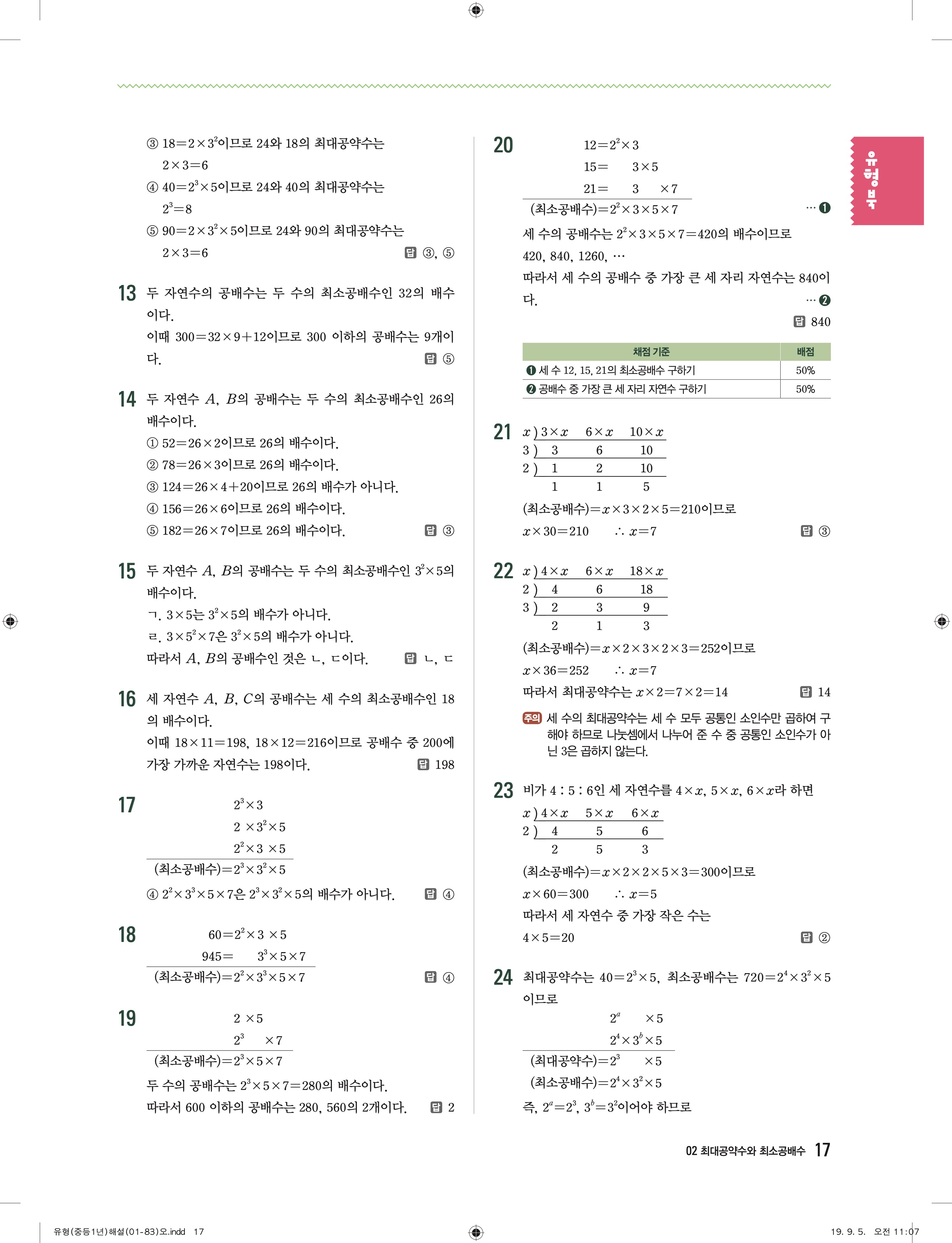 유형더블 중학수학 1-1 더블북 답지 해설 바로보는 사진답지 빠른답지 모바일최적화