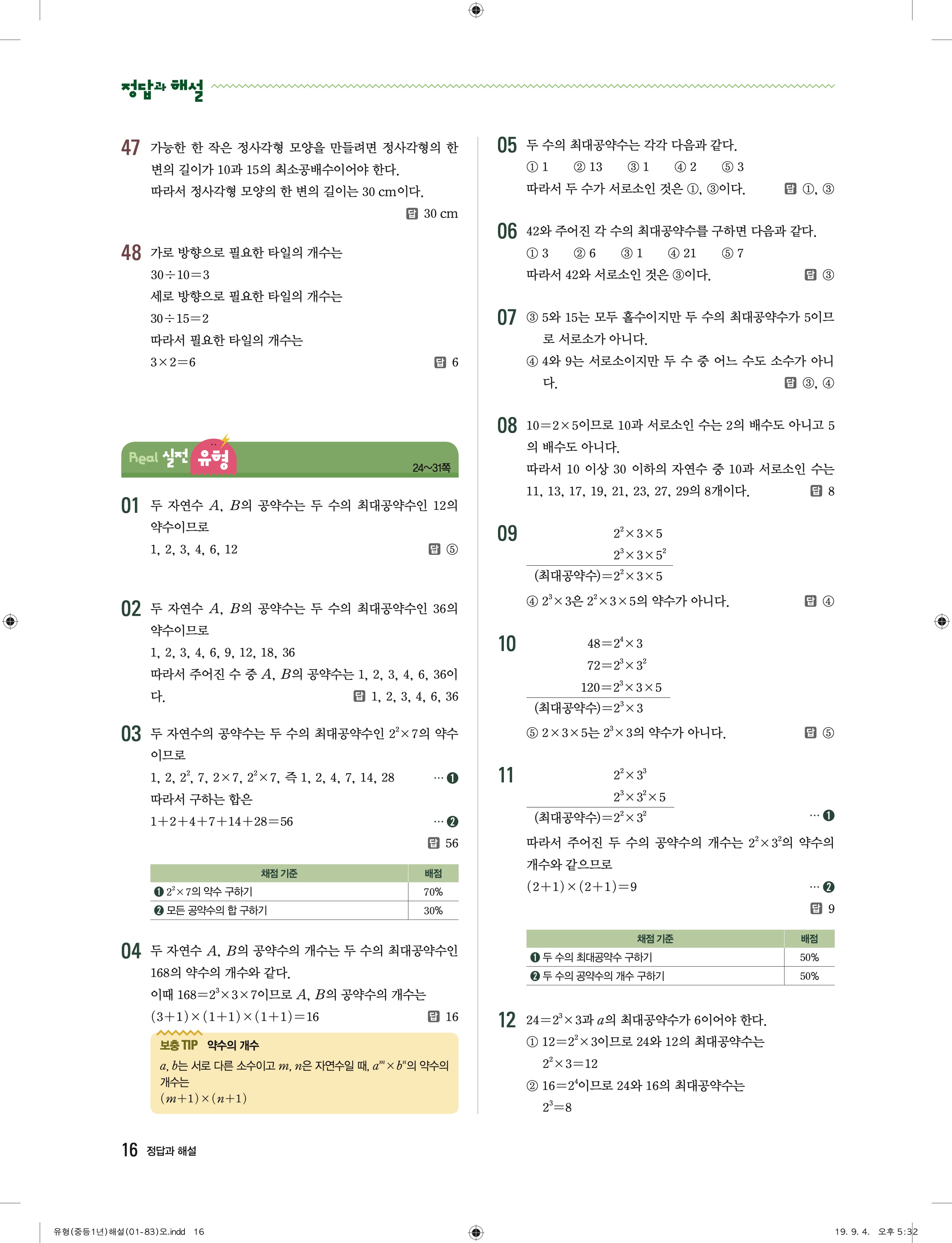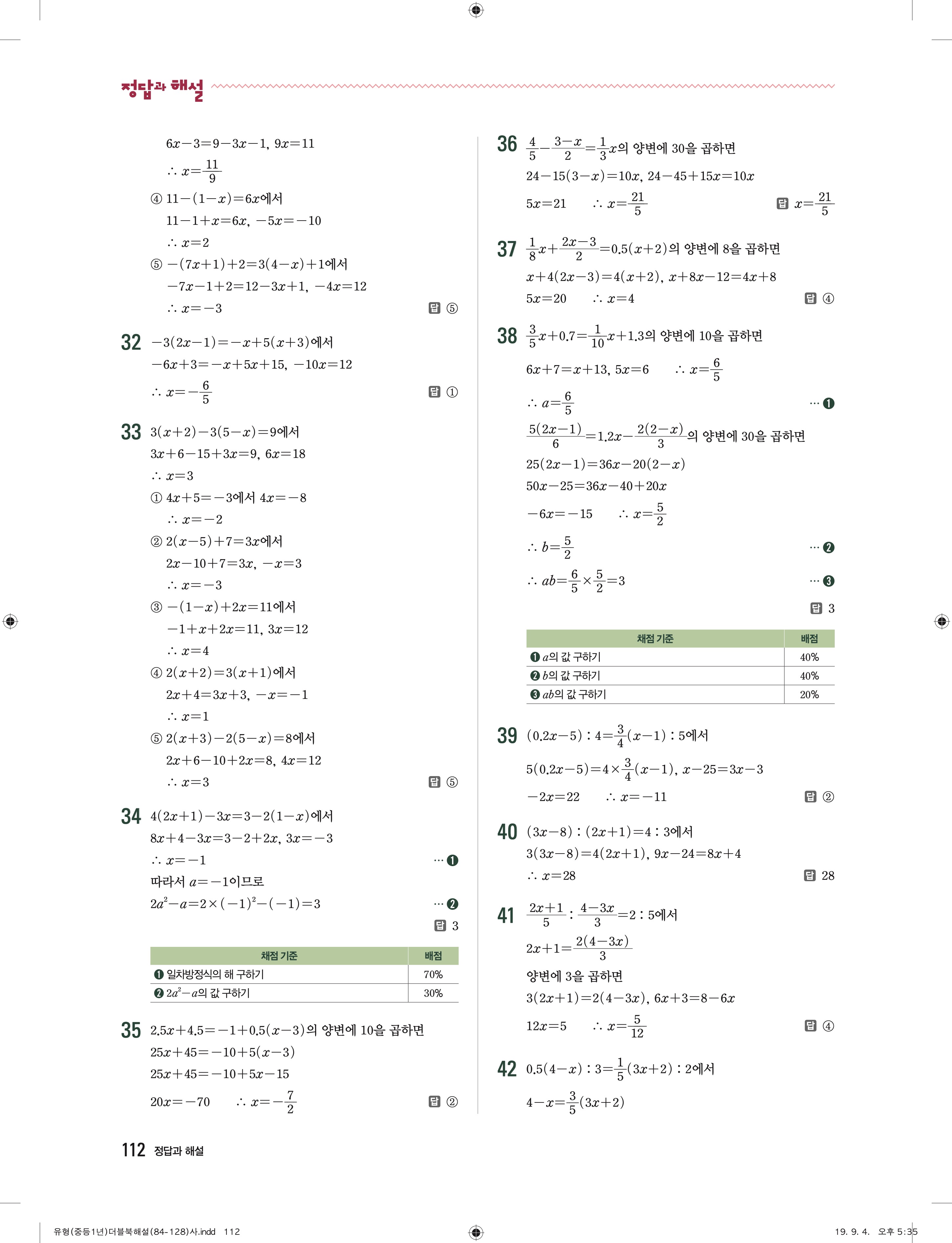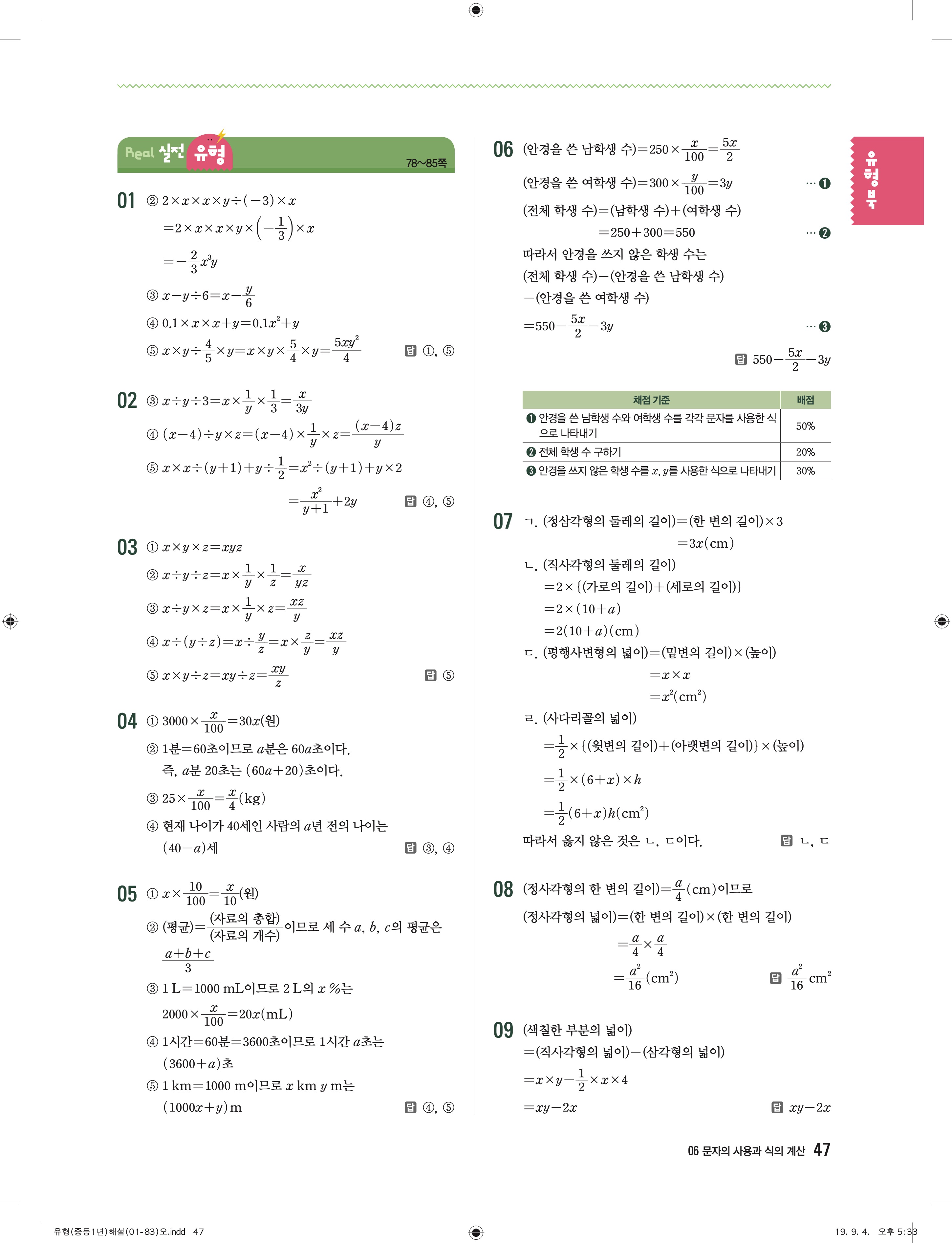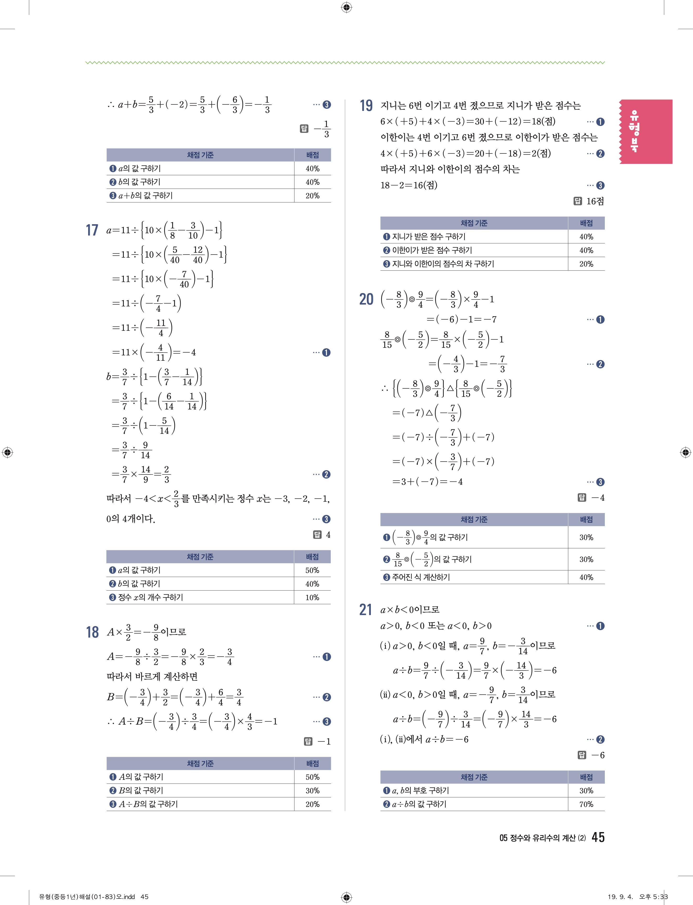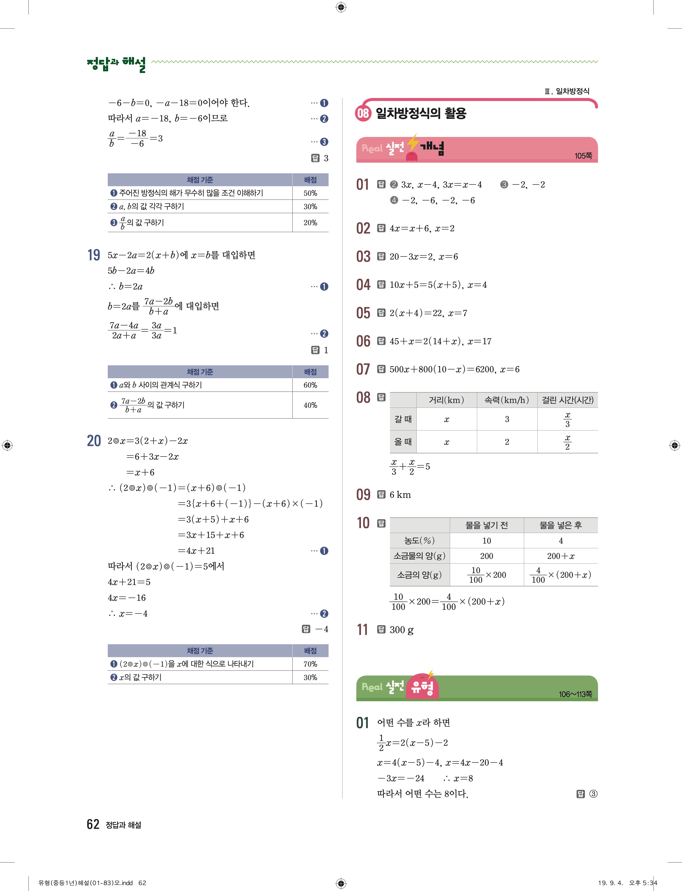 유형더블 중학수학 1-1 더블북 답지 해설 바로보는 사진답지 빠른답지 모바일최적화