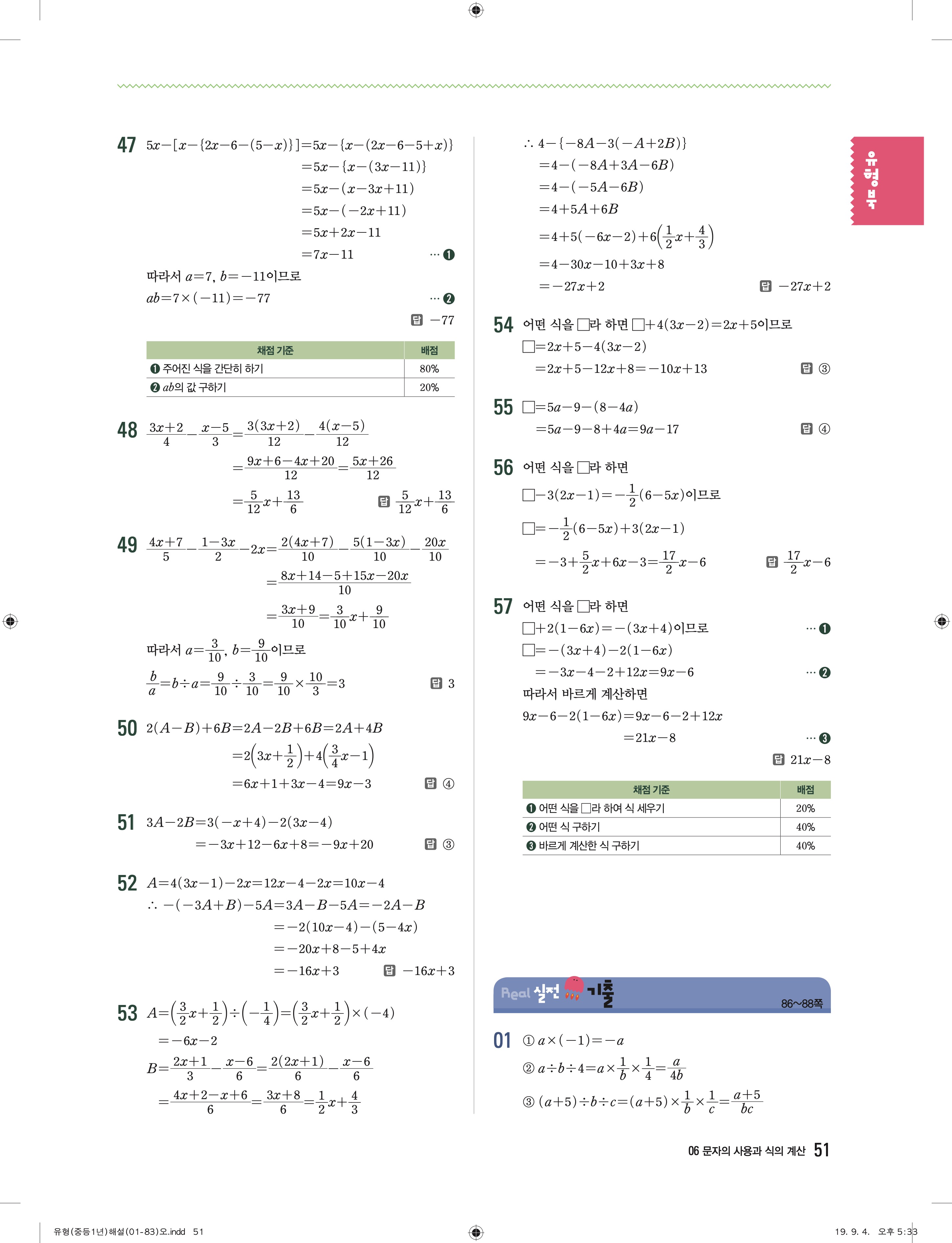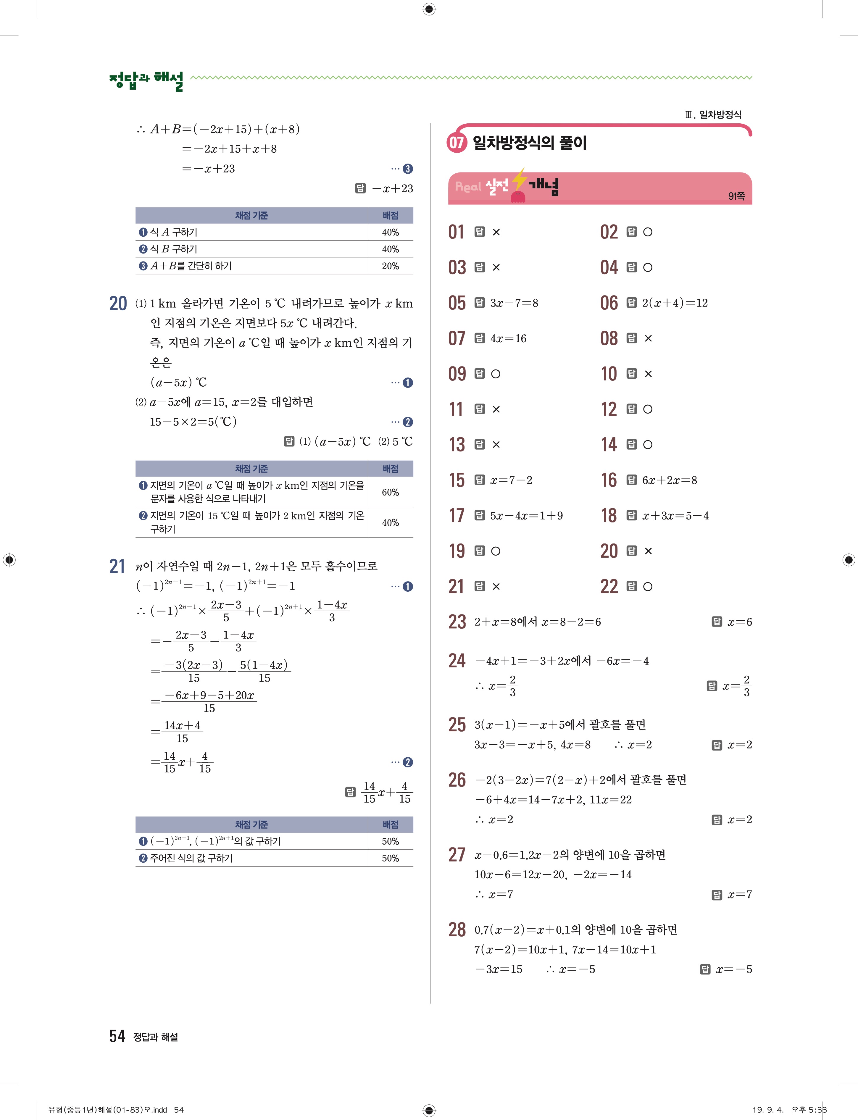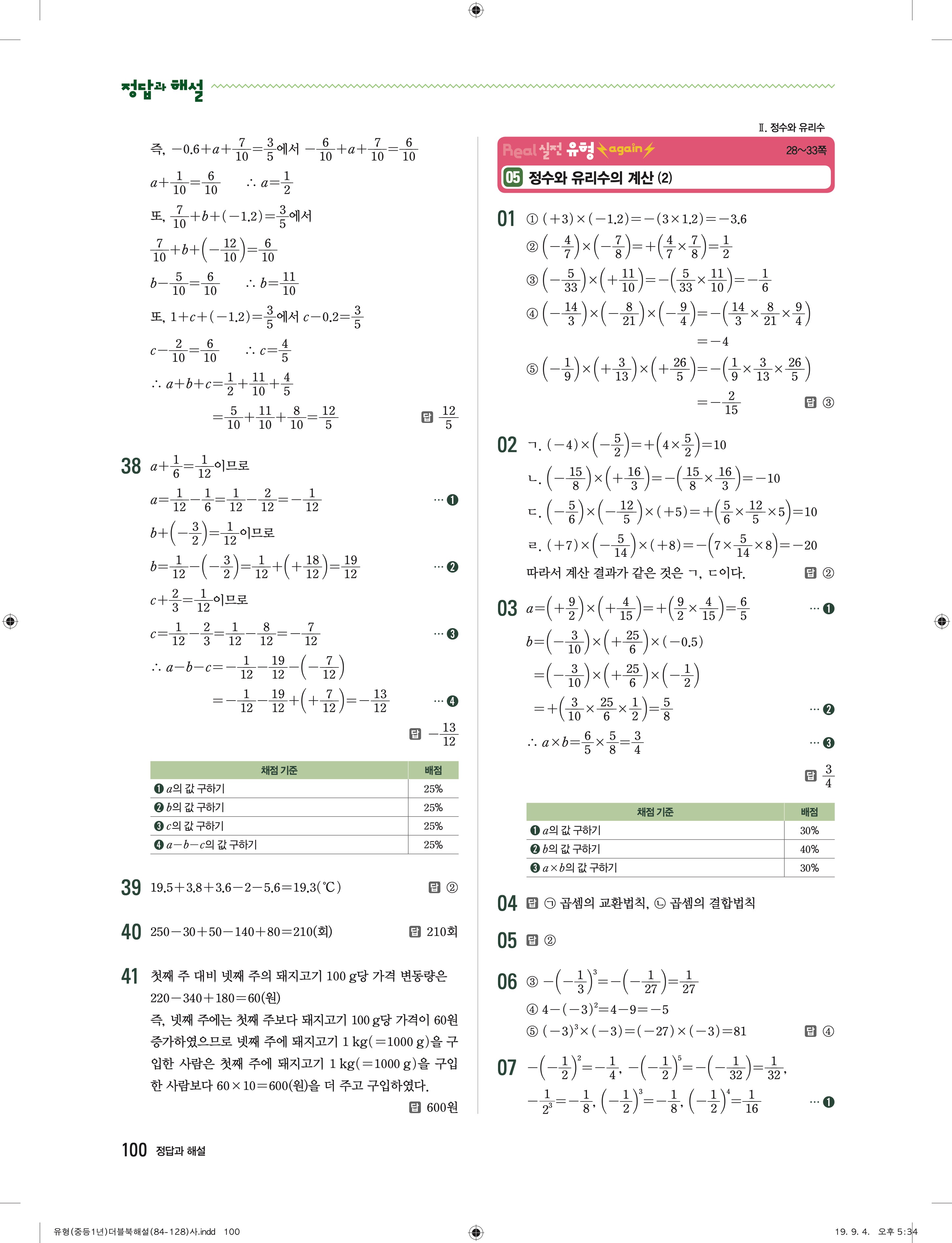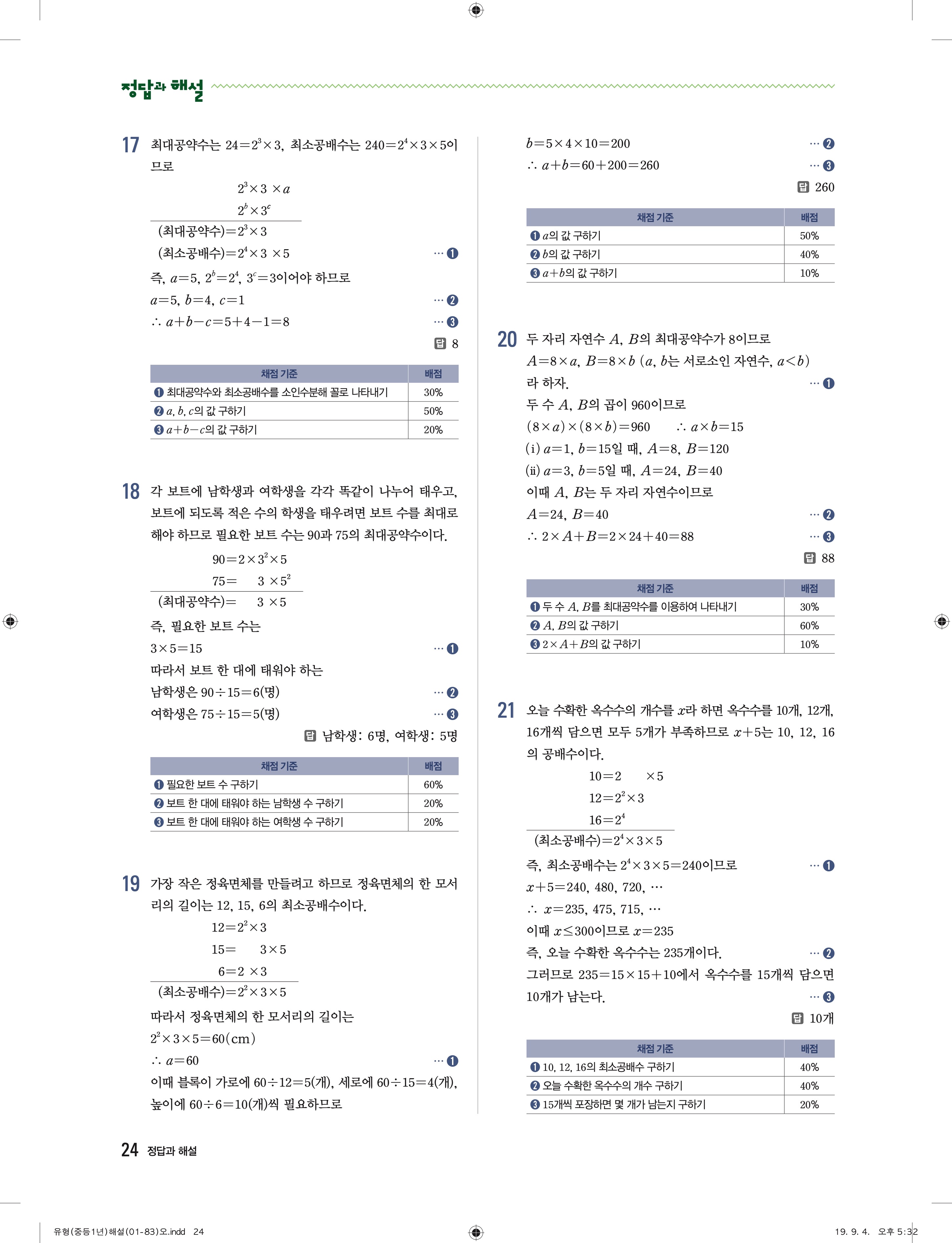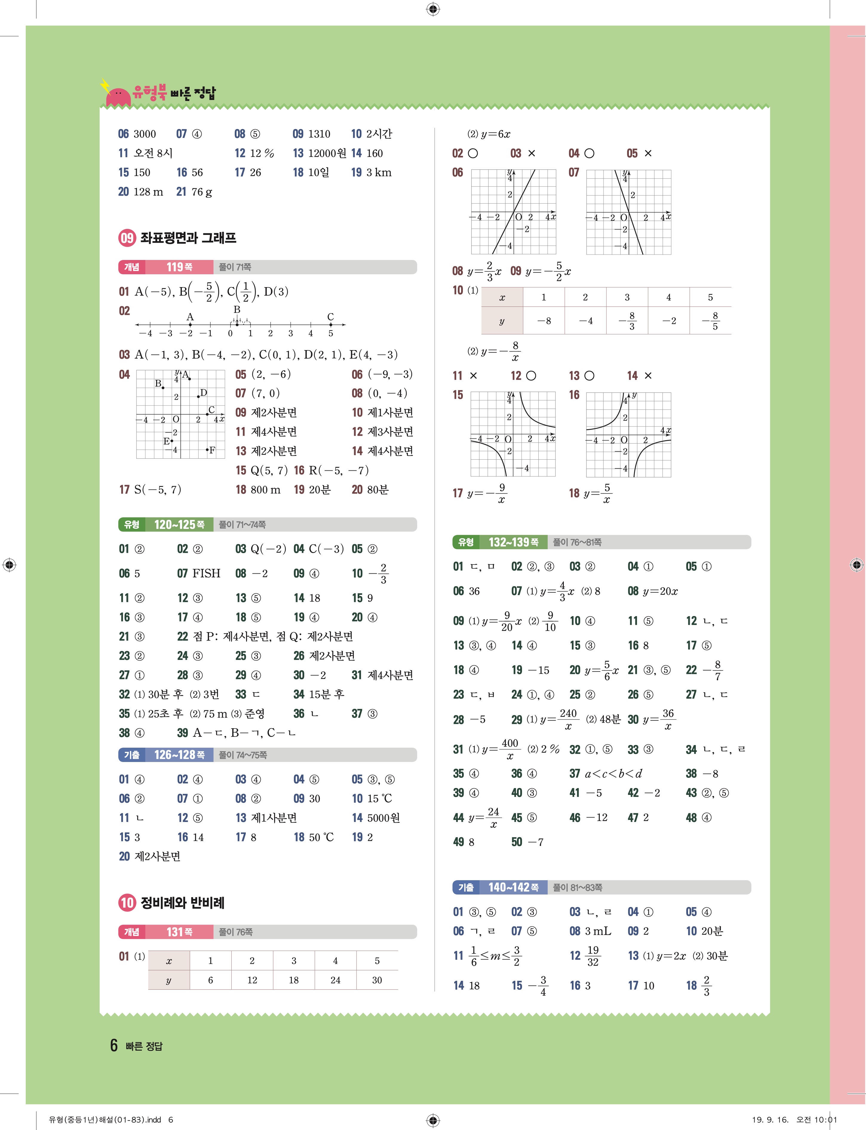 유형더블 중학수학 1-1 더블북 답지 해설 바로보는 사진답지 빠른답지 모바일최적화