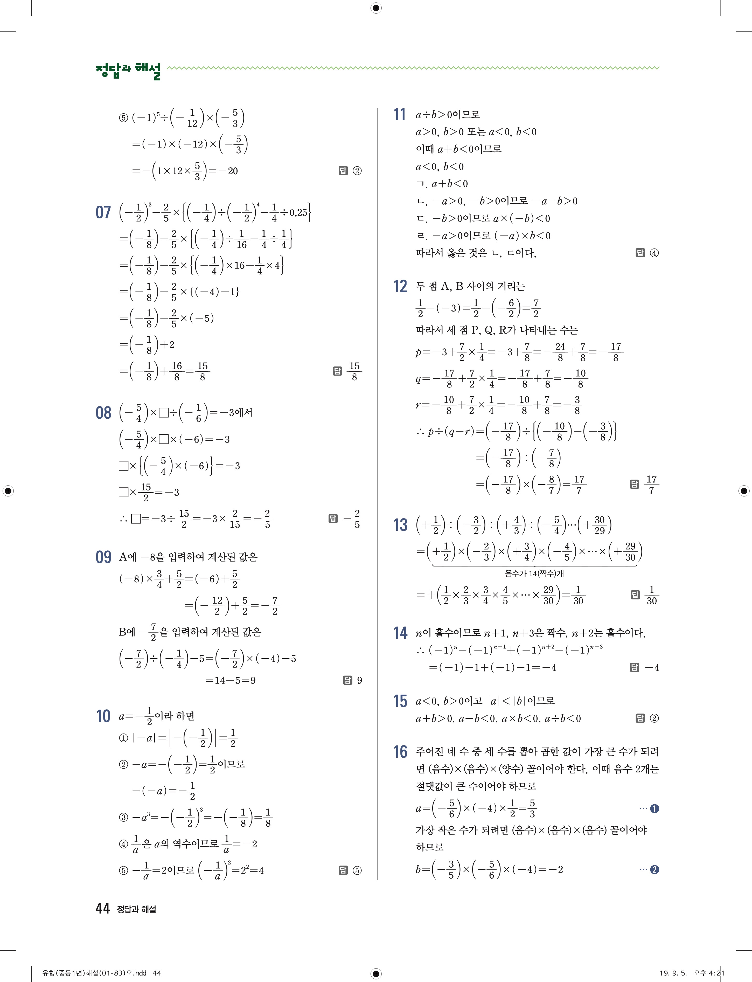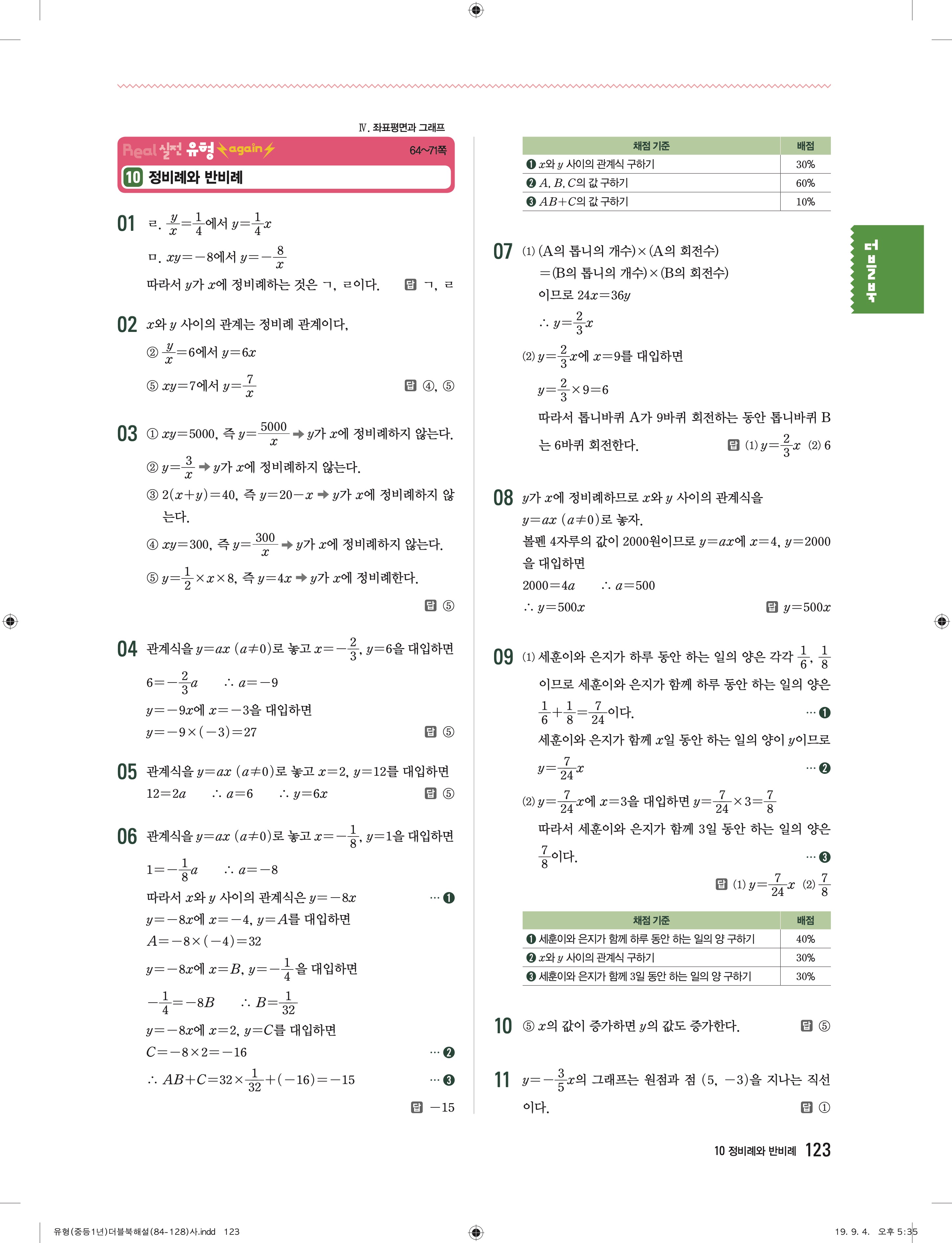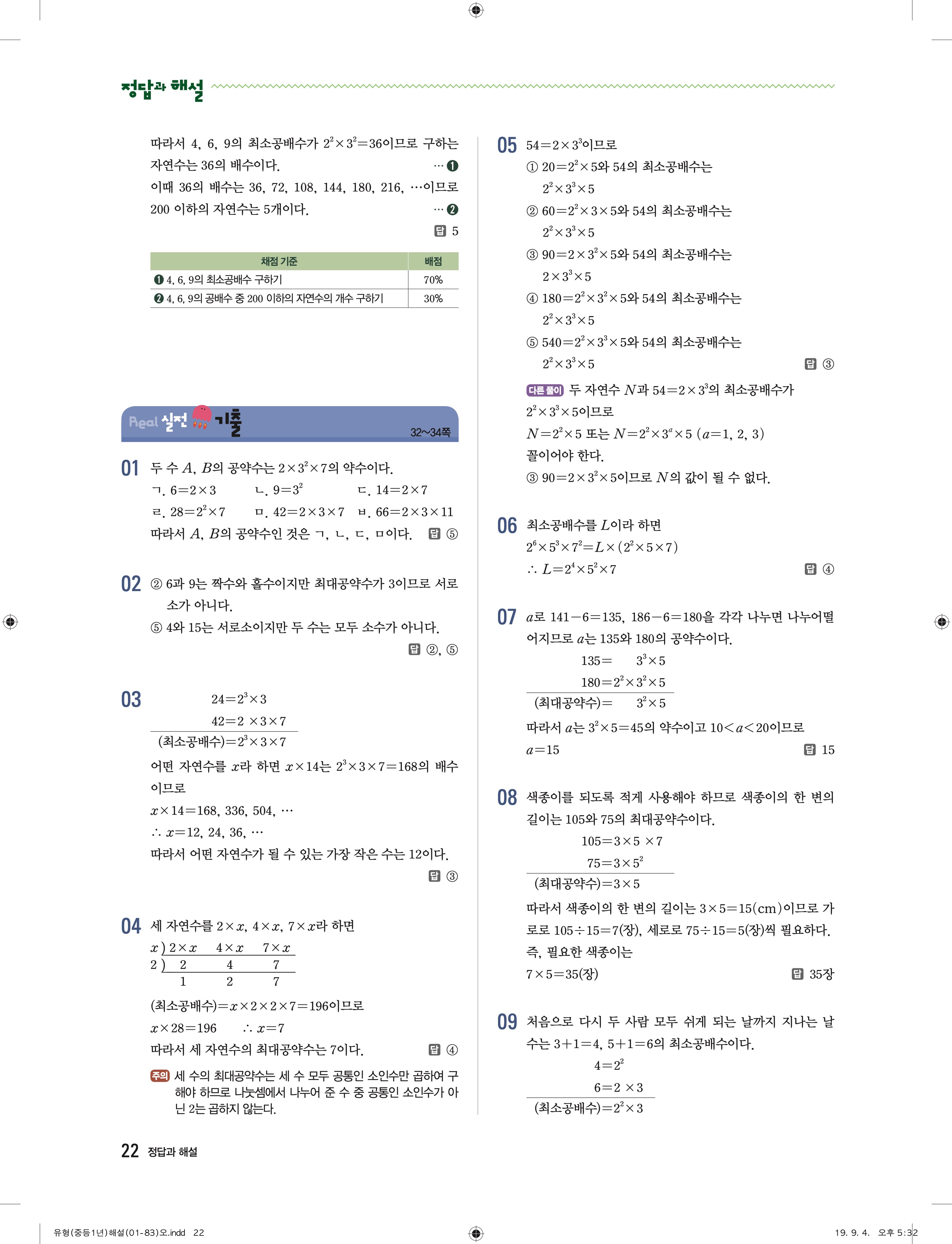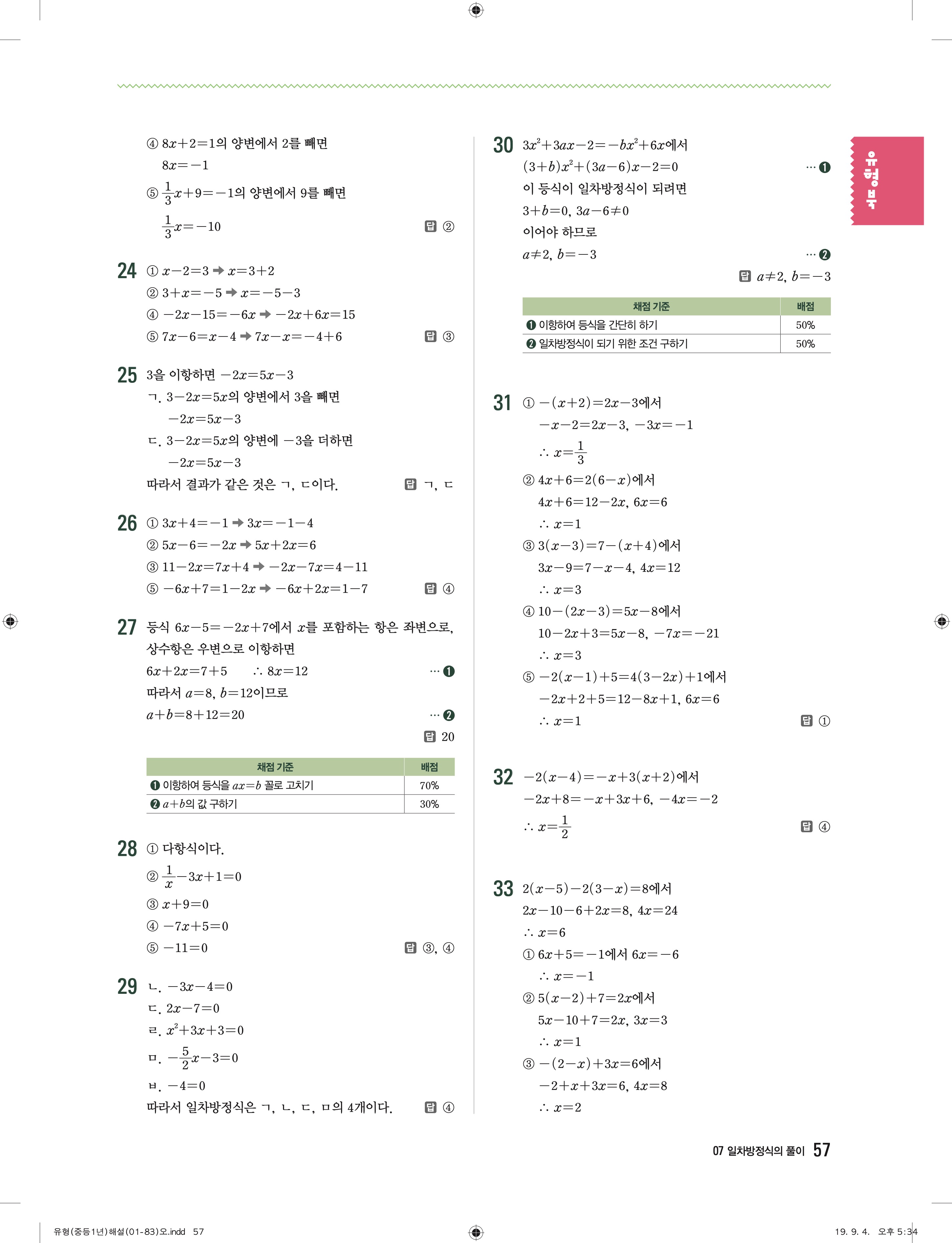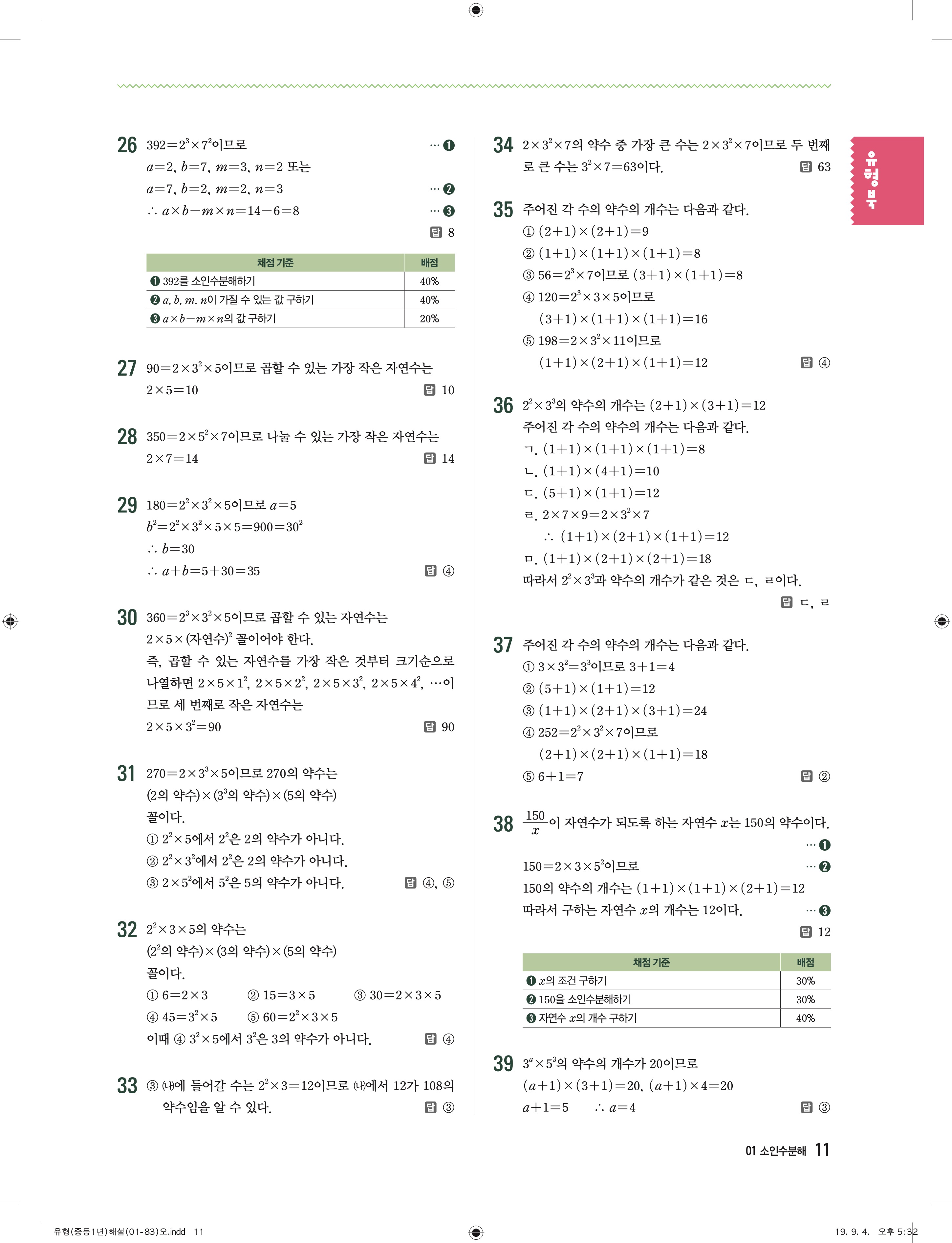 유형더블 중학수학 1-1 더블북 답지 해설 바로보는 사진답지 빠른답지 모바일최적화