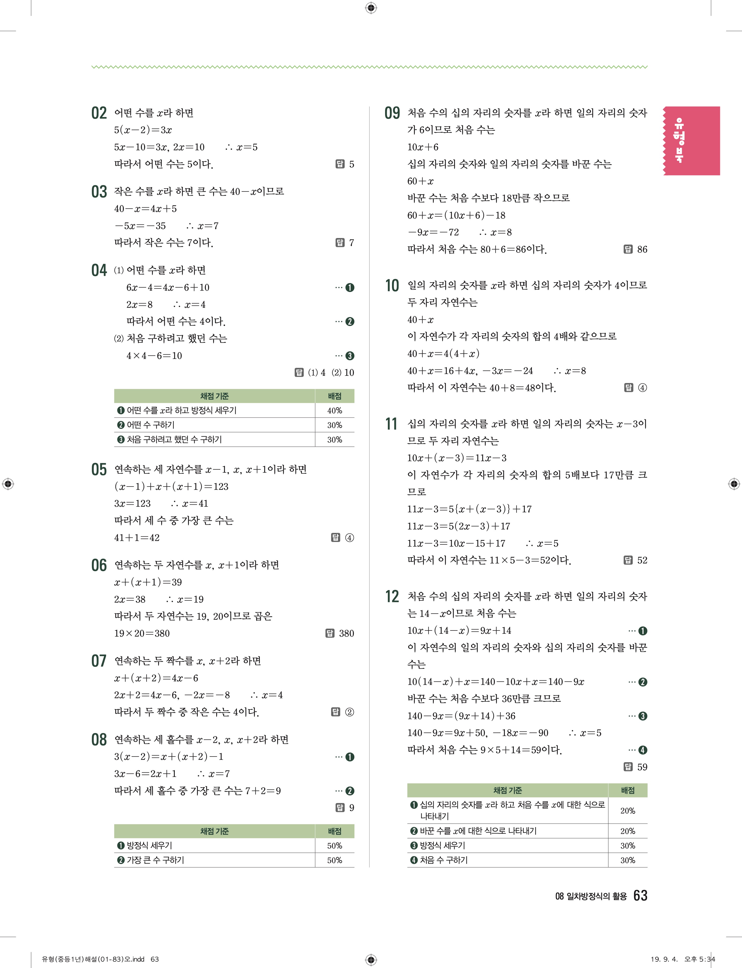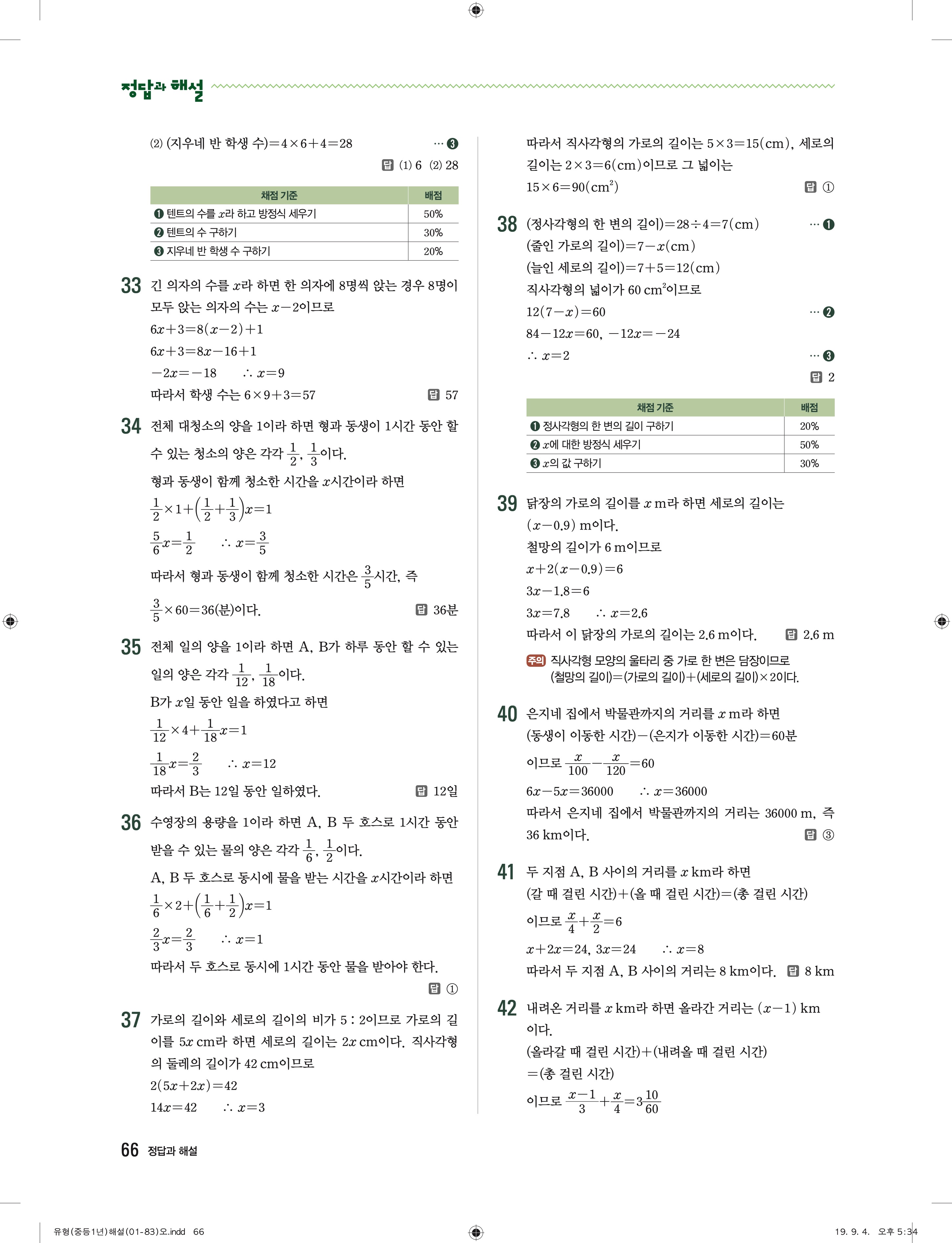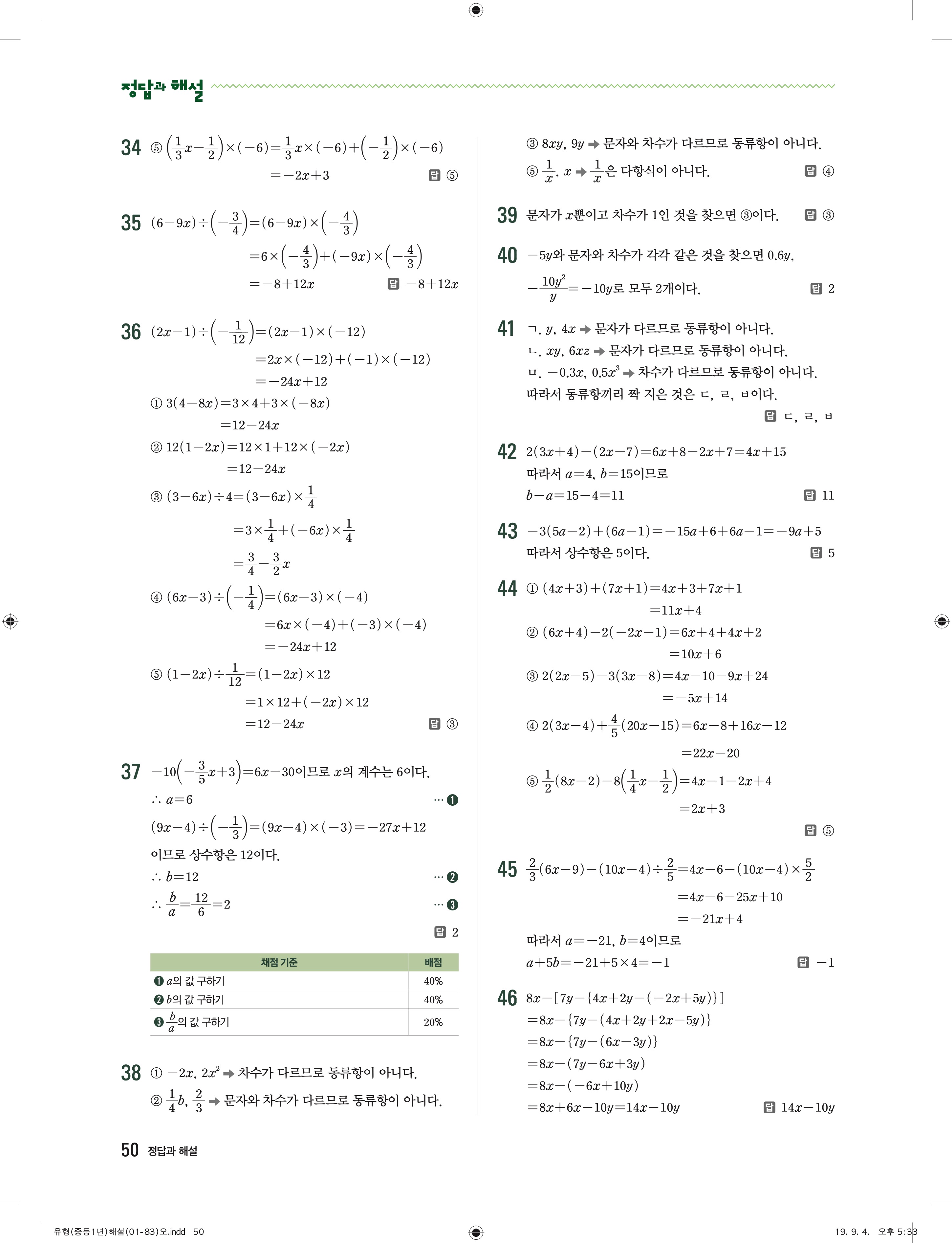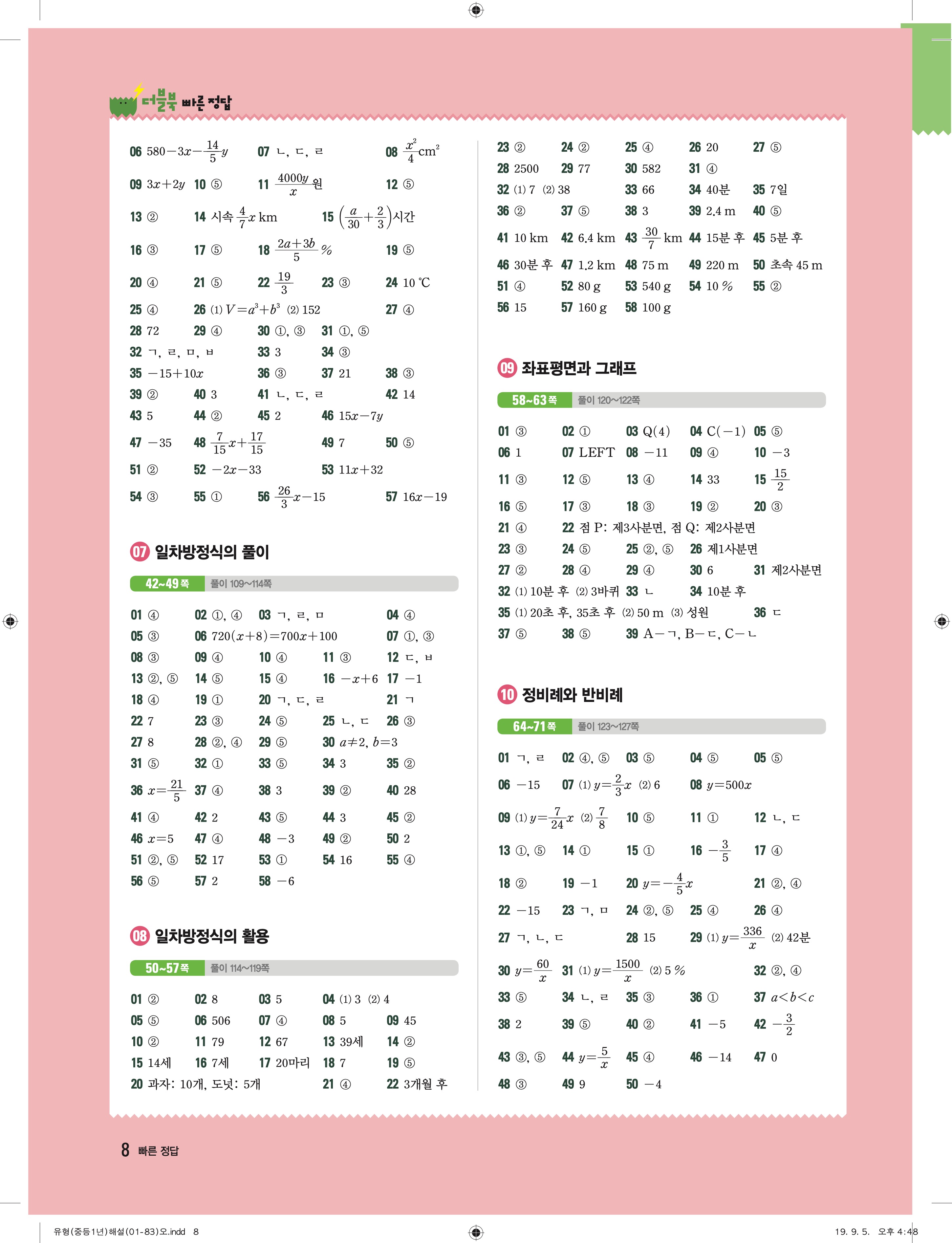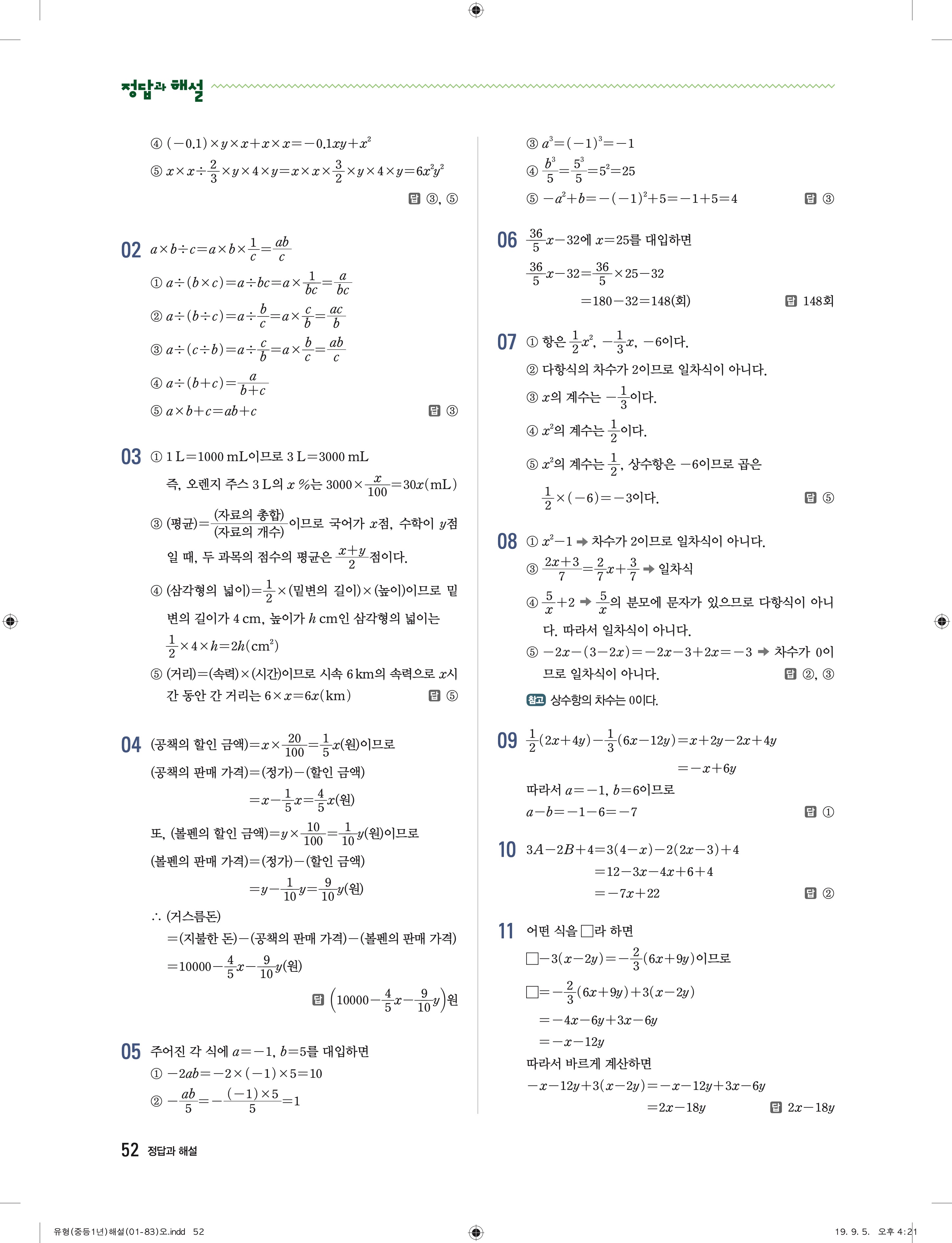 유형더블 중학수학 1-1 더블북 답지 해설 바로보는 사진답지 빠른답지 모바일최적화