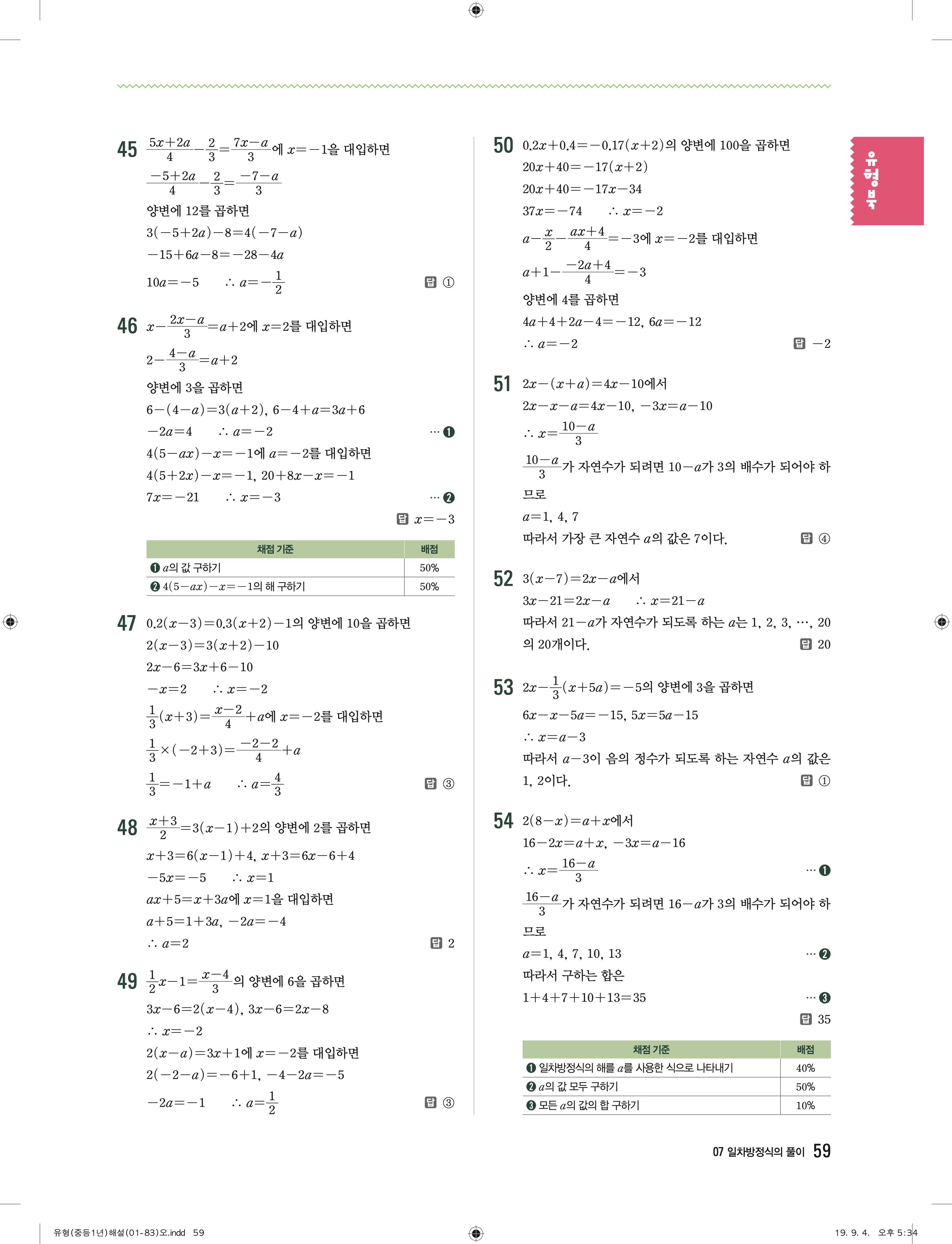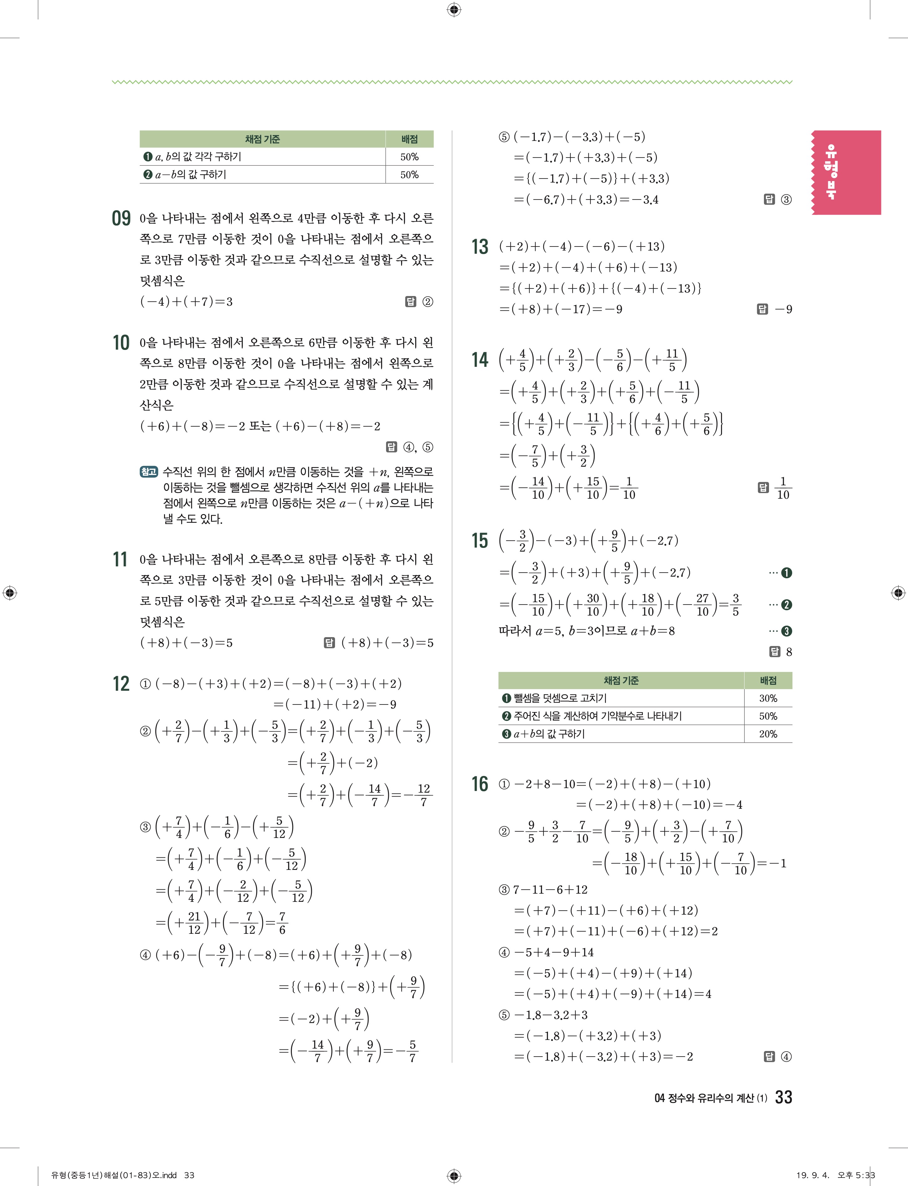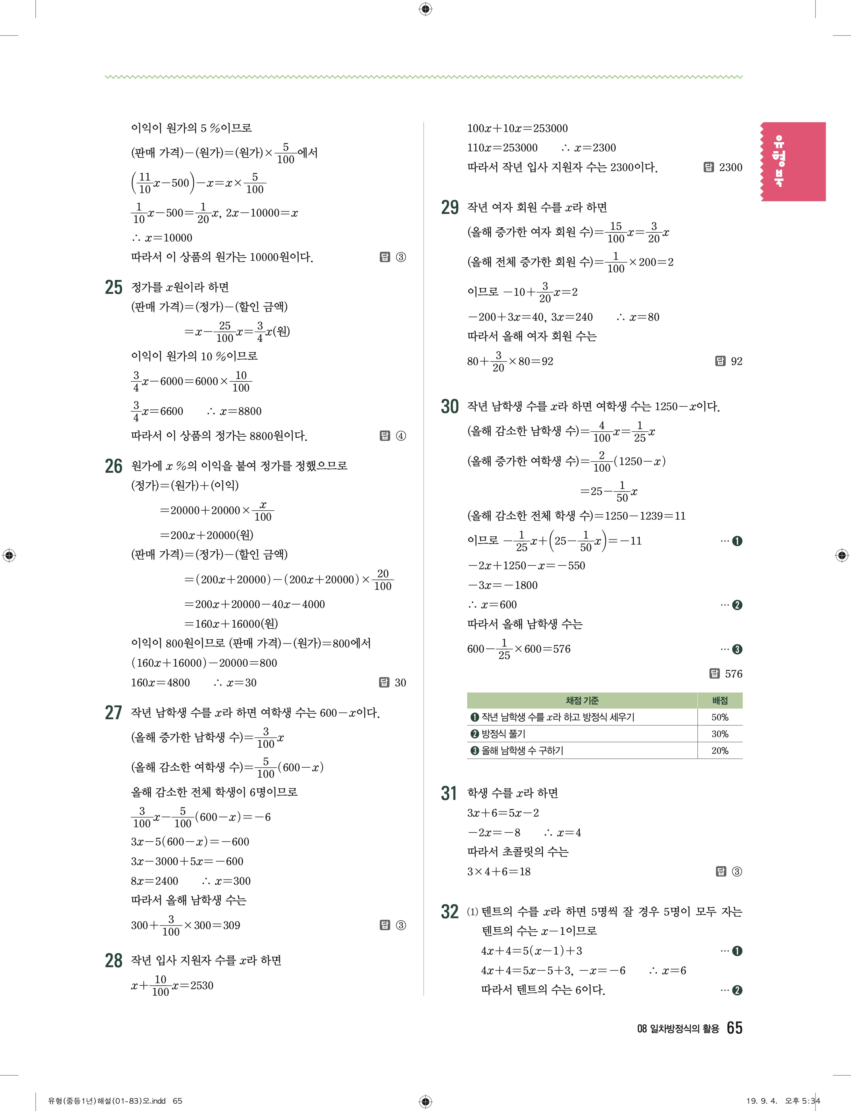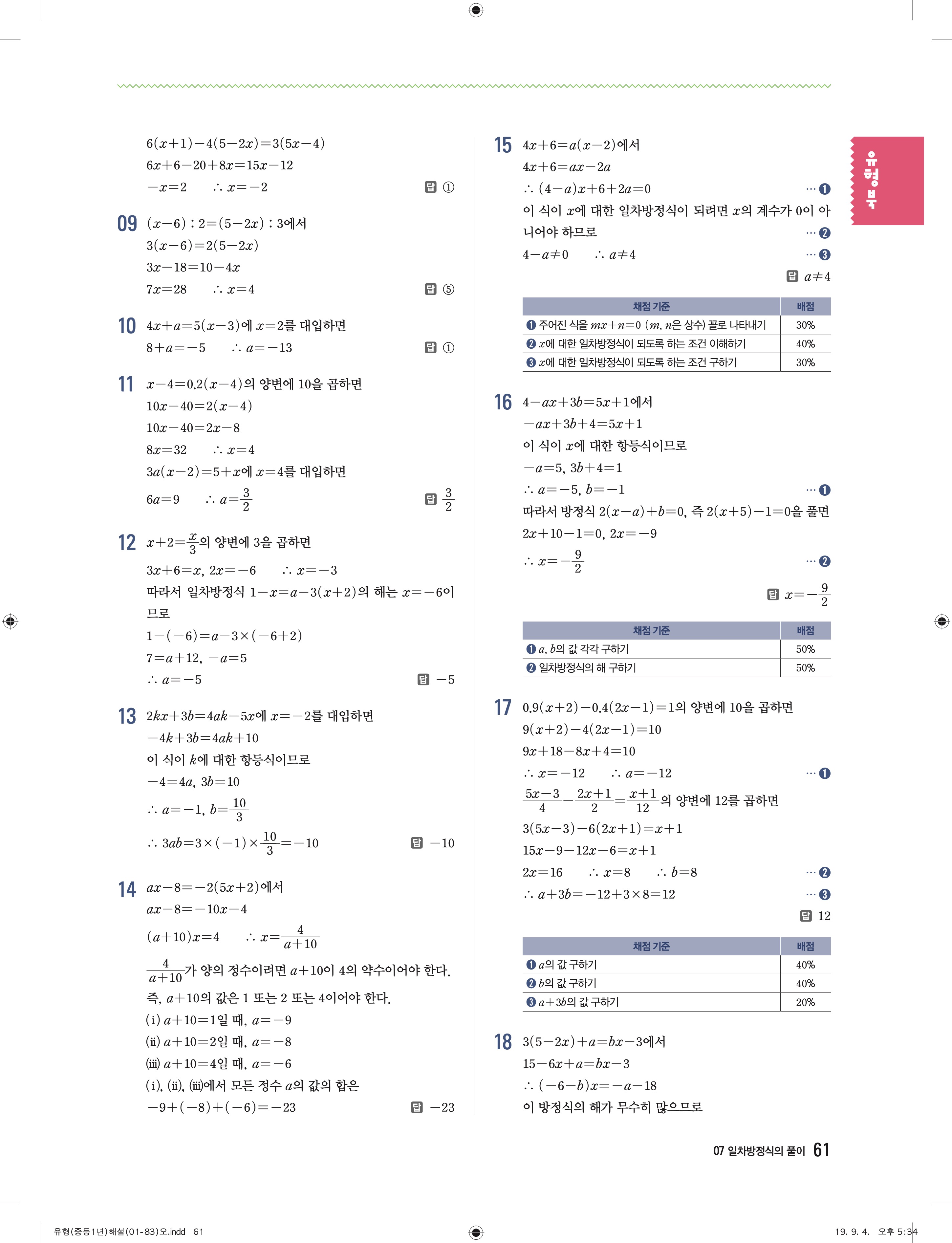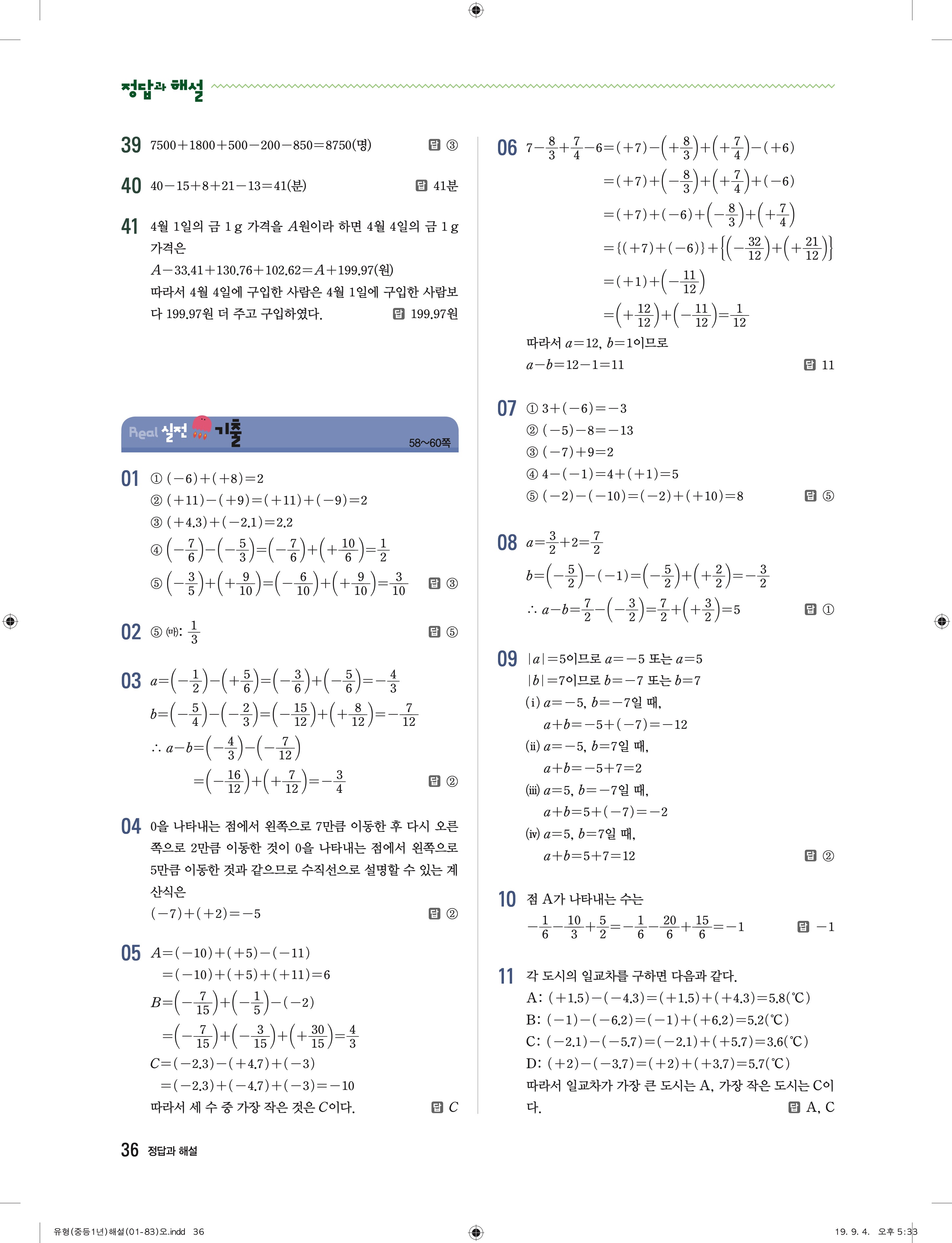 유형더블 중학수학 1-1 더블북 답지 해설 바로보는 사진답지 빠른답지 모바일최적화