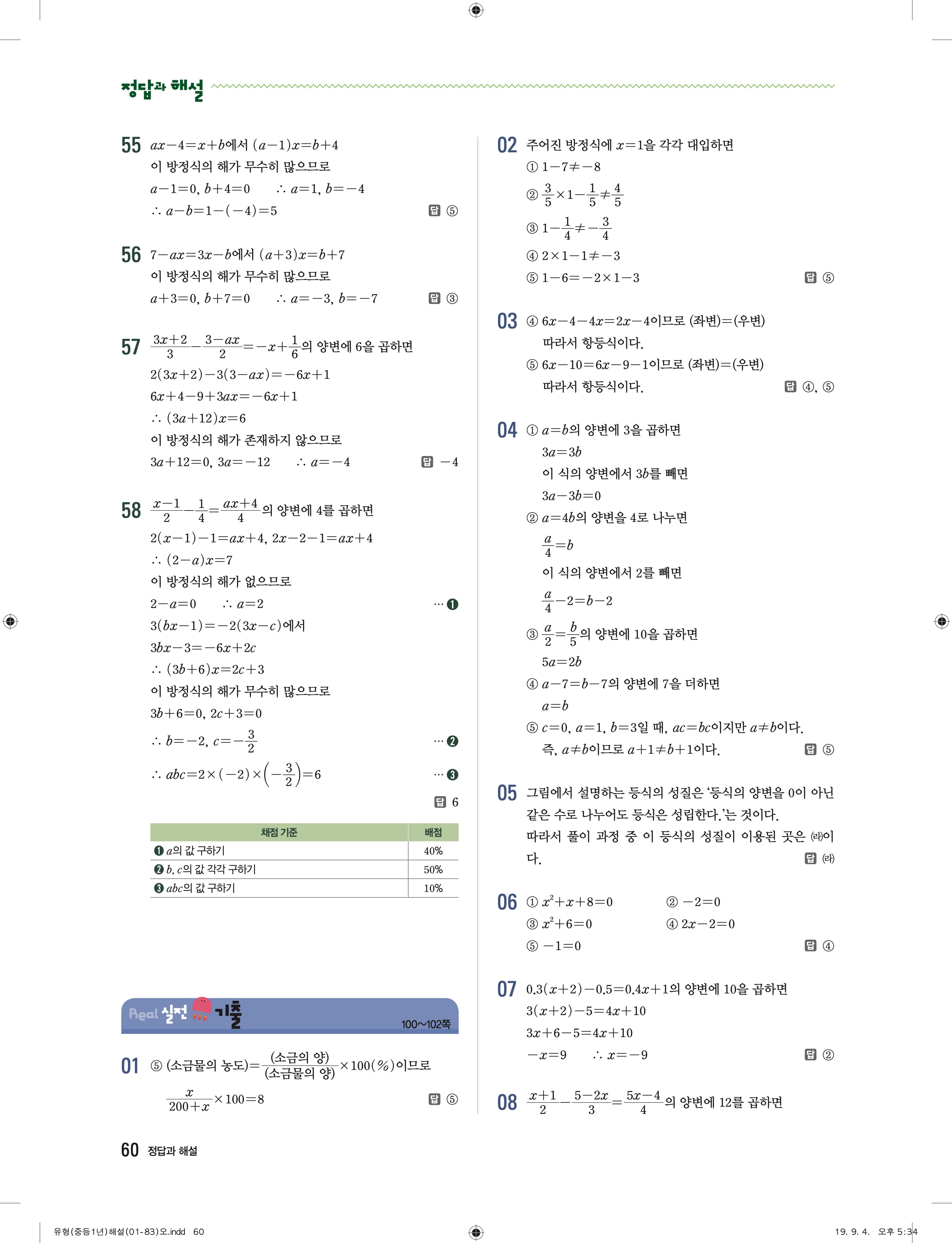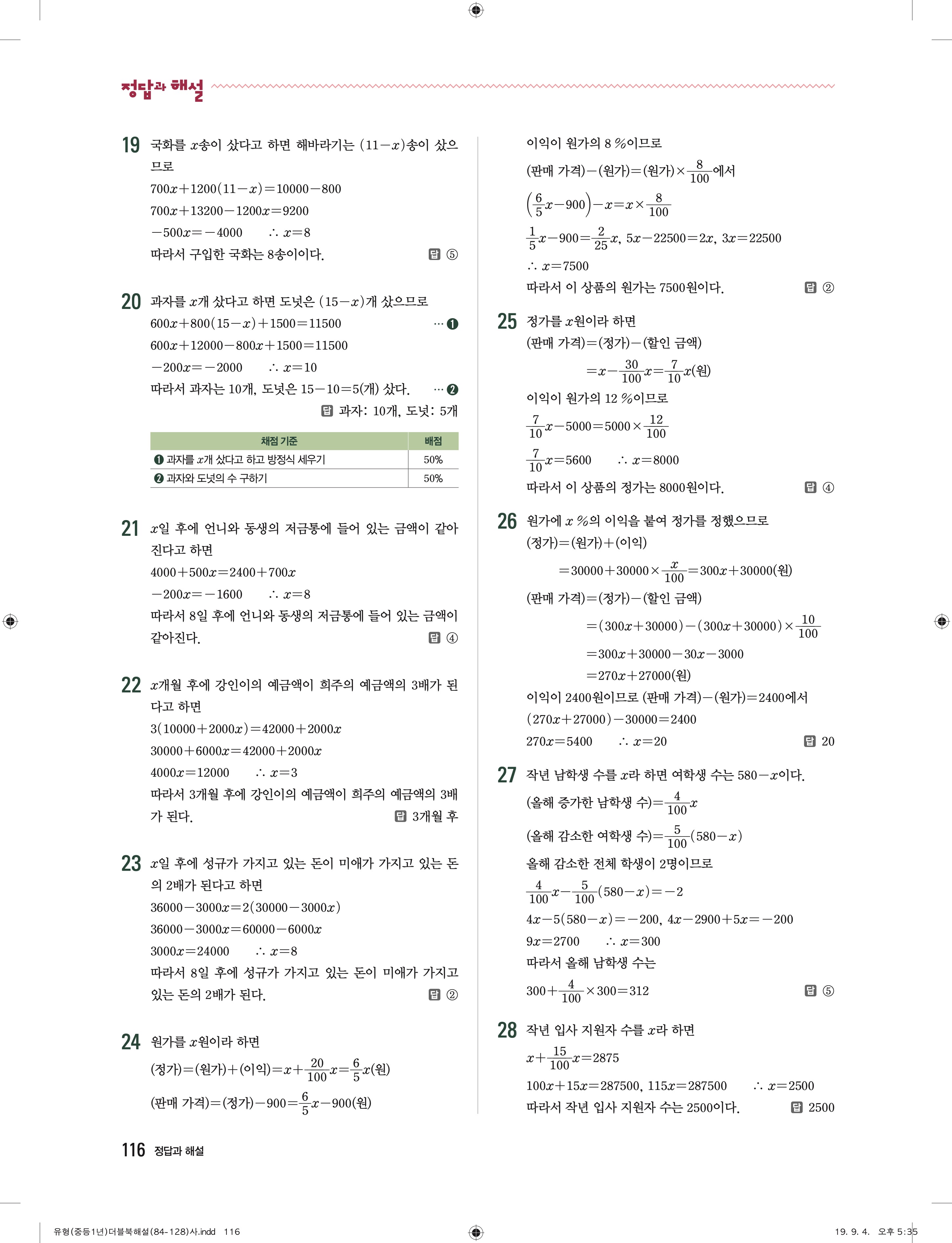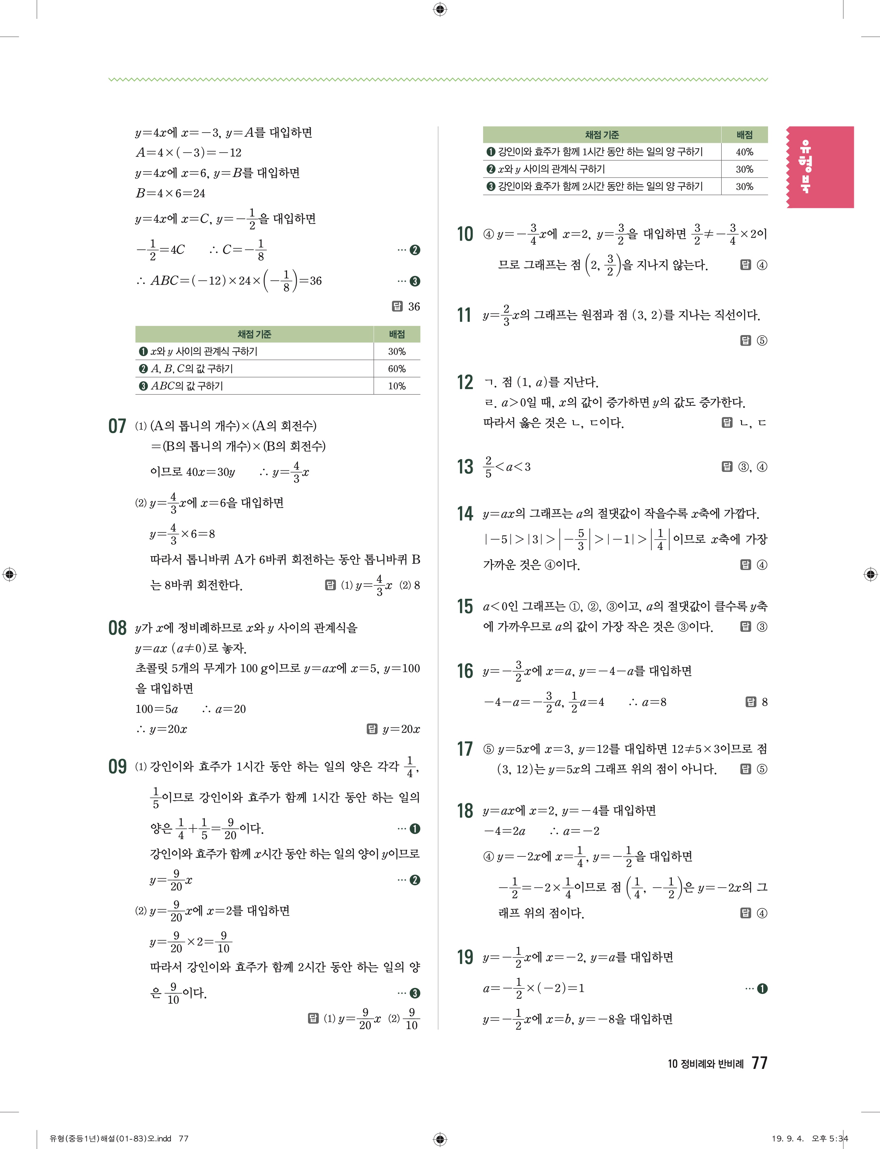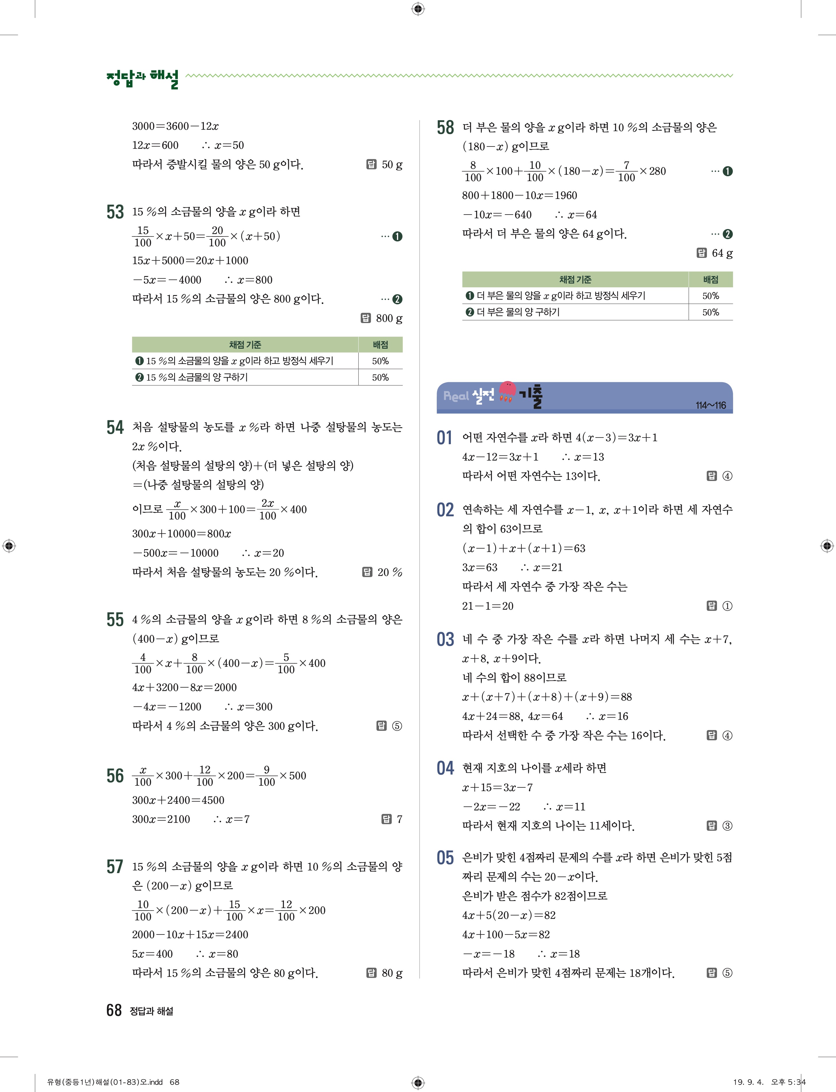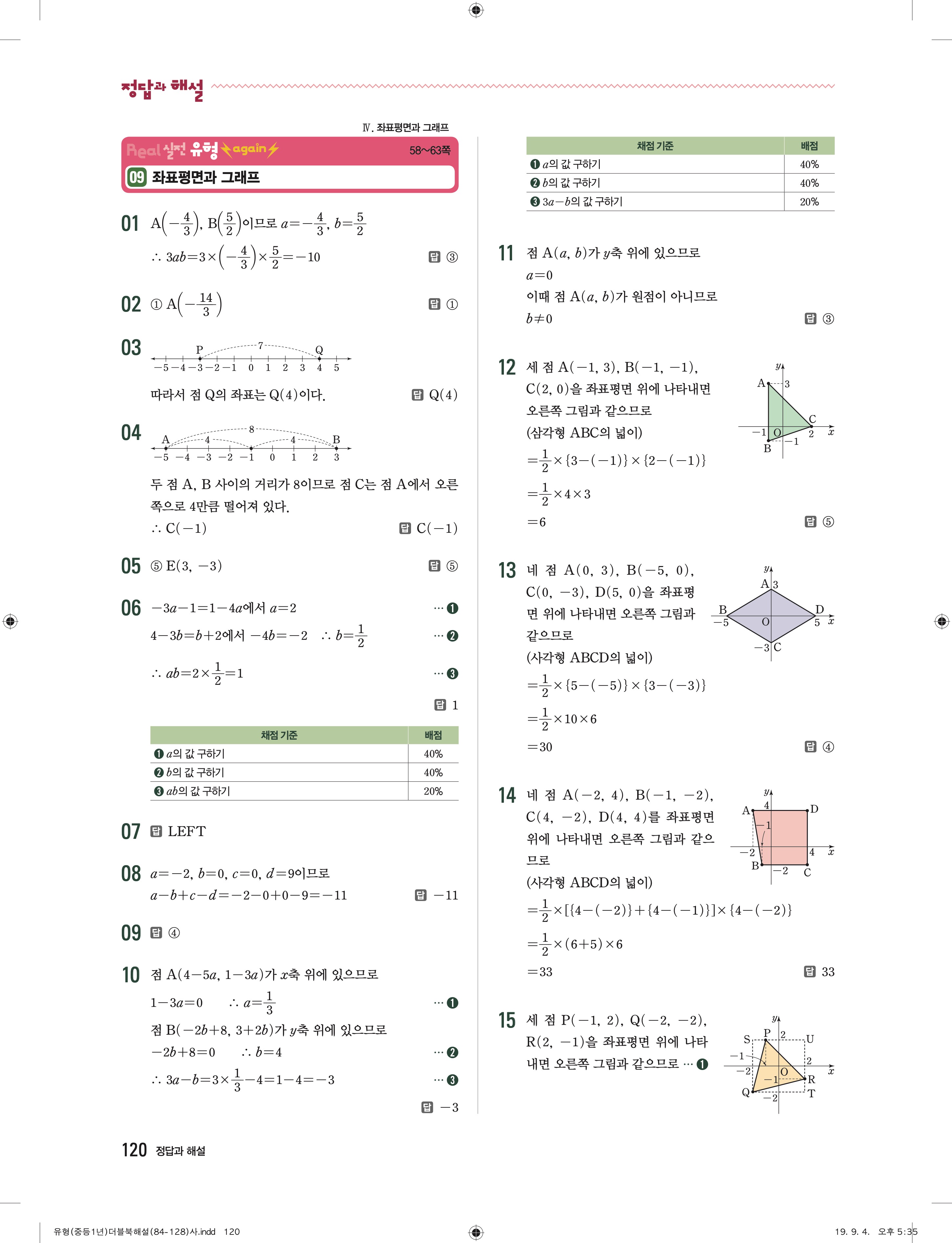 유형더블 중학수학 1-1 더블북 답지 해설 바로보는 사진답지 빠른답지 모바일최적화