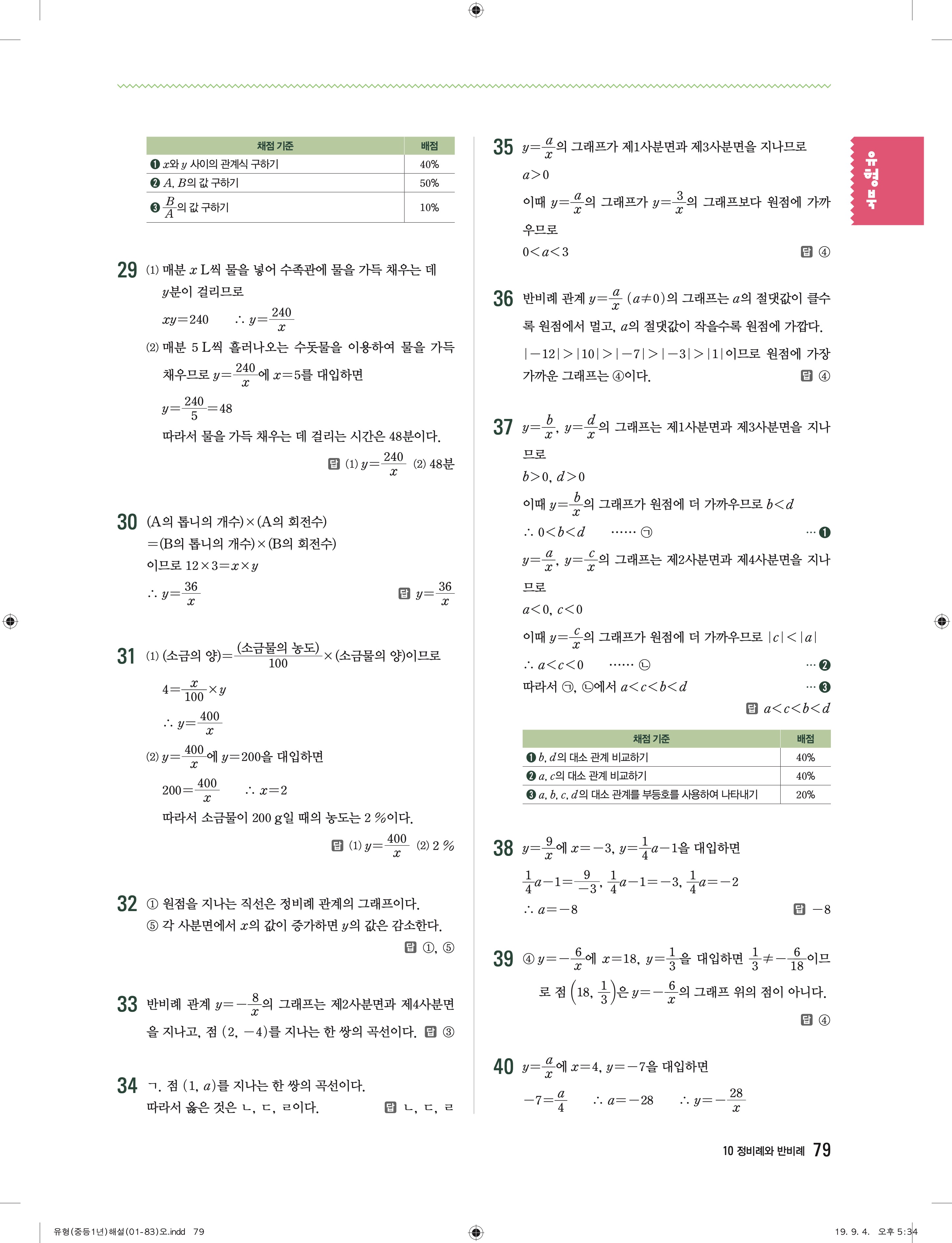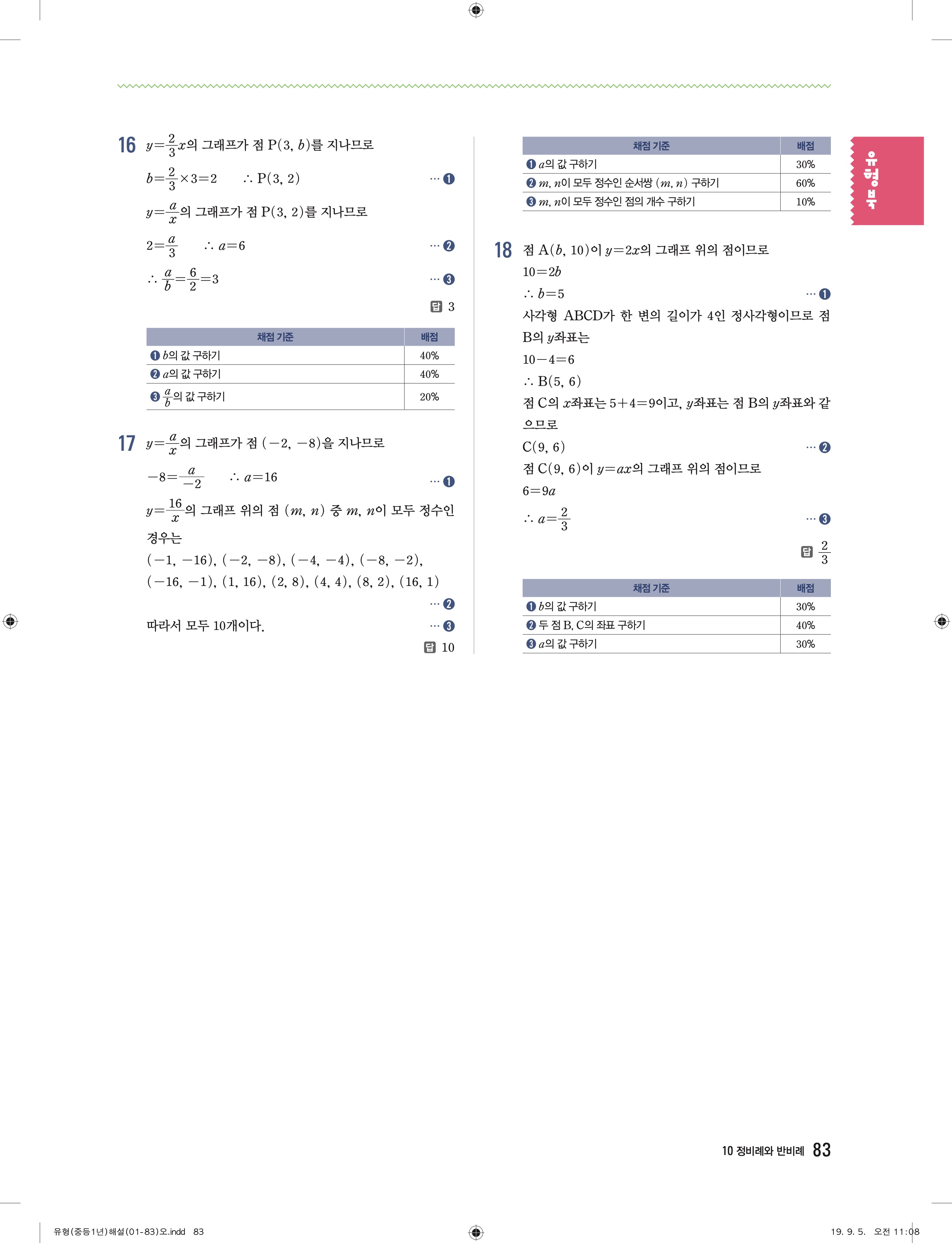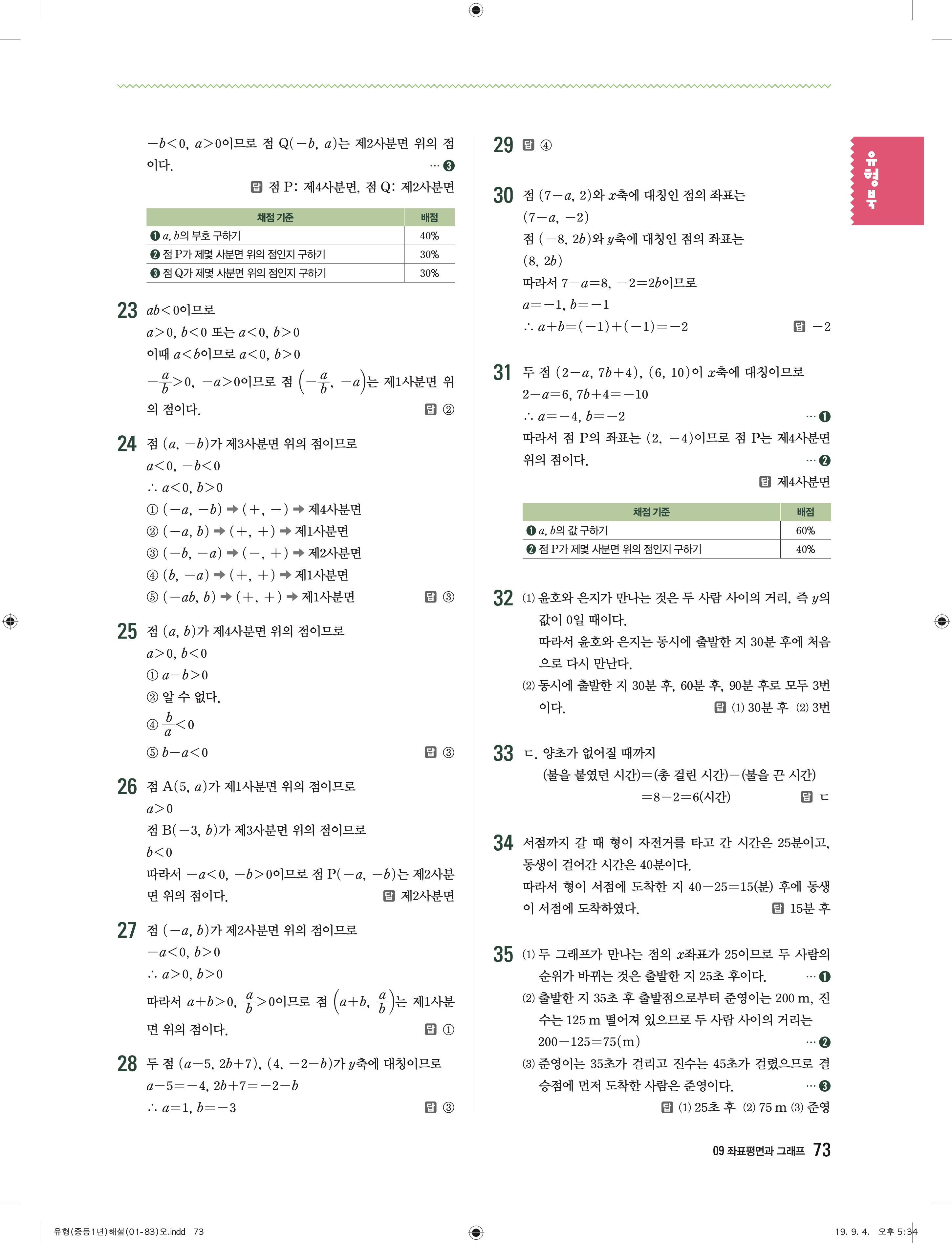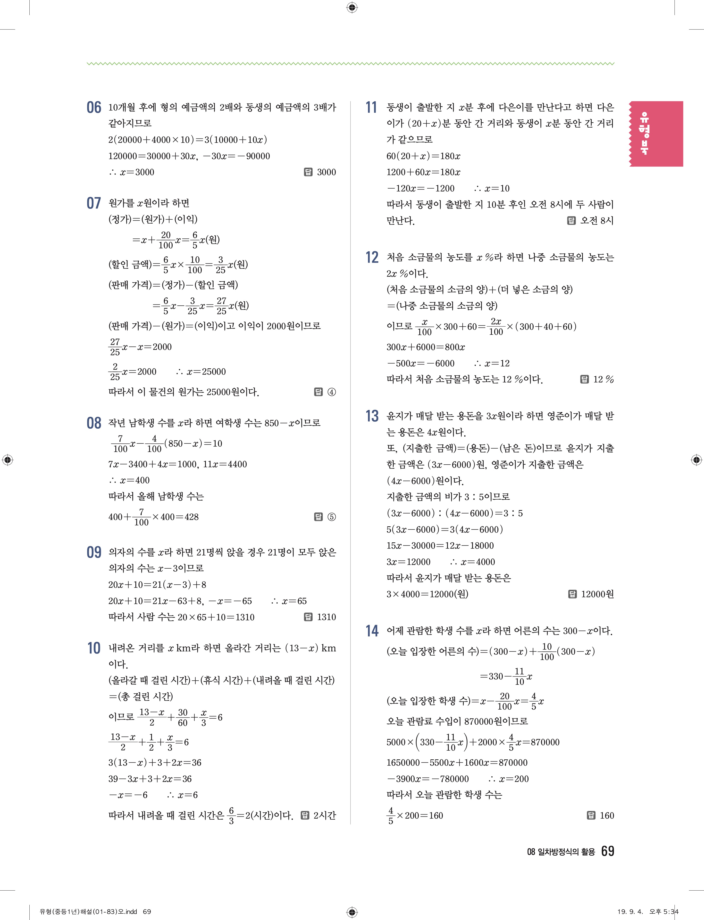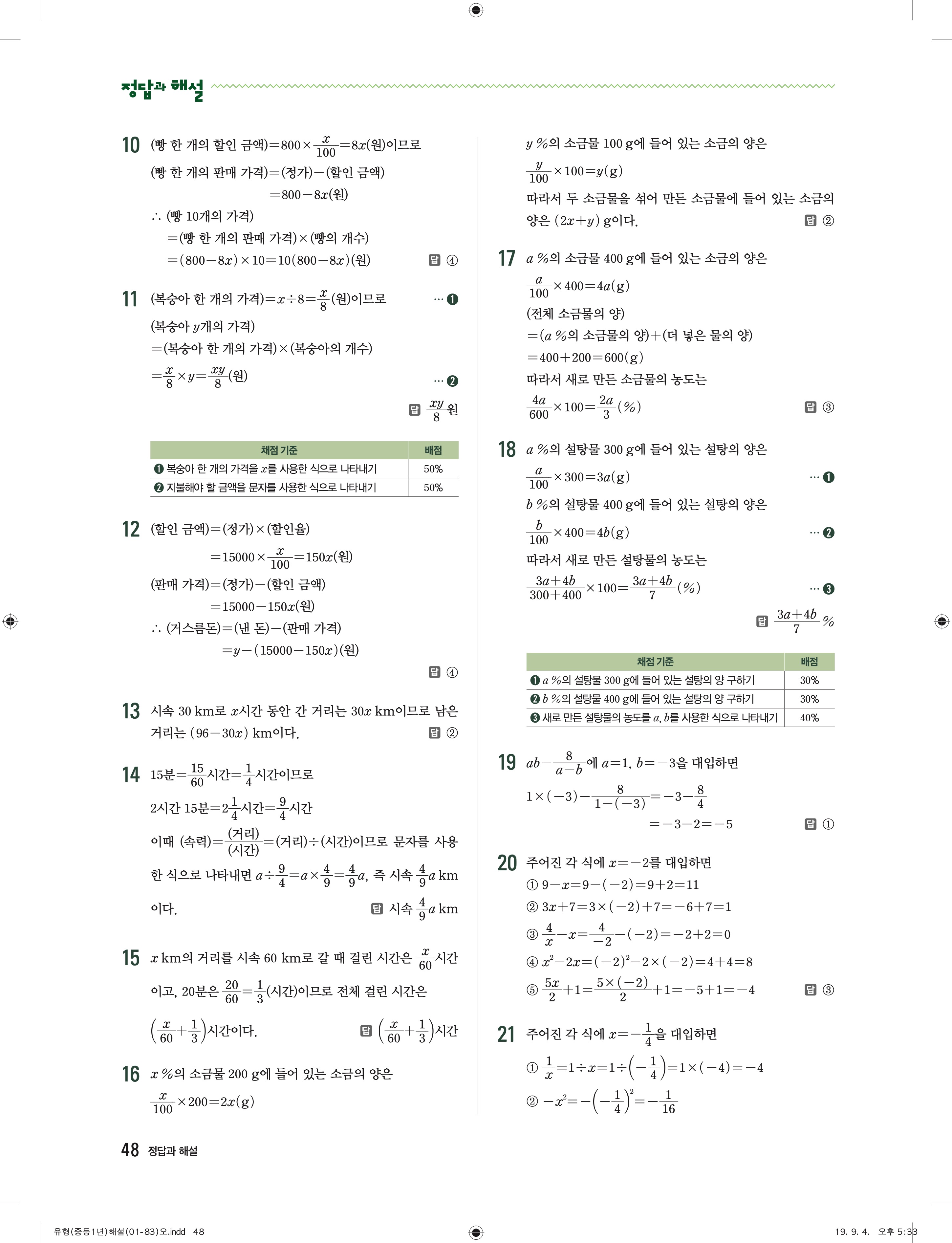 유형더블 중학수학 1-1 더블북 답지 해설 바로보는 사진답지 빠른답지 모바일최적화