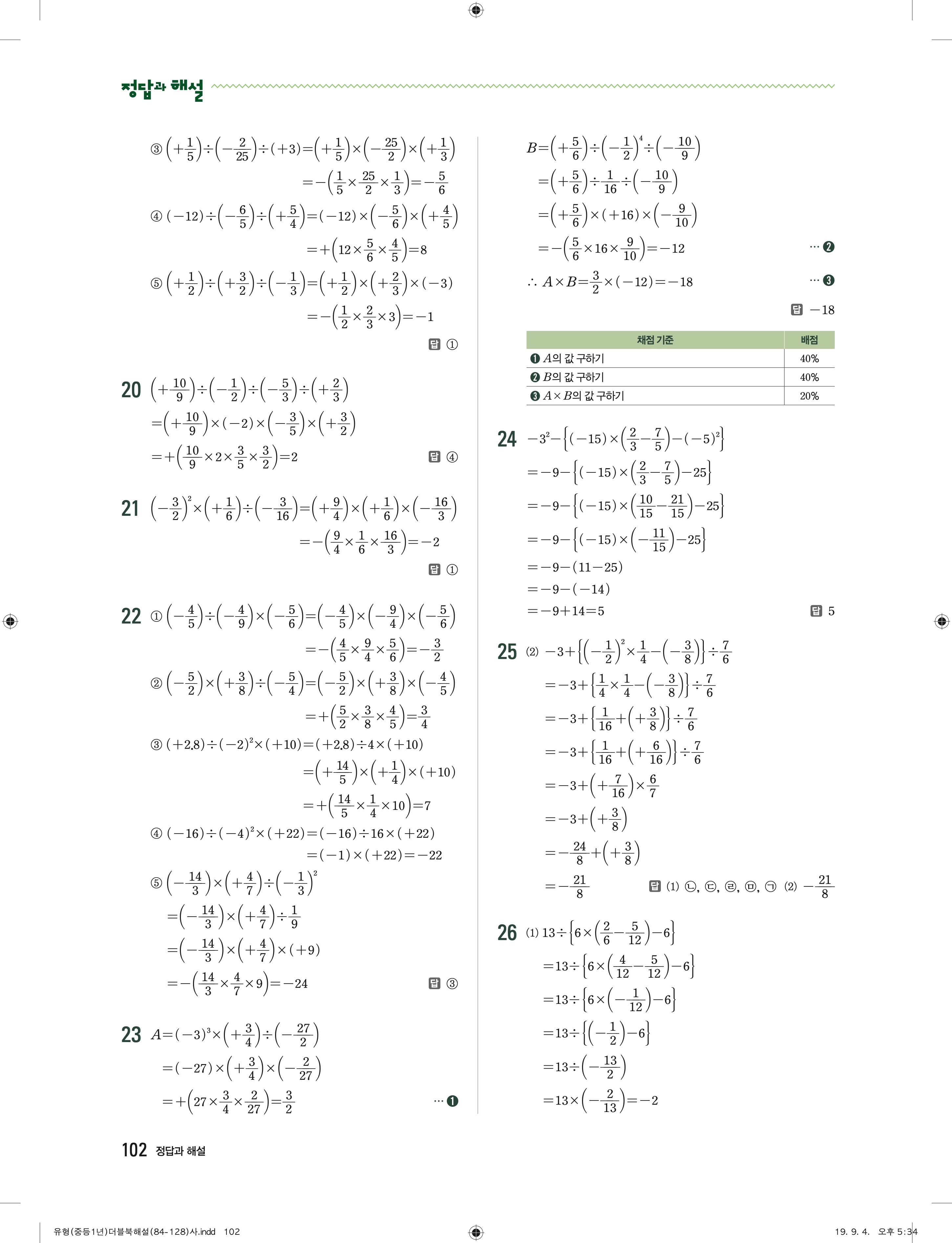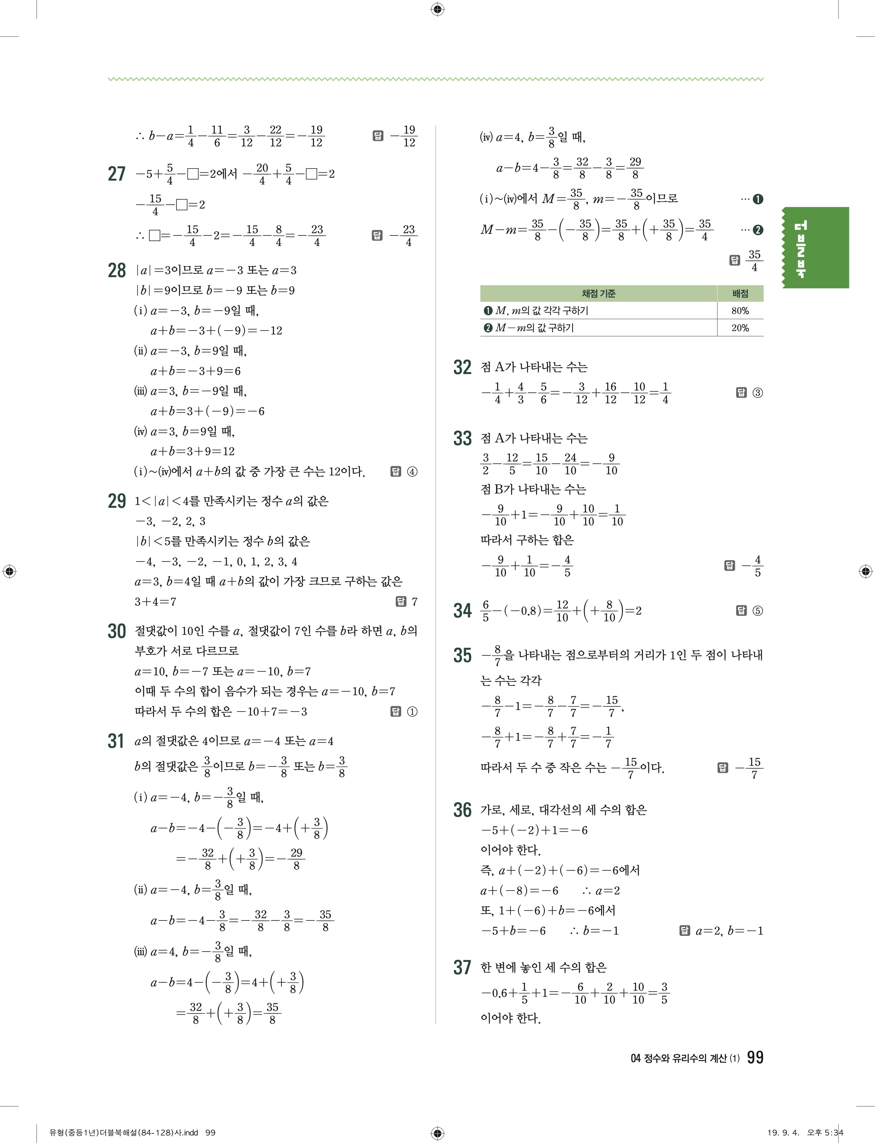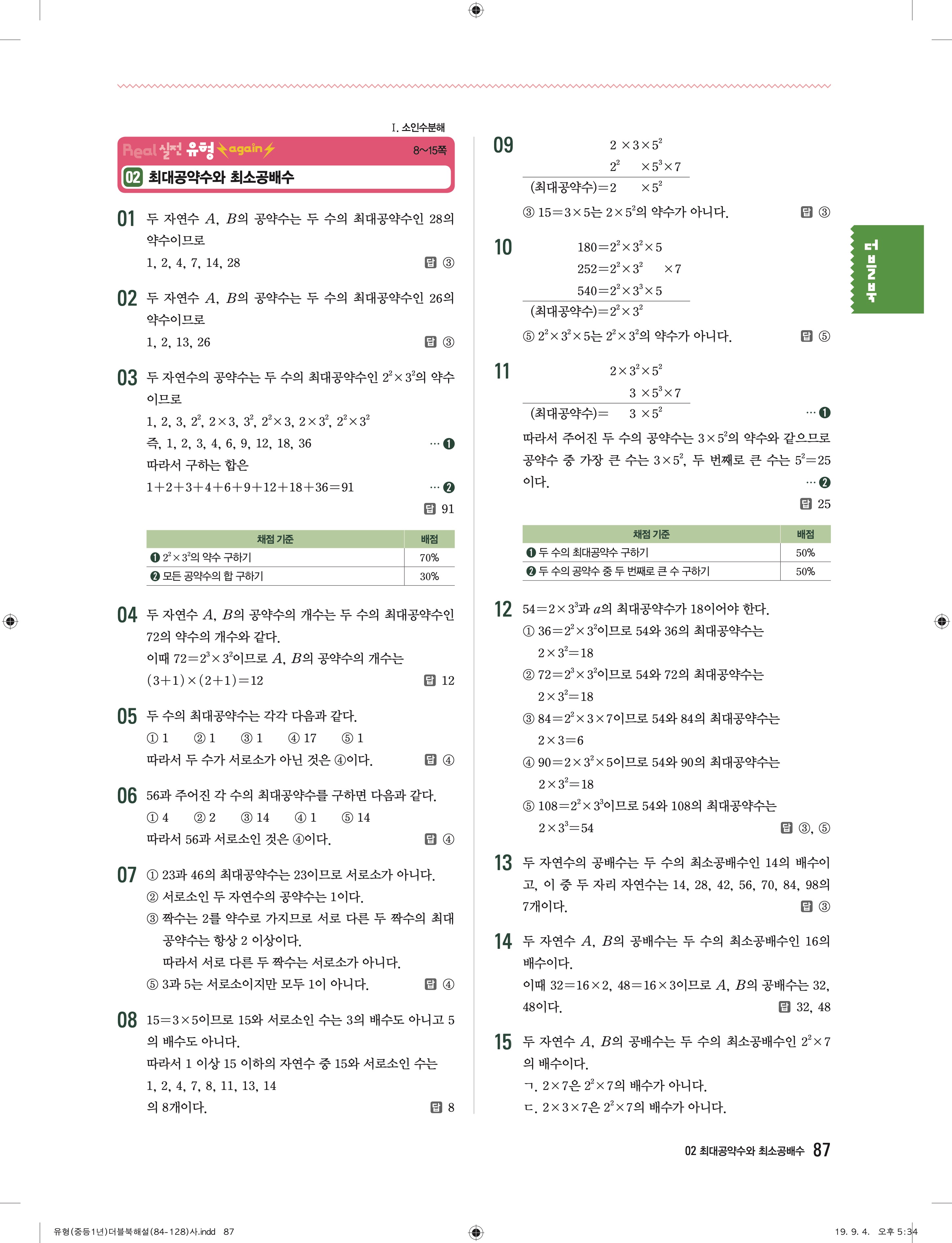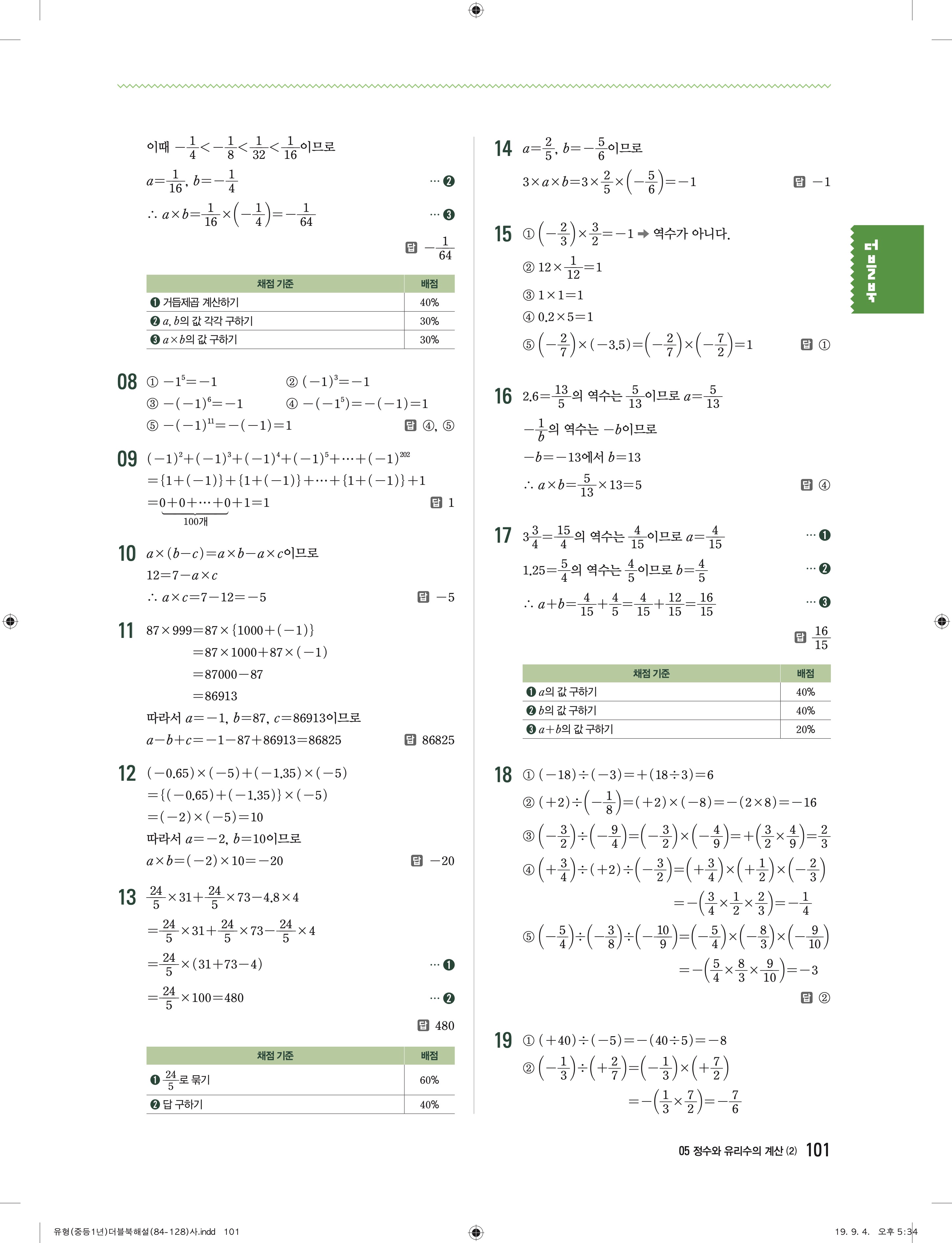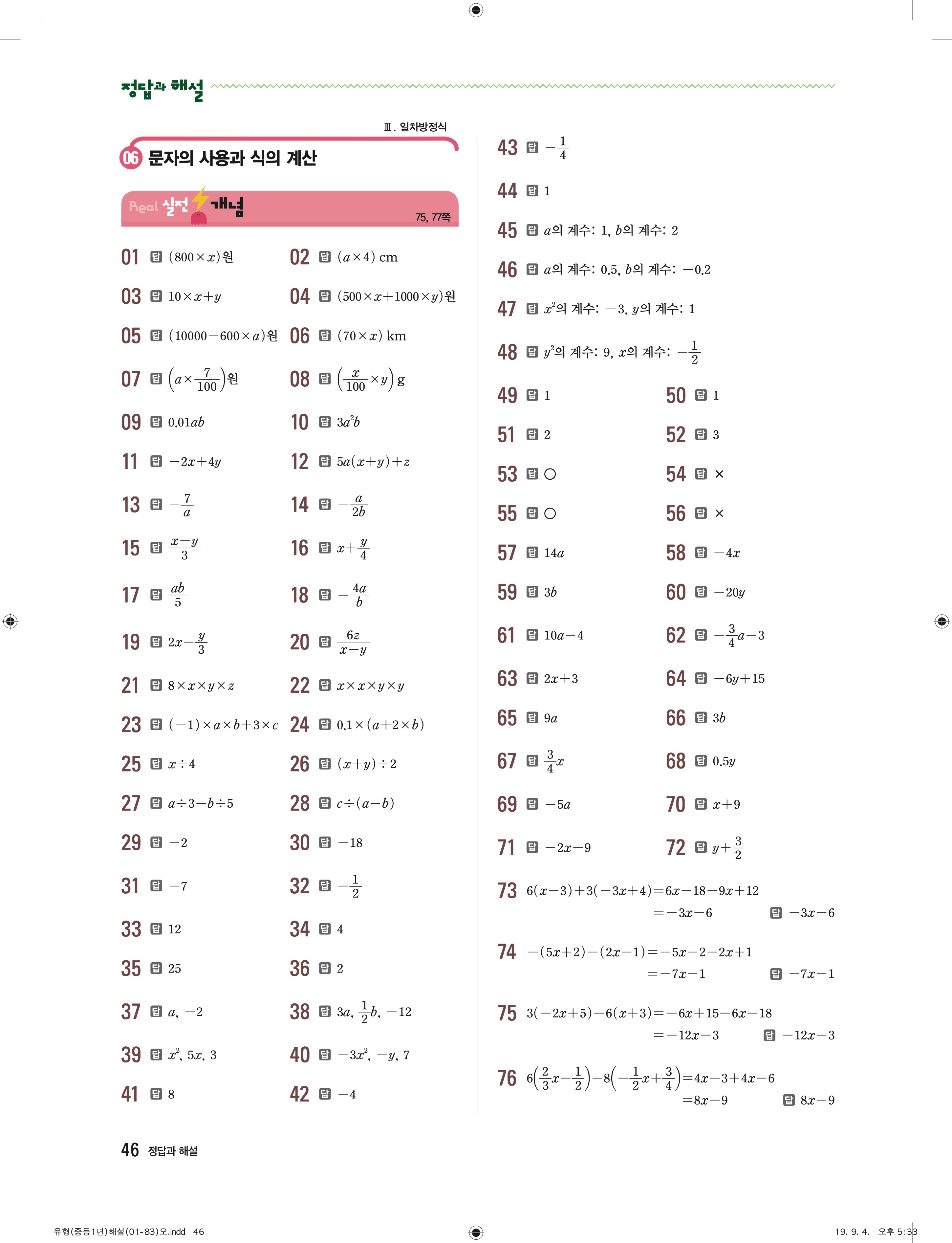 유형더블 중학수학 1-1 더블북 답지 해설 바로보는 사진답지 빠른답지 모바일최적화