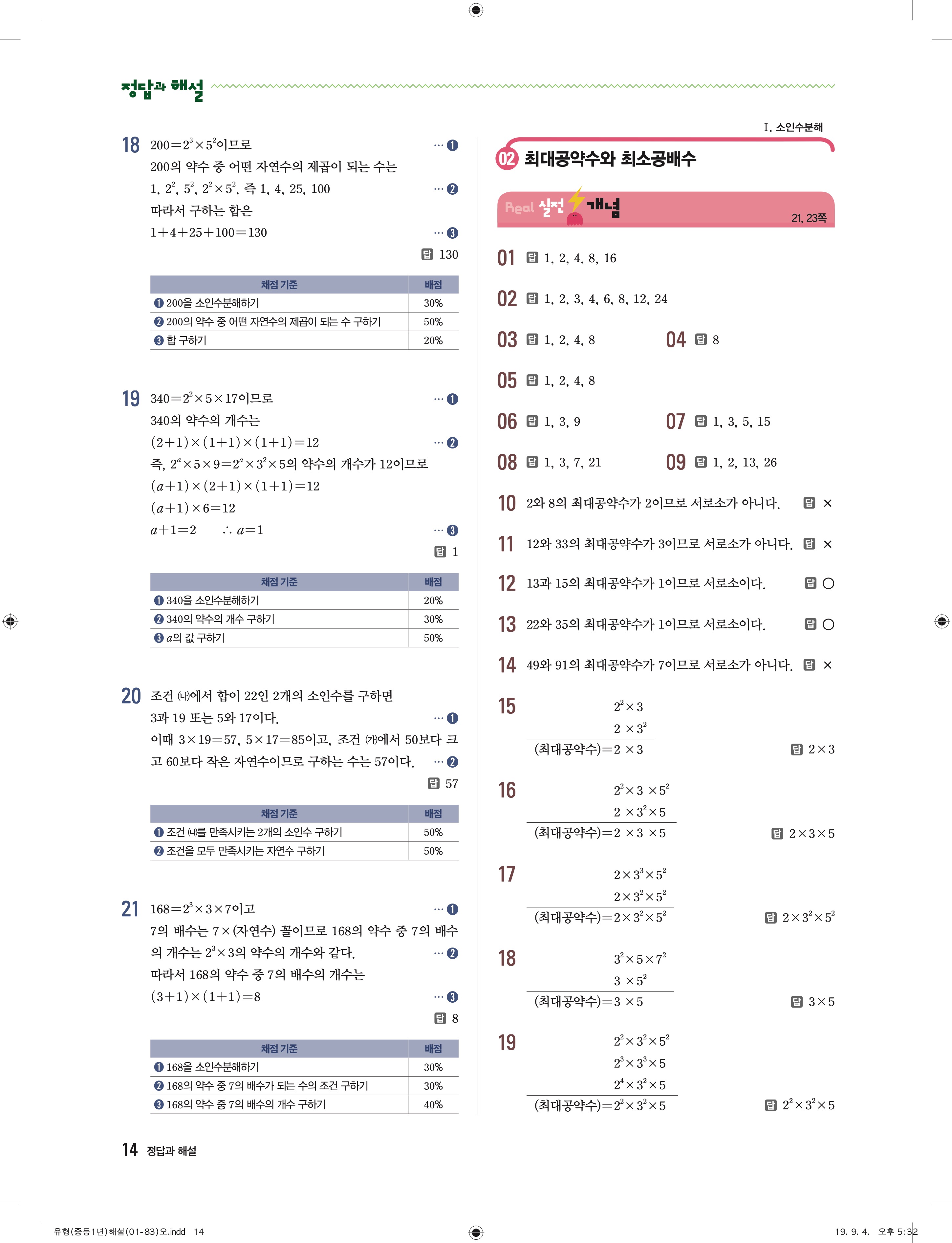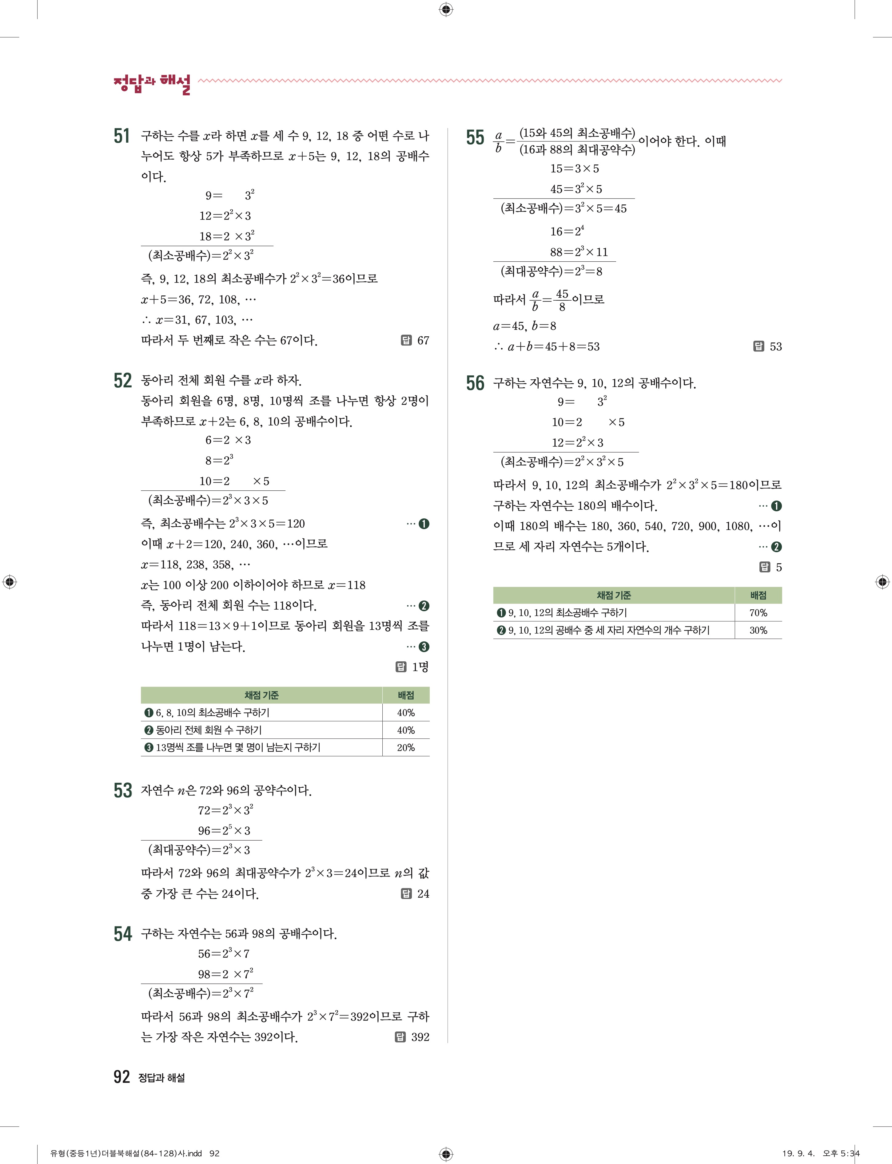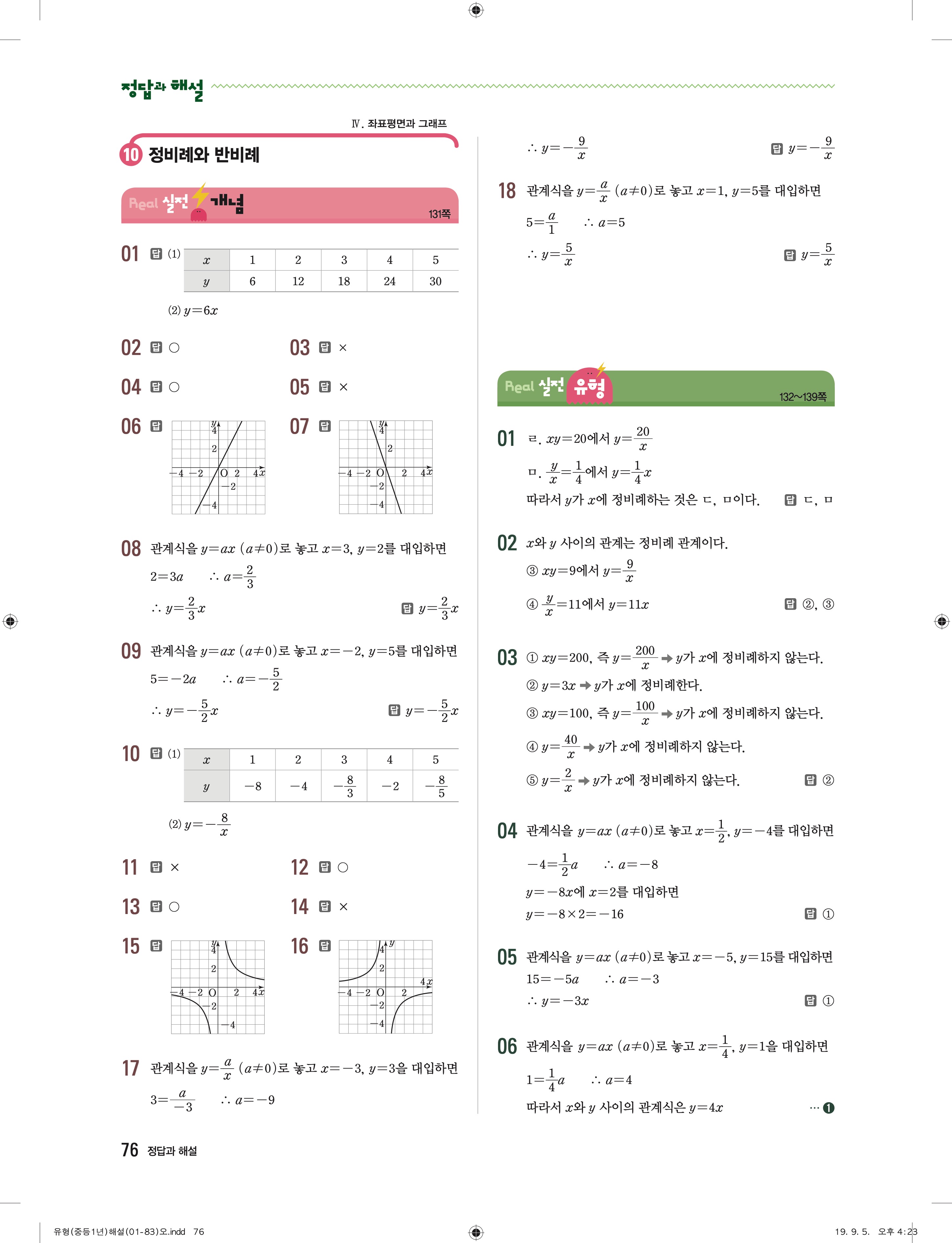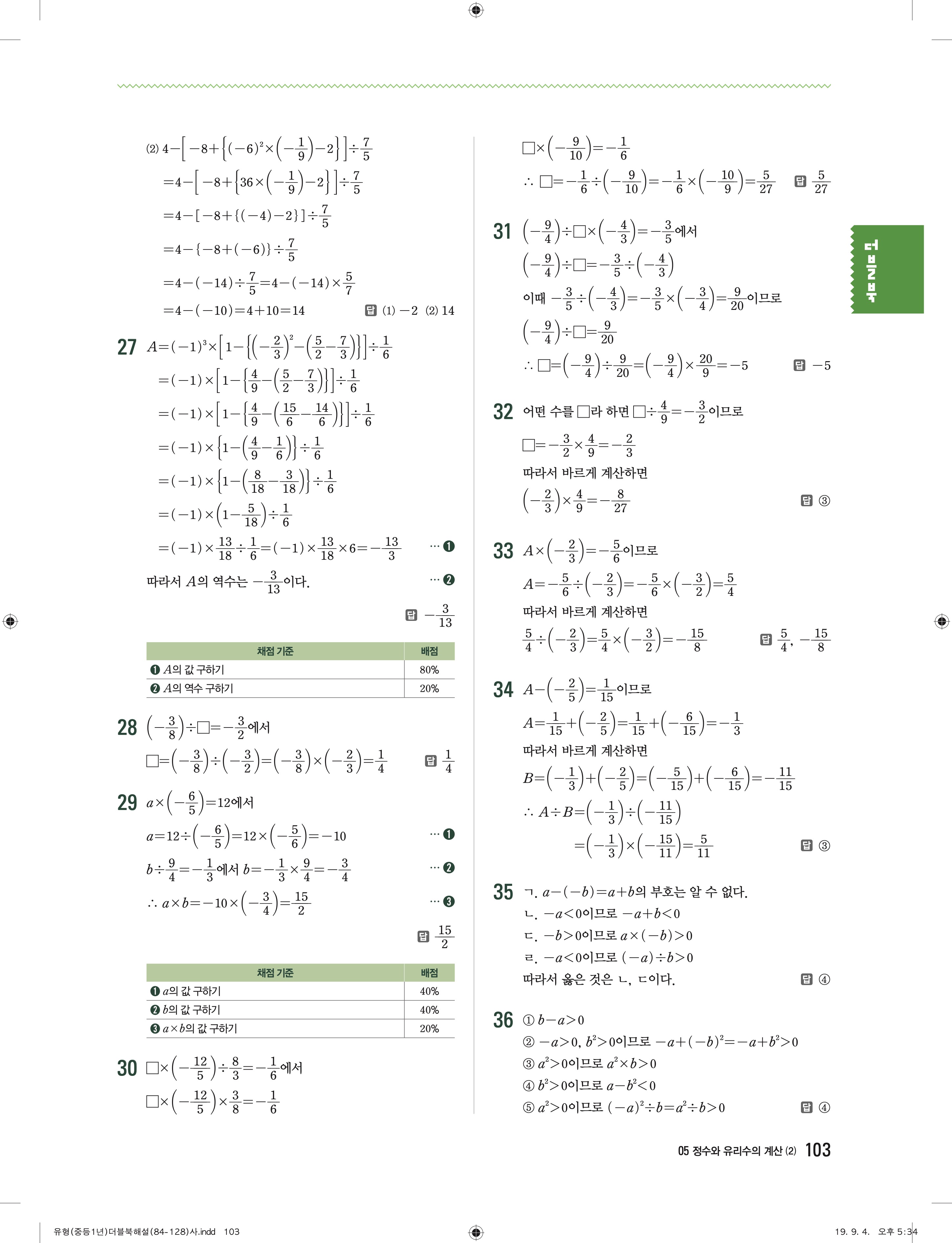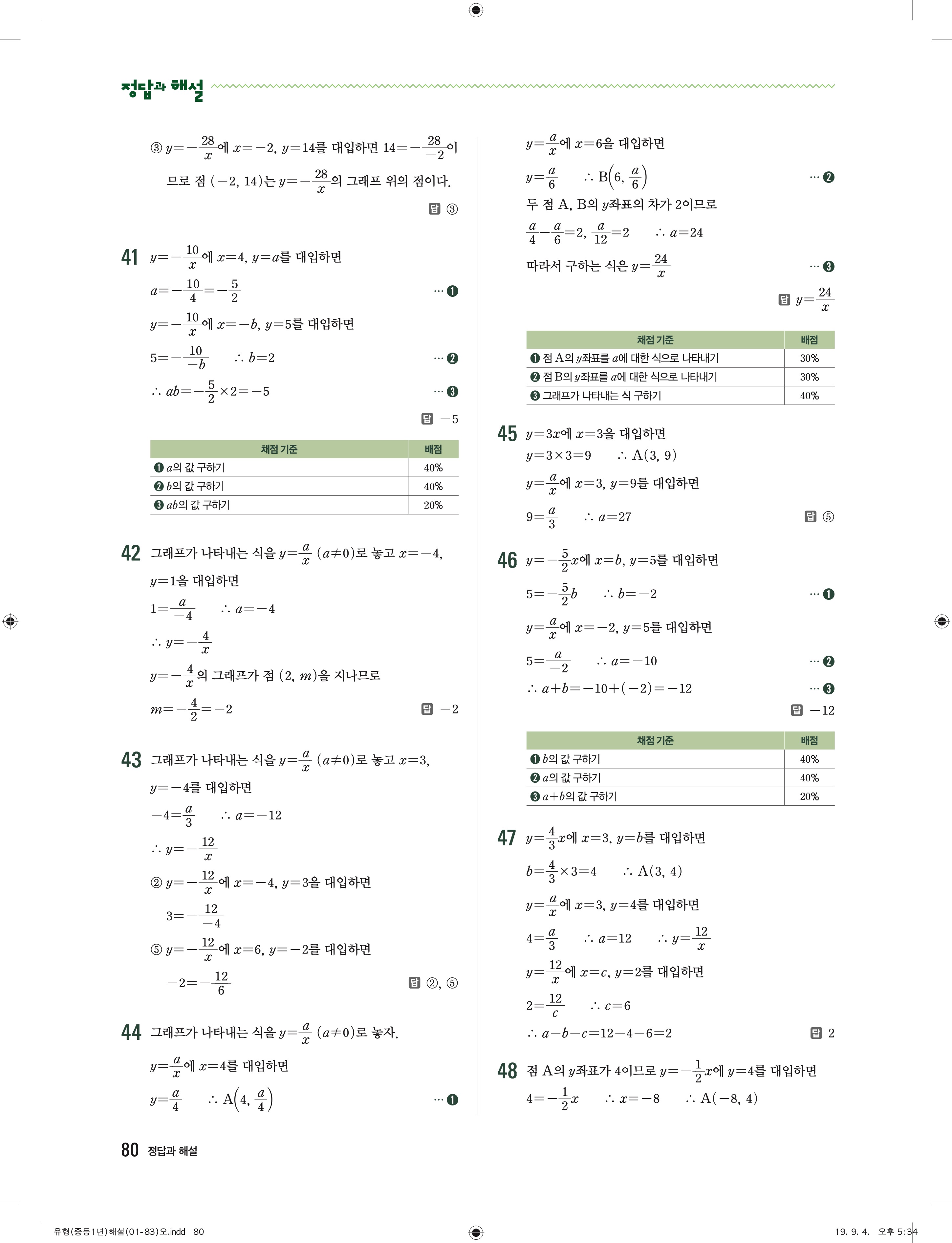 유형더블 중학수학 1-1 더블북 답지 해설 바로보는 사진답지 빠른답지 모바일최적화