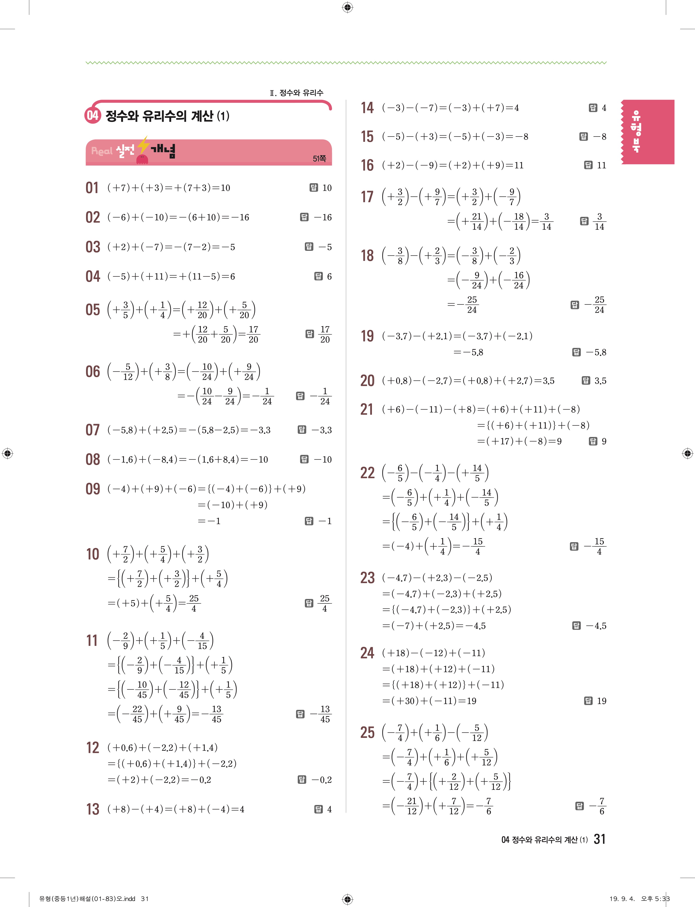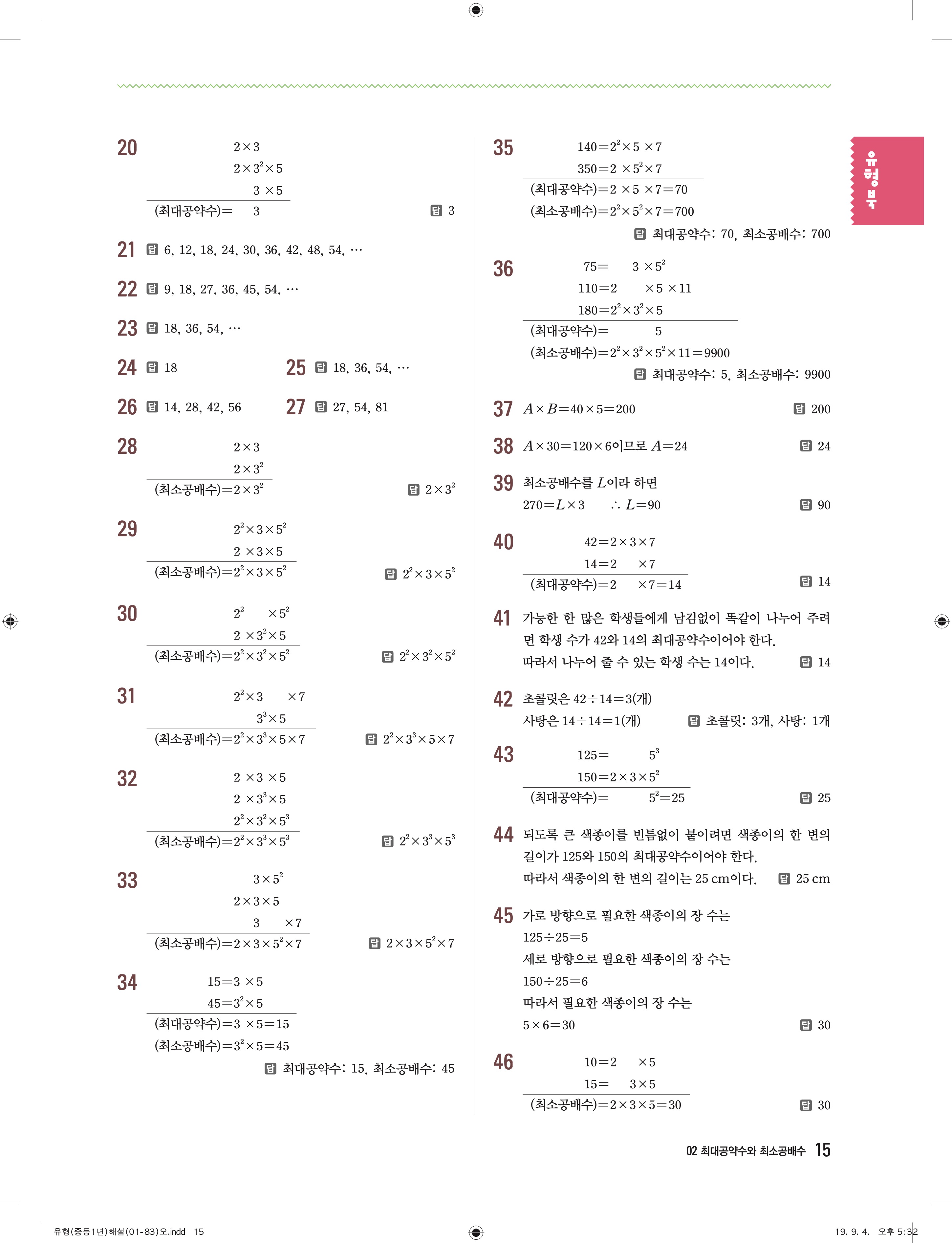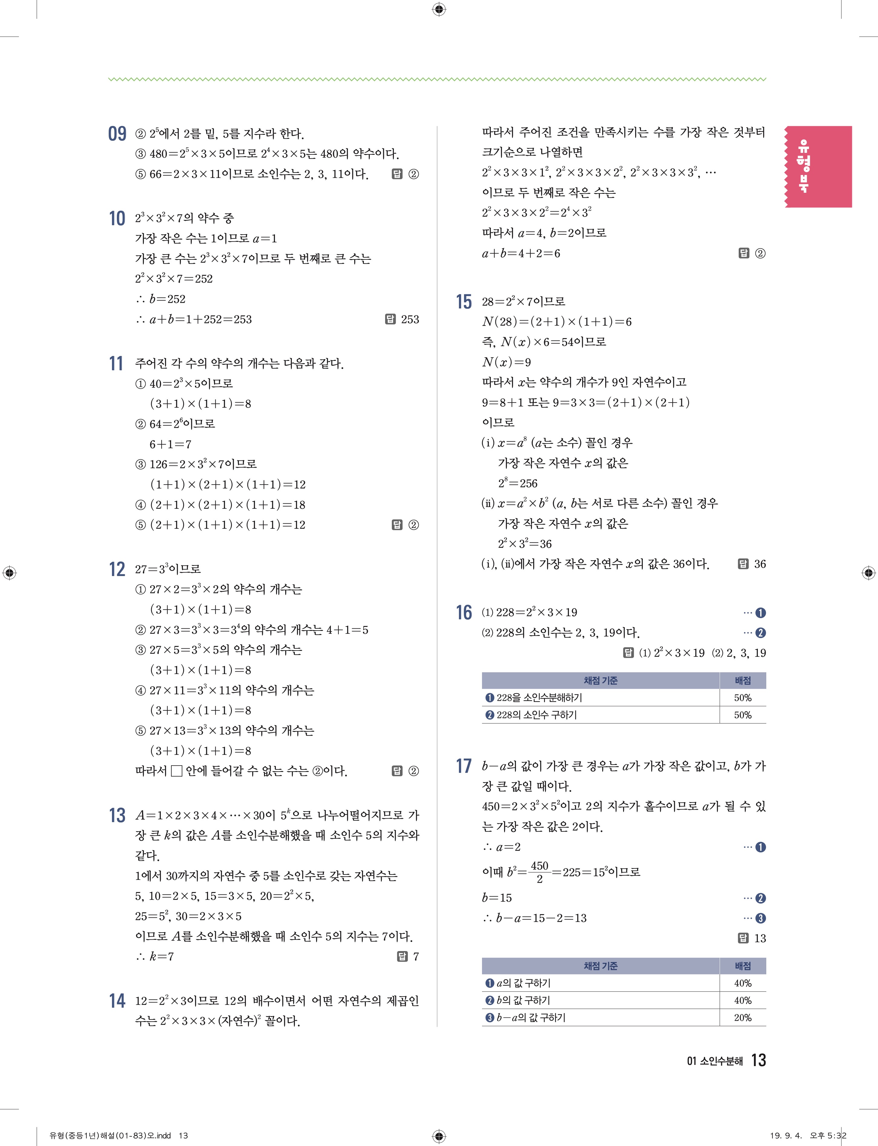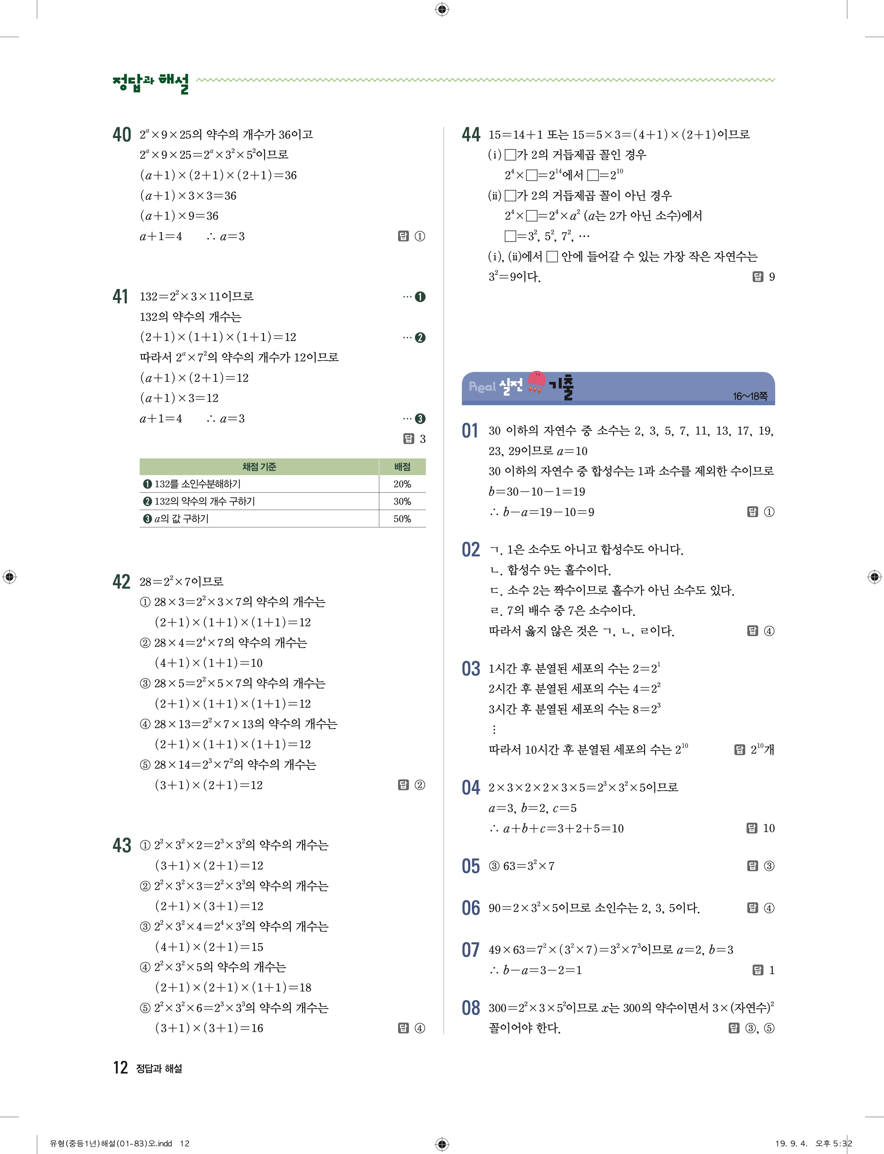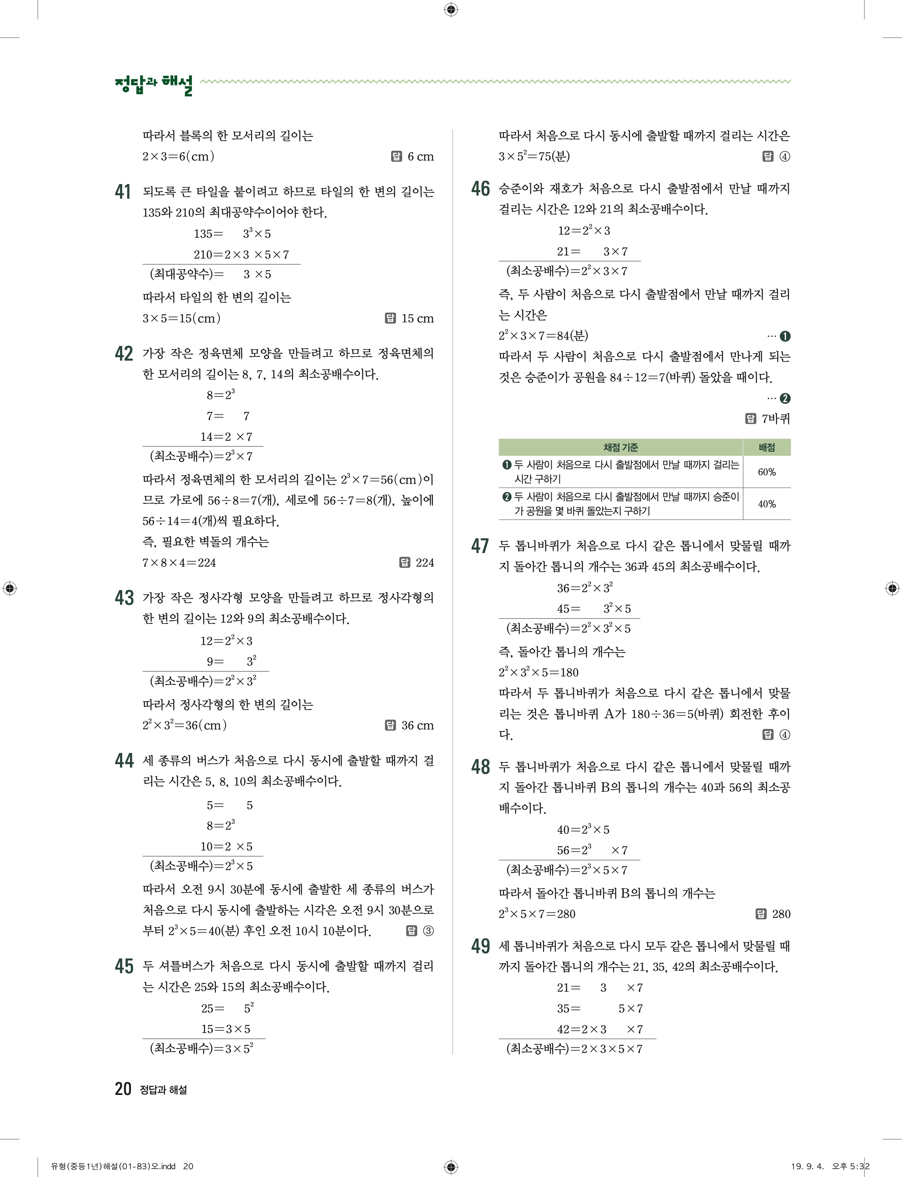 유형더블 중학수학 1-1 더블북 답지 해설 바로보는 사진답지 빠른답지 모바일최적화