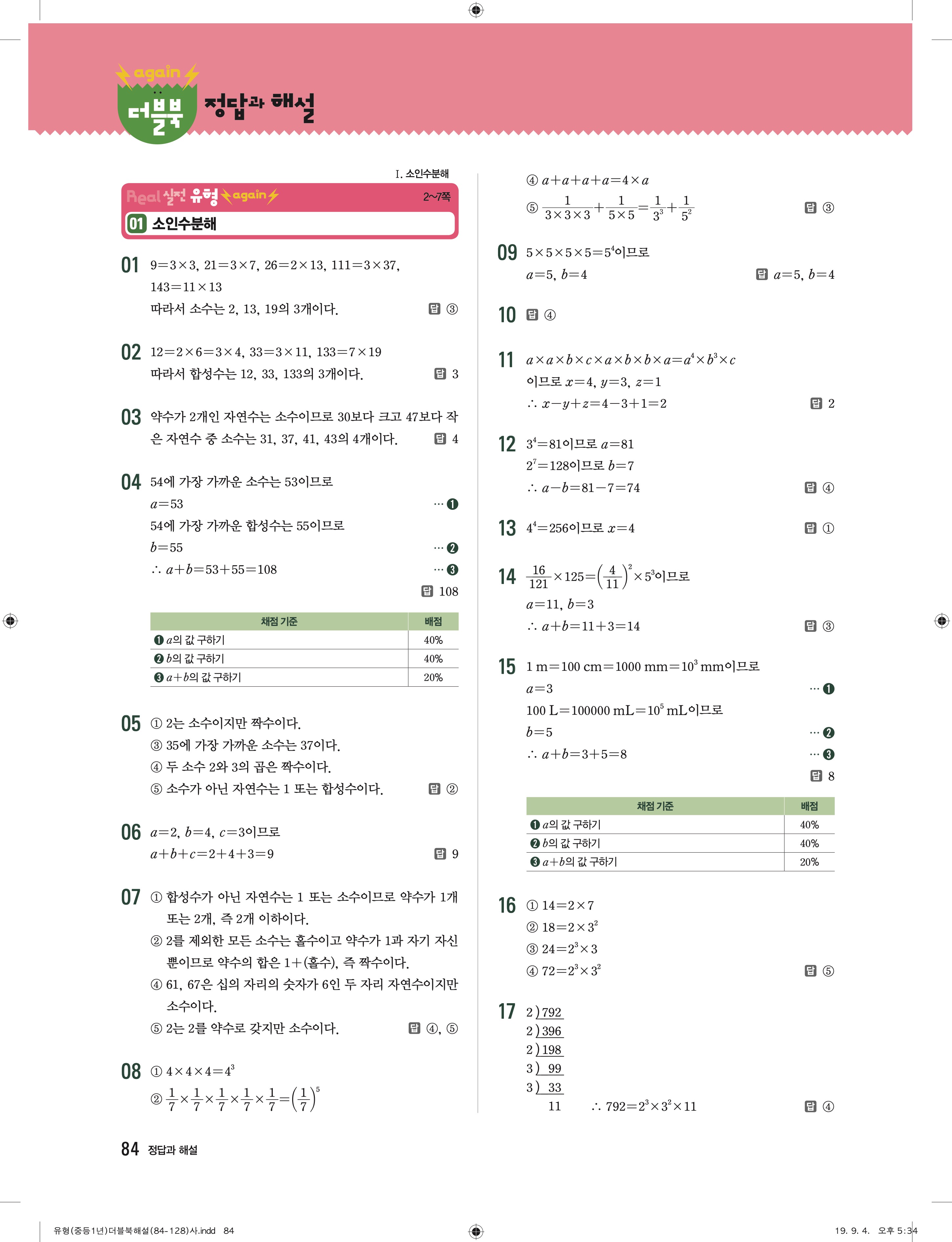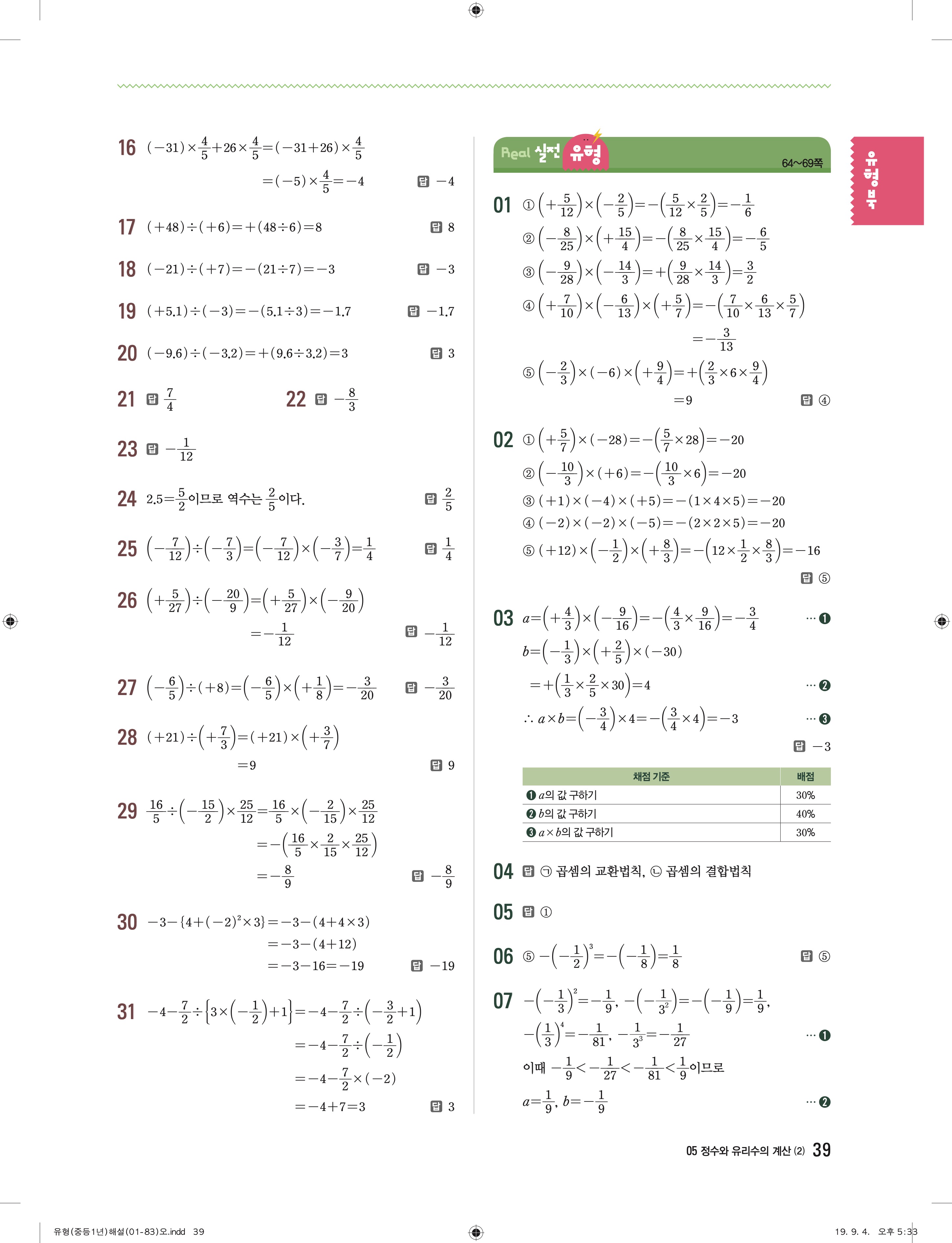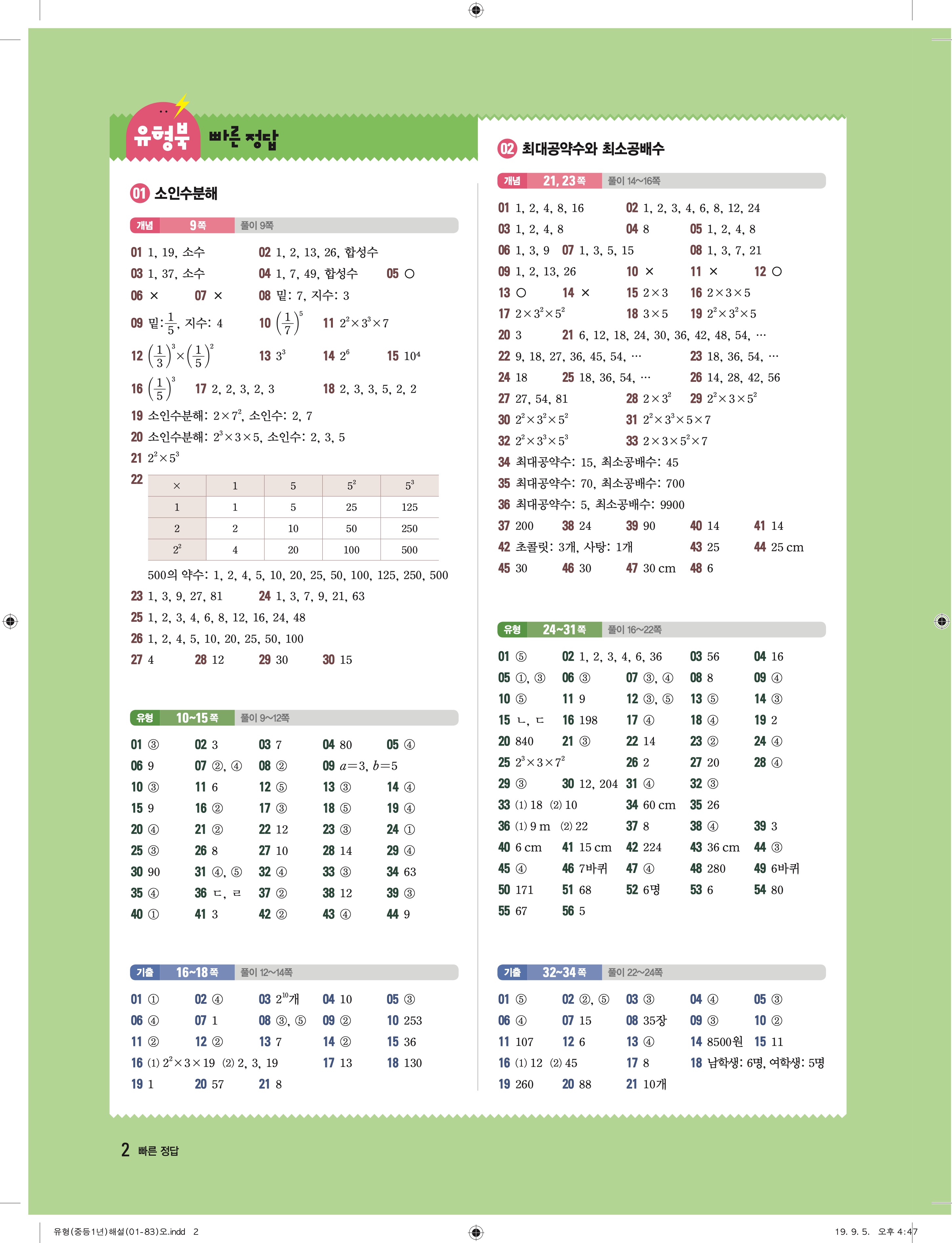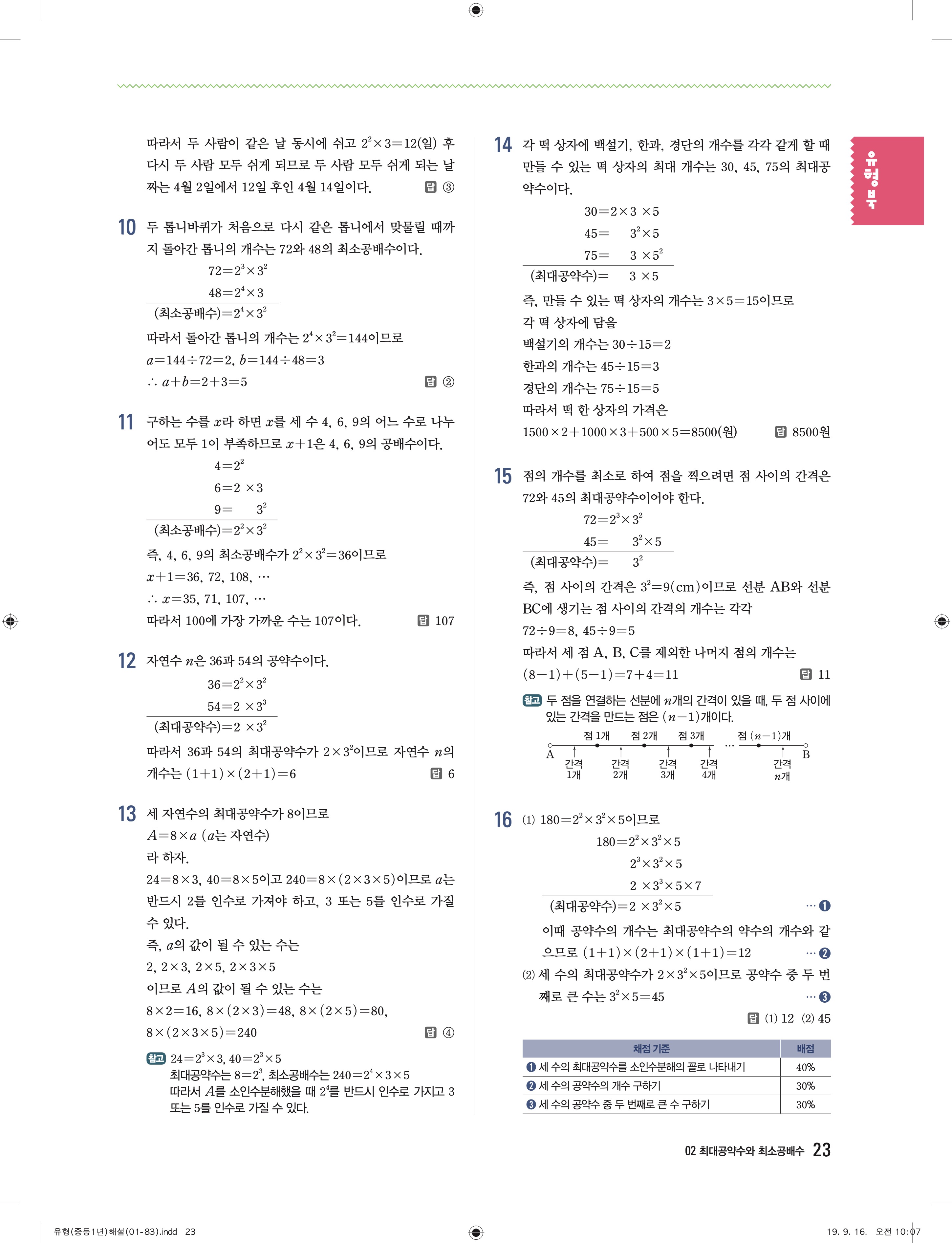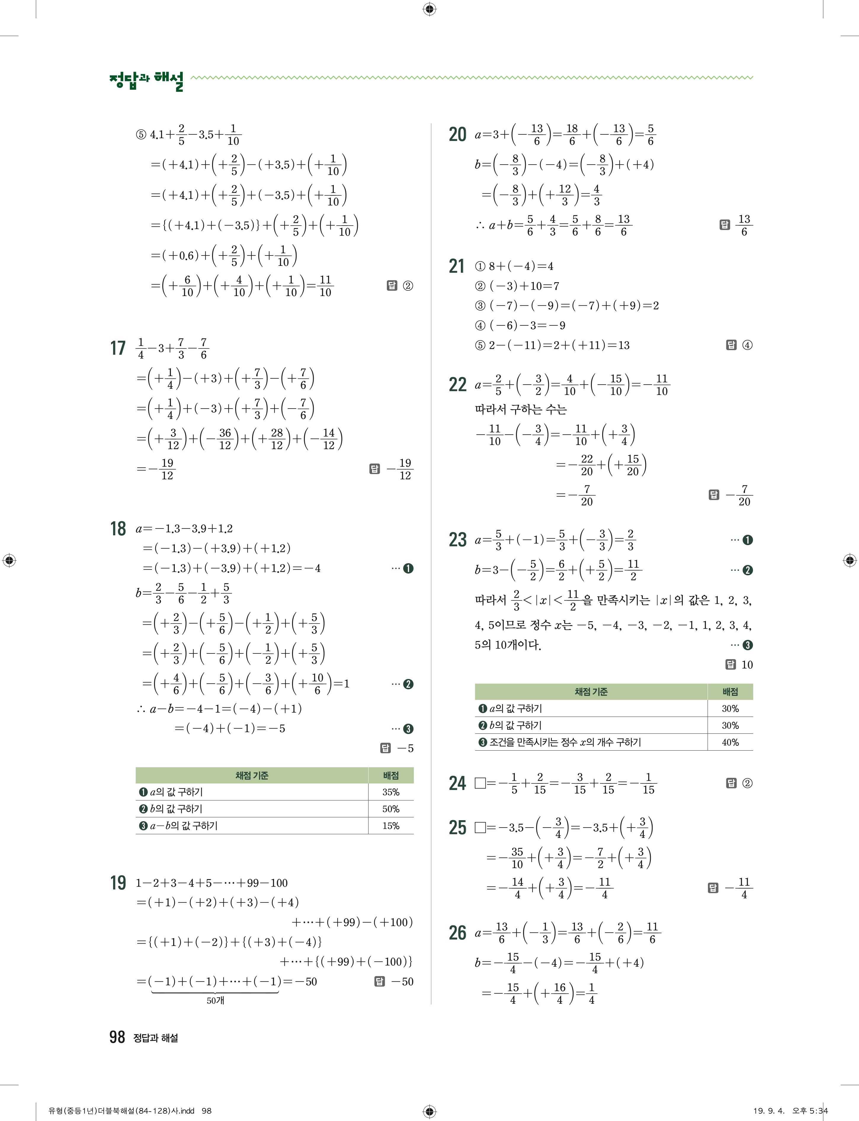 유형더블 중학수학 1-1 더블북 답지 해설 바로보는 사진답지 빠른답지 모바일최적화