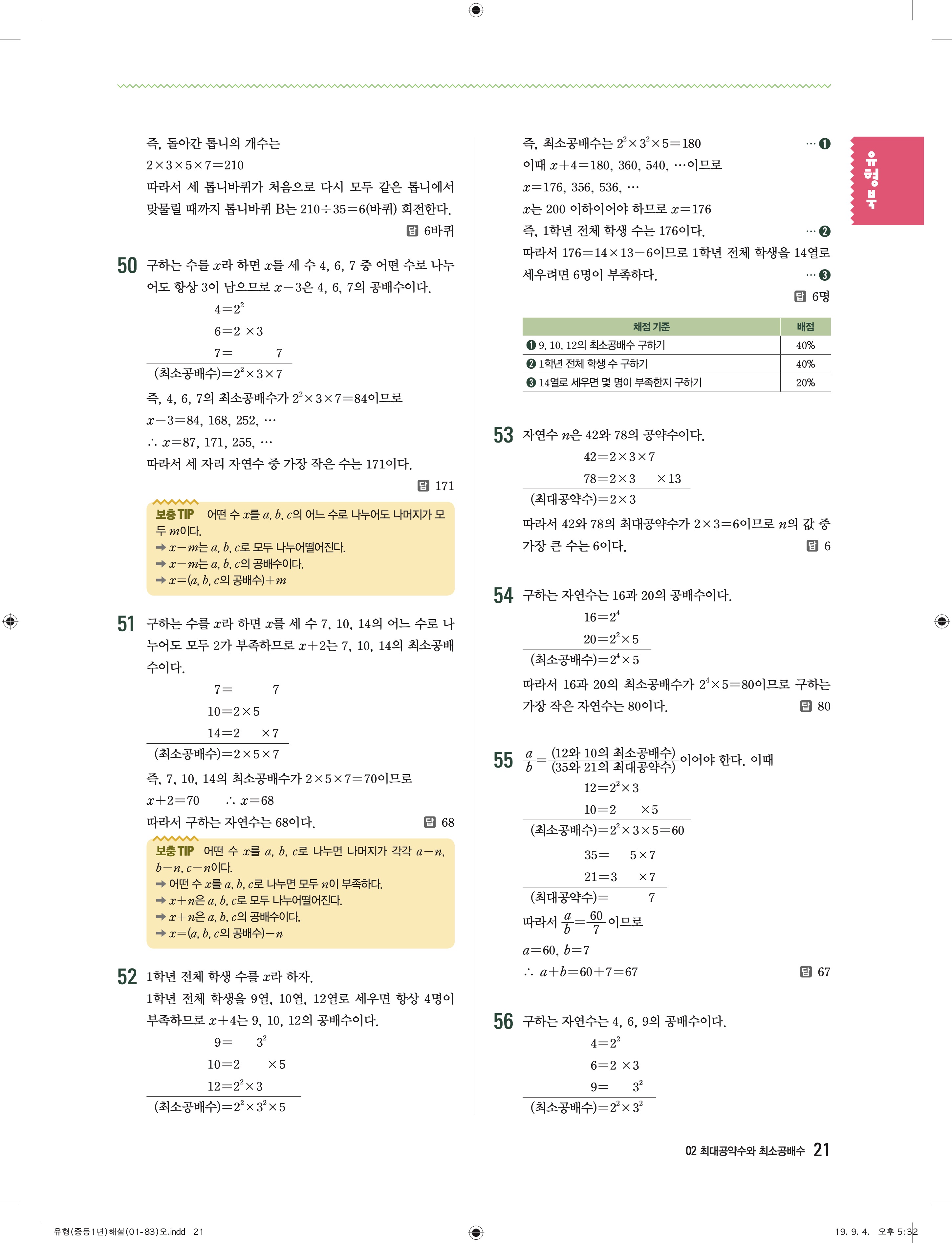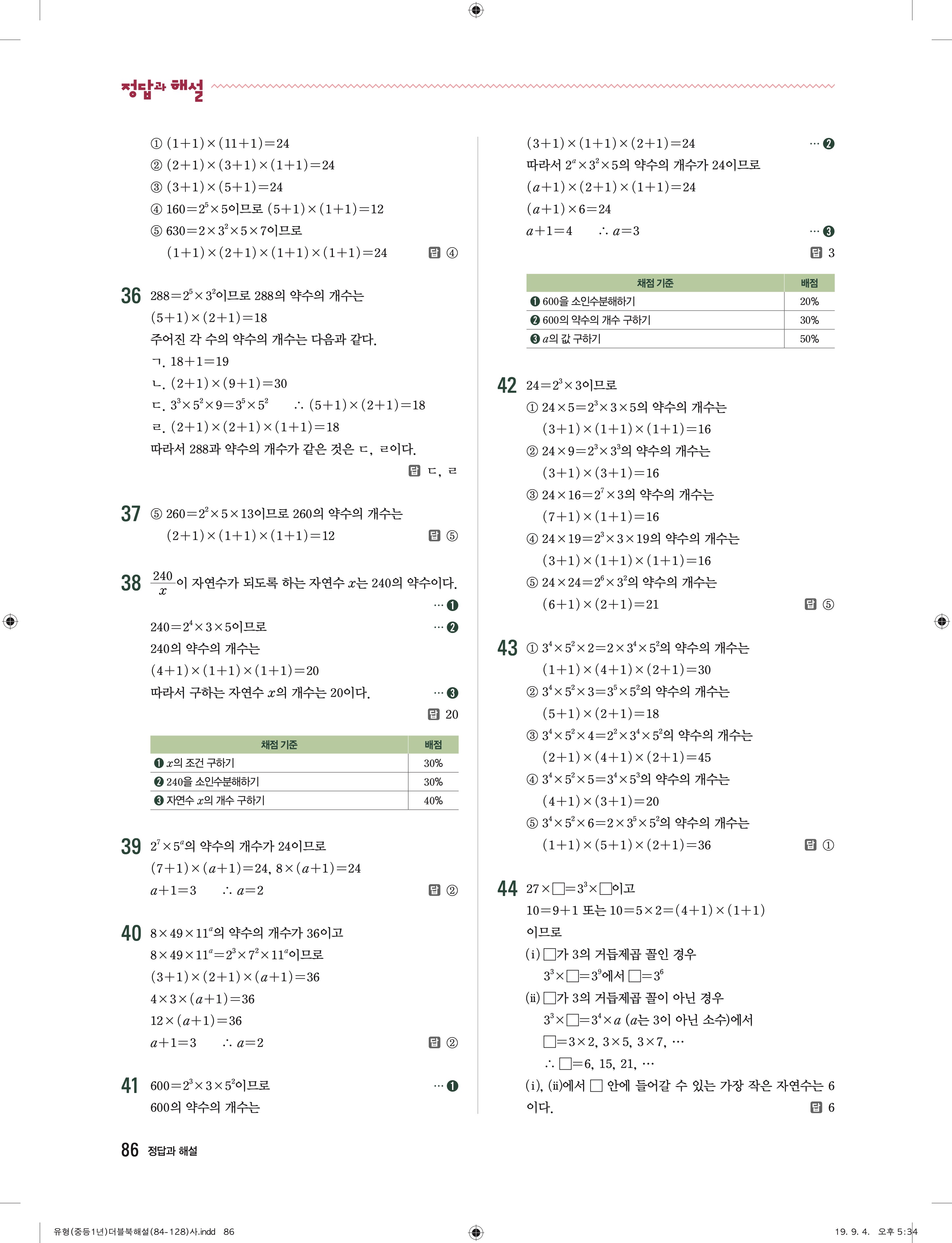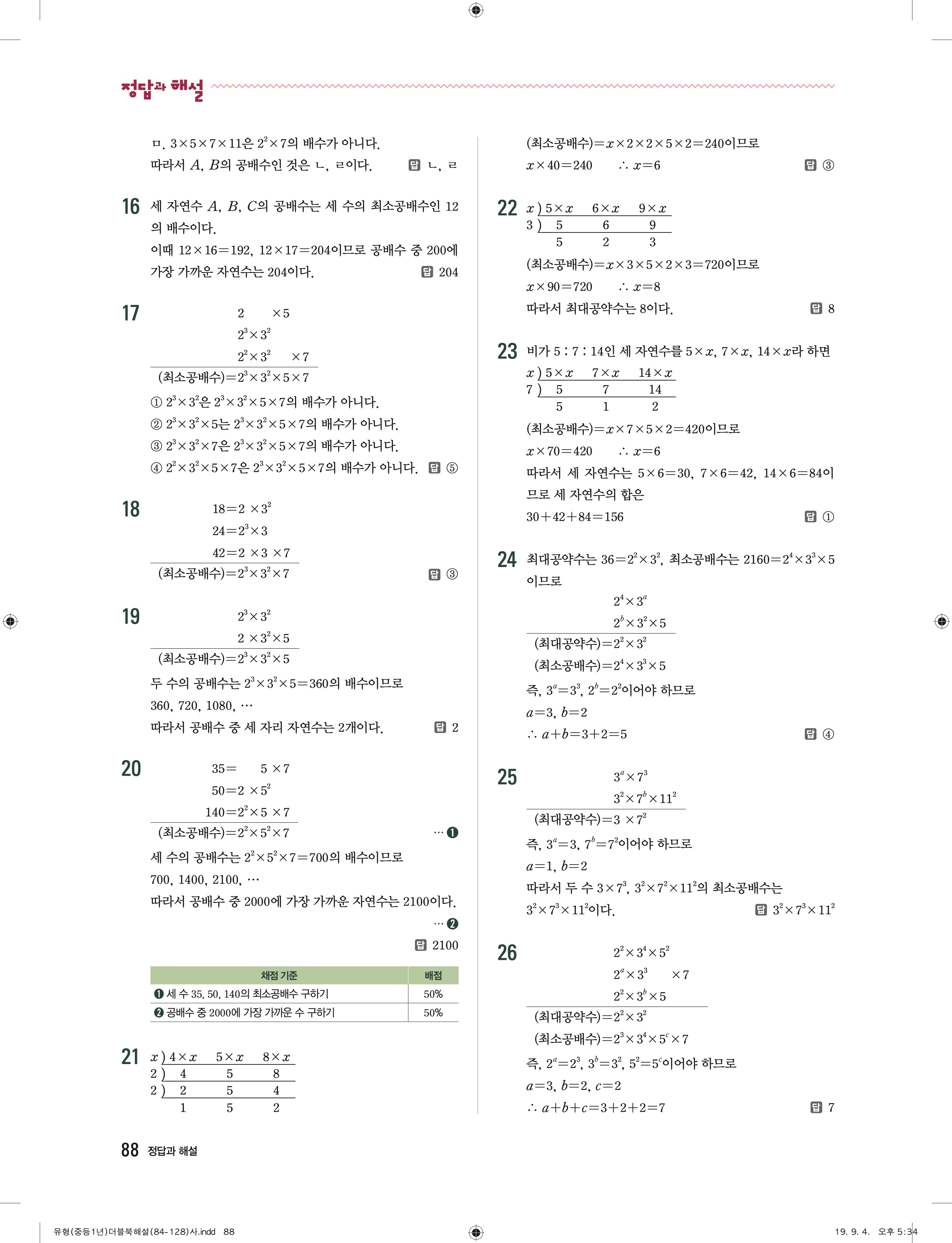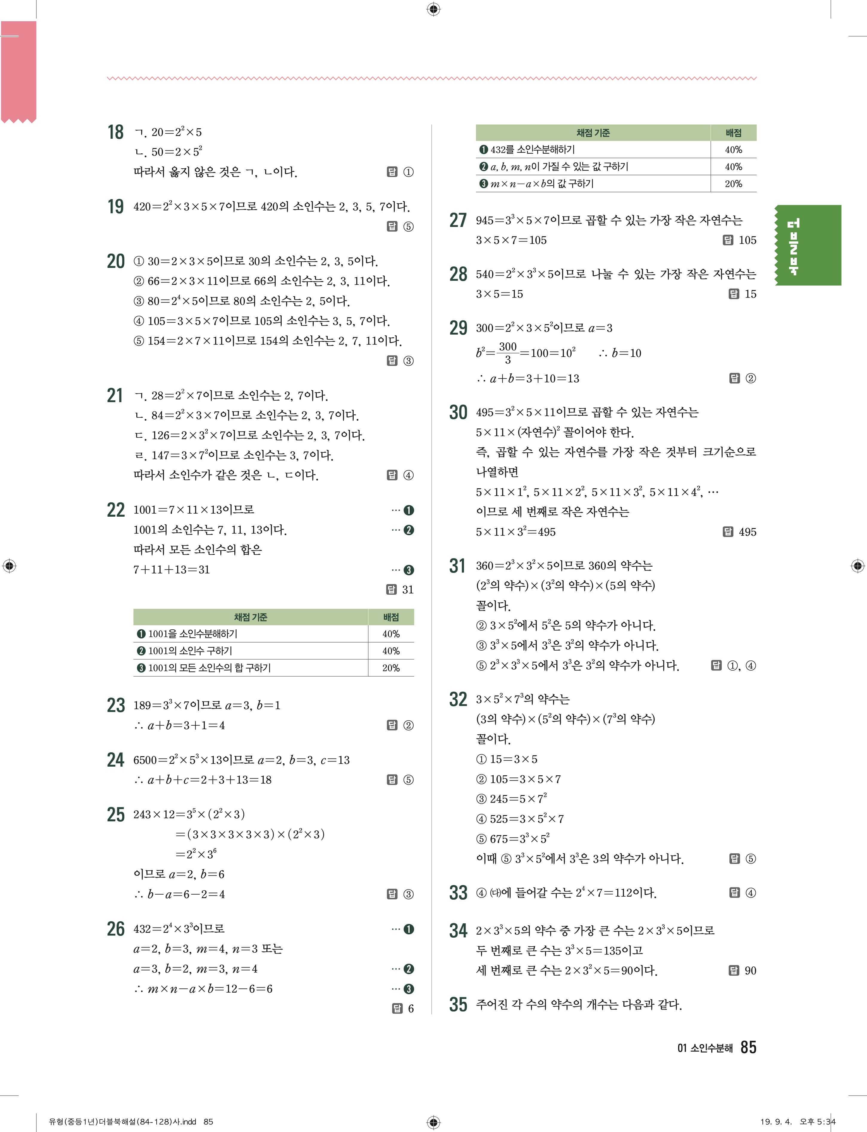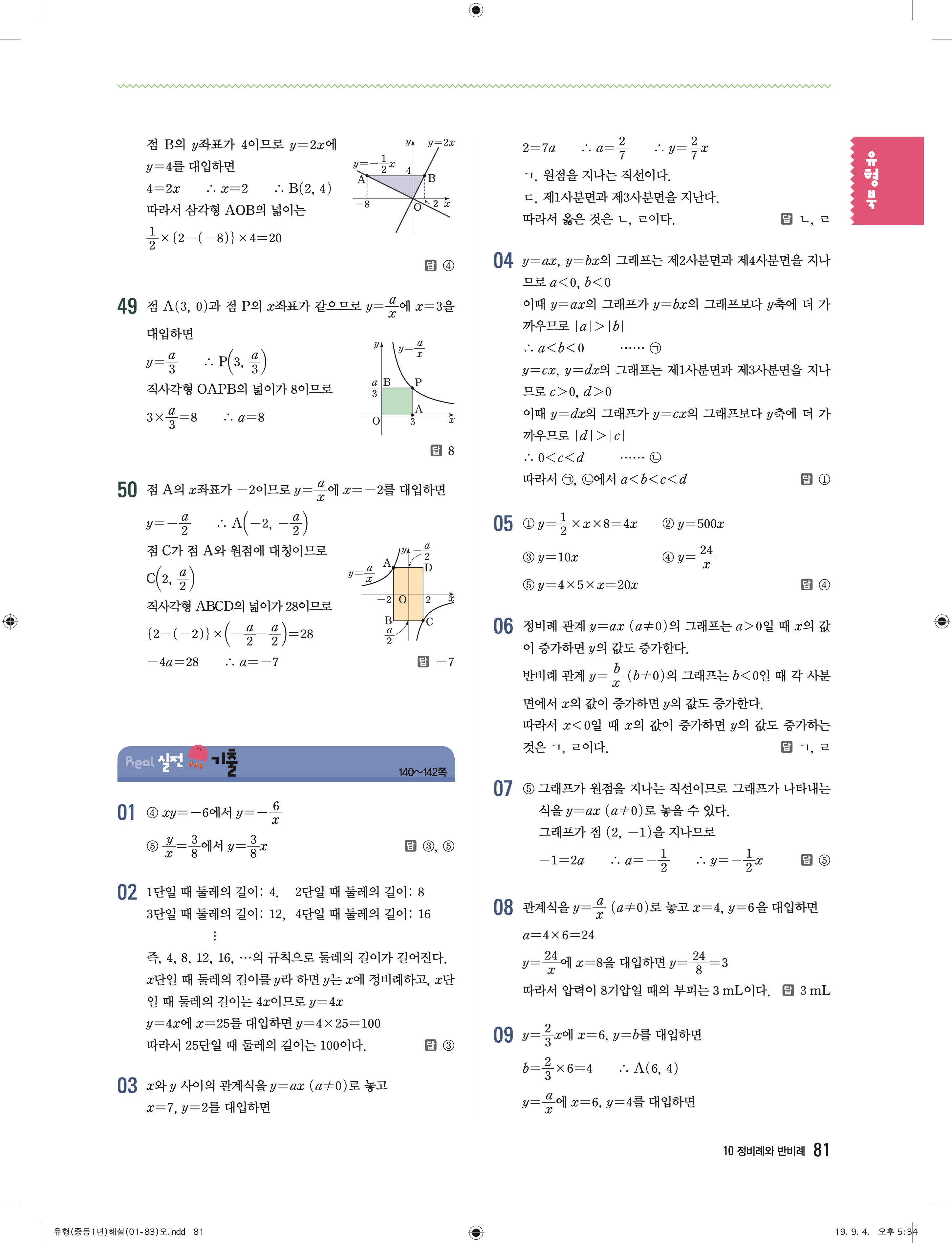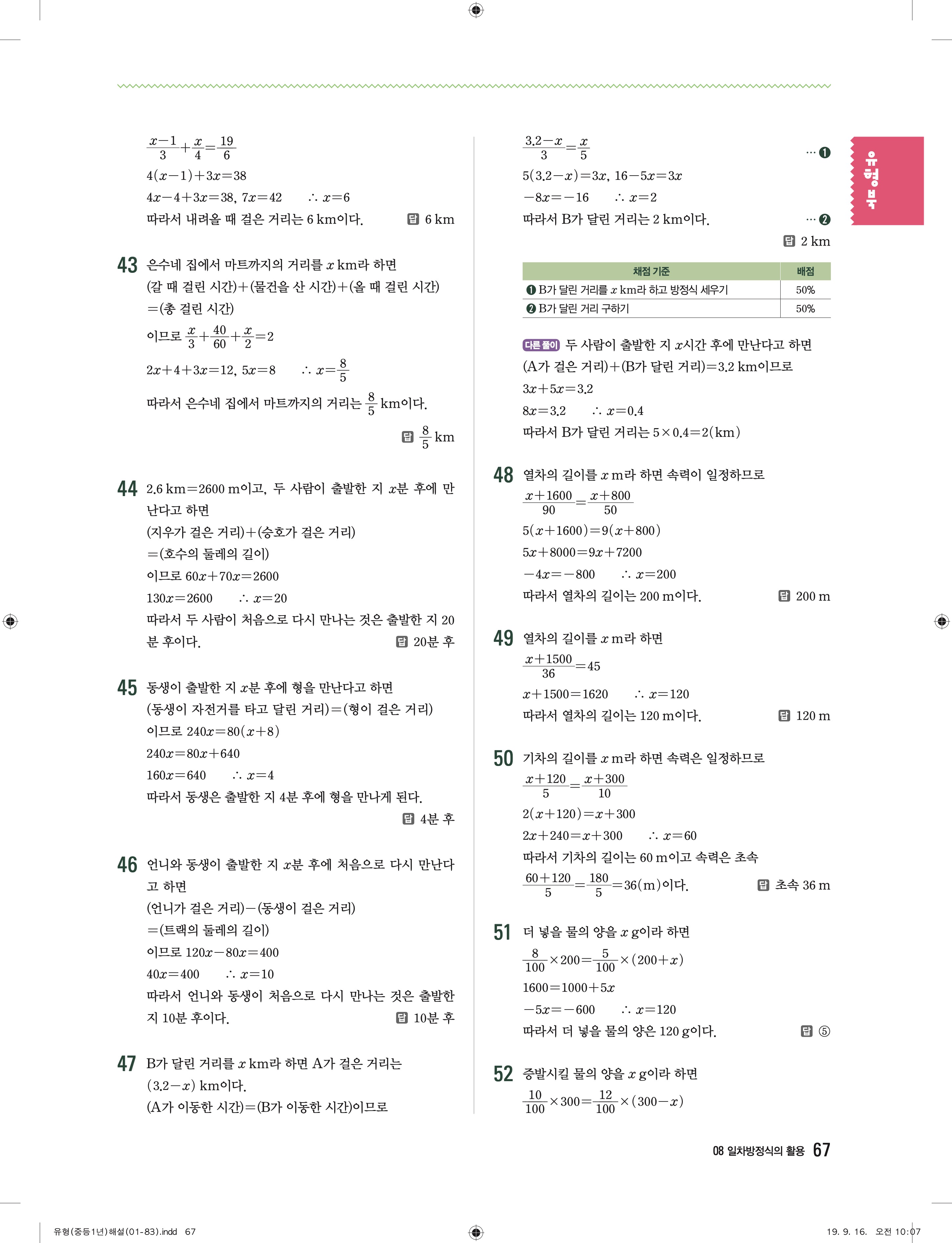 유형더블 중학수학 1-1 더블북 답지 해설 바로보는 사진답지 빠른답지 모바일최적화