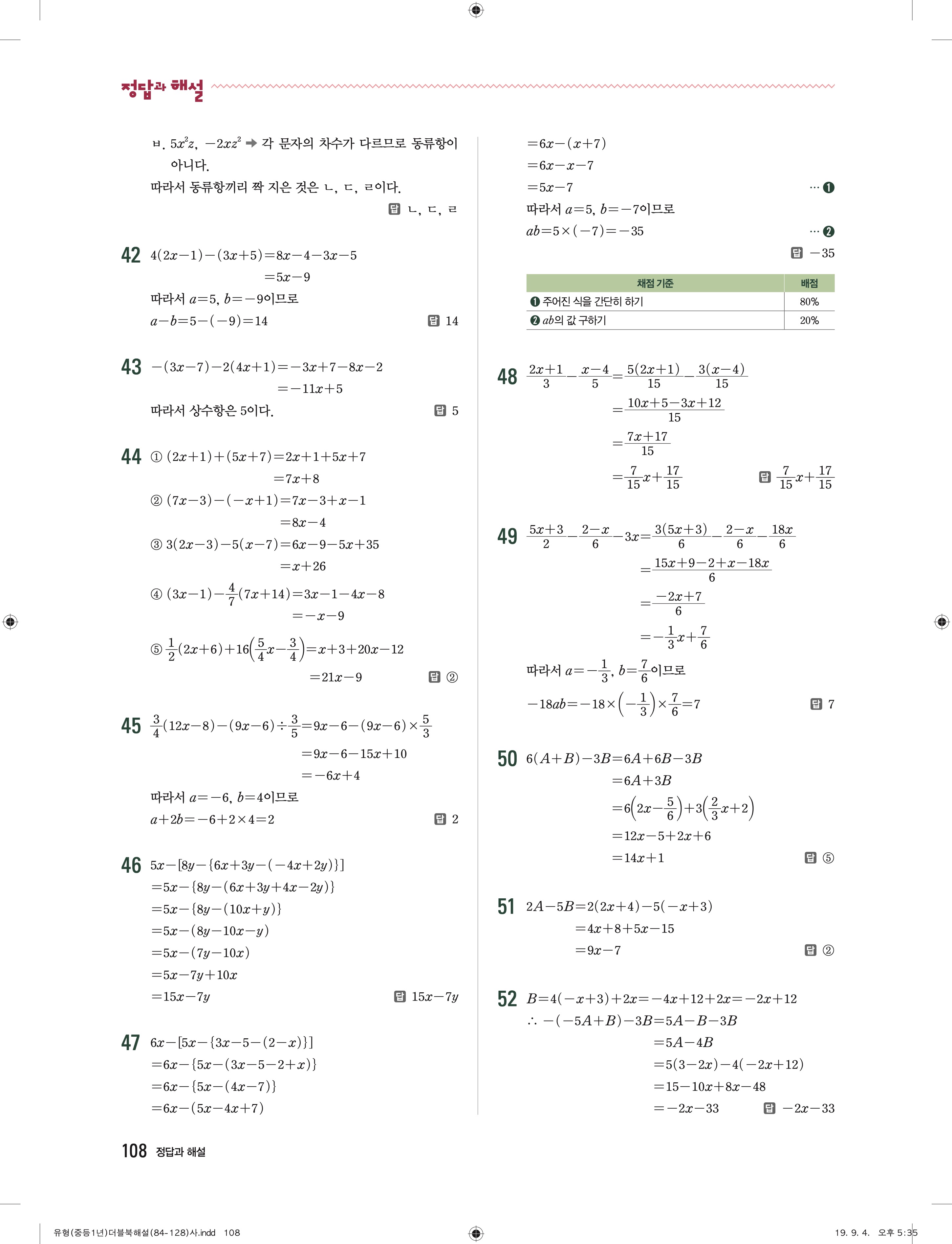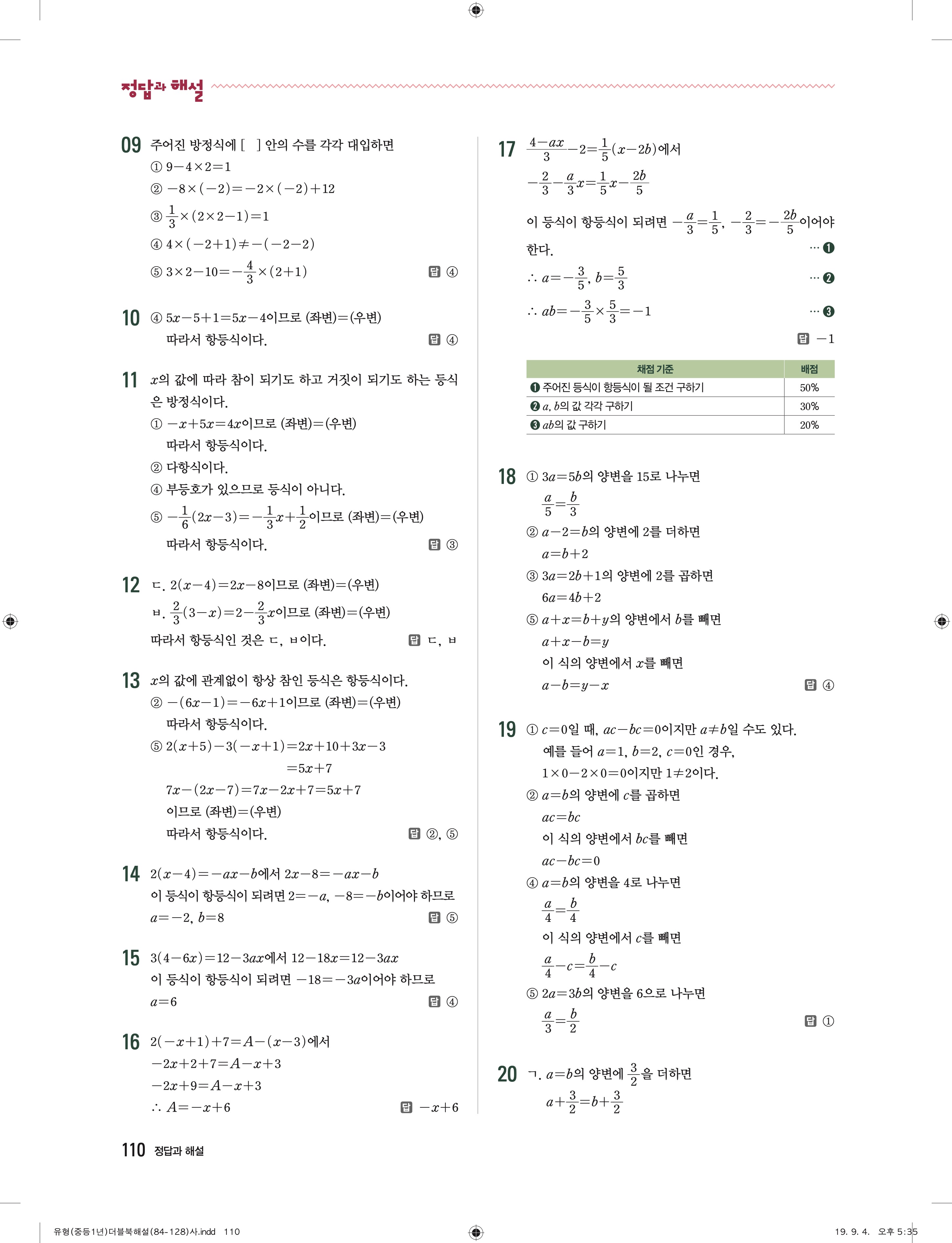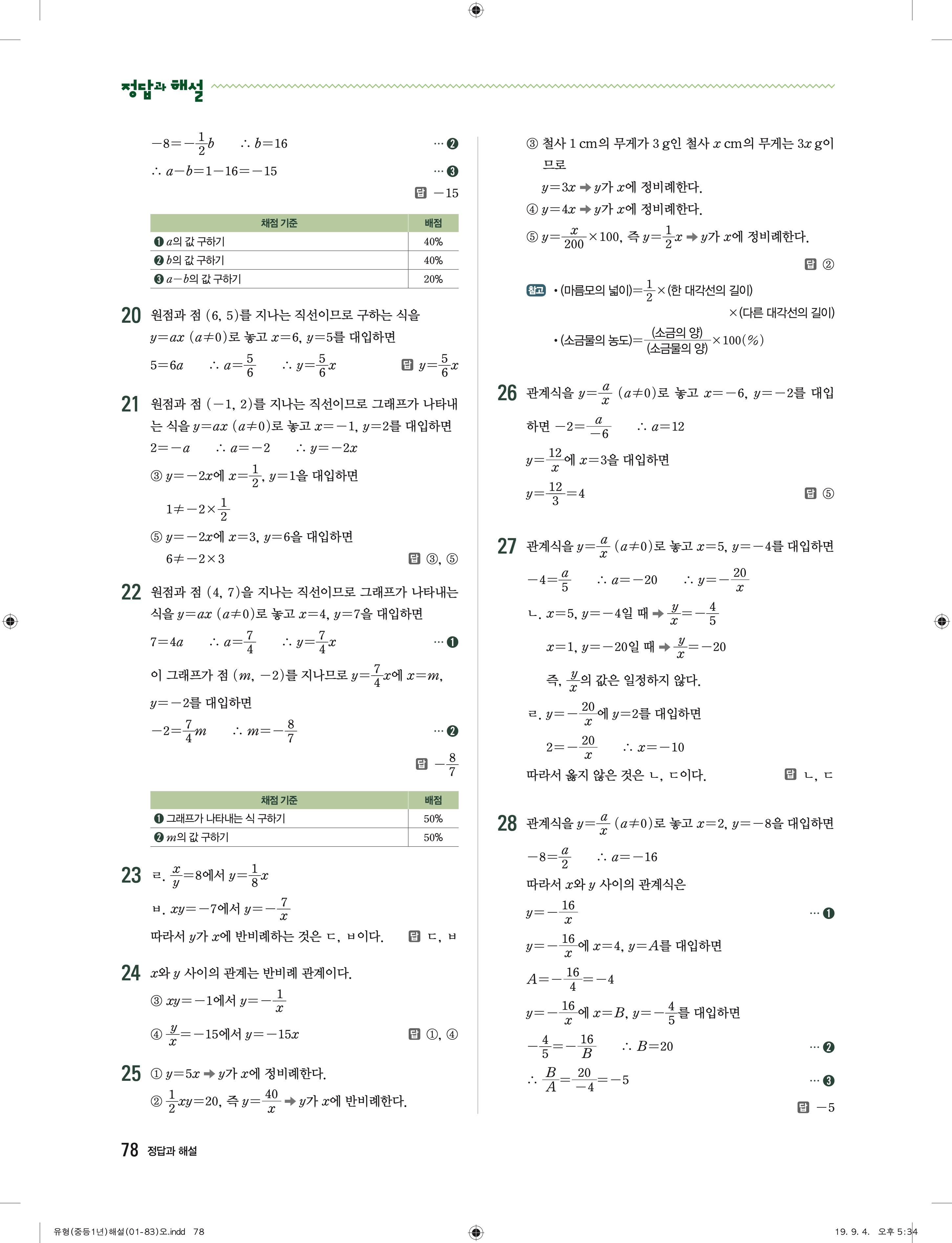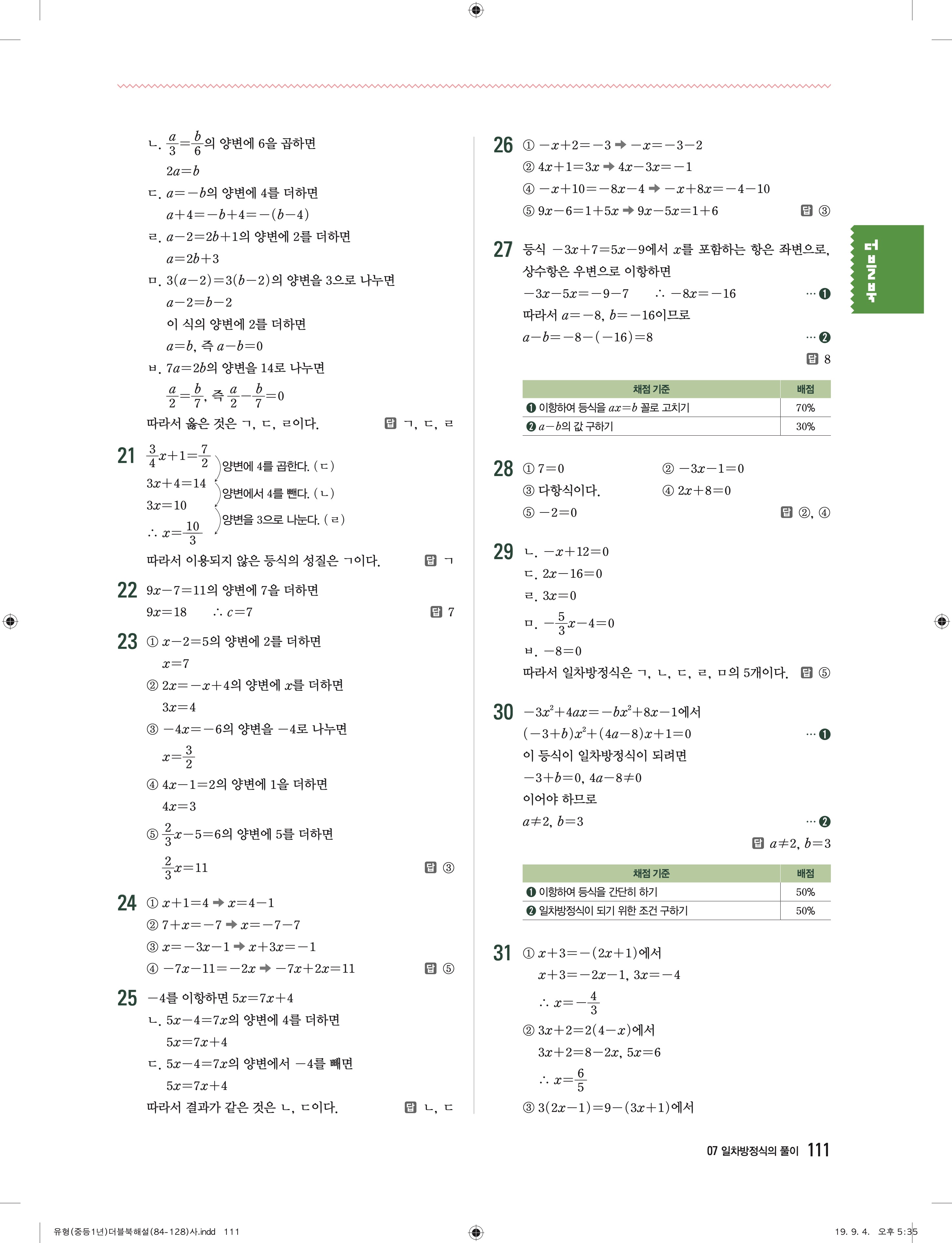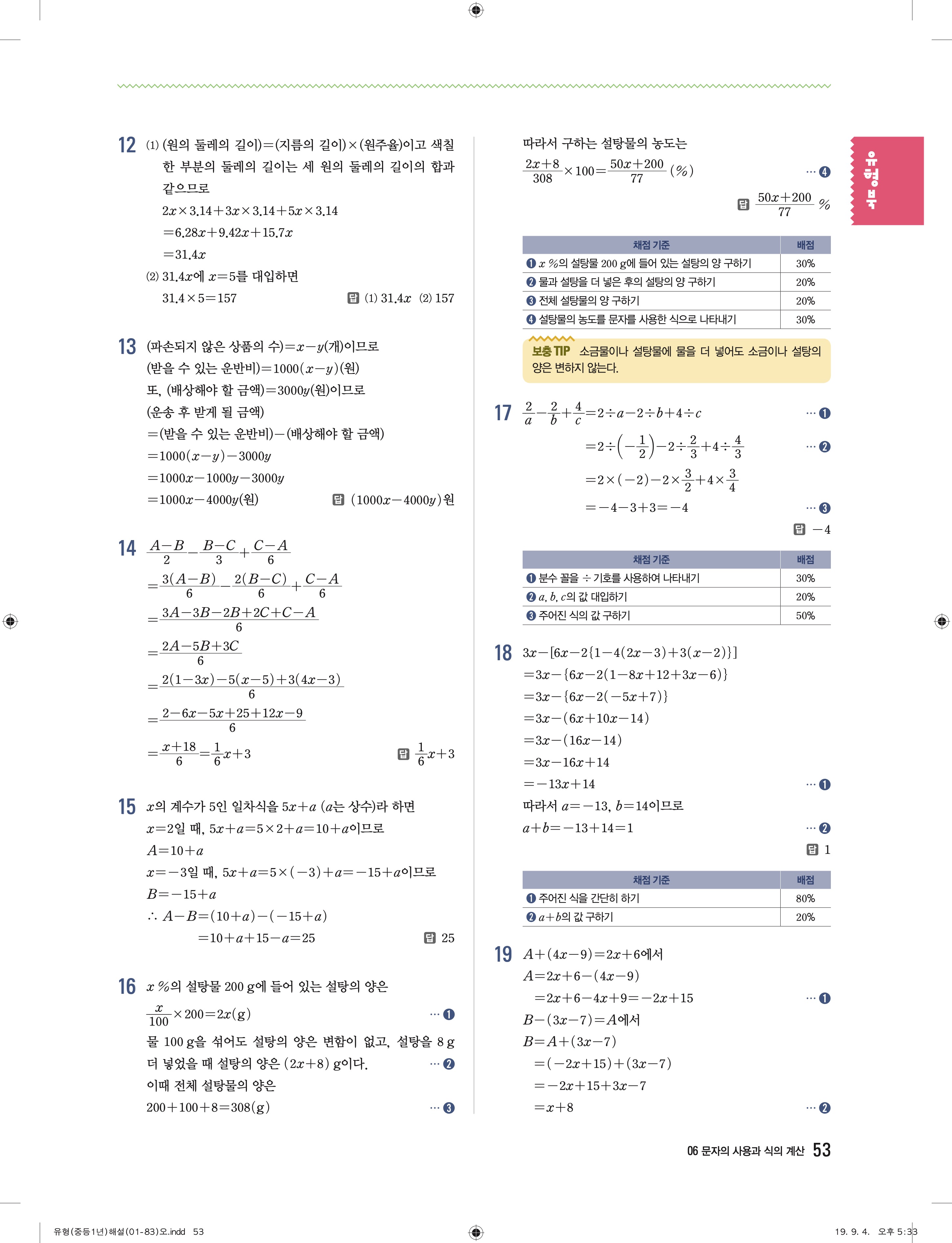 유형더블 중학수학 1-1 더블북 답지 해설 바로보는 사진답지 빠른답지 모바일최적화