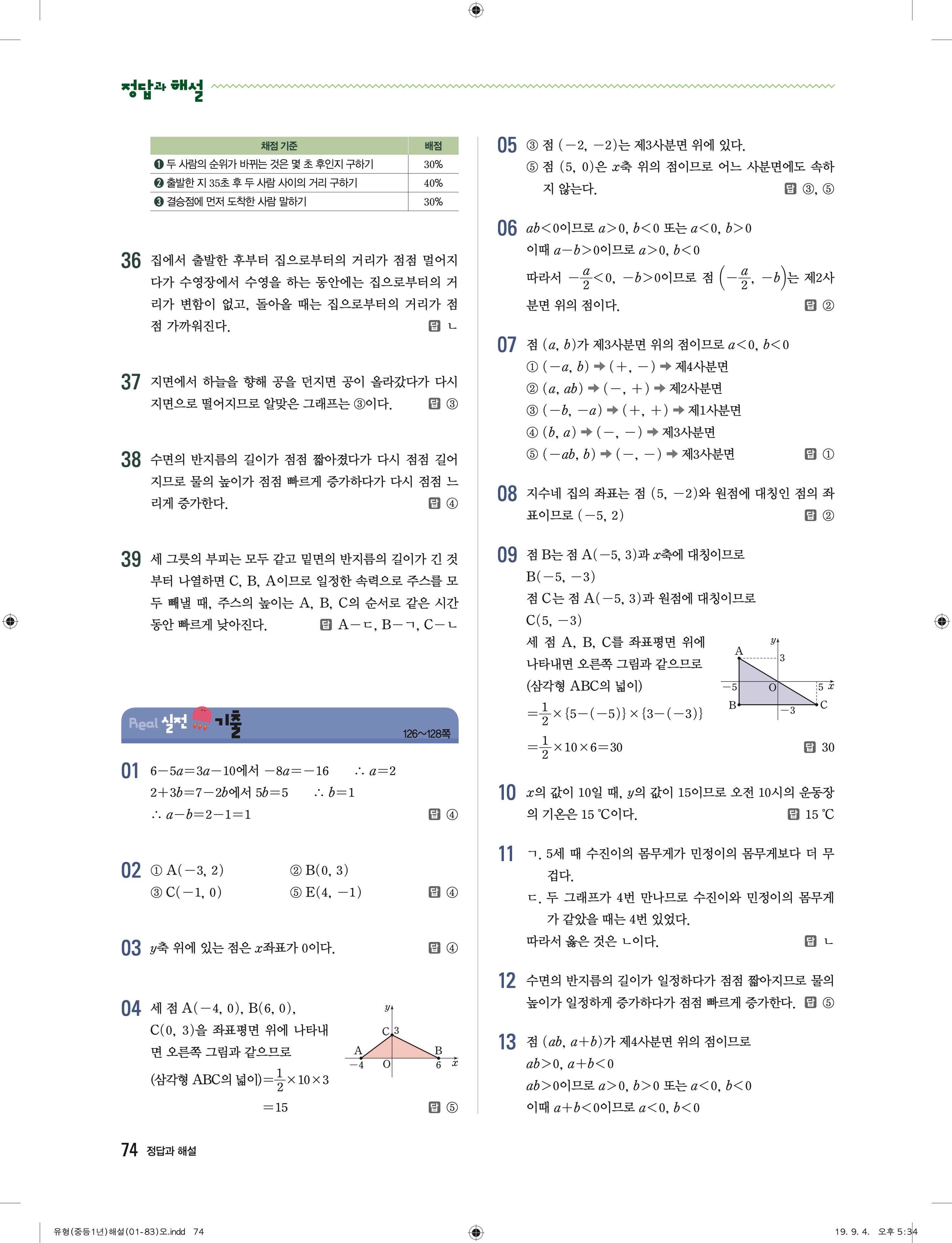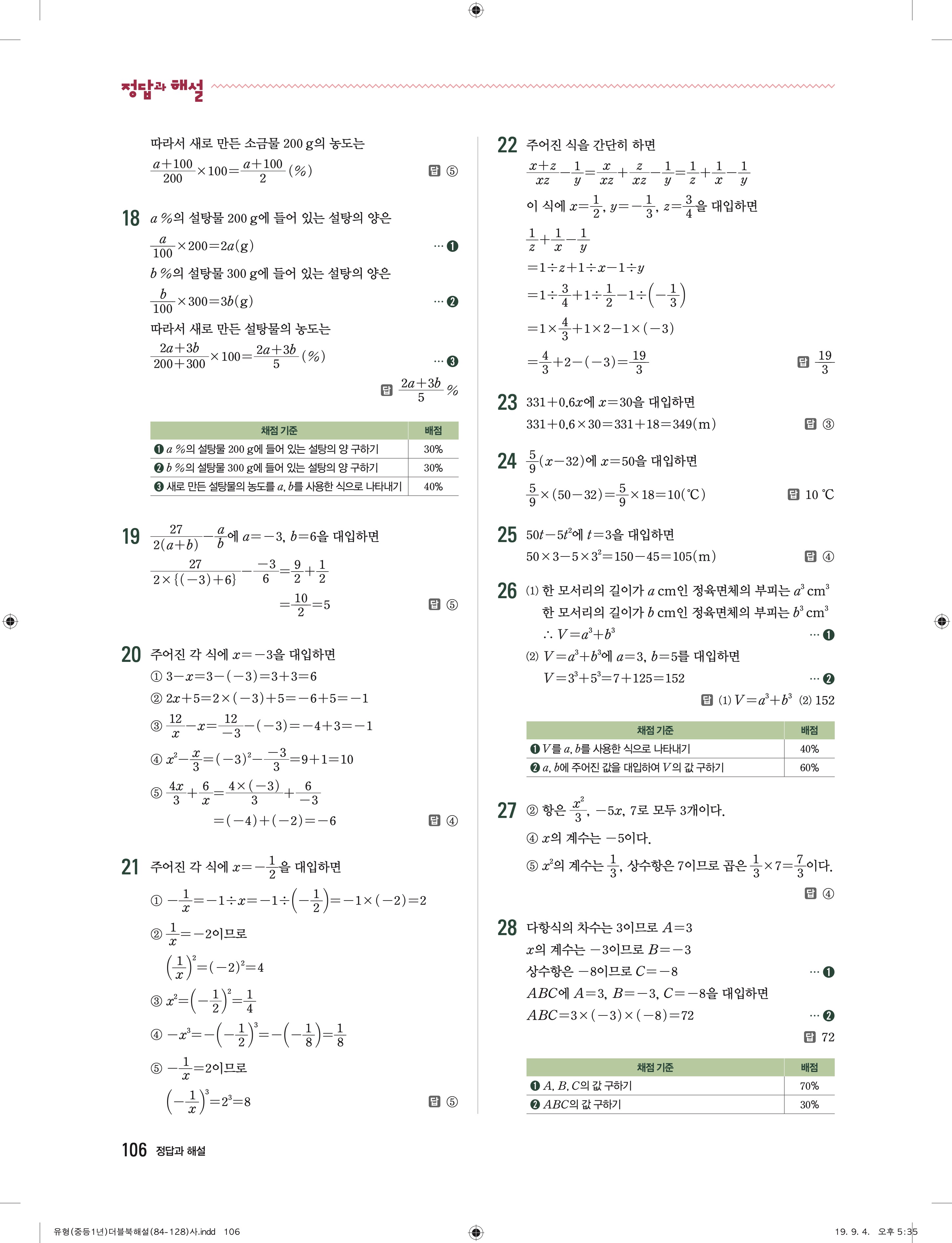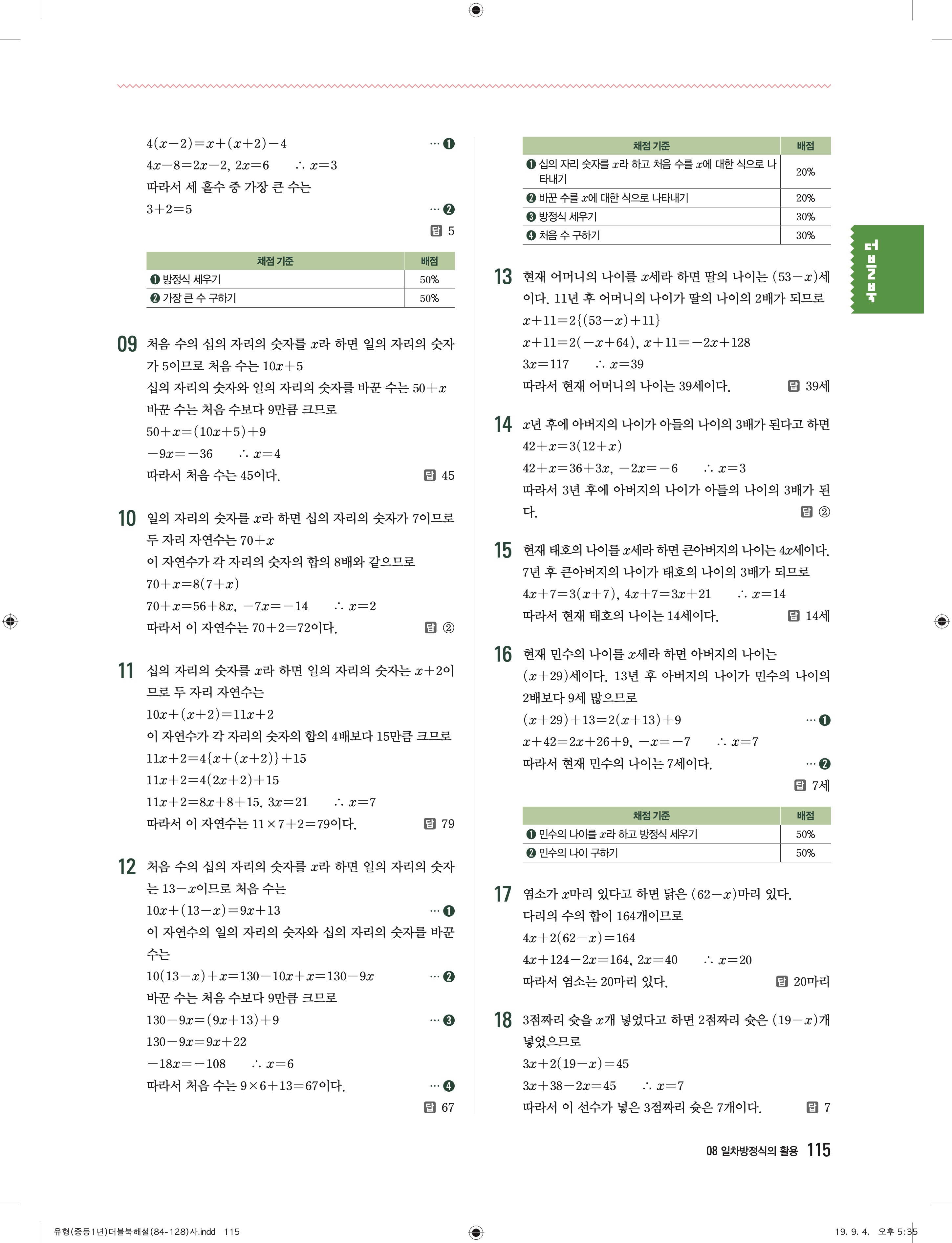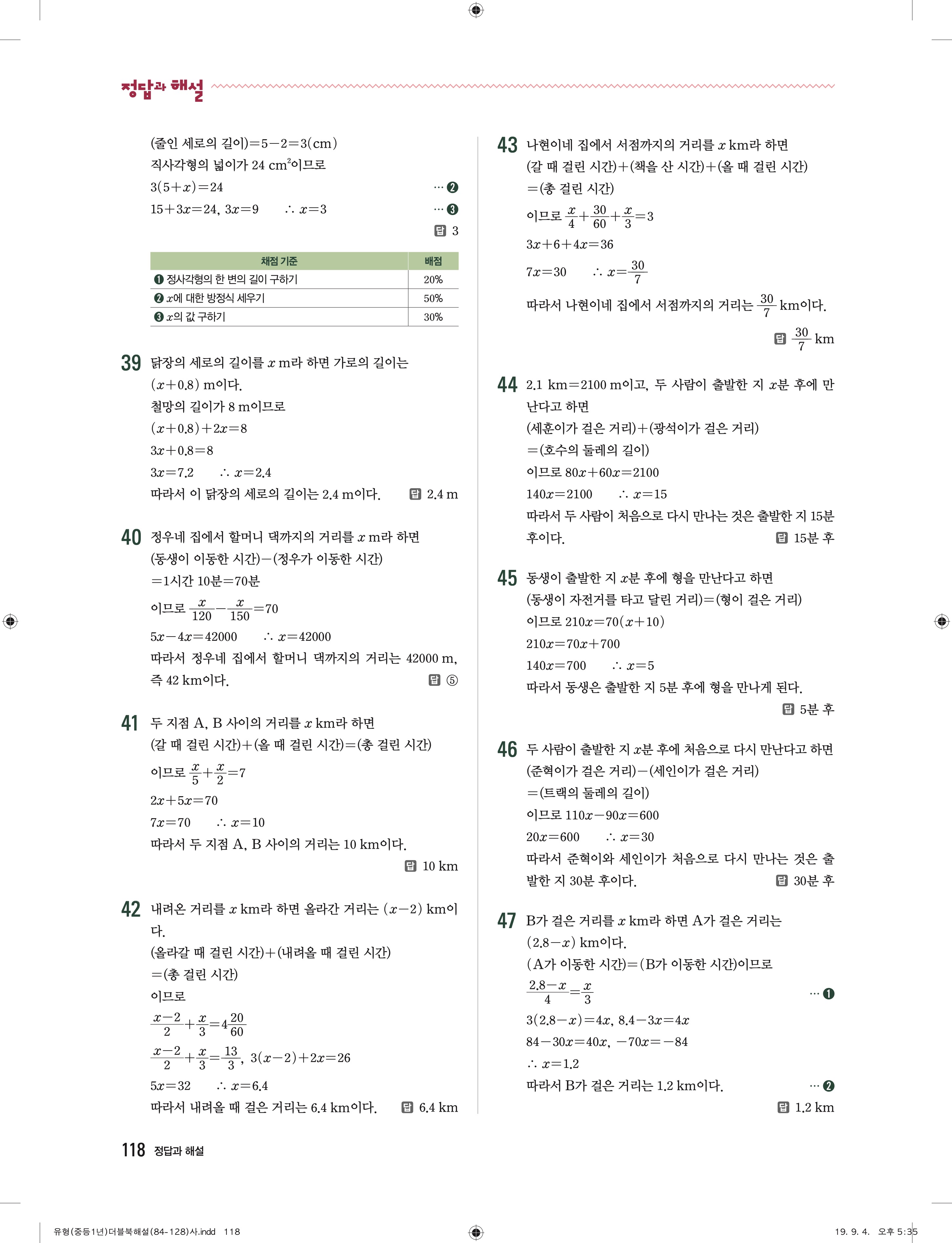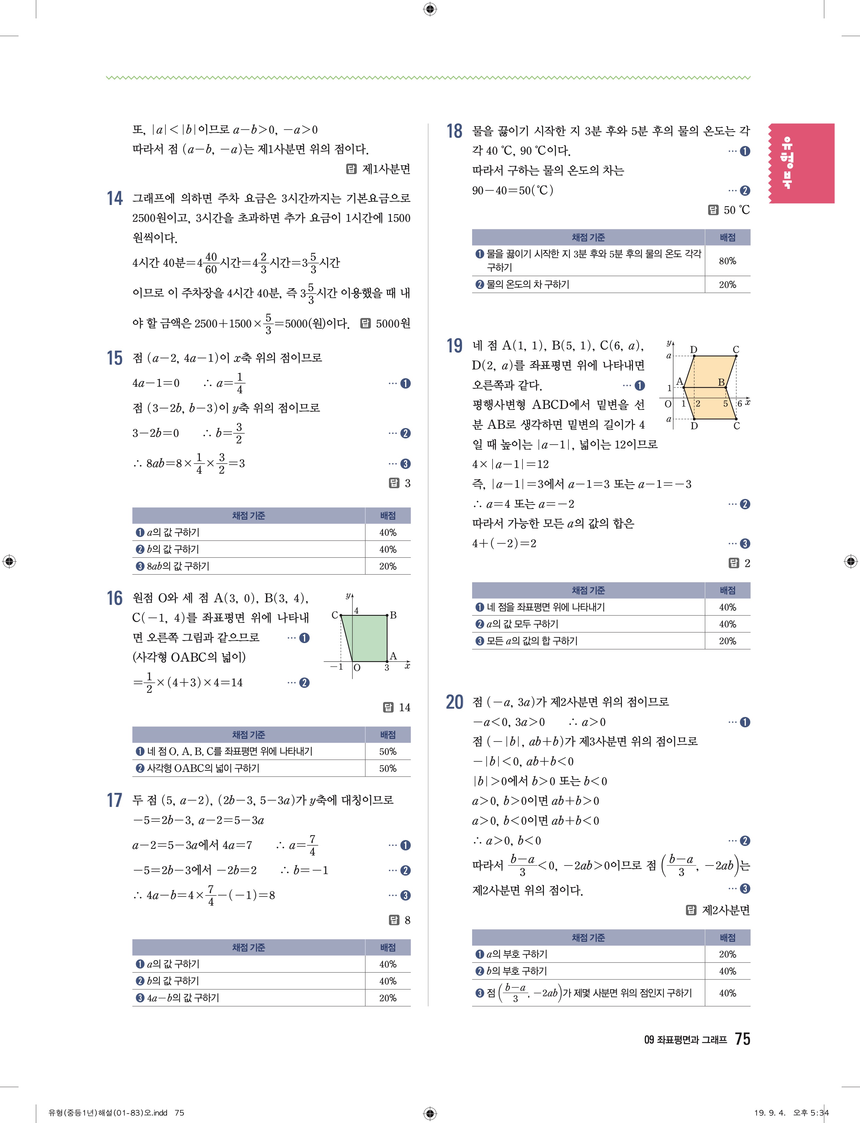 유형더블 중학수학 1-1 더블북 답지 해설 바로보는 사진답지 빠른답지 모바일최적화