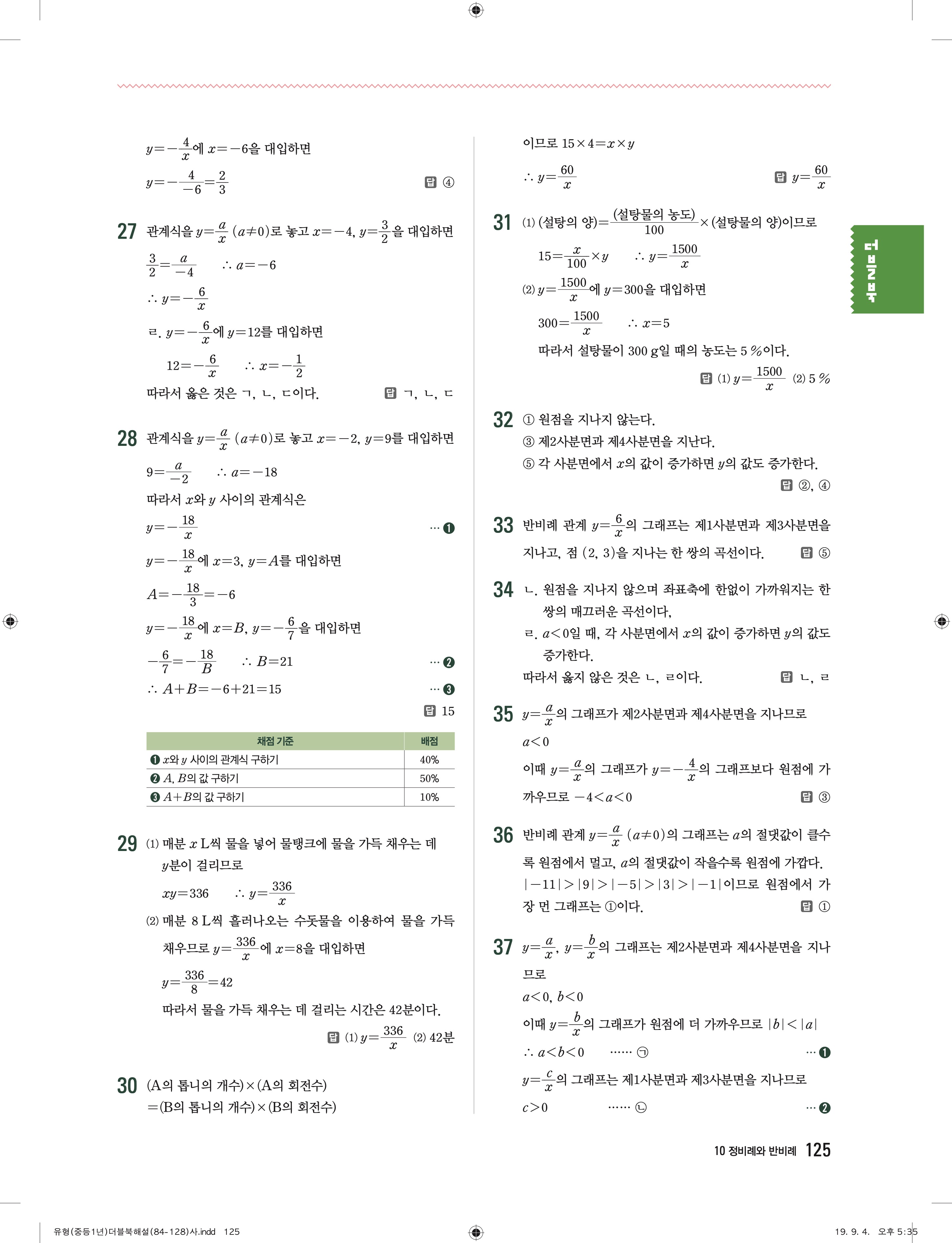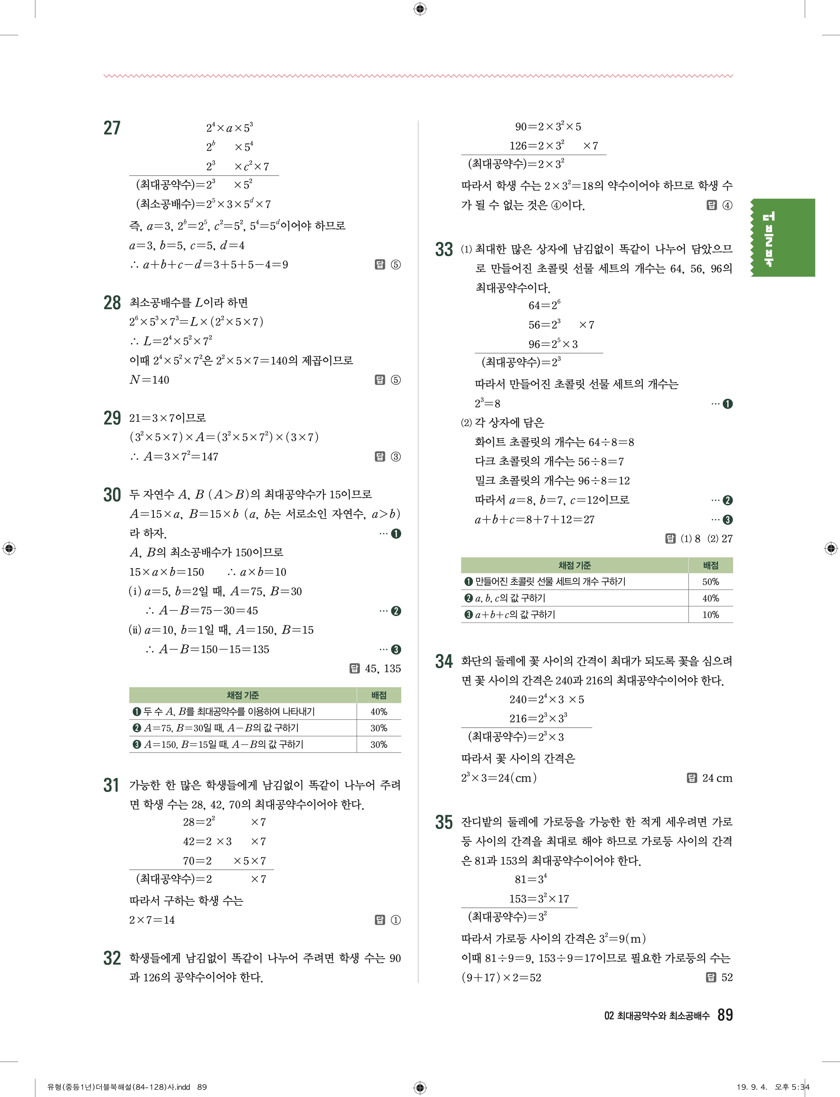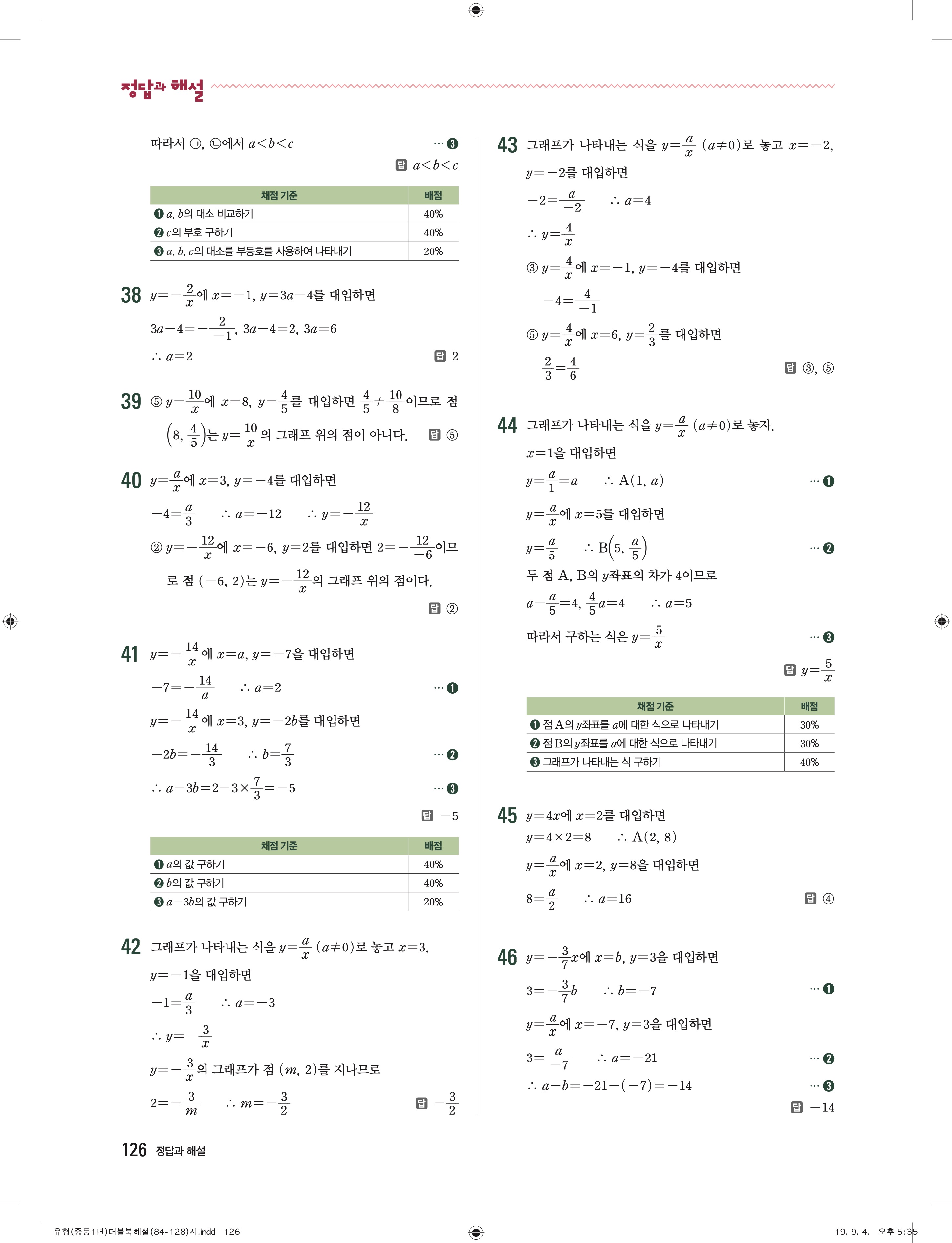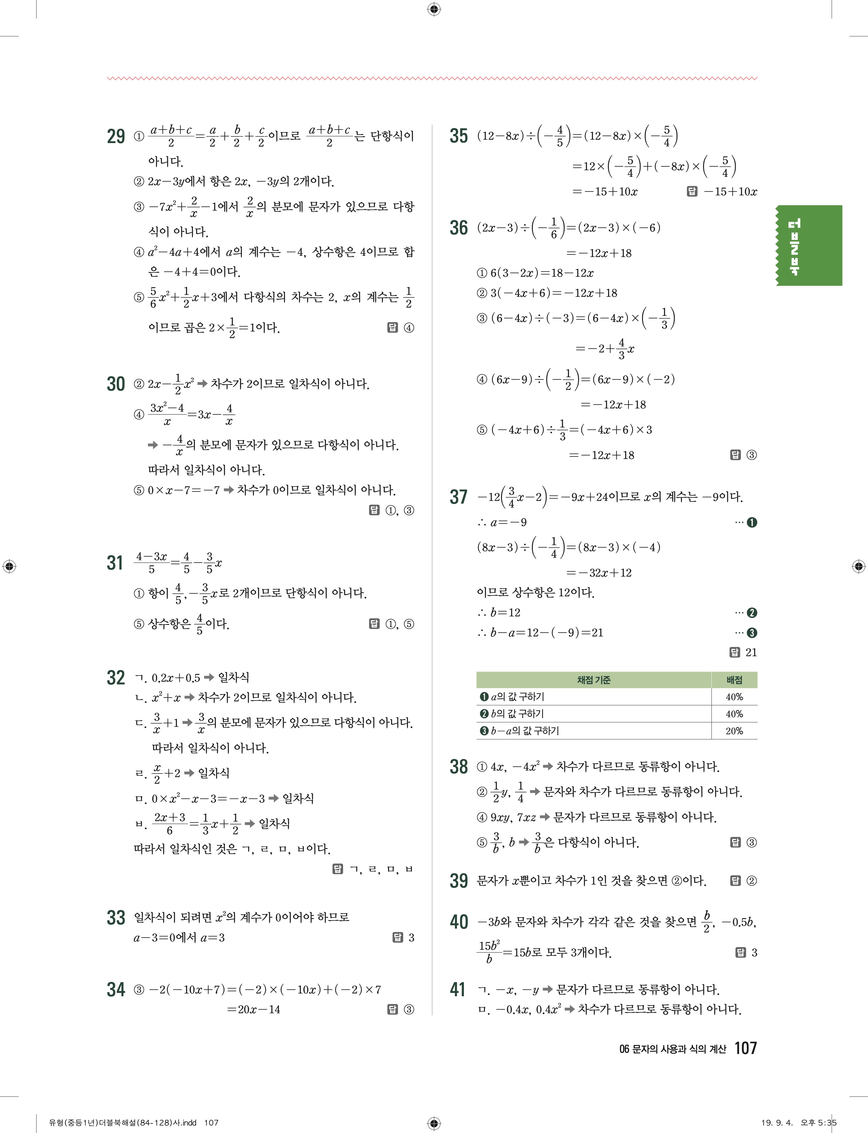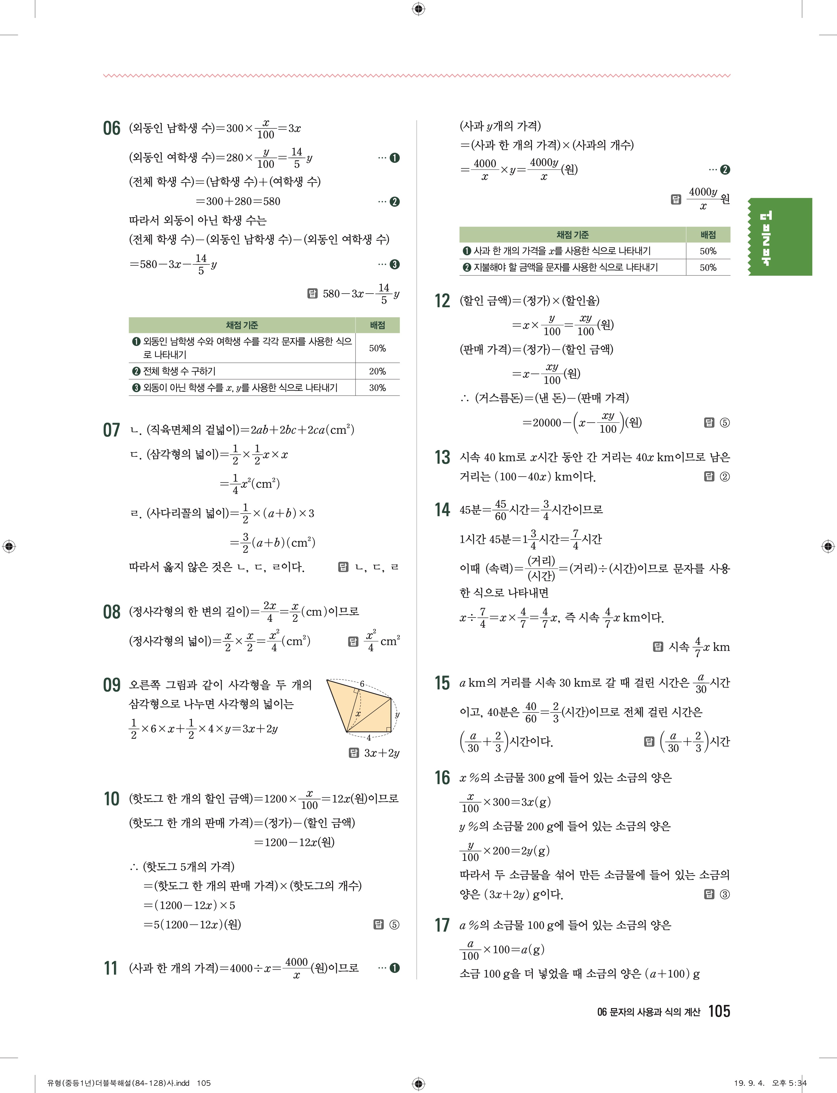 유형더블 중학수학 1-1 더블북 답지 해설 바로보는 사진답지 빠른답지 모바일최적화
