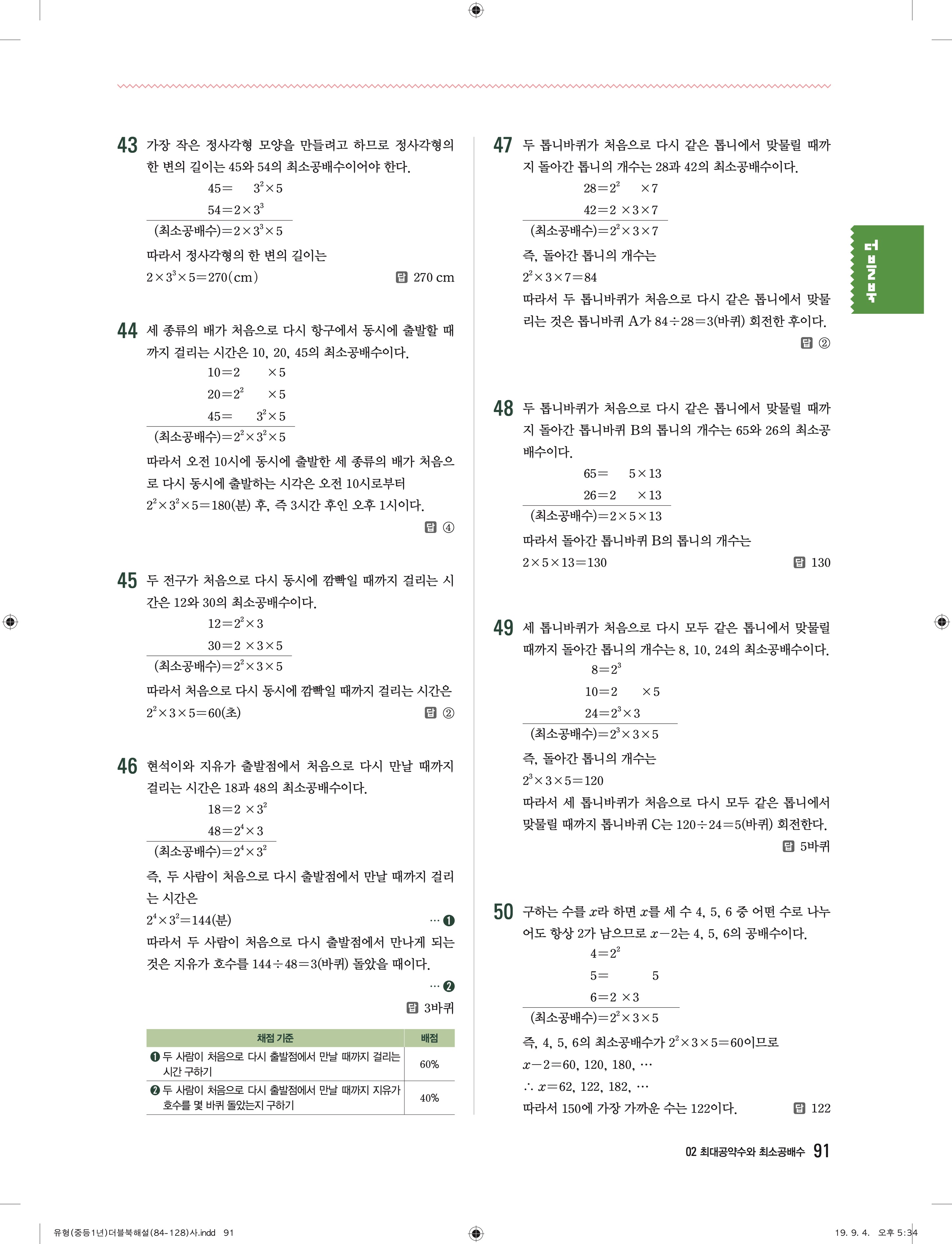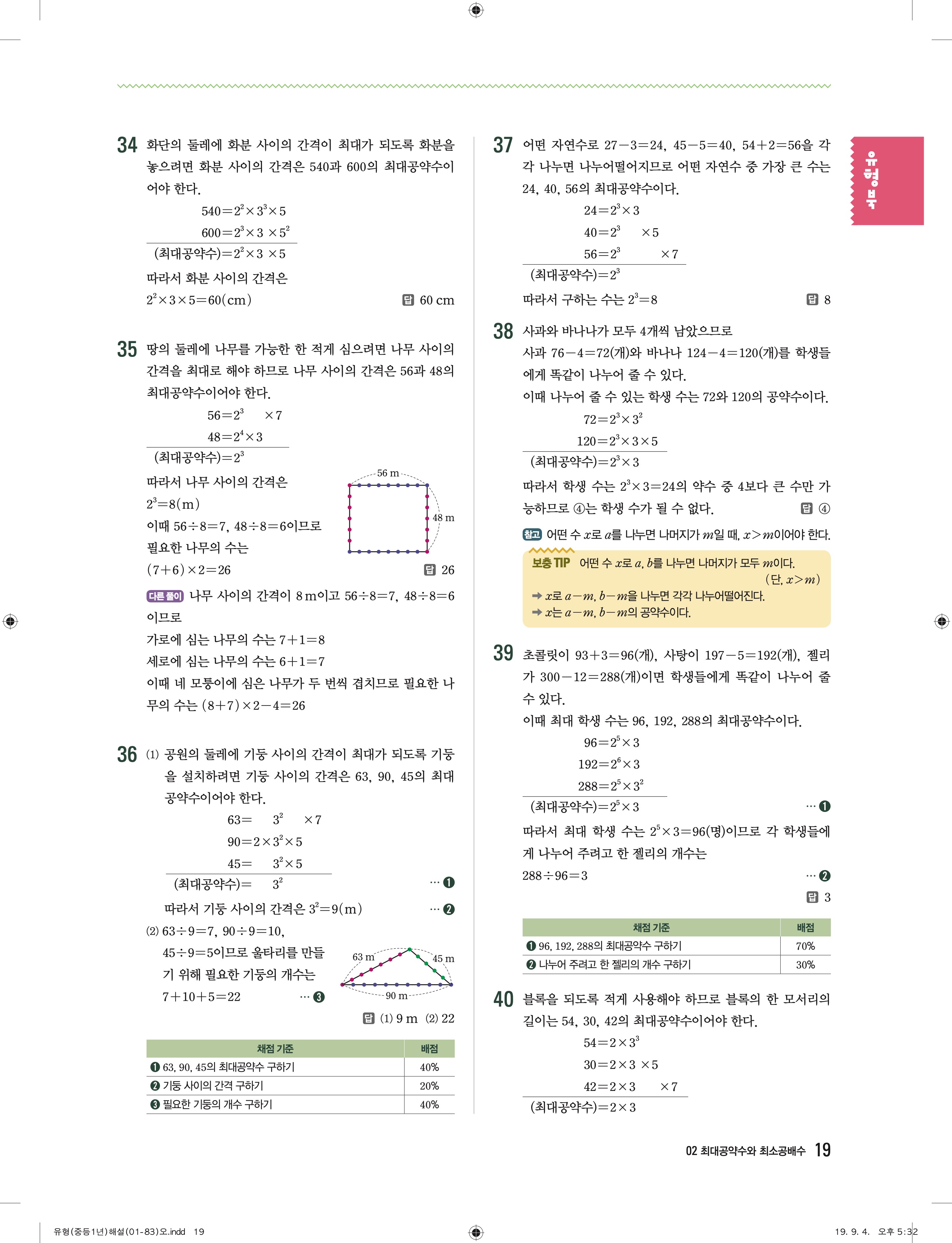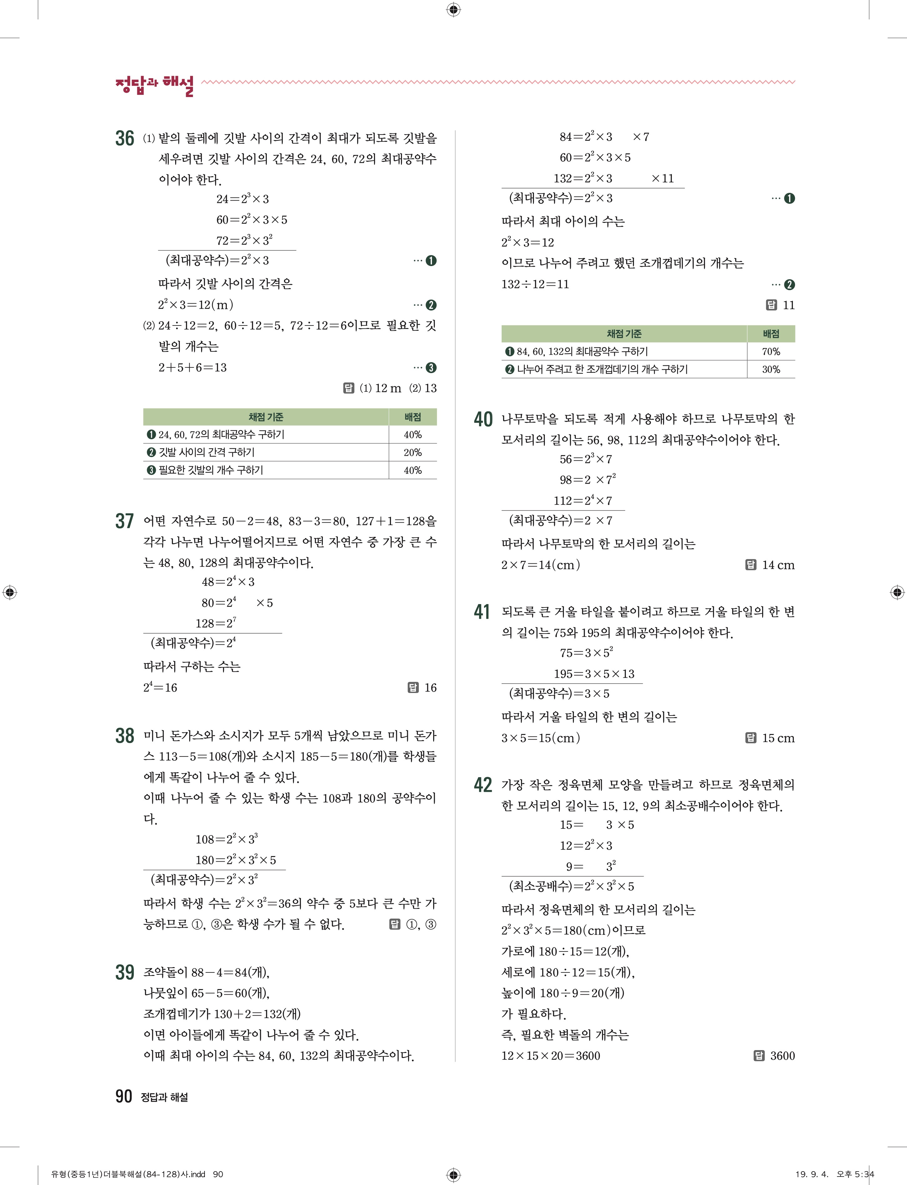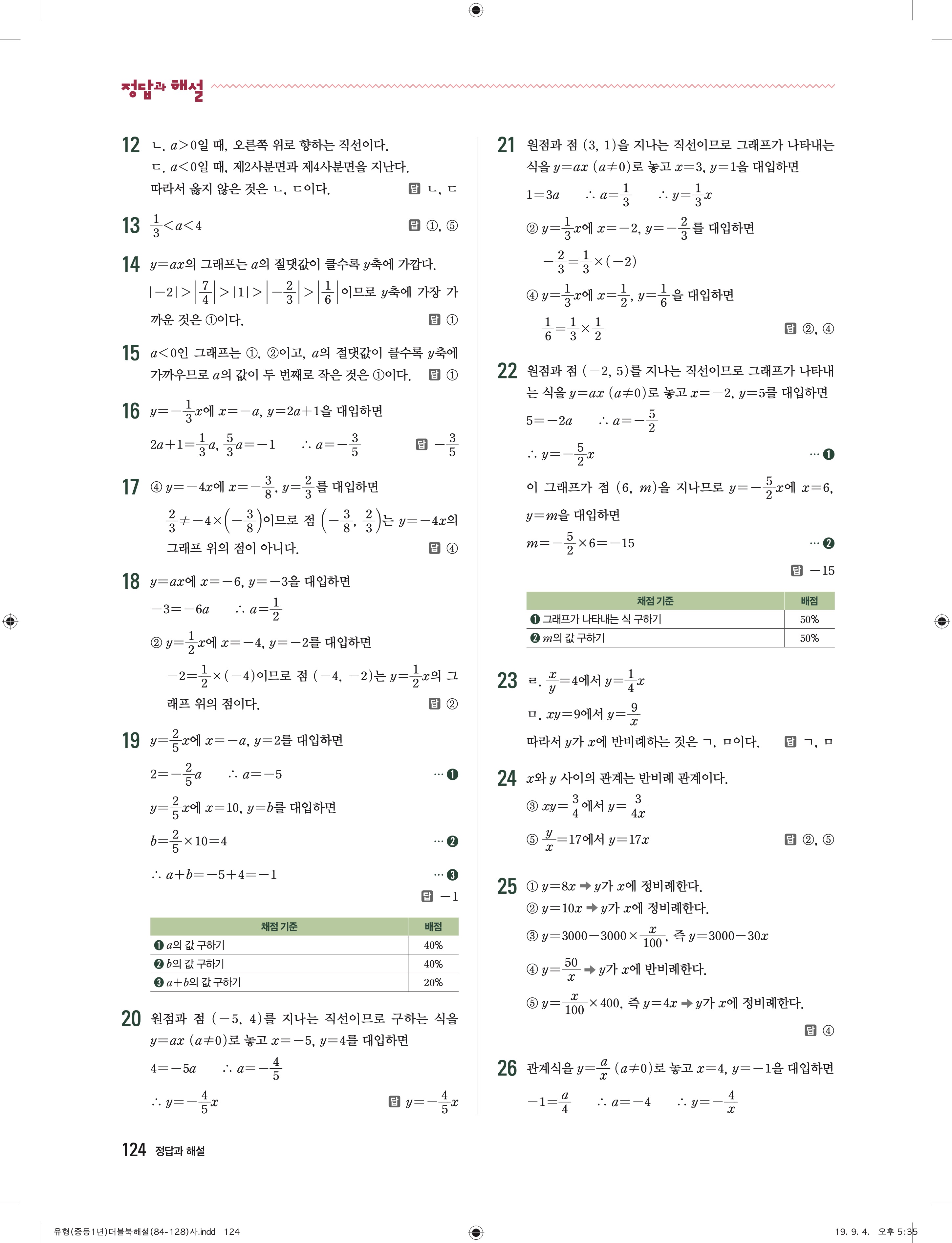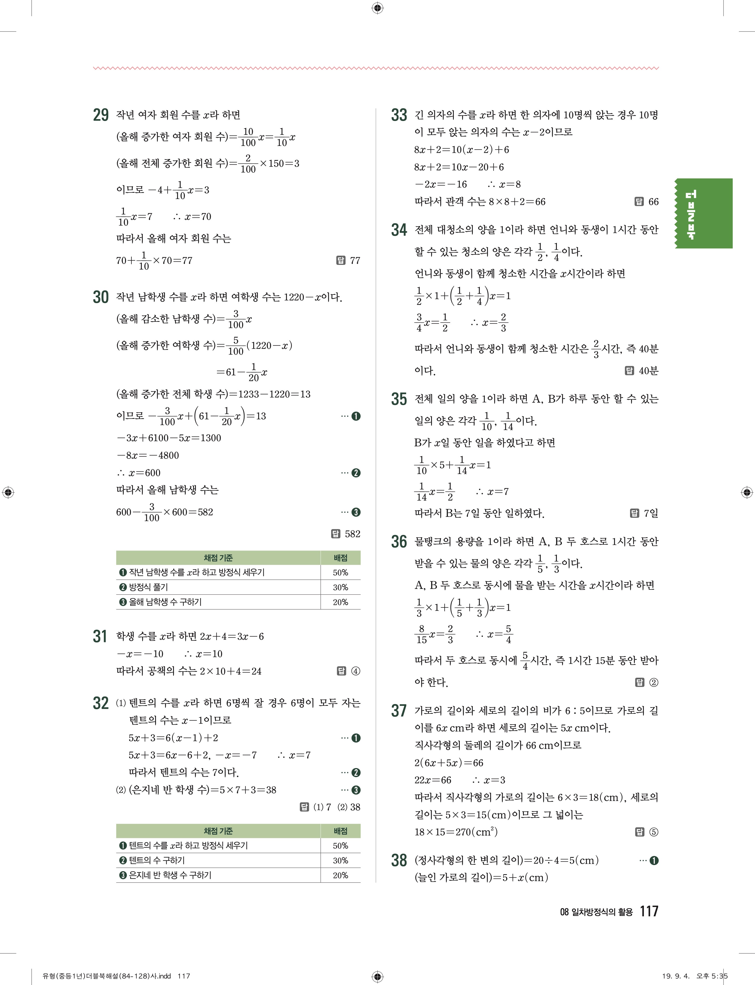 유형더블 중학수학 1-1 더블북 답지 해설 바로보는 사진답지 빠른답지 모바일최적화