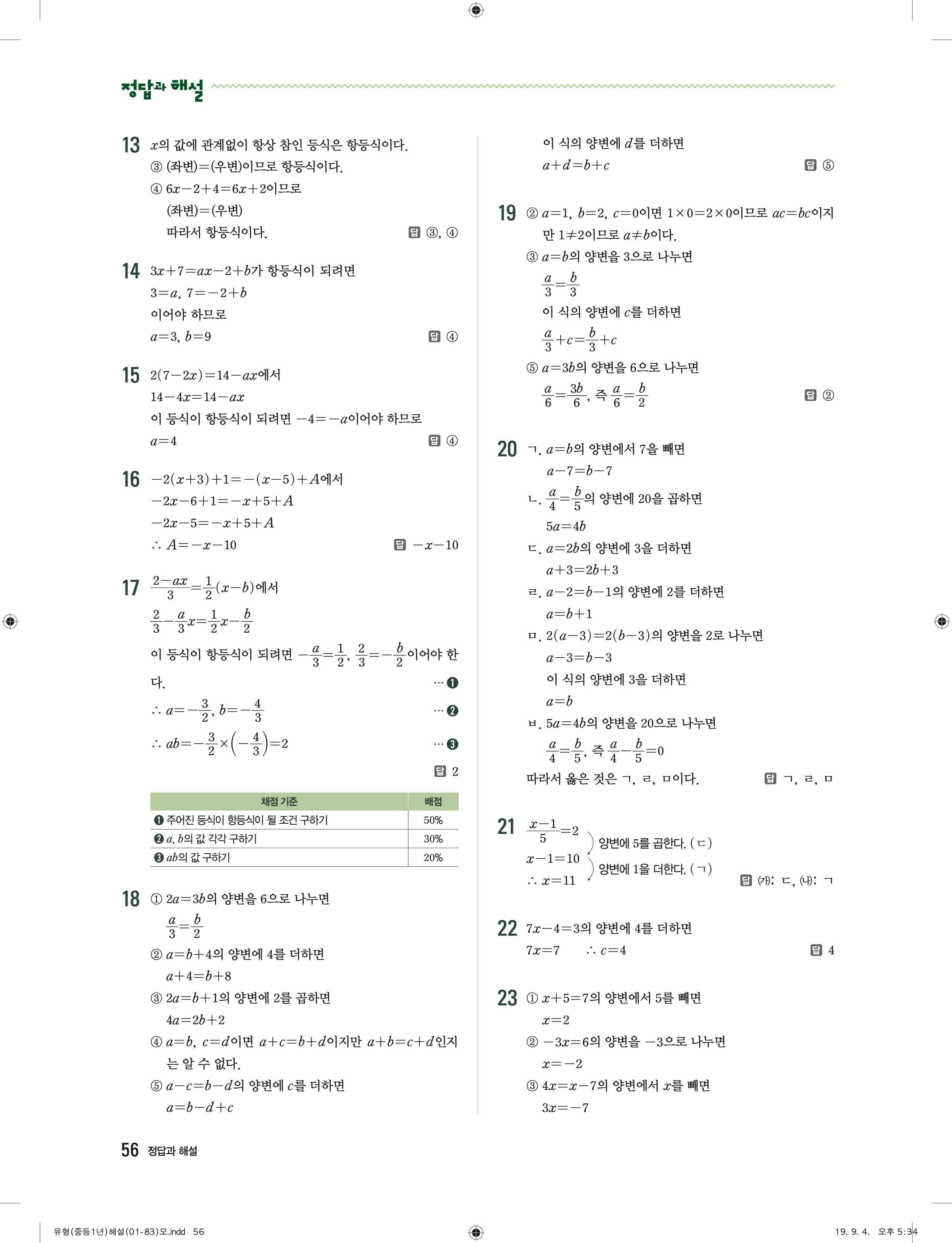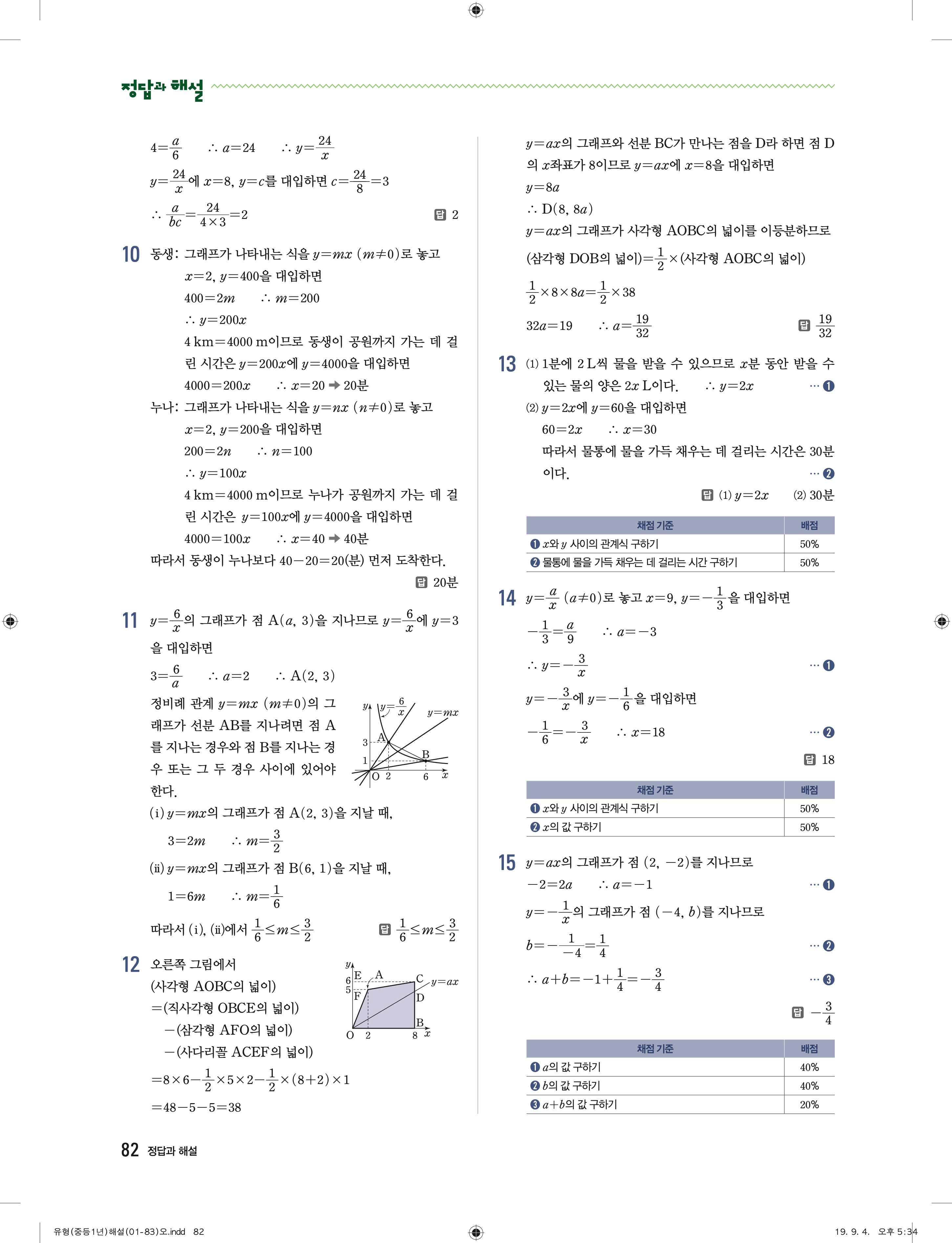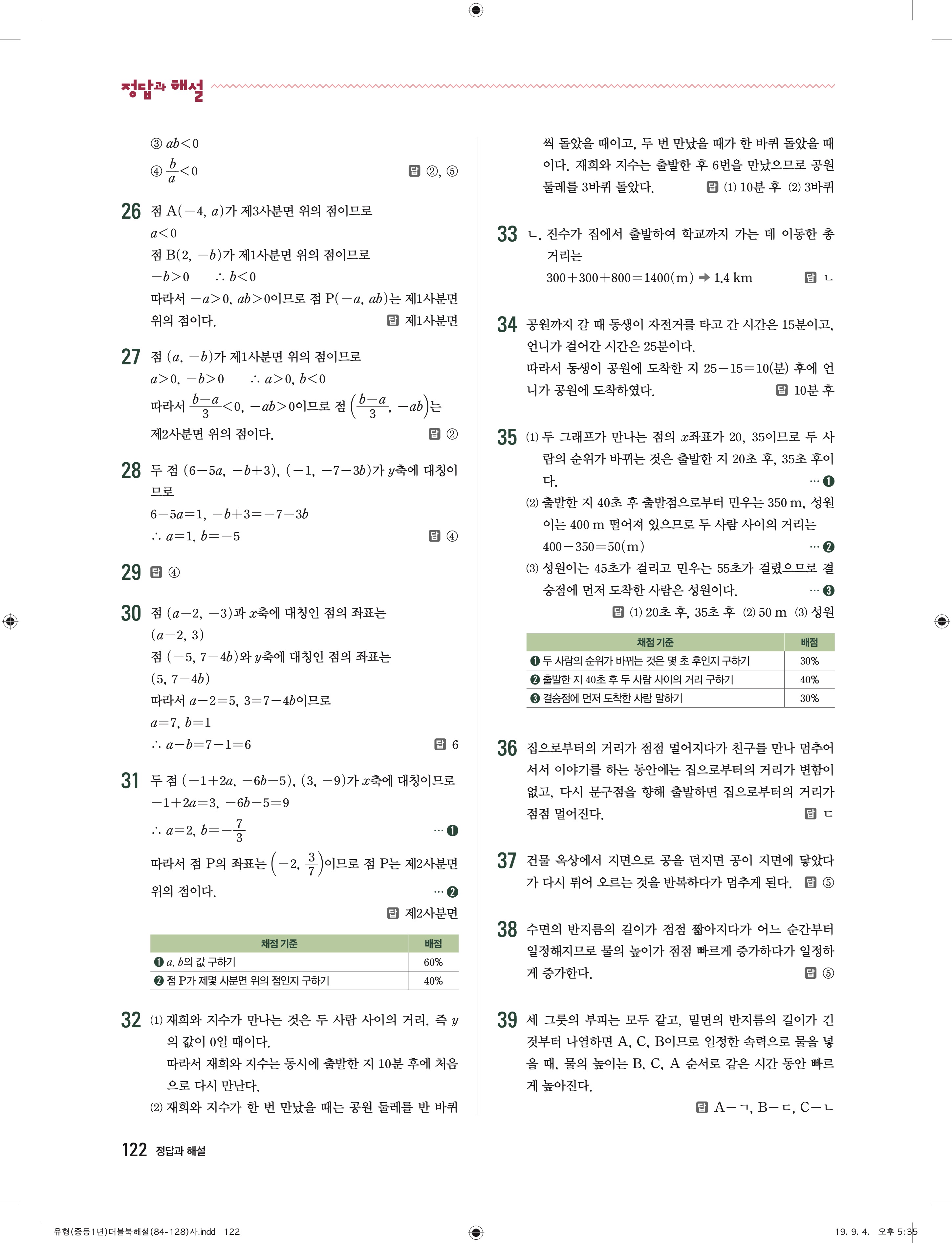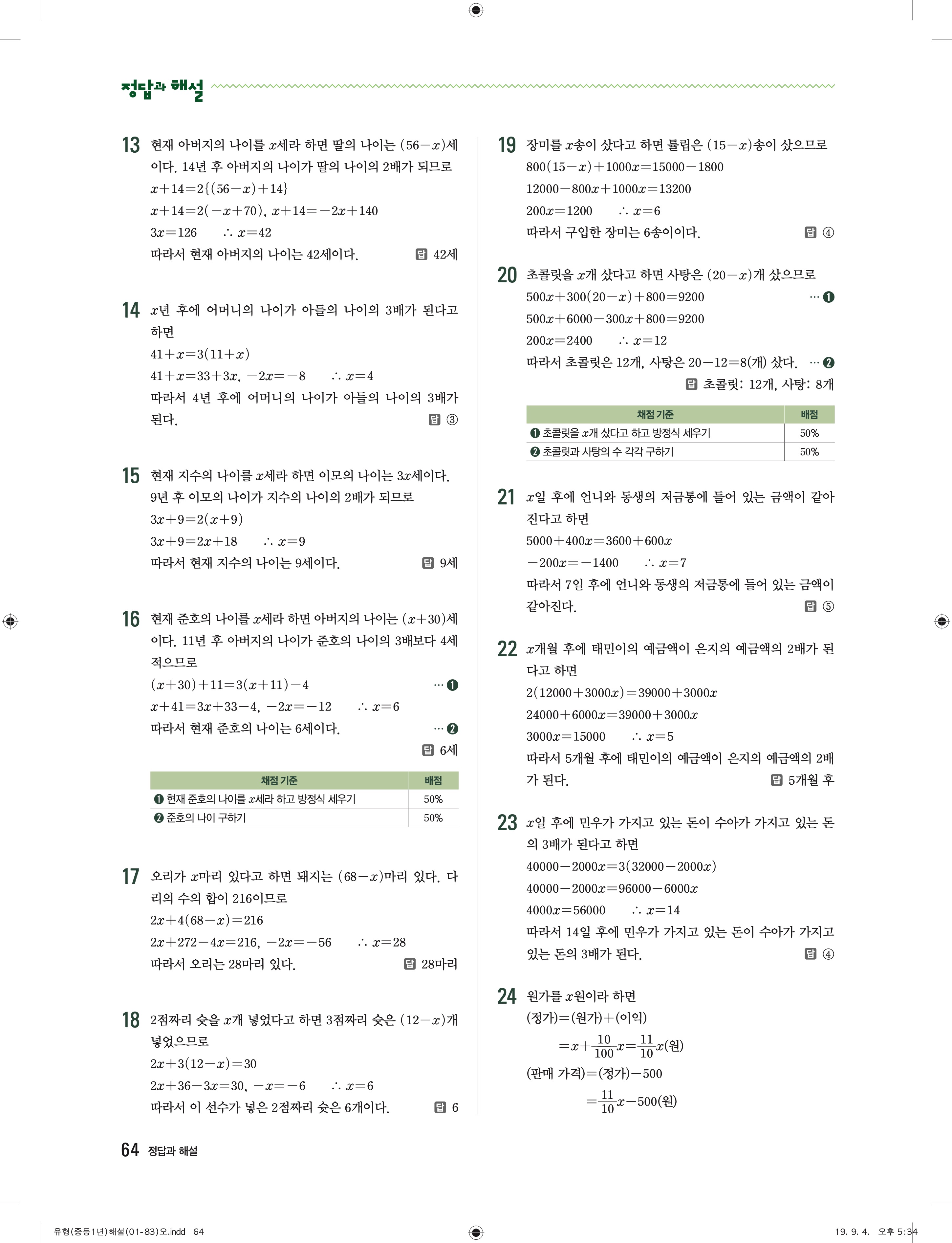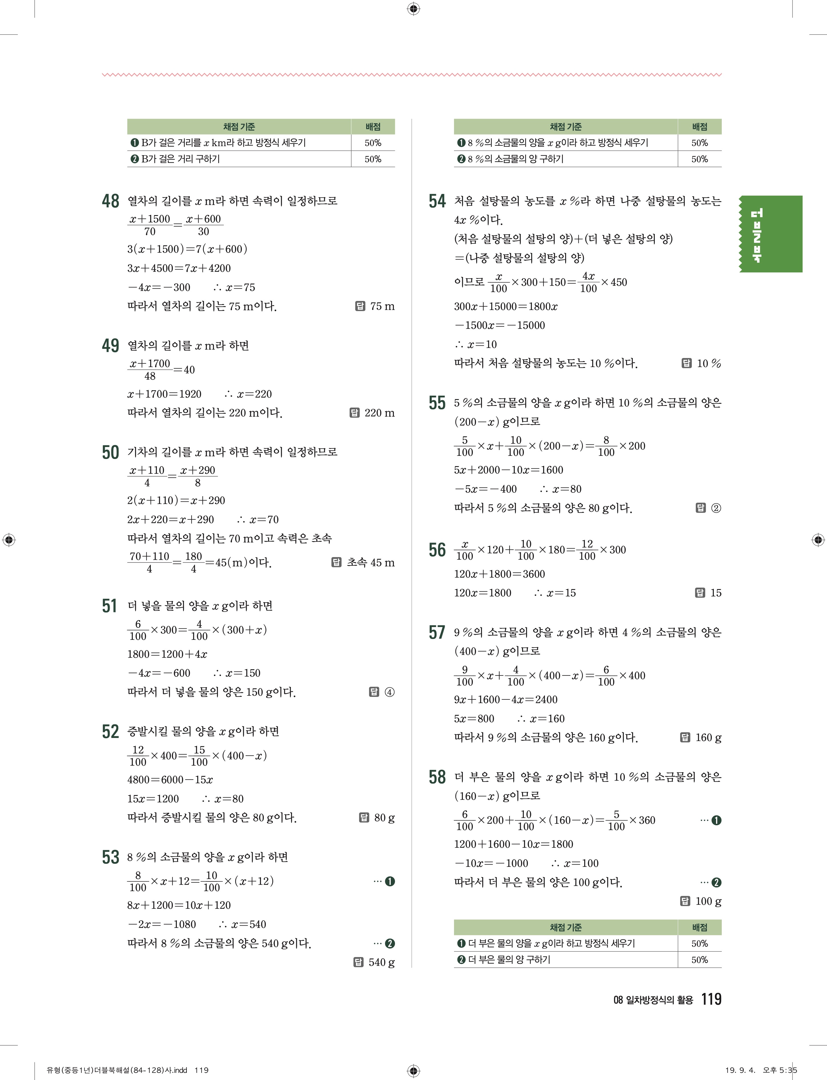 유형더블 중학수학 1-1 더블북 답지 해설 바로보는 사진답지 빠른답지 모바일최적화