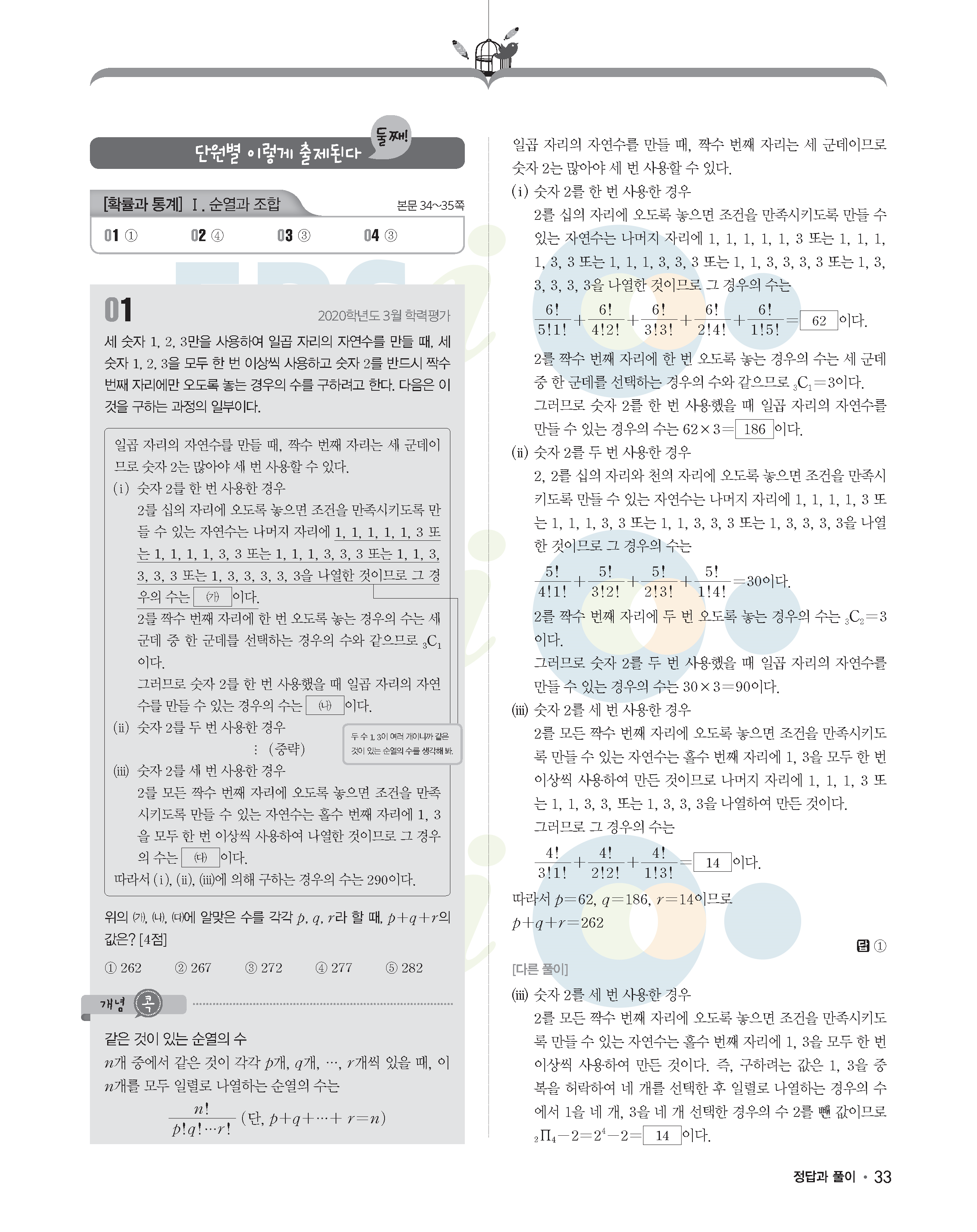 EBS 수능의 7대 함정 수학영역 수학1·수학2·확률과통계 해설 바로보는 사진답지 모바일최적화