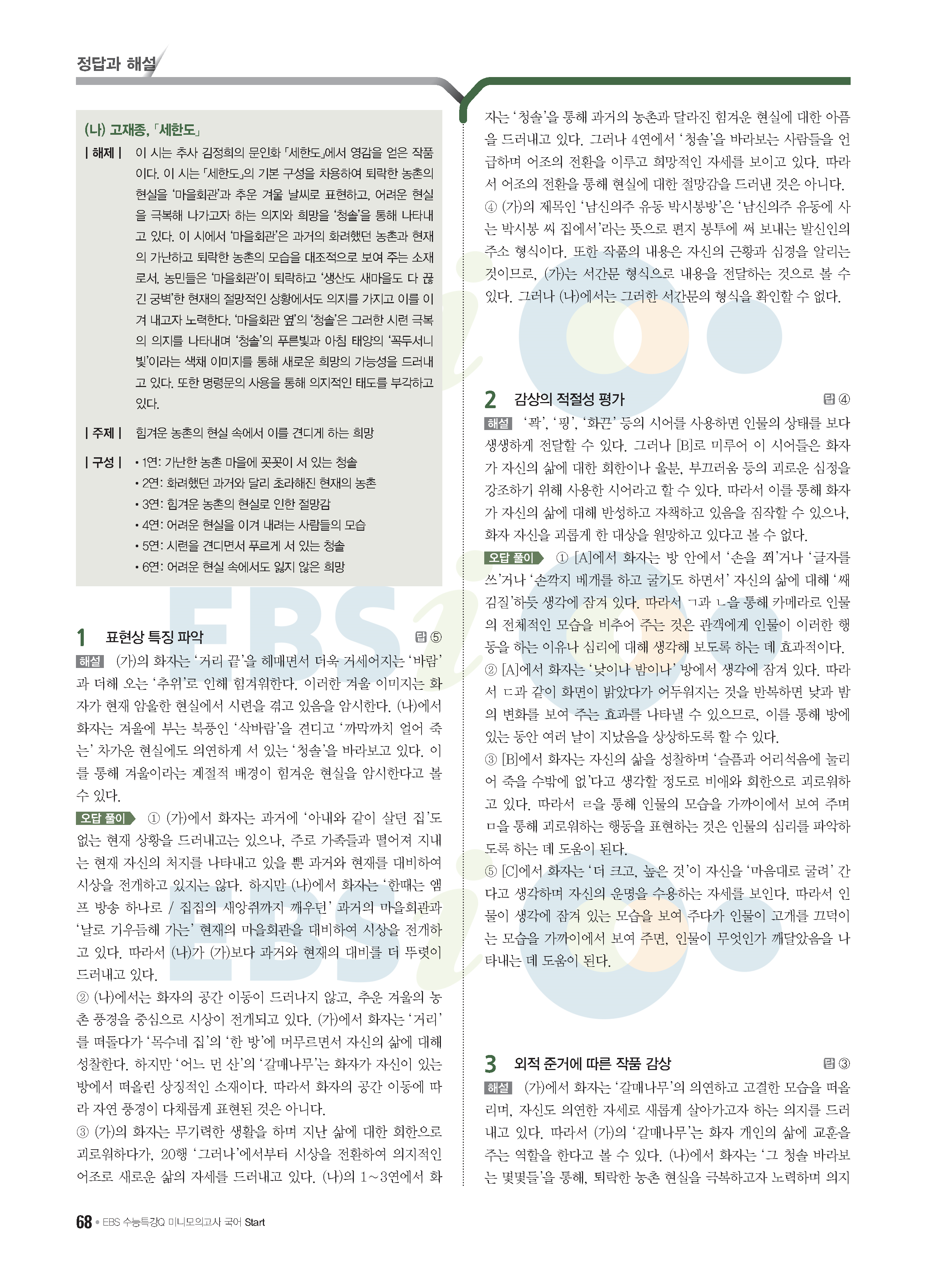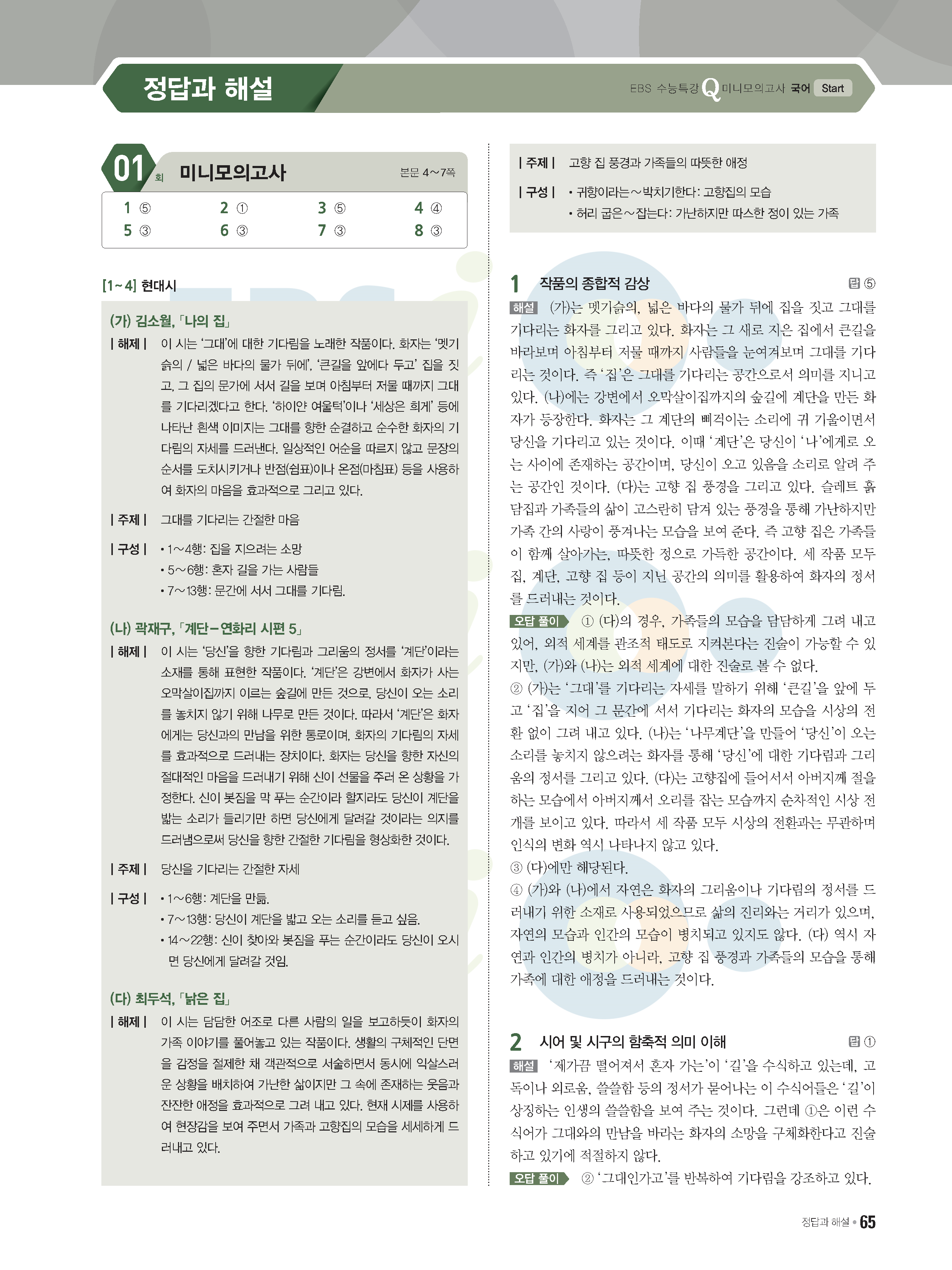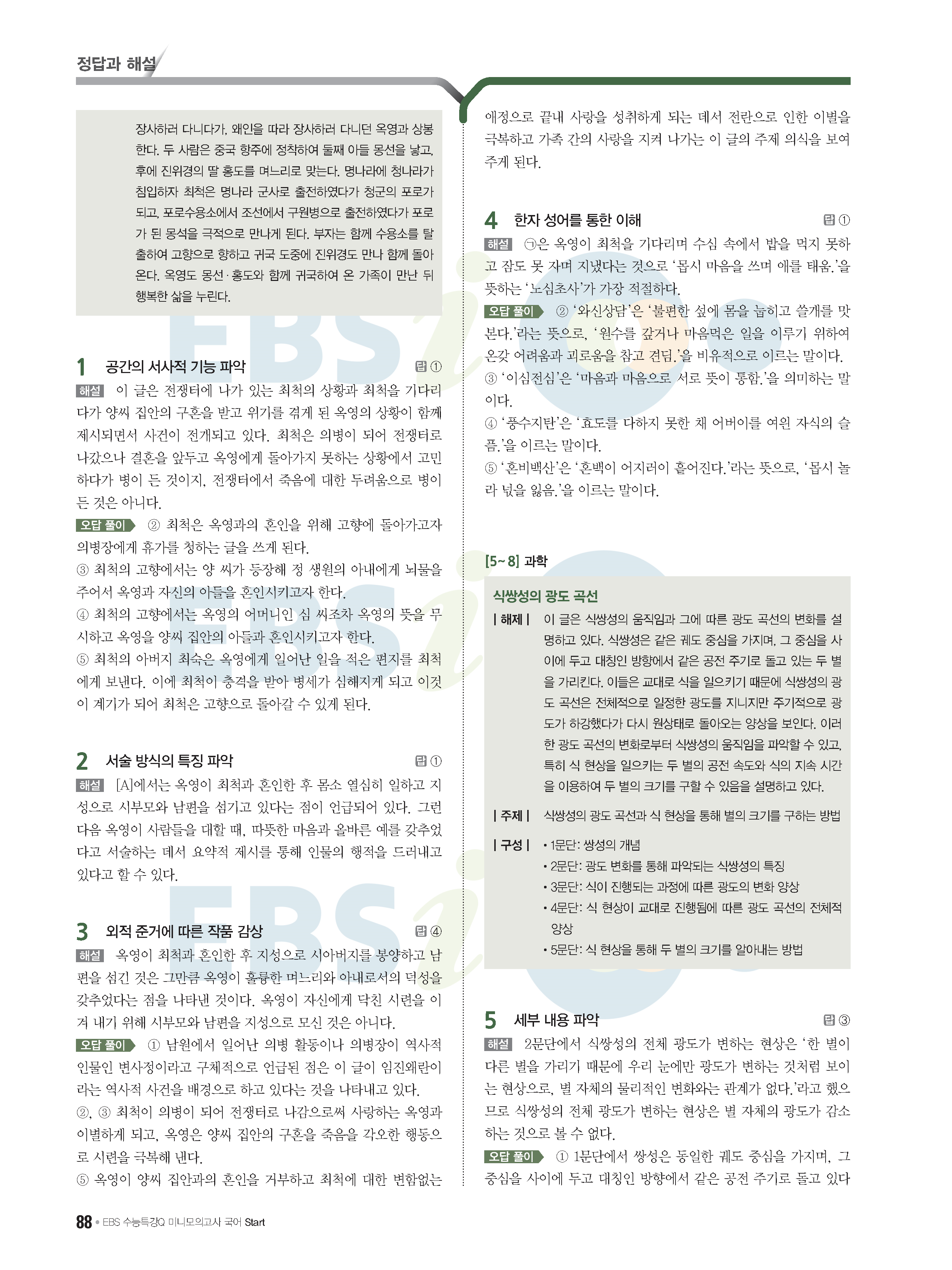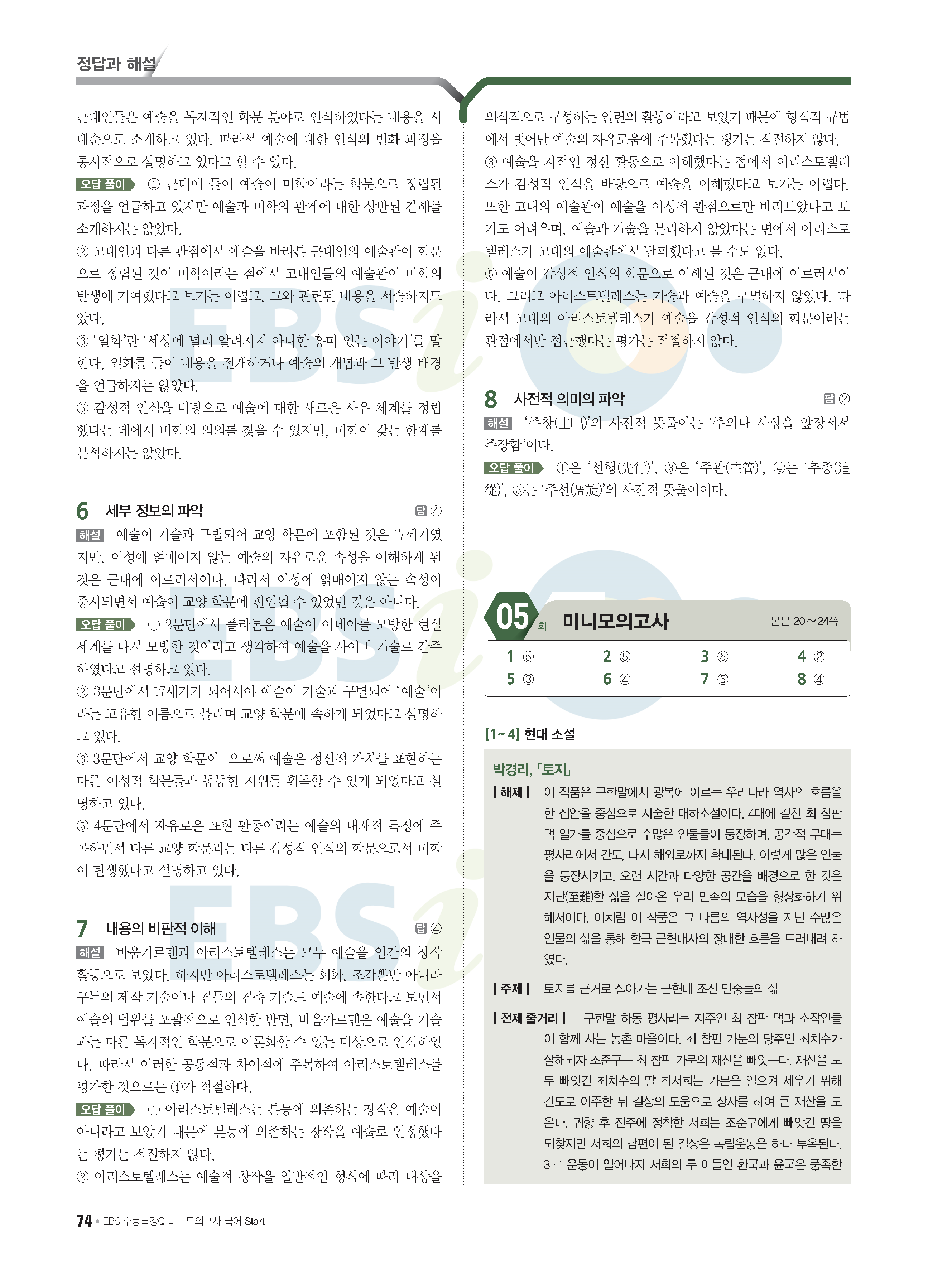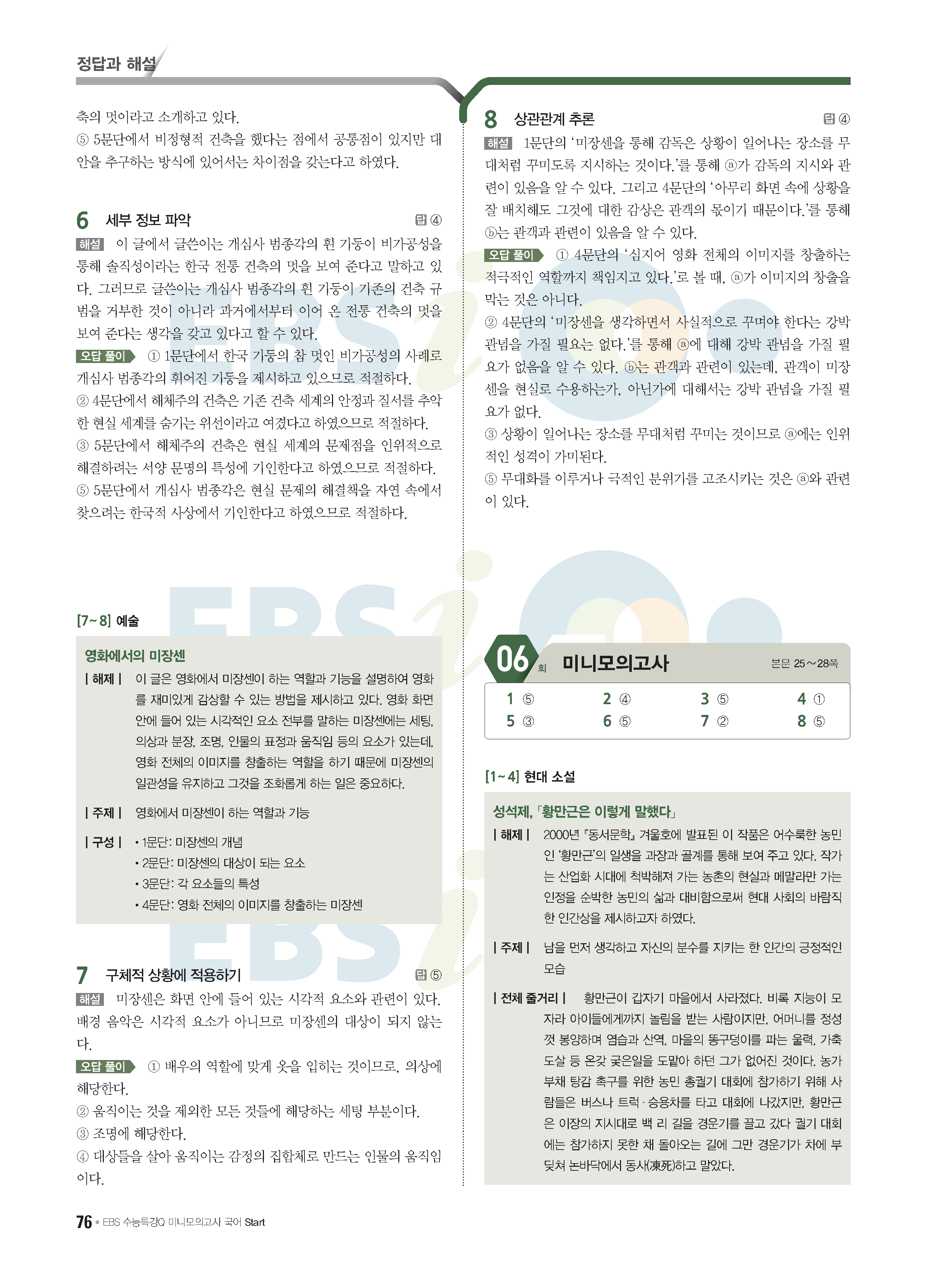 2022 EBS 수능특강큐 미니모의고사 국어 start 답지 해설 사진답지 모바일최적화