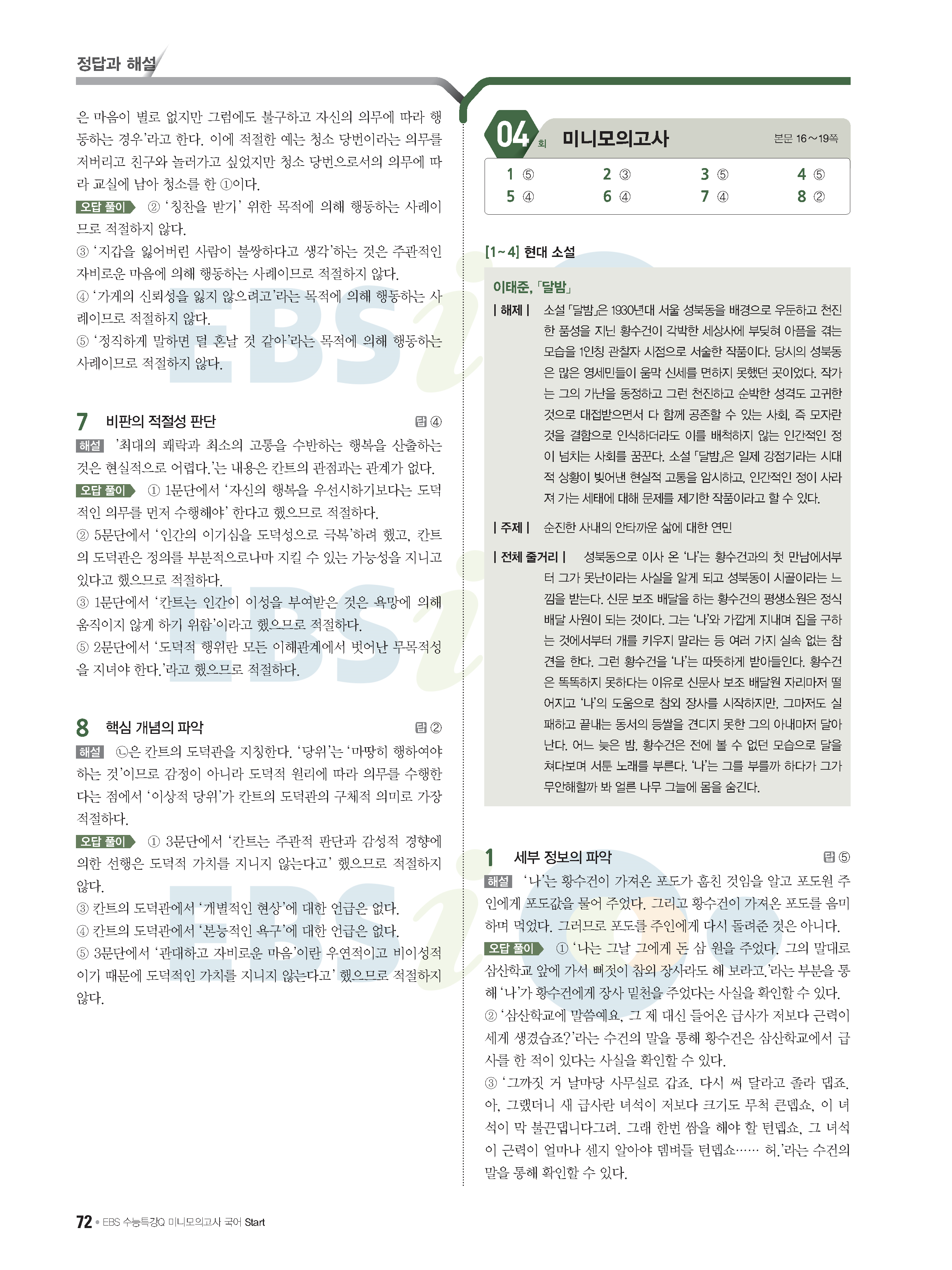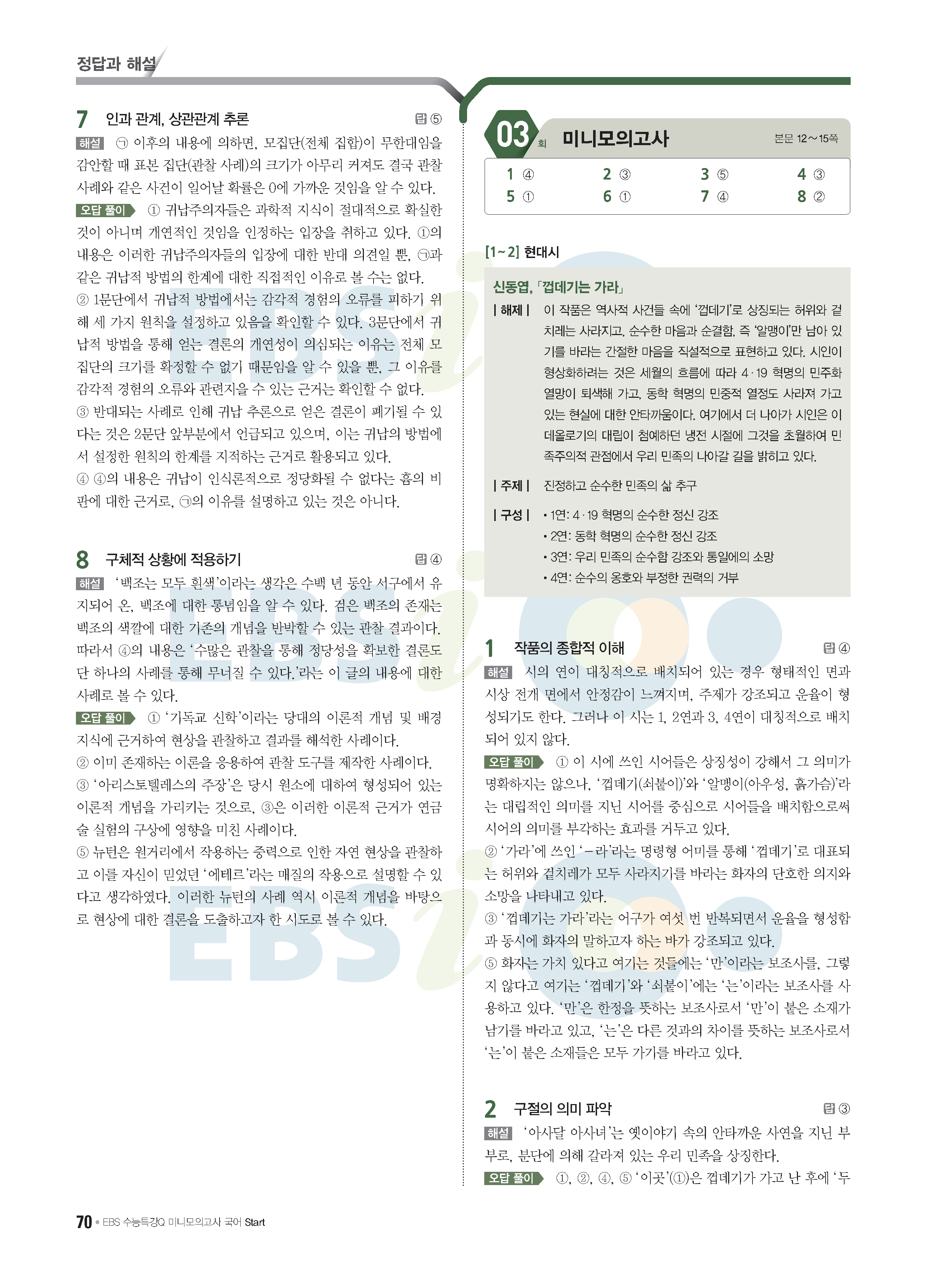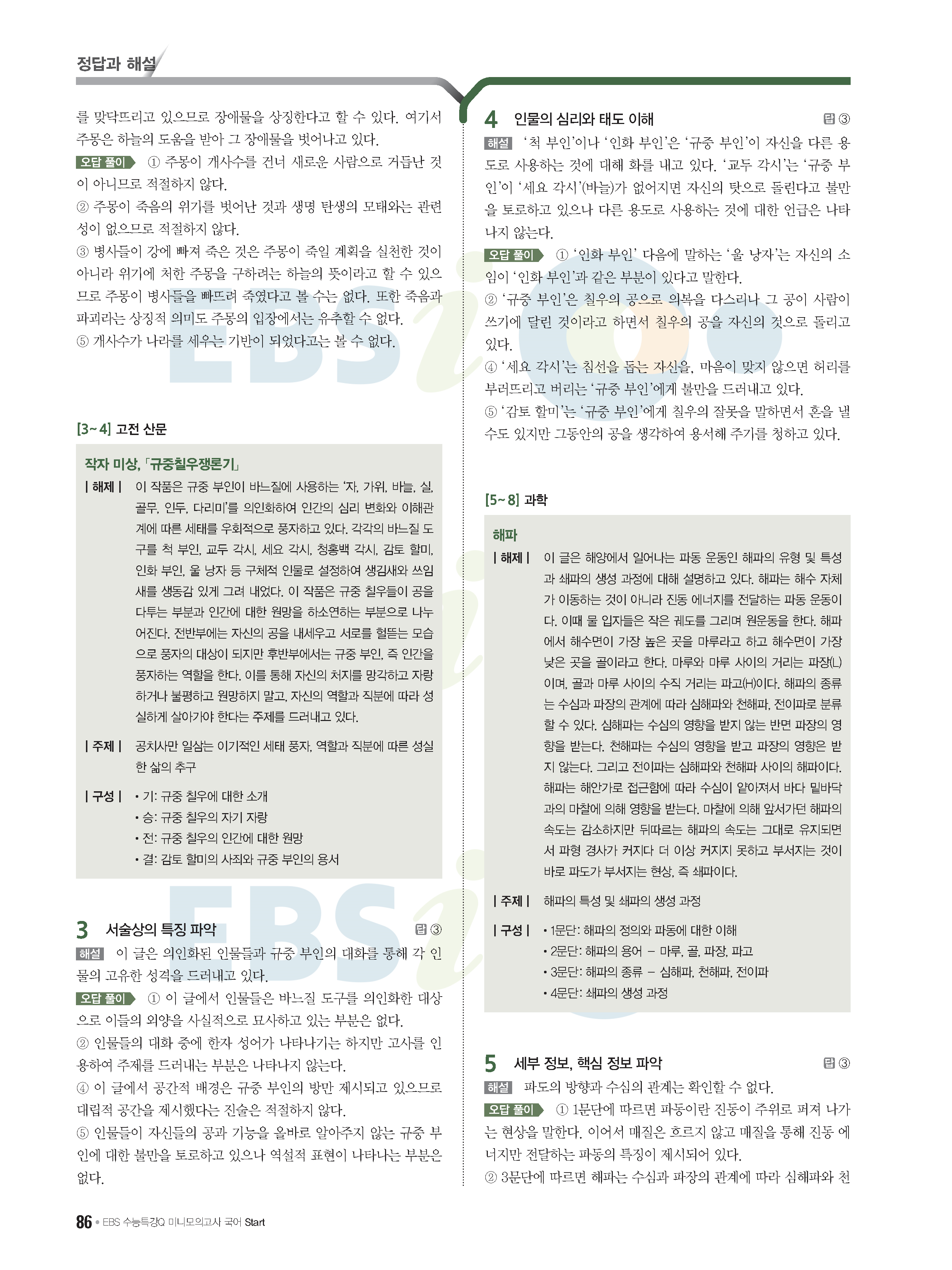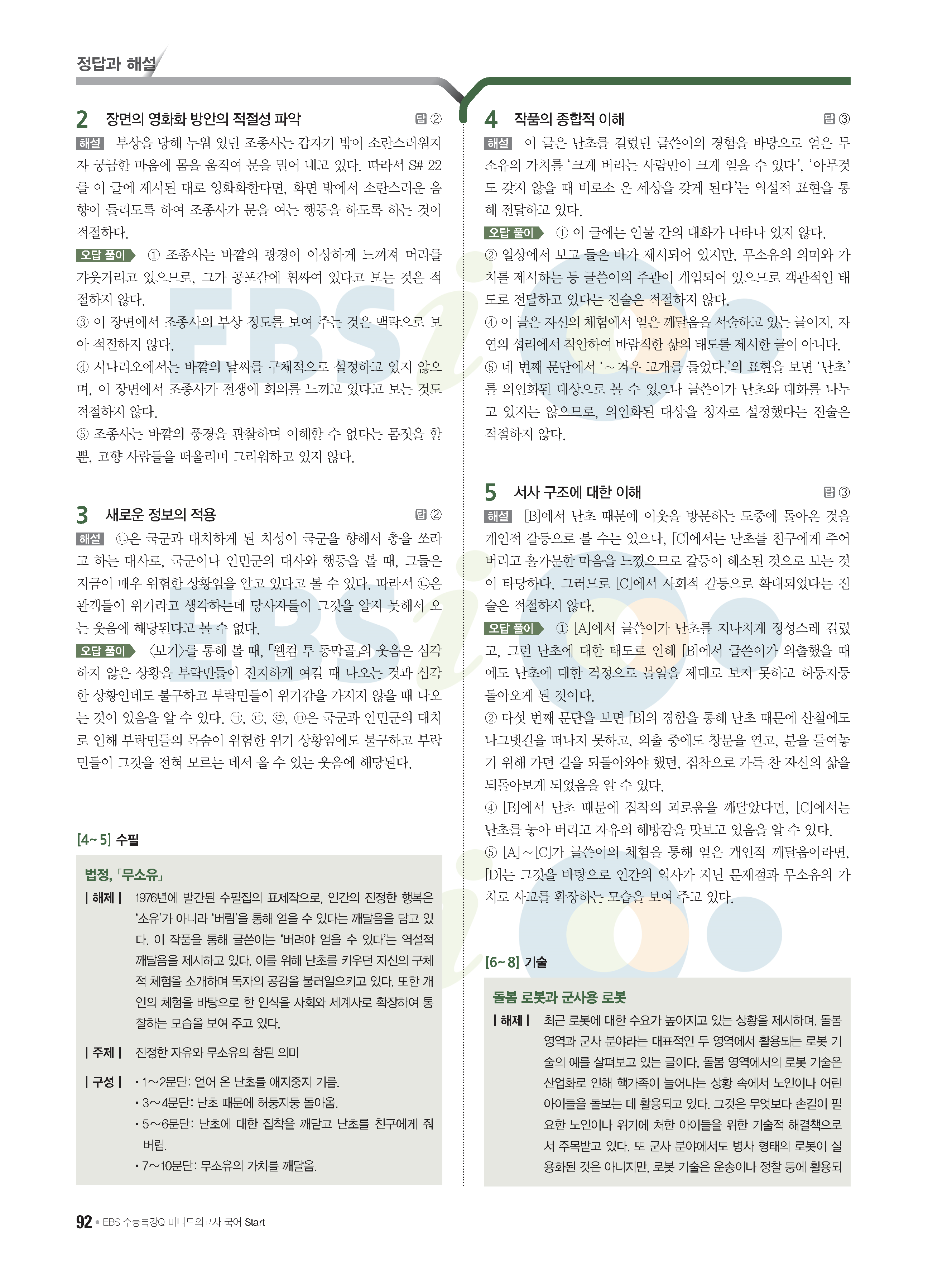 2022 EBS 수능특강큐 미니모의고사 국어 start 답지 해설 사진답지 모바일최적화