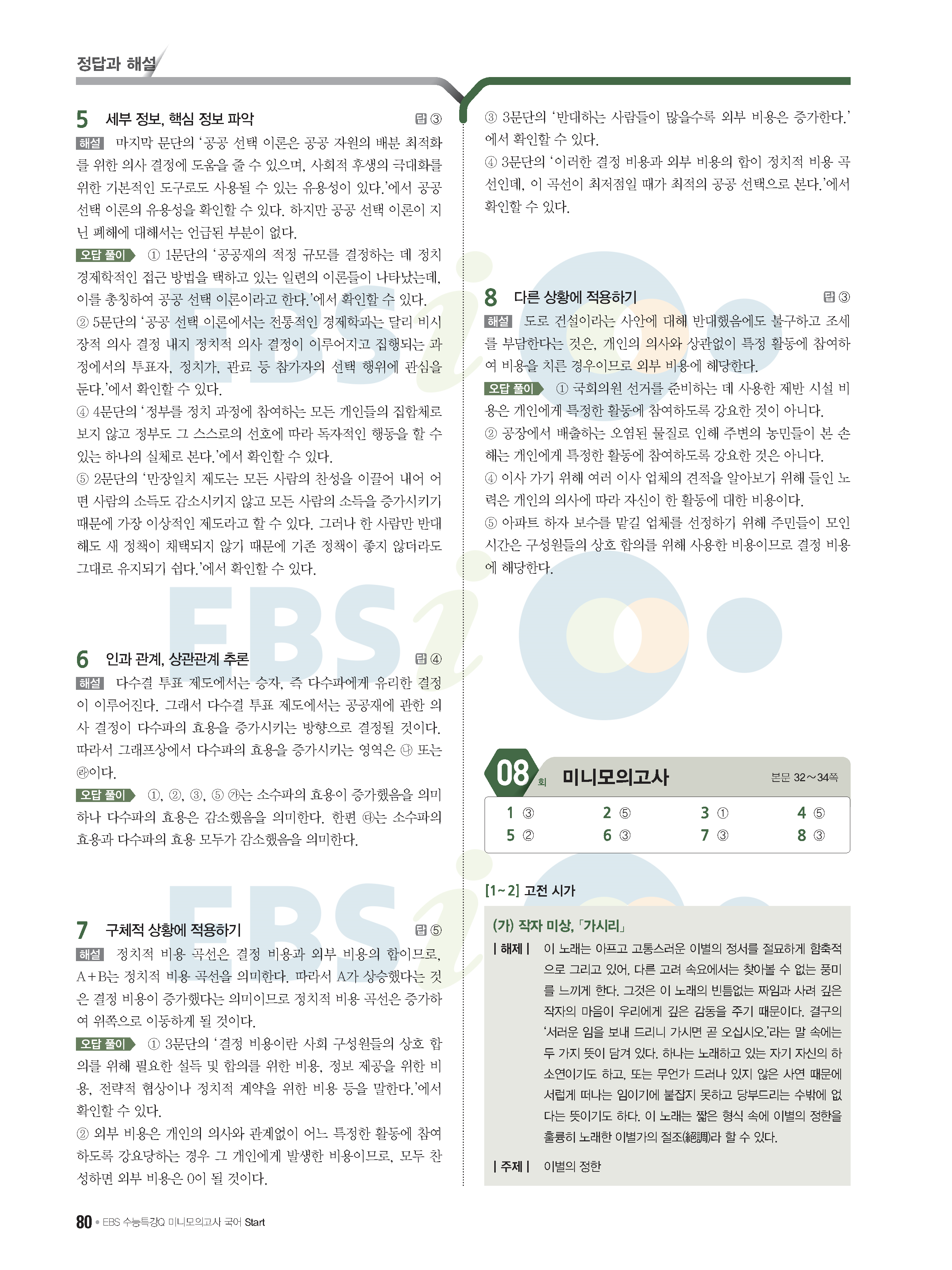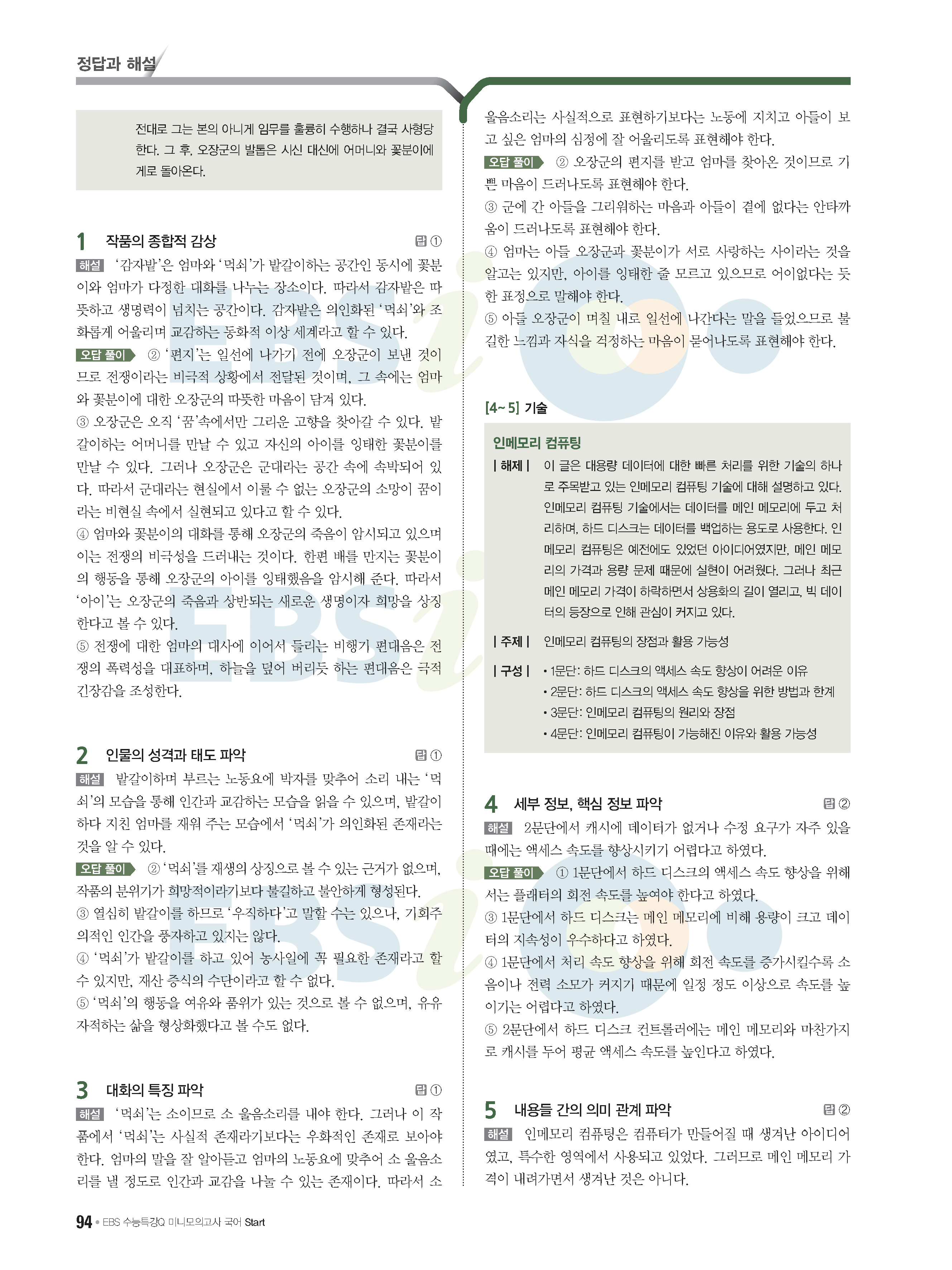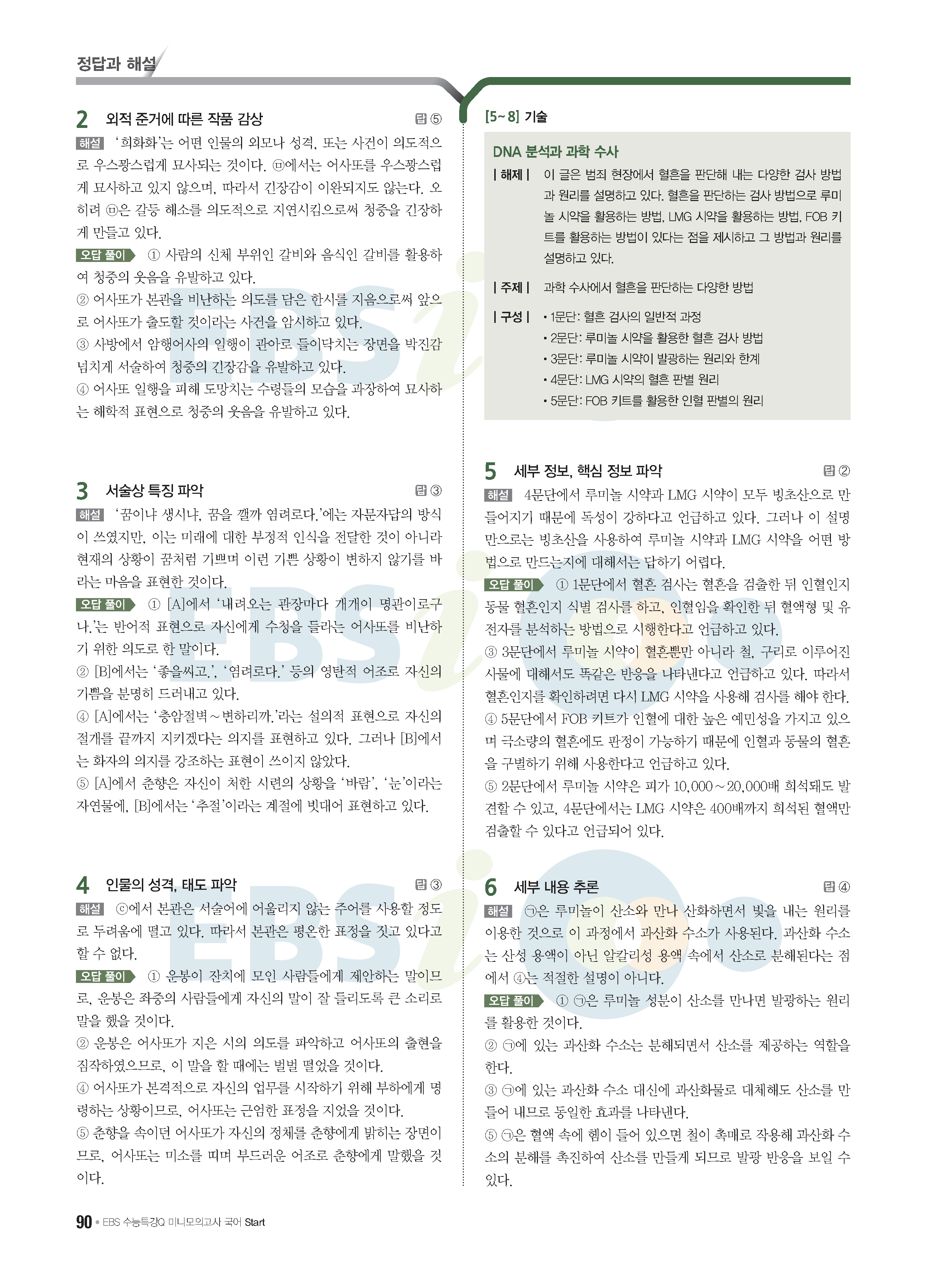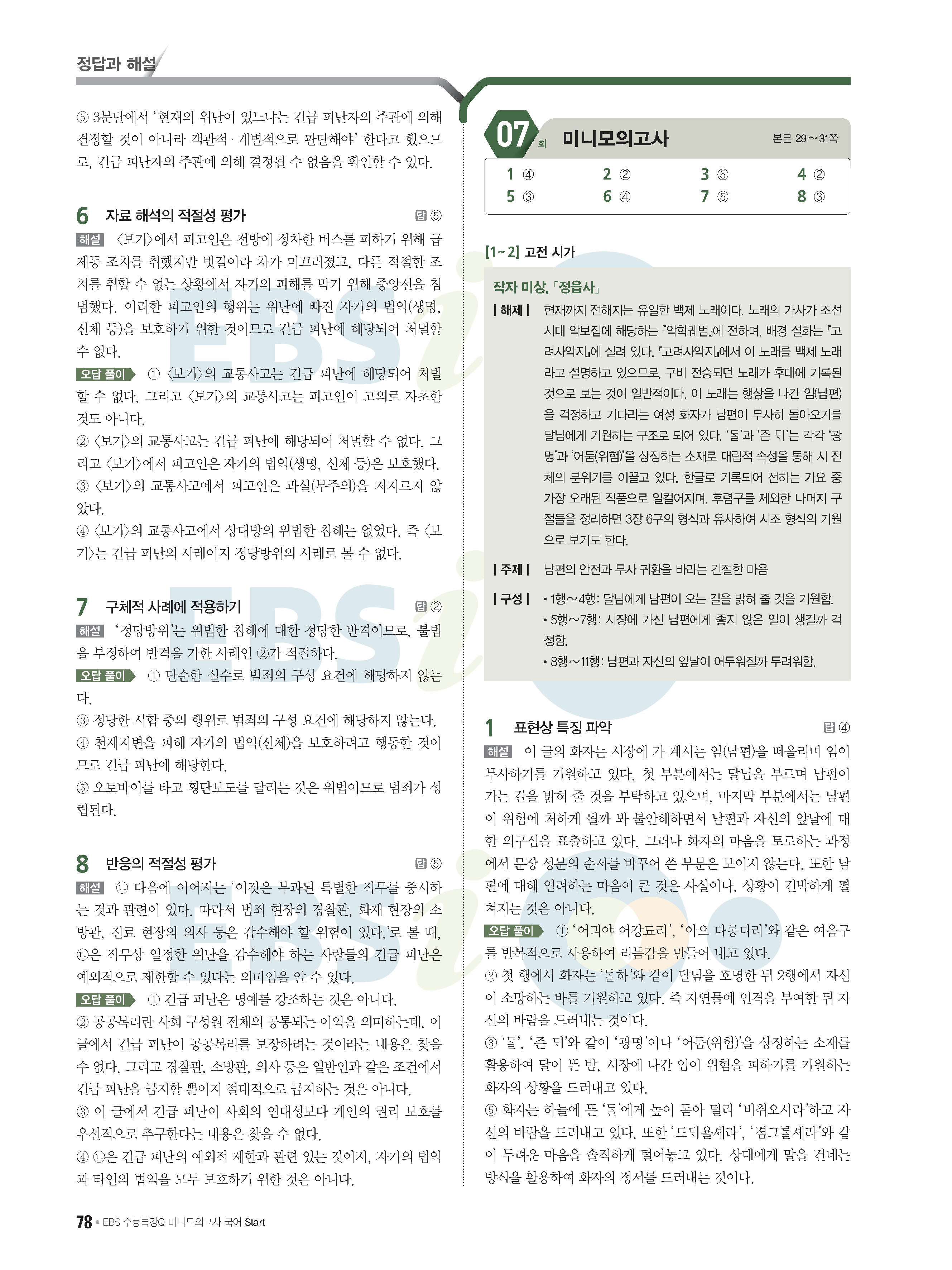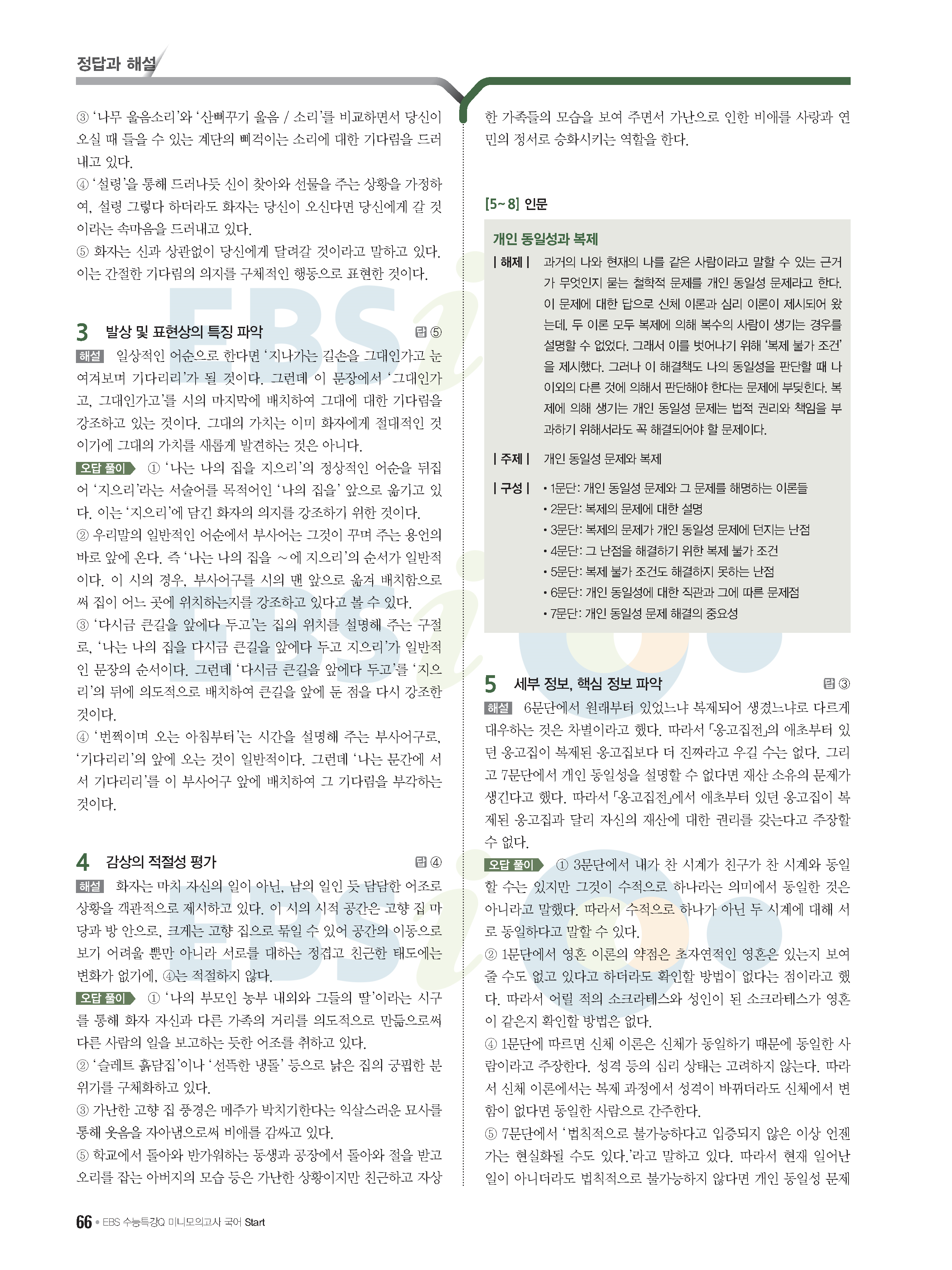 2022 EBS 수능특강큐 미니모의고사 국어 start 답지 해설 사진답지 모바일최적화