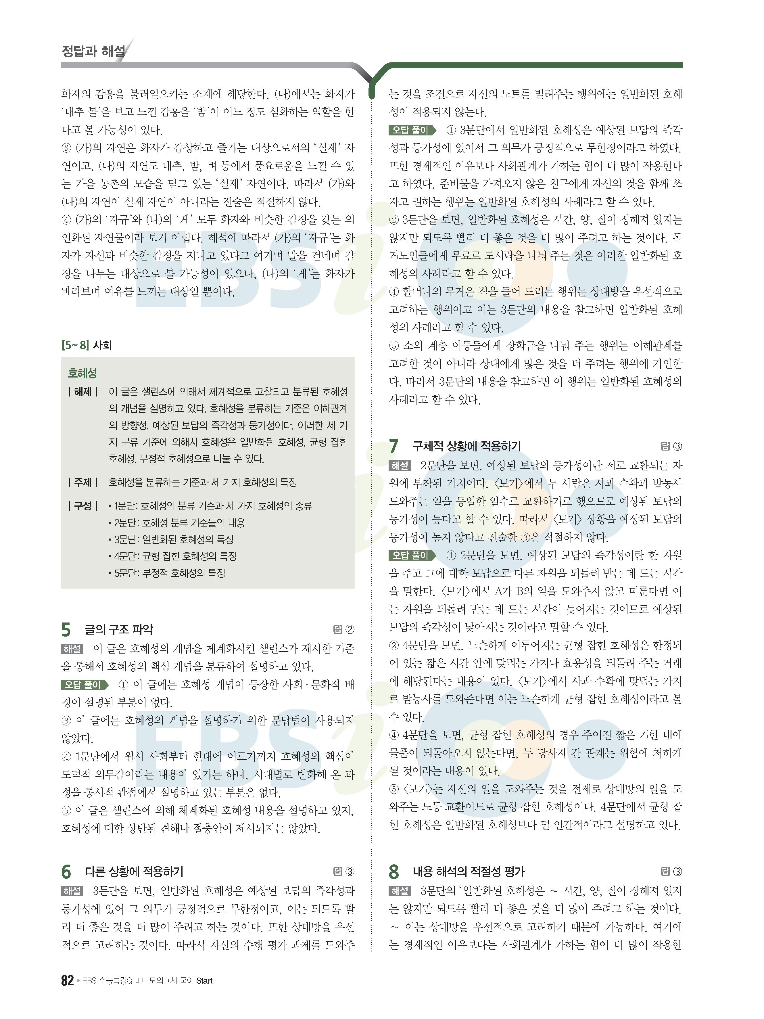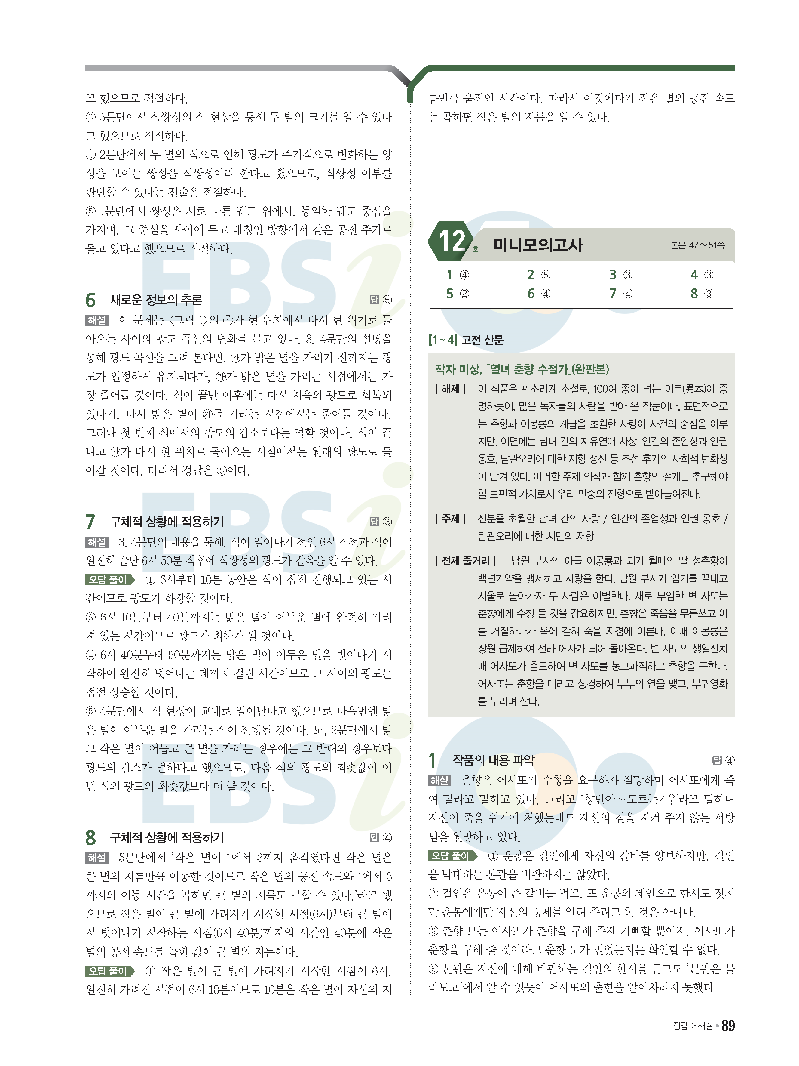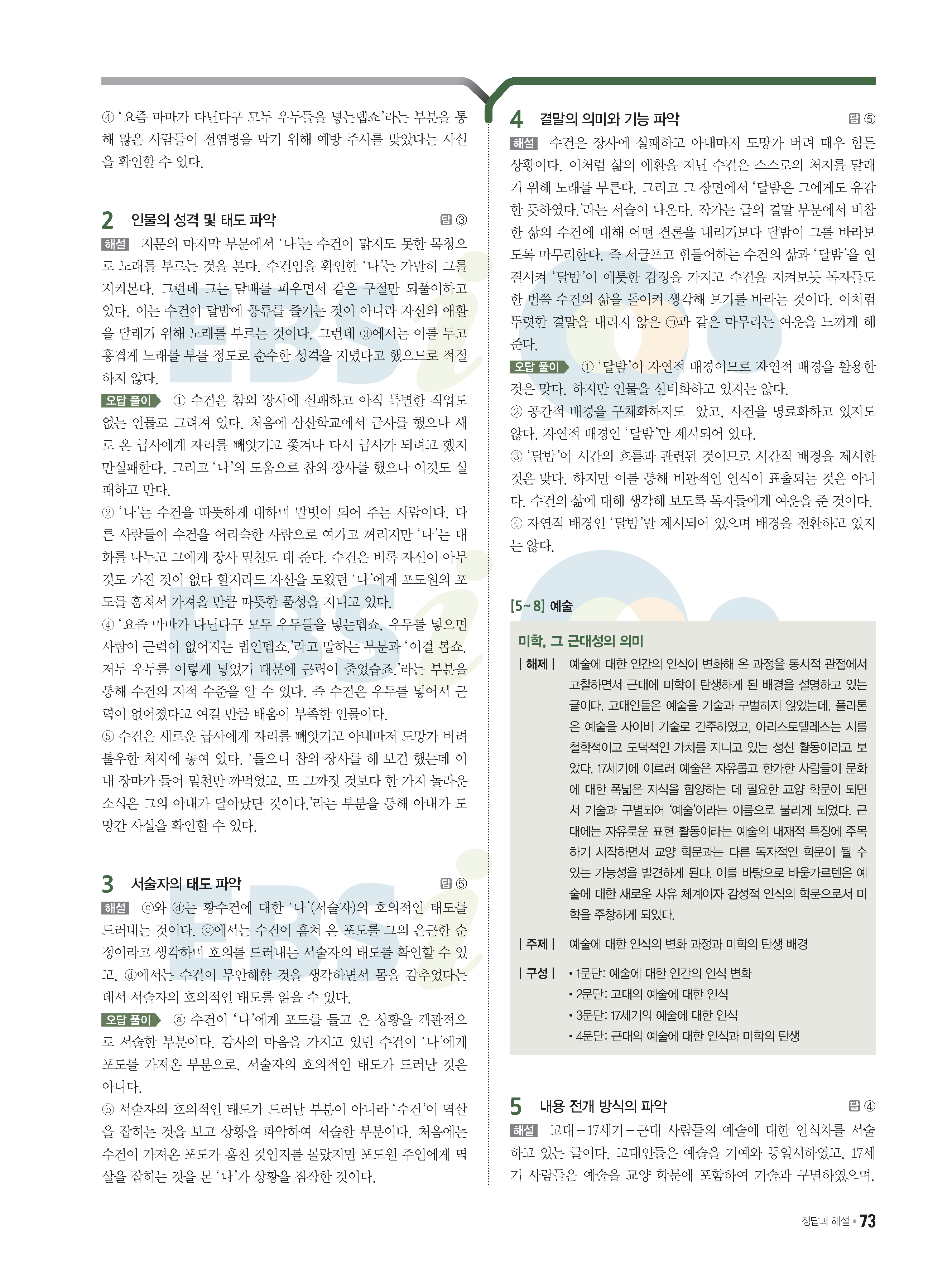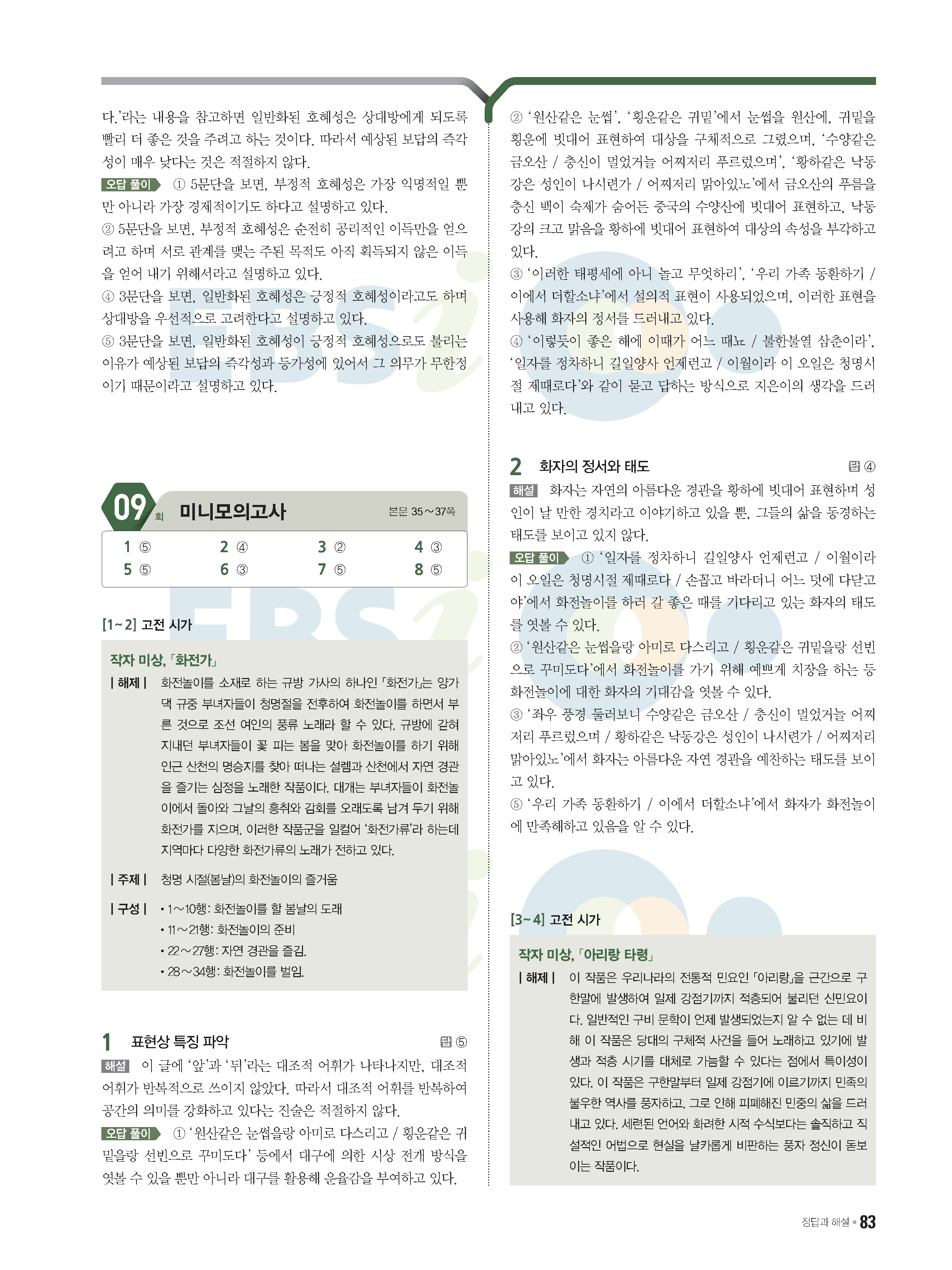2022 EBS 수능특강큐 미니모의고사 국어 start 답지 해설 사진답지 모바일최적화