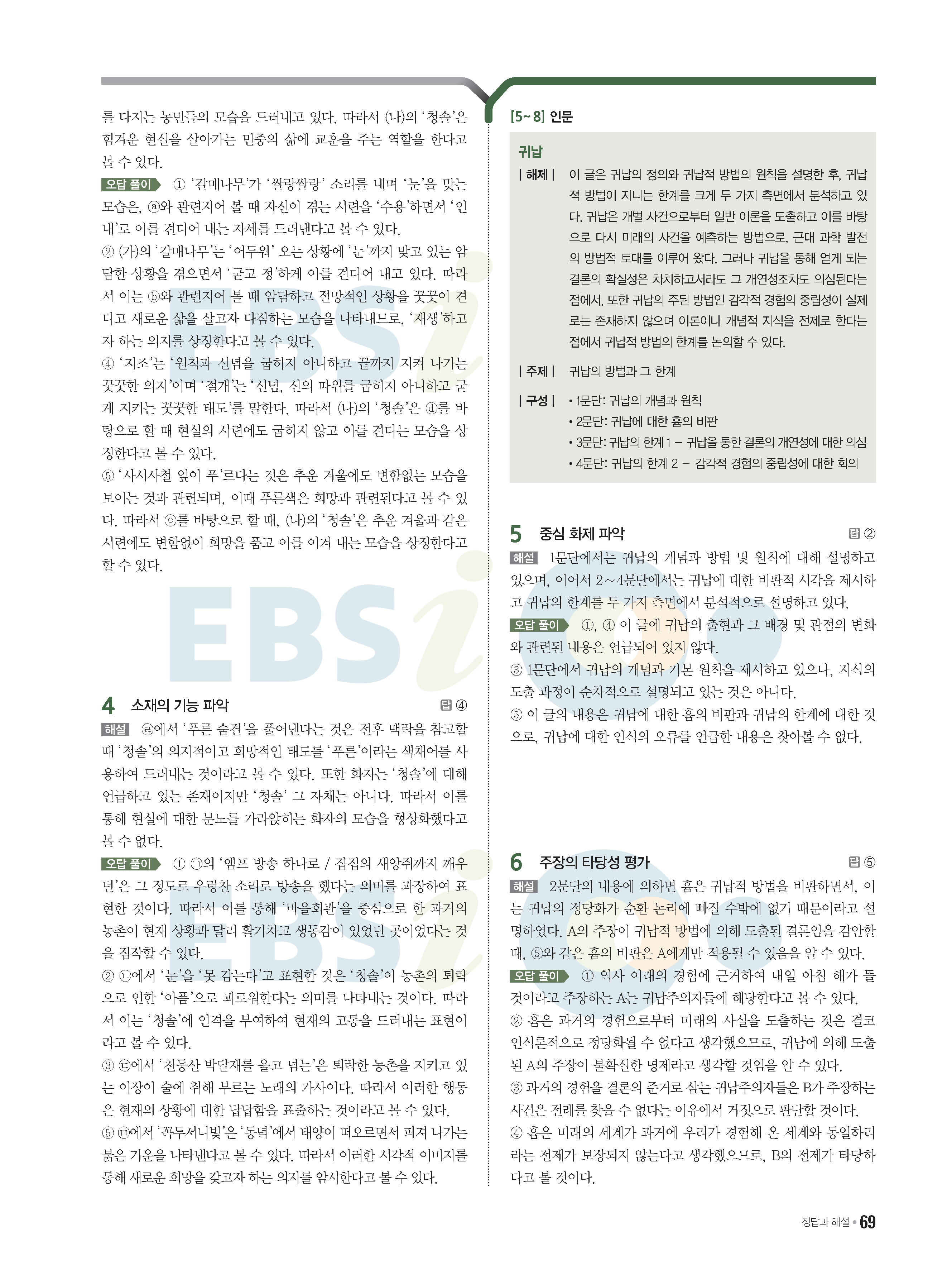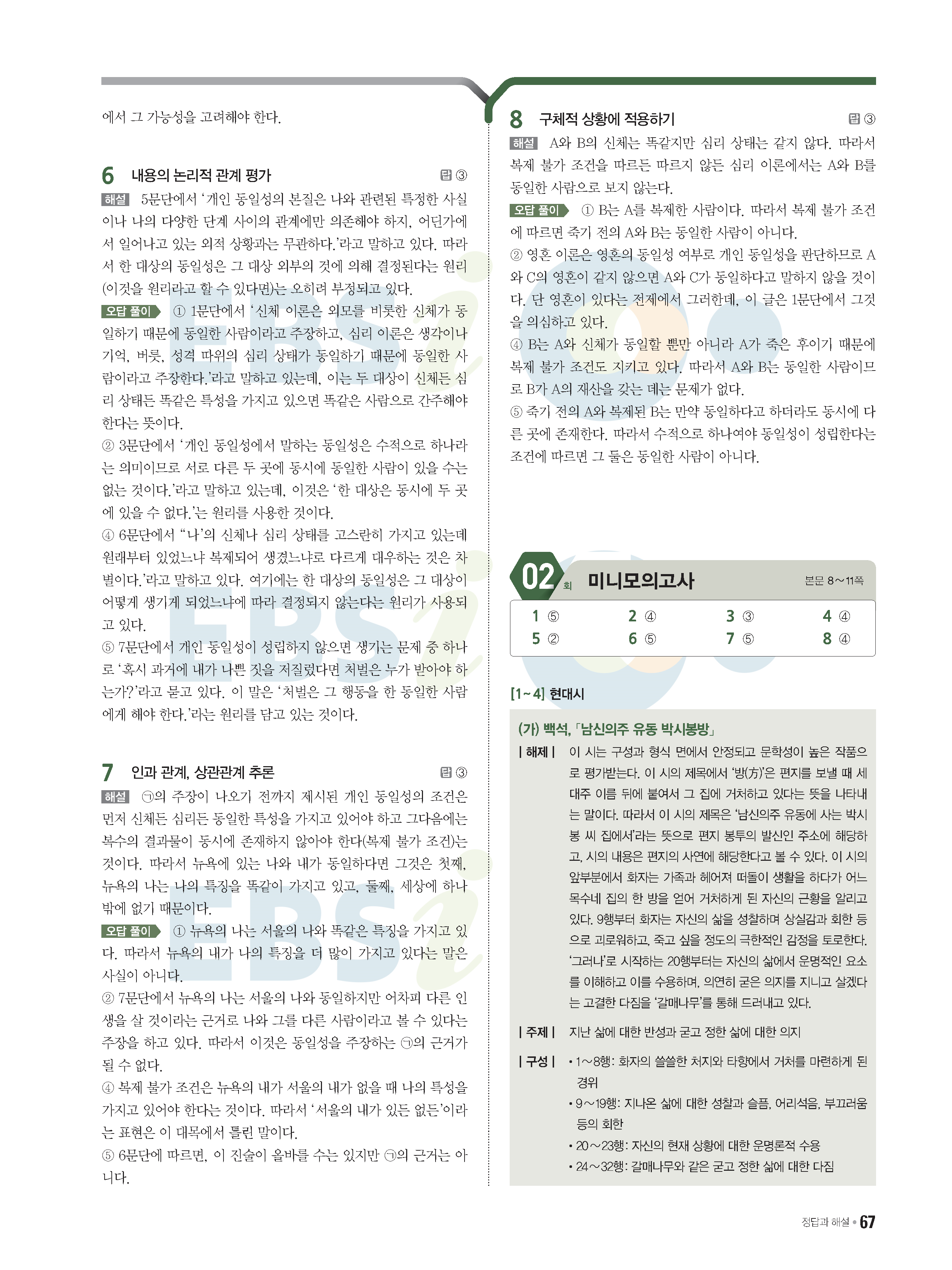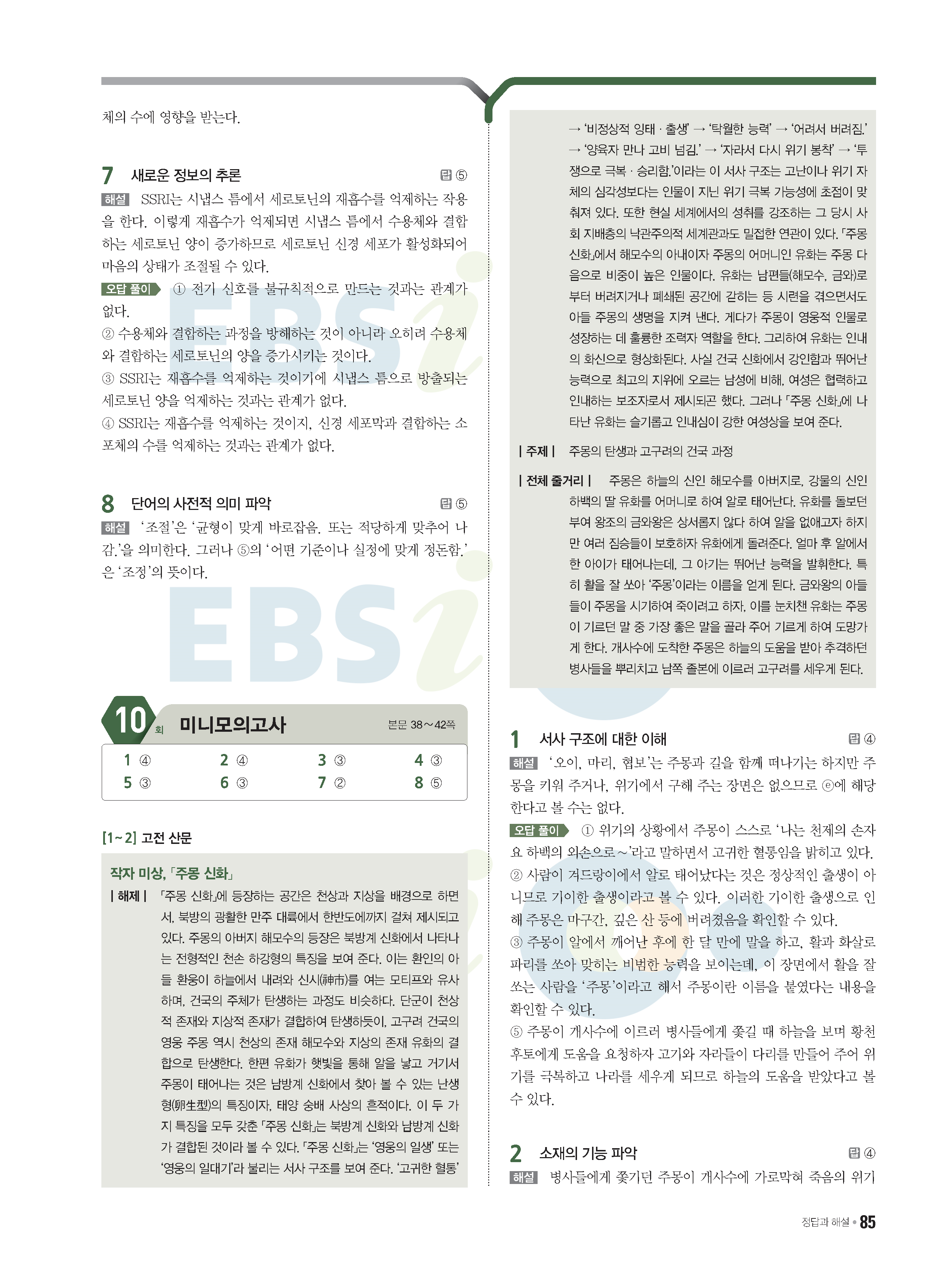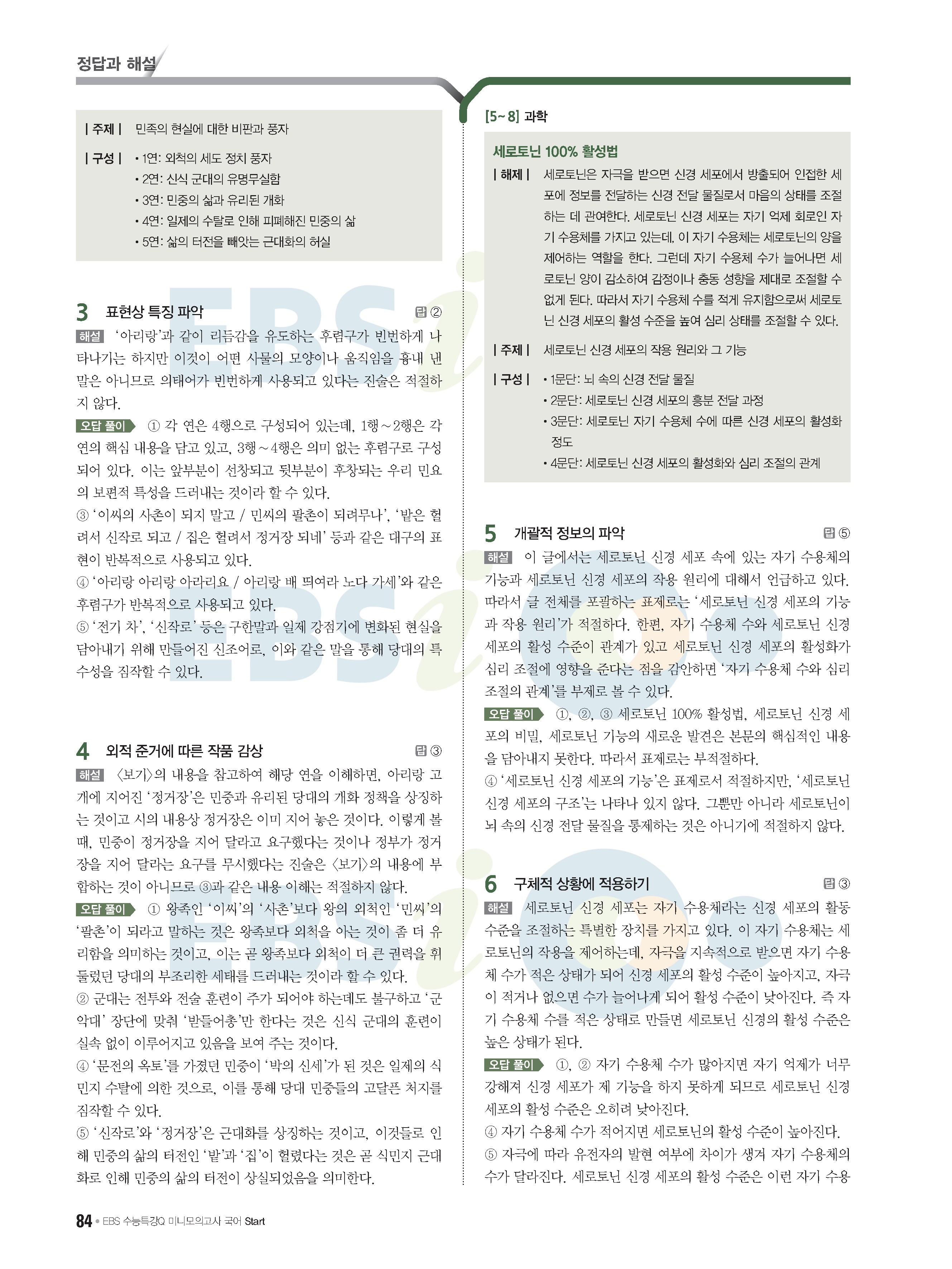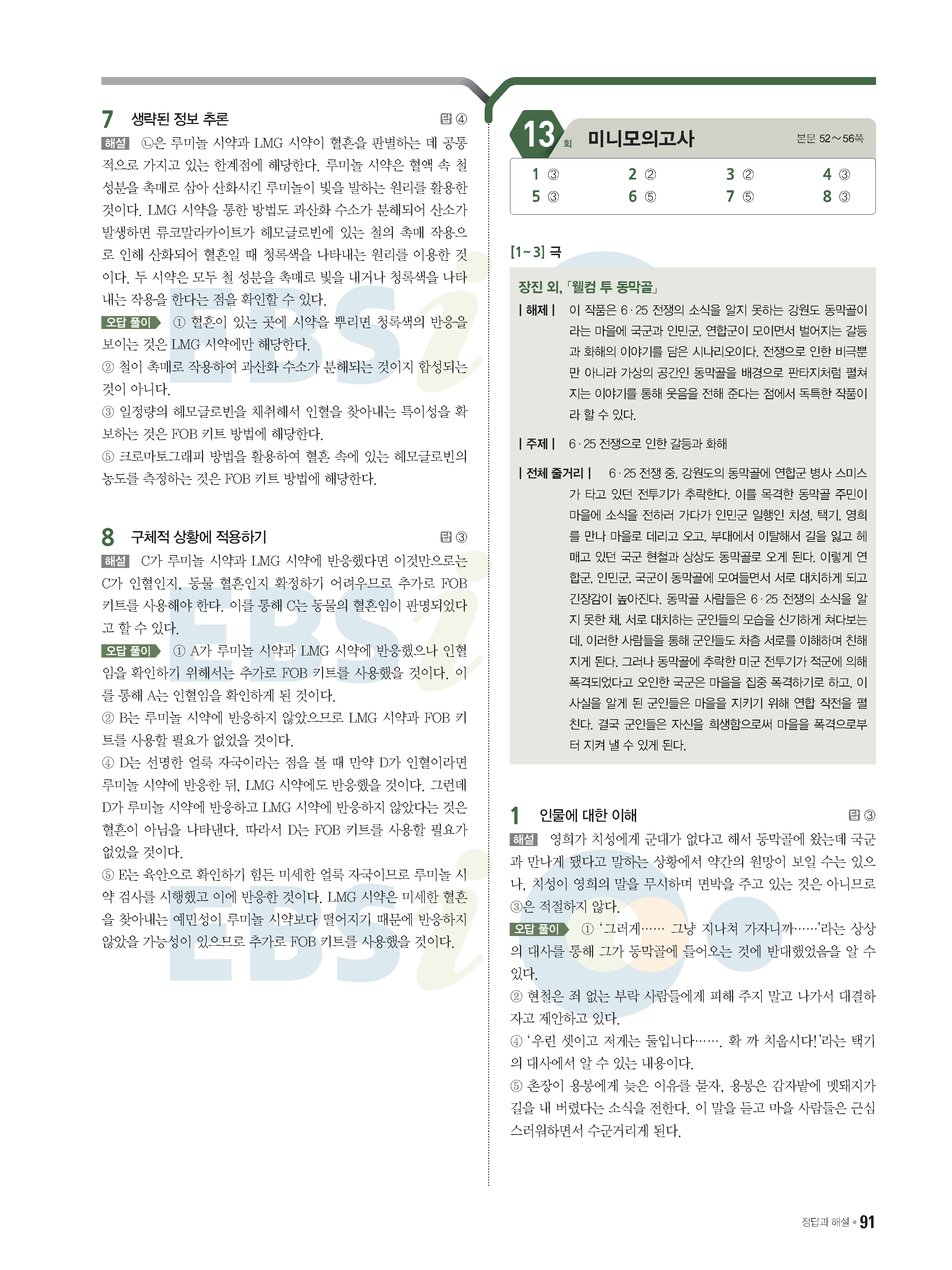 2022 EBS 수능특강큐 미니모의고사 국어 start 답지 해설 사진답지 모바일최적화