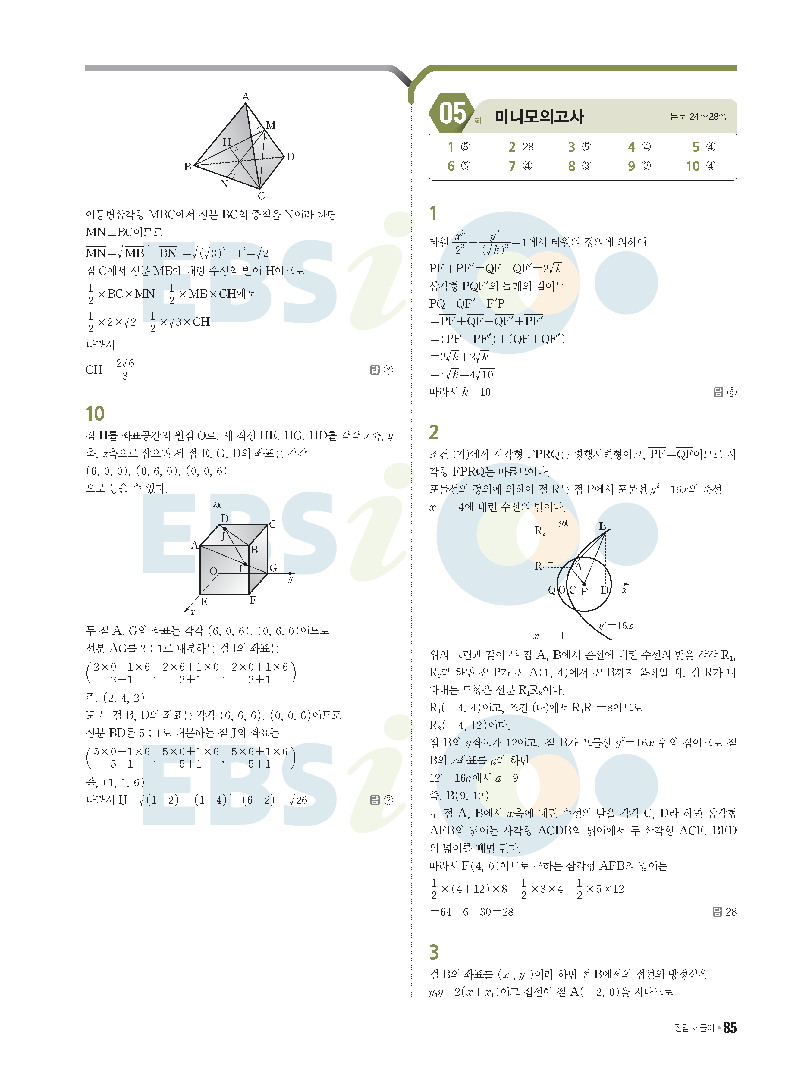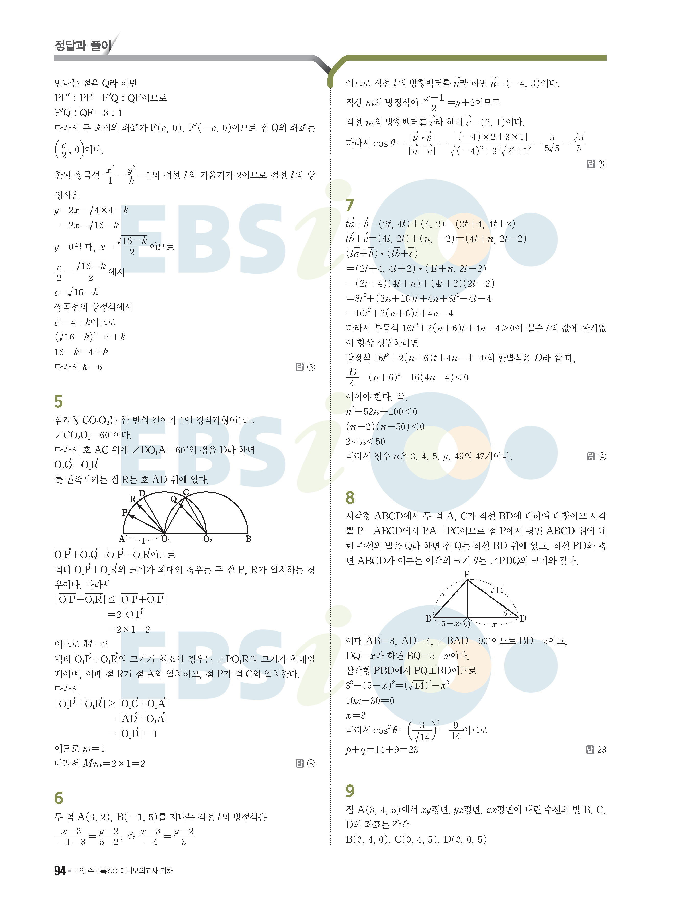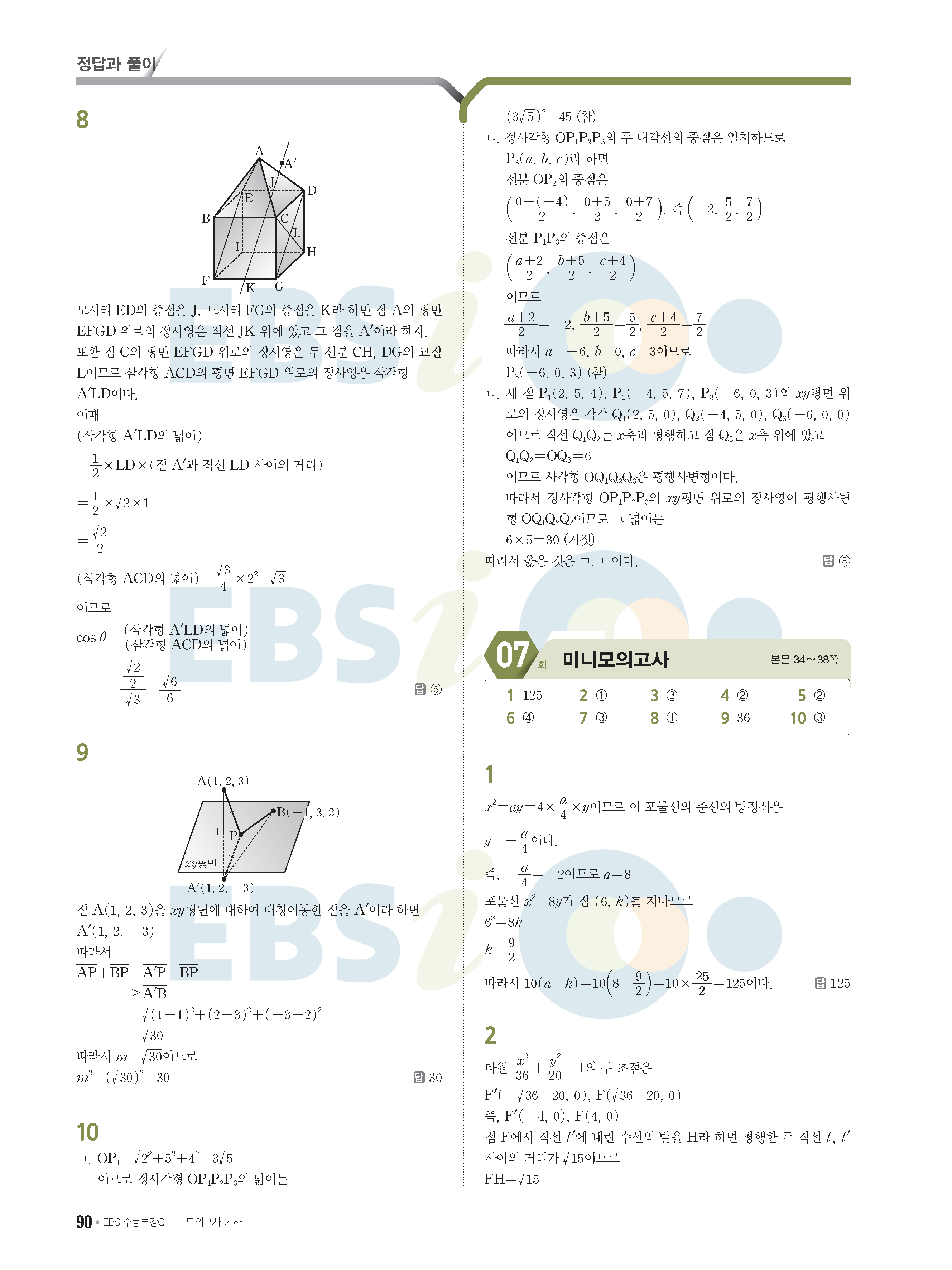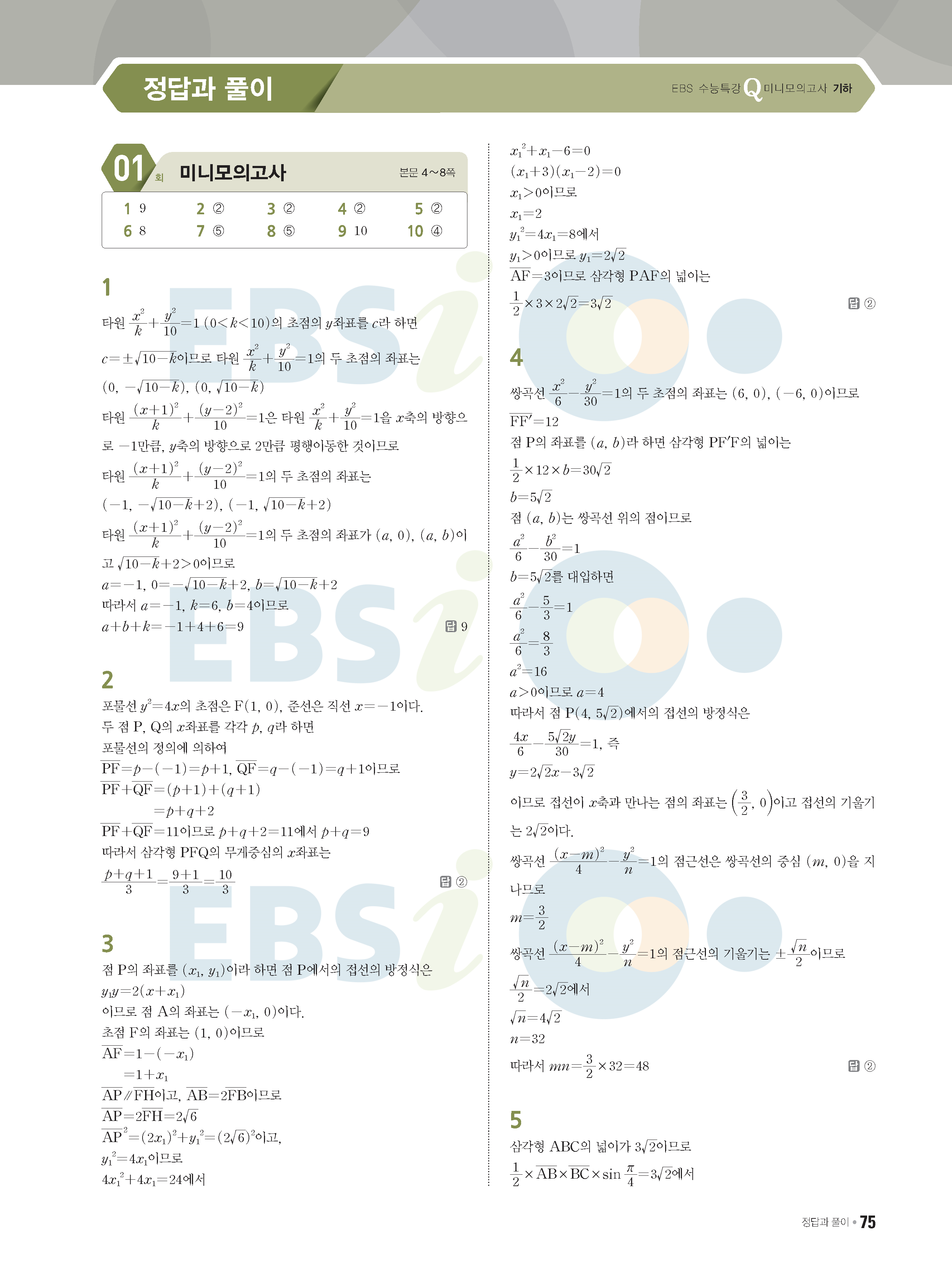 2022 EBS 수능특강큐 미니모의고사 기하 답지 해설 사진답지 모바일최적화