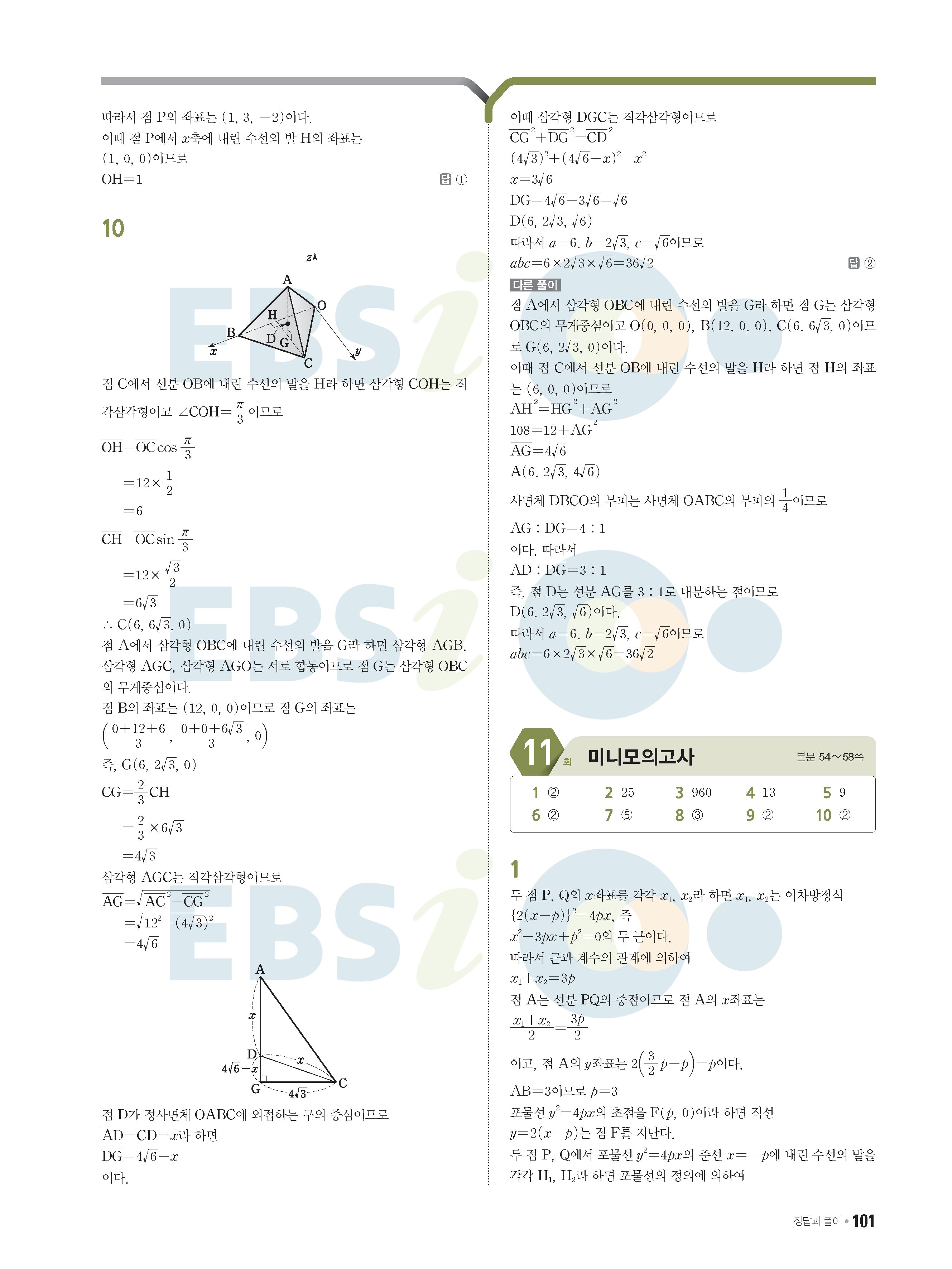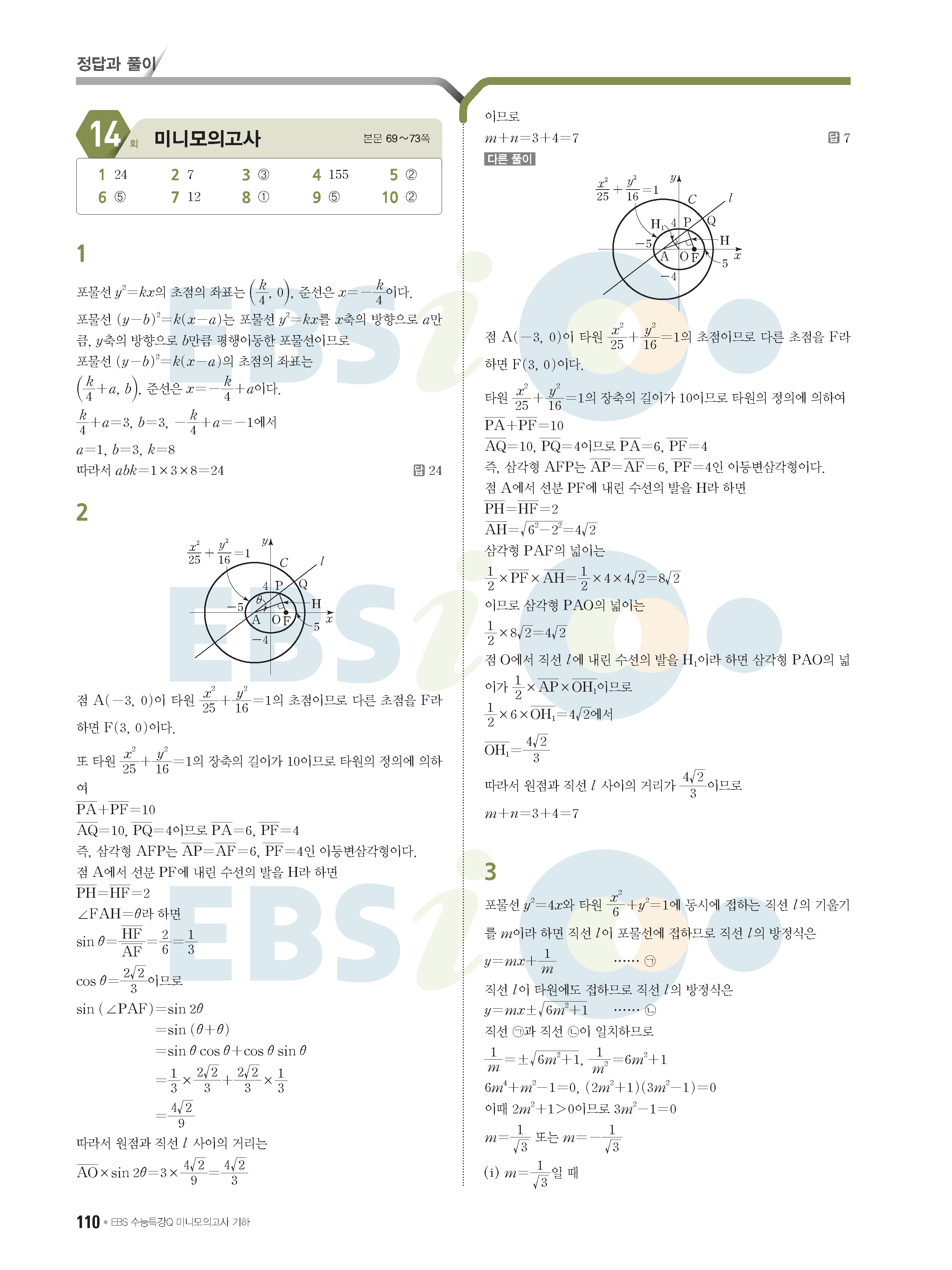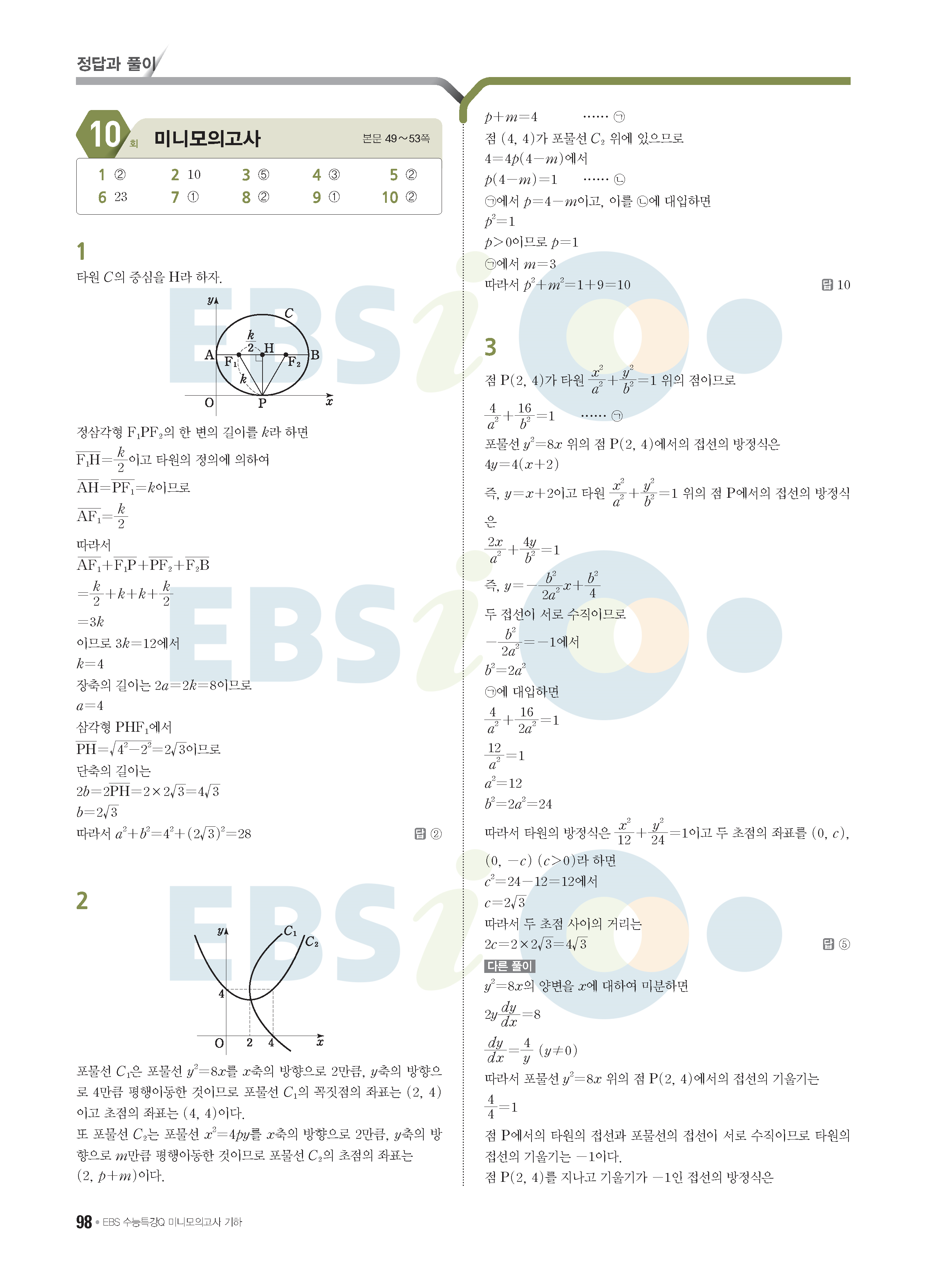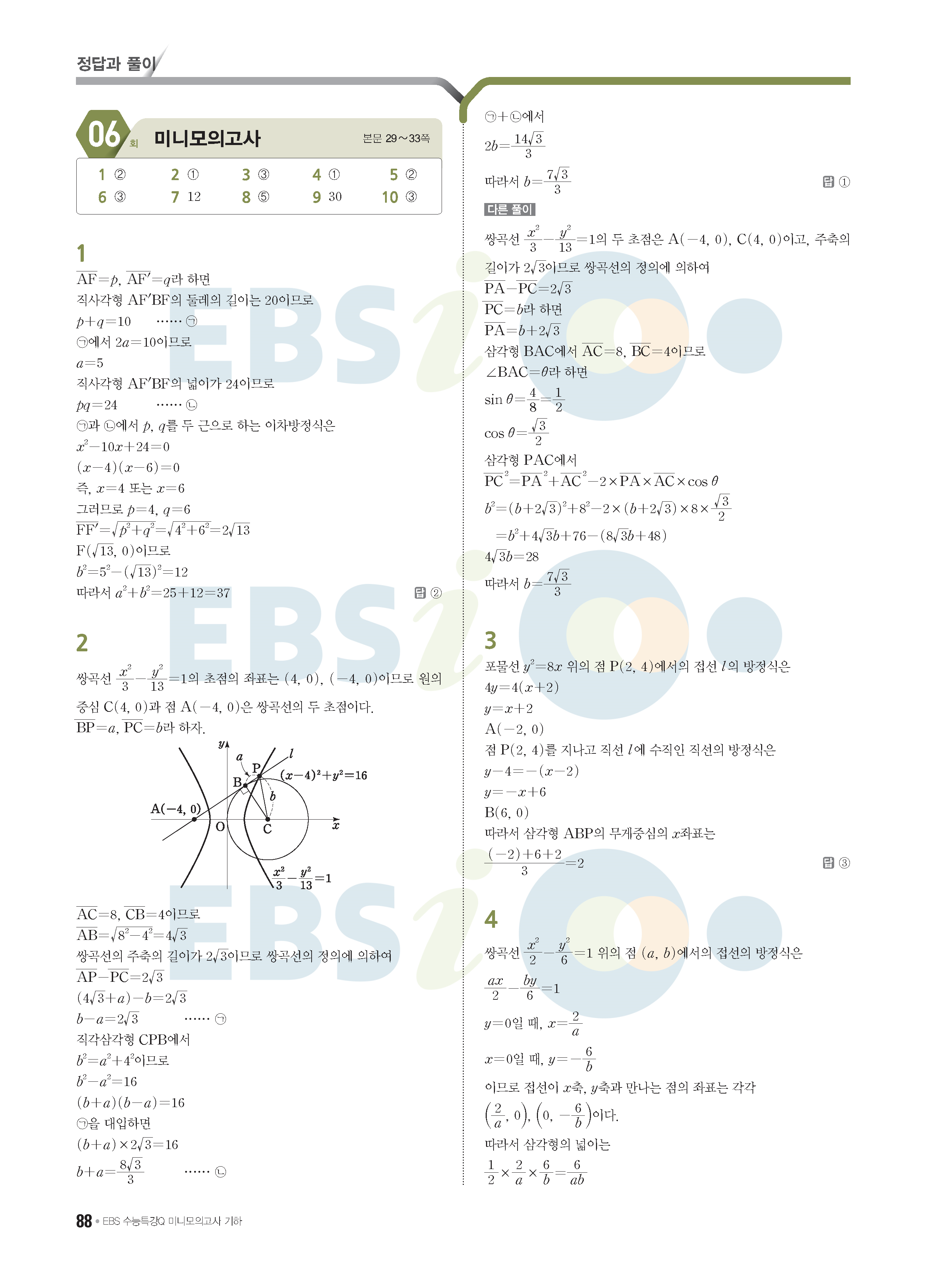 2022 EBS 수능특강큐 미니모의고사 기하 답지 해설 사진답지 모바일최적화