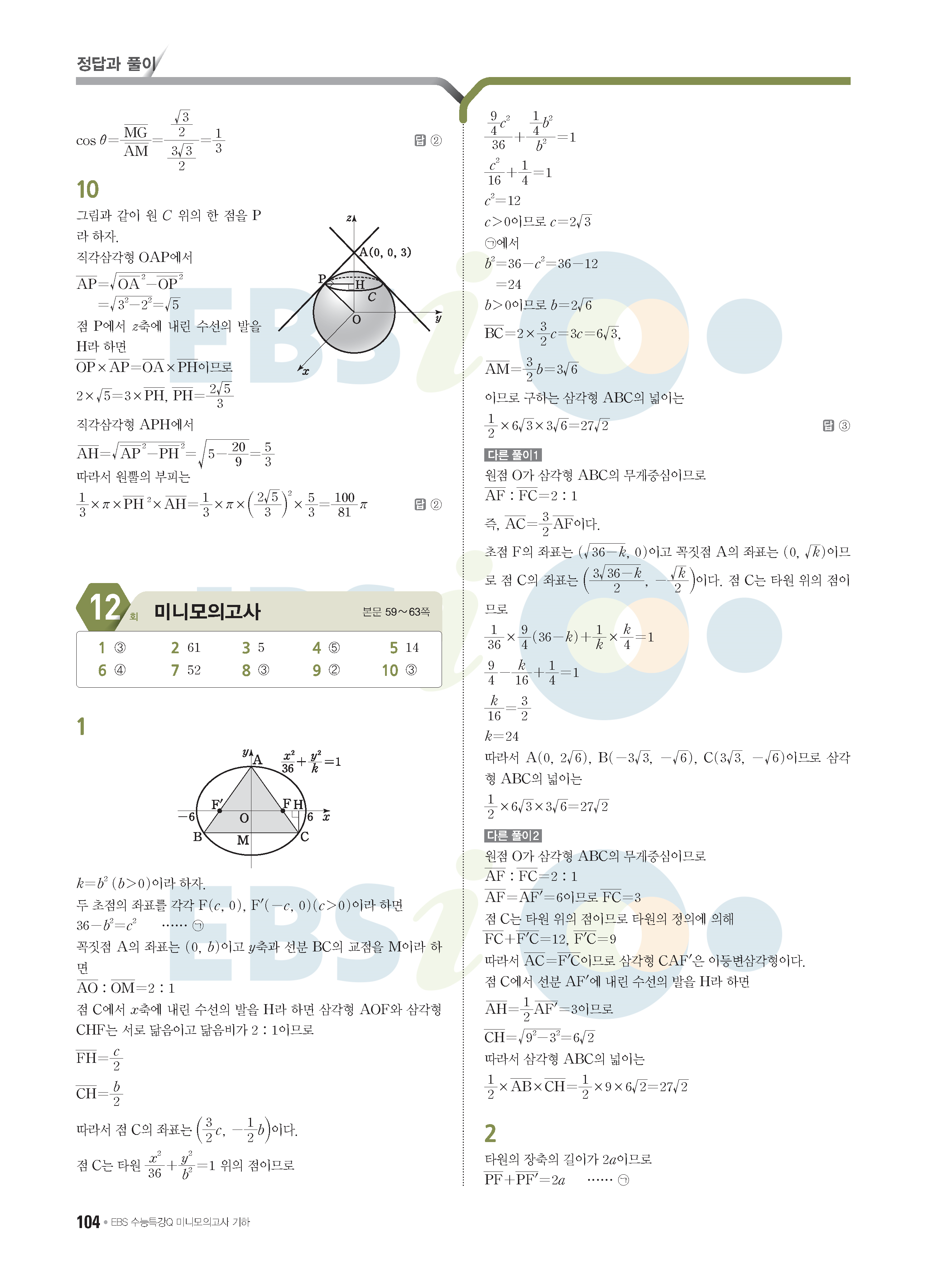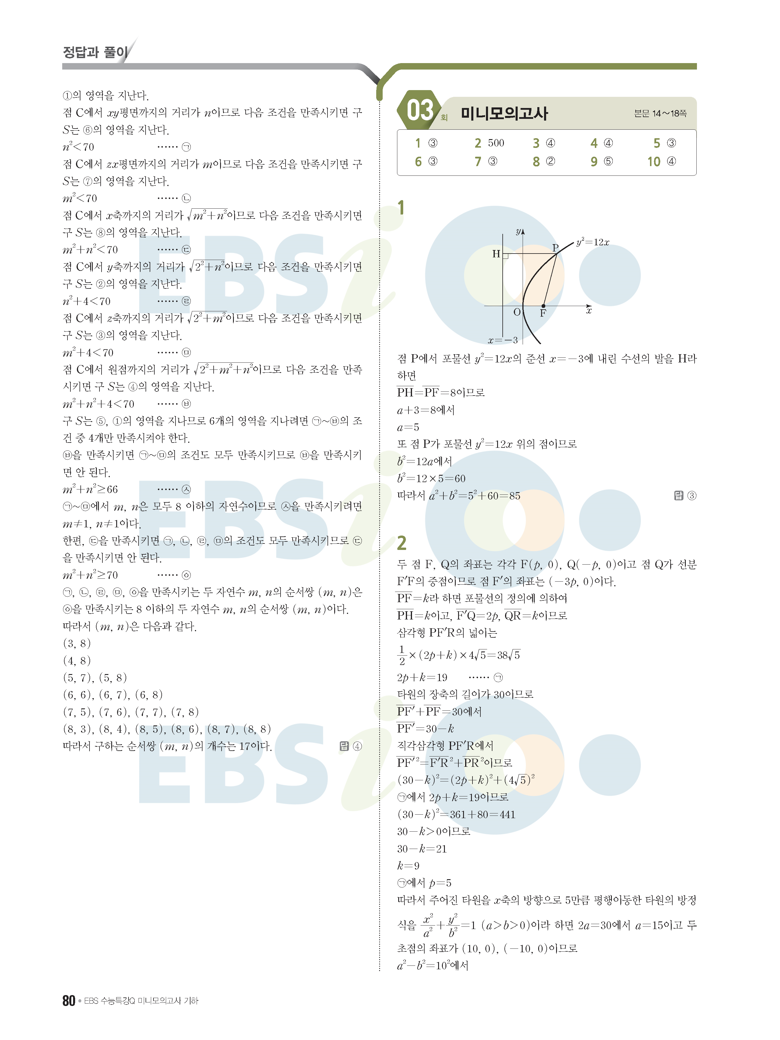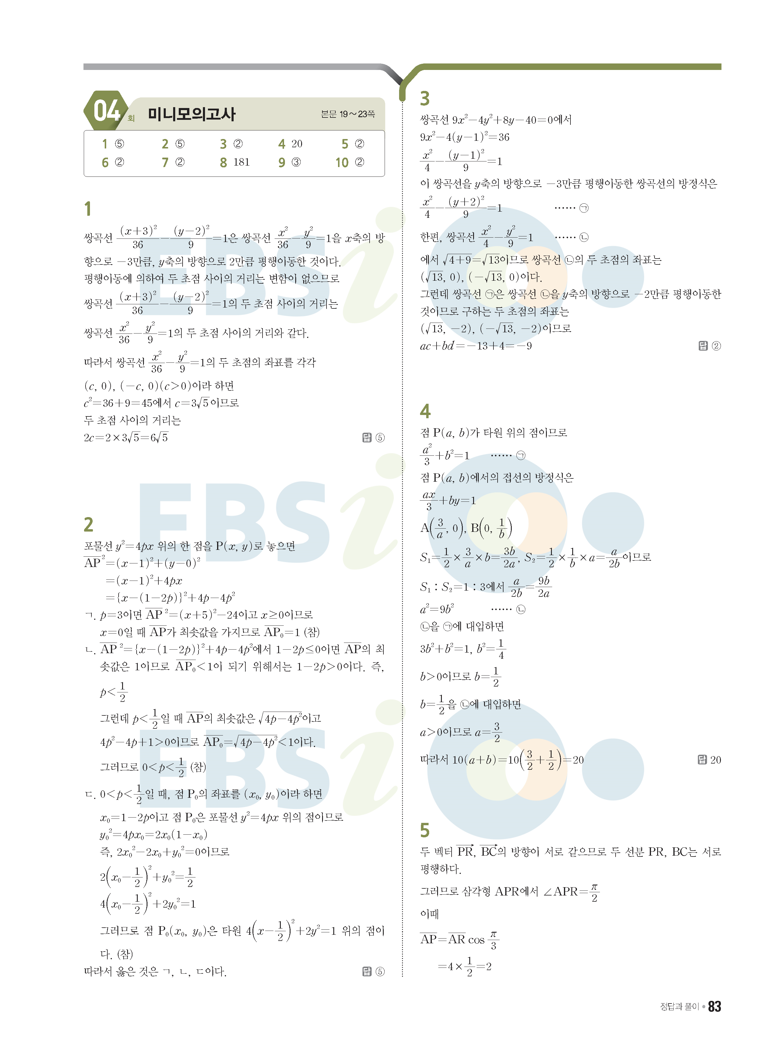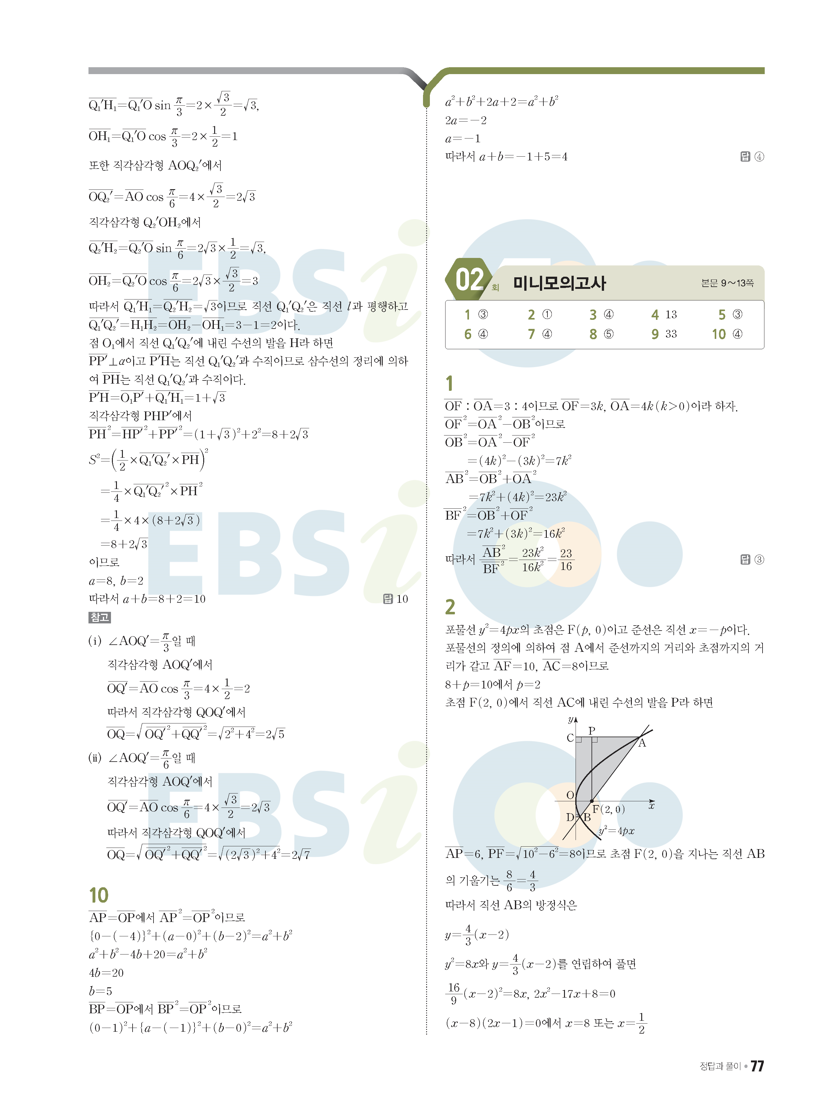 2022 EBS 수능특강큐 미니모의고사 기하 답지 해설 사진답지 모바일최적화