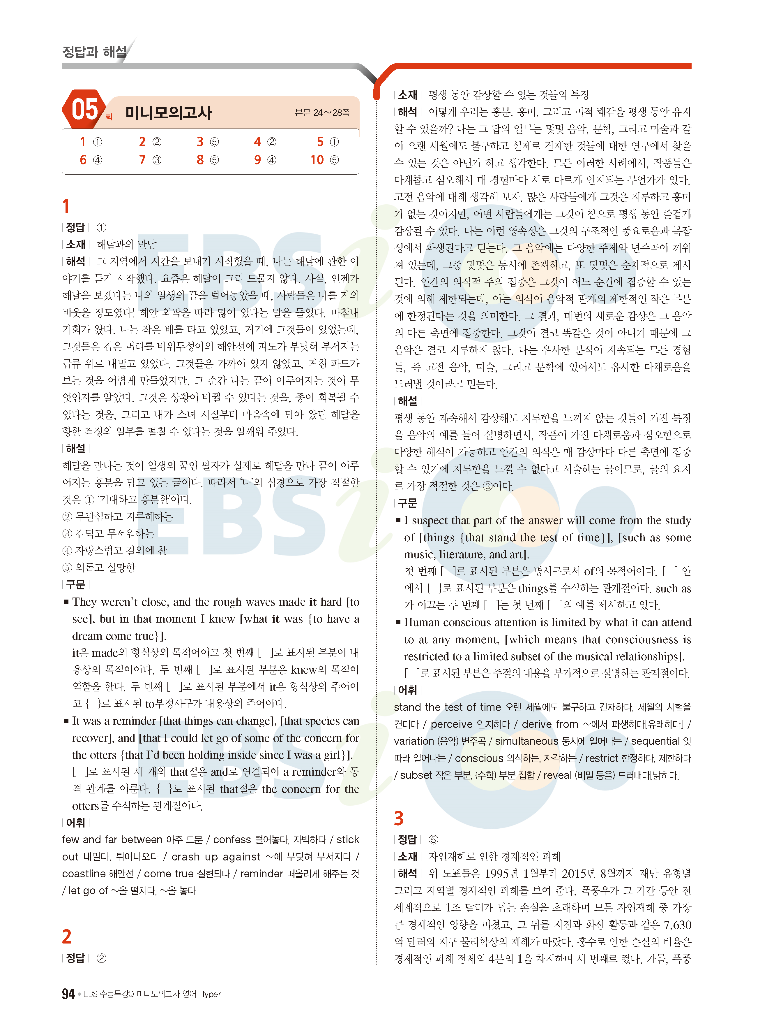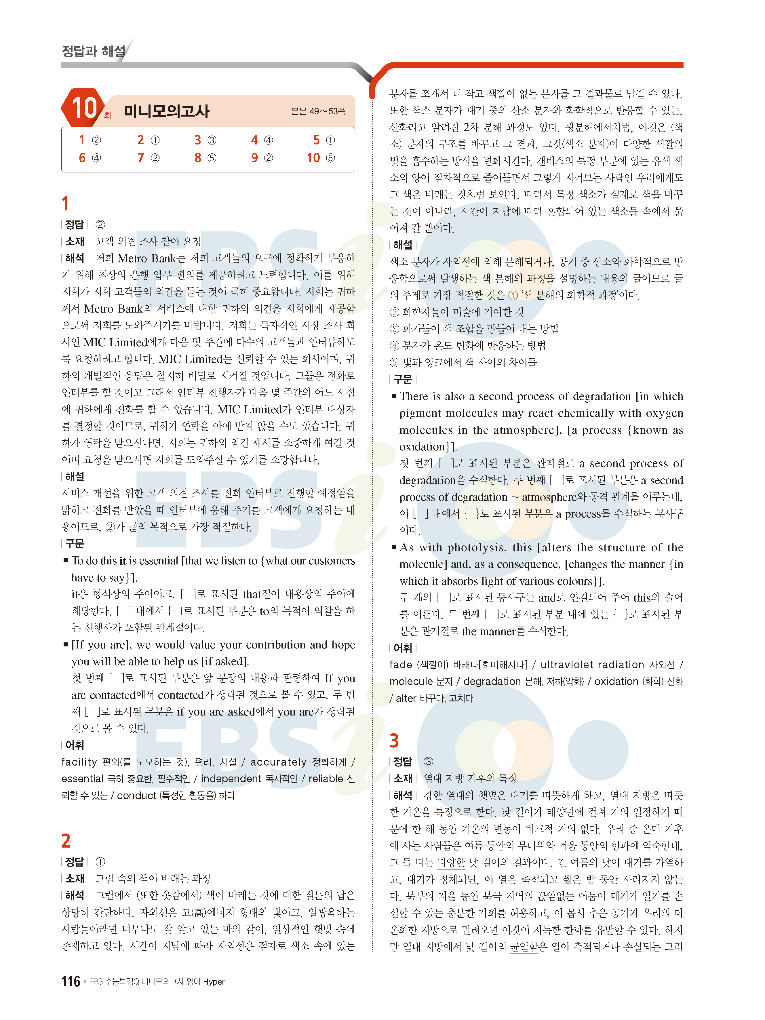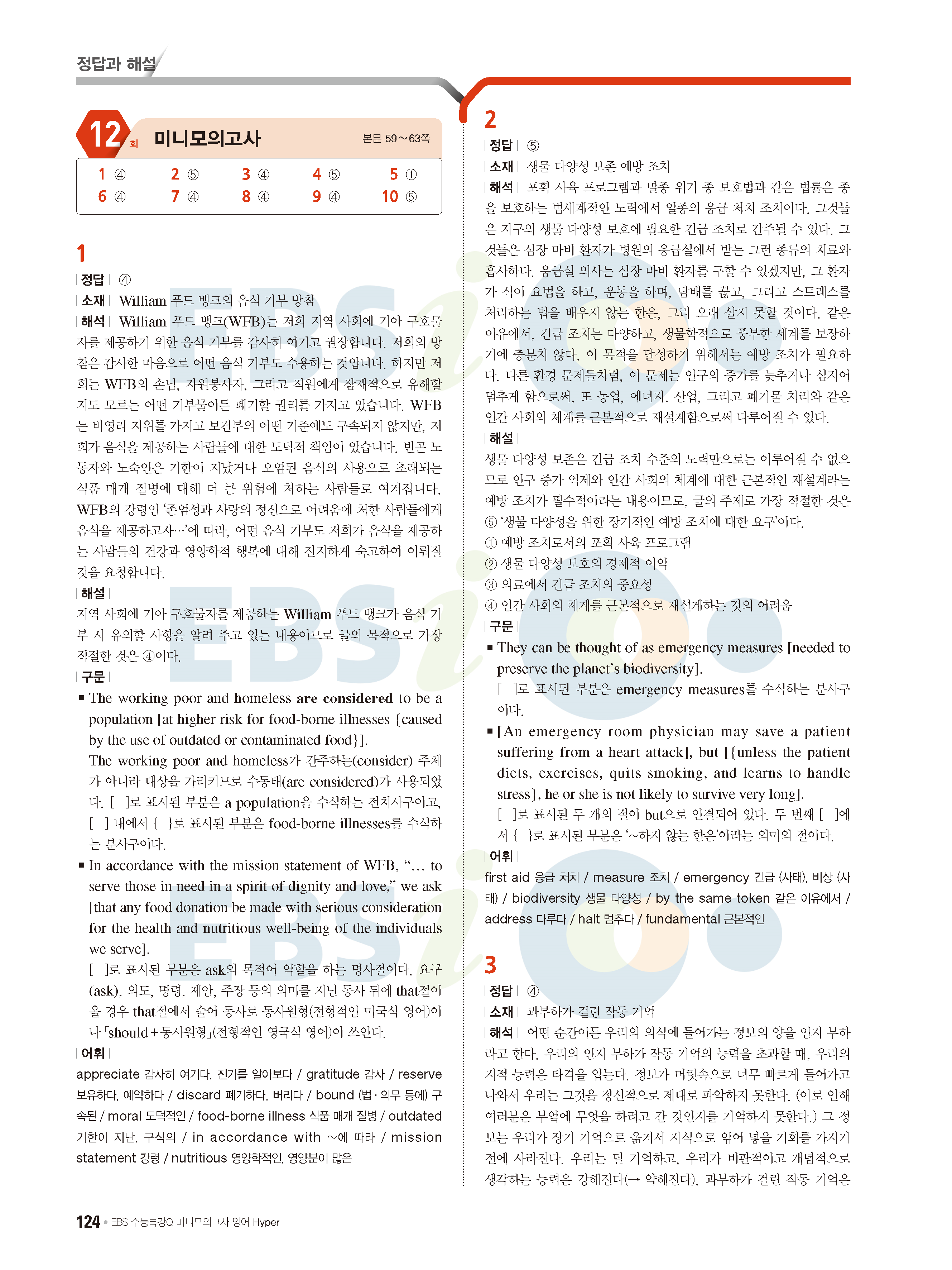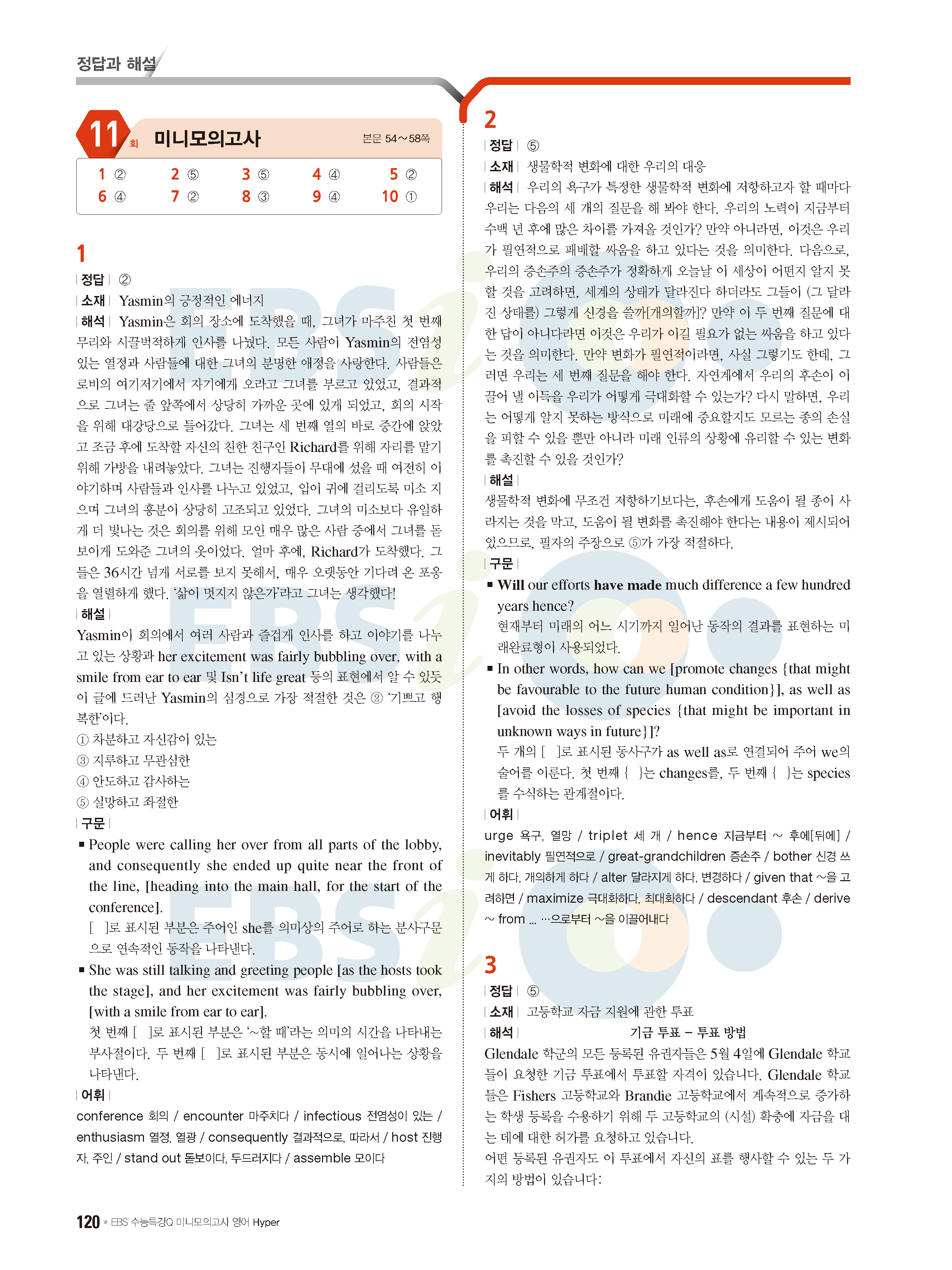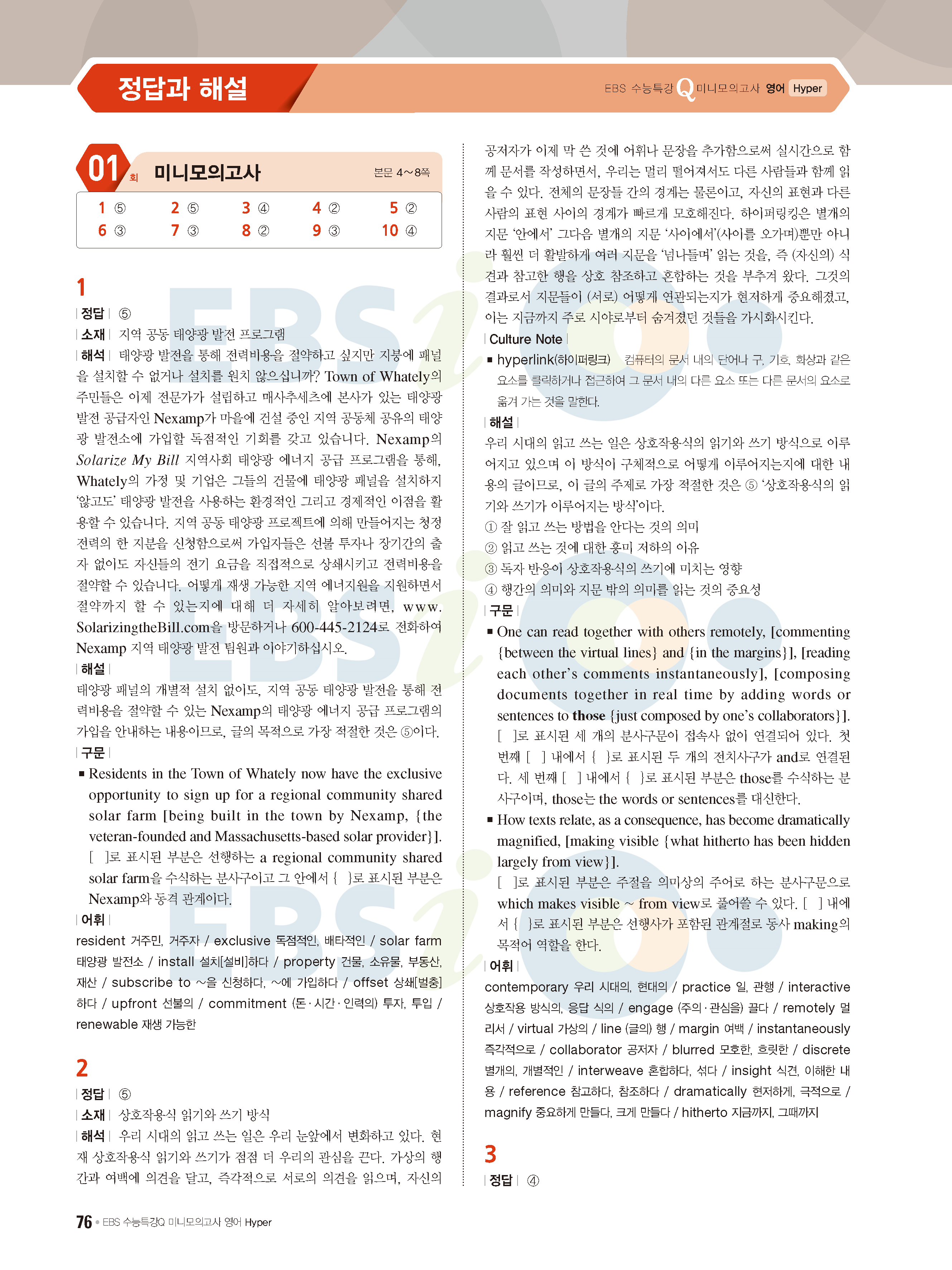 2022 EBS 수능특강큐 미니모의고사 영어 hyper 답지 해설 사진답지 모바일최적화